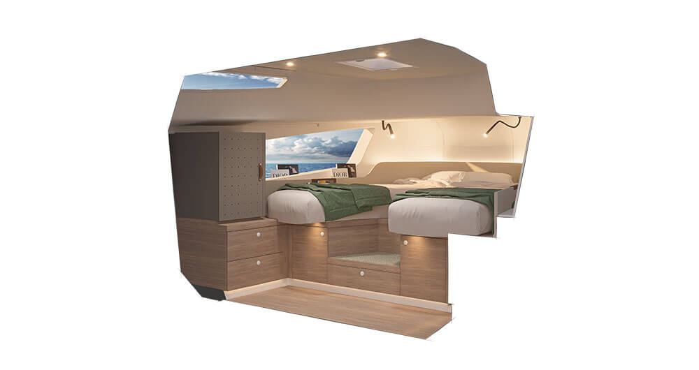 With the Delphia 10 Lounge, the design offers a fully open cockpit design that can accommodate vast seating arrangement onboard. In addition, passengers can enjoy the freedom of movement moving around on deck of the Delphia 10 Lounge has never been easier, with a walk-around concept, providing safe and comfortable passages wherever you are. The perfect fusion of contemporary design and functions living spaces, The Delphia 10 has noticeable Real Estate available for prospective buyers. Panoramic views, ample natural interior lighting coupled with a queen size bed and a separate shower stall to try the homely feeling together.