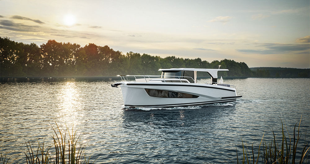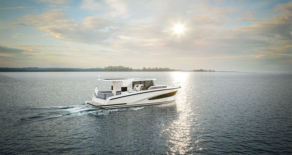 A Unique and innovative approach and design, the Delphia 10 Fly Lounge combines two different design concepts to achieve the sensation of an open boat with the ultimate protection against the elements when needed. An optimised hull shape combined with the use of powerful bow and stern thrusters making docking very easy and safe to approach. Similarly to the Delphia Lounge, all the seating arrangements are designed for you to stay connected and social whilst you’re cruising as a couple, with family members or sharing your valuable time with some of your friends. The Dephia 10’s seating areas can accommodate anyone and can be adapted to your various needs. You’ll be able to communicate with others face-to-face and to share any cheerful moments you have onboard with others.