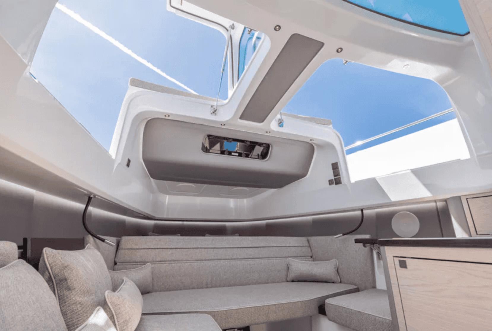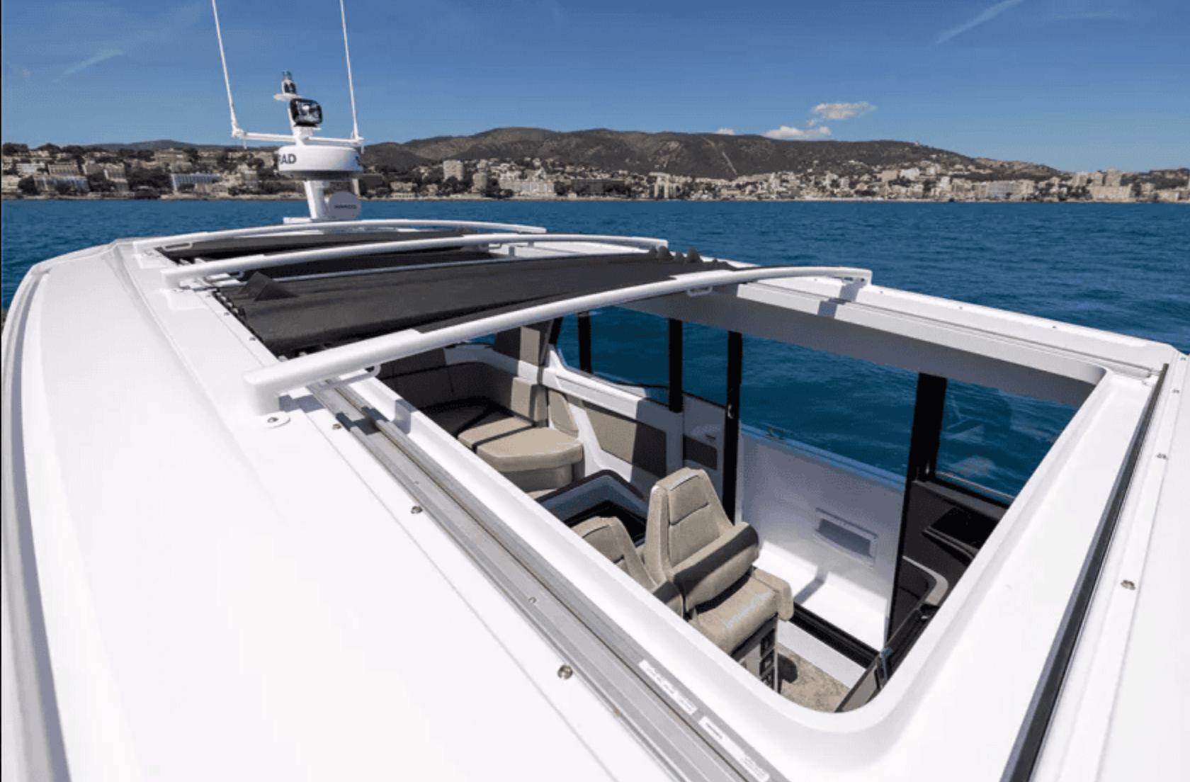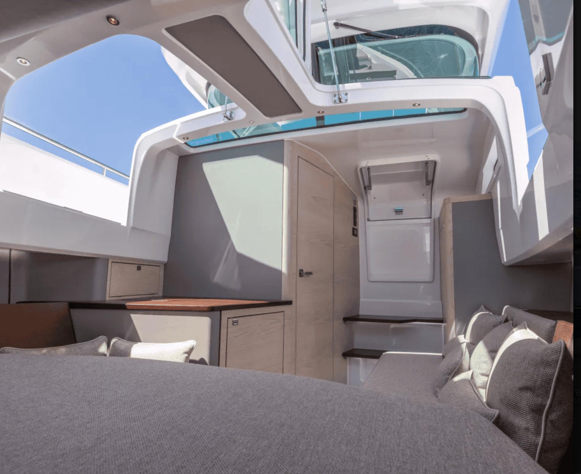 The Axopar 45 XC is powered by a trio of 300 hp Mercury Verado V8 engines, complete with Joystick Piloting (JPO) and E-Steering. This powerful engine configuration ensures power delivery and precision handling, allowing smooth navigation even in challenging conditions.