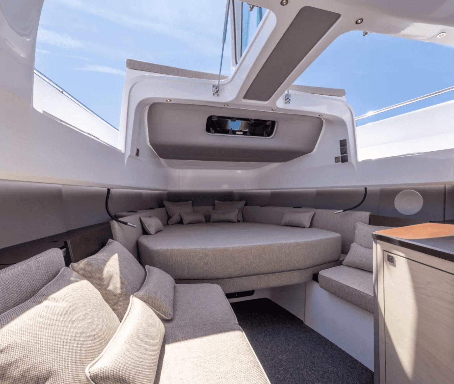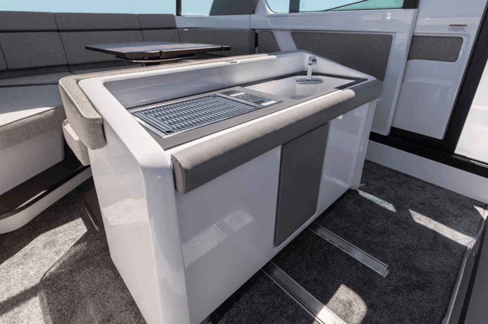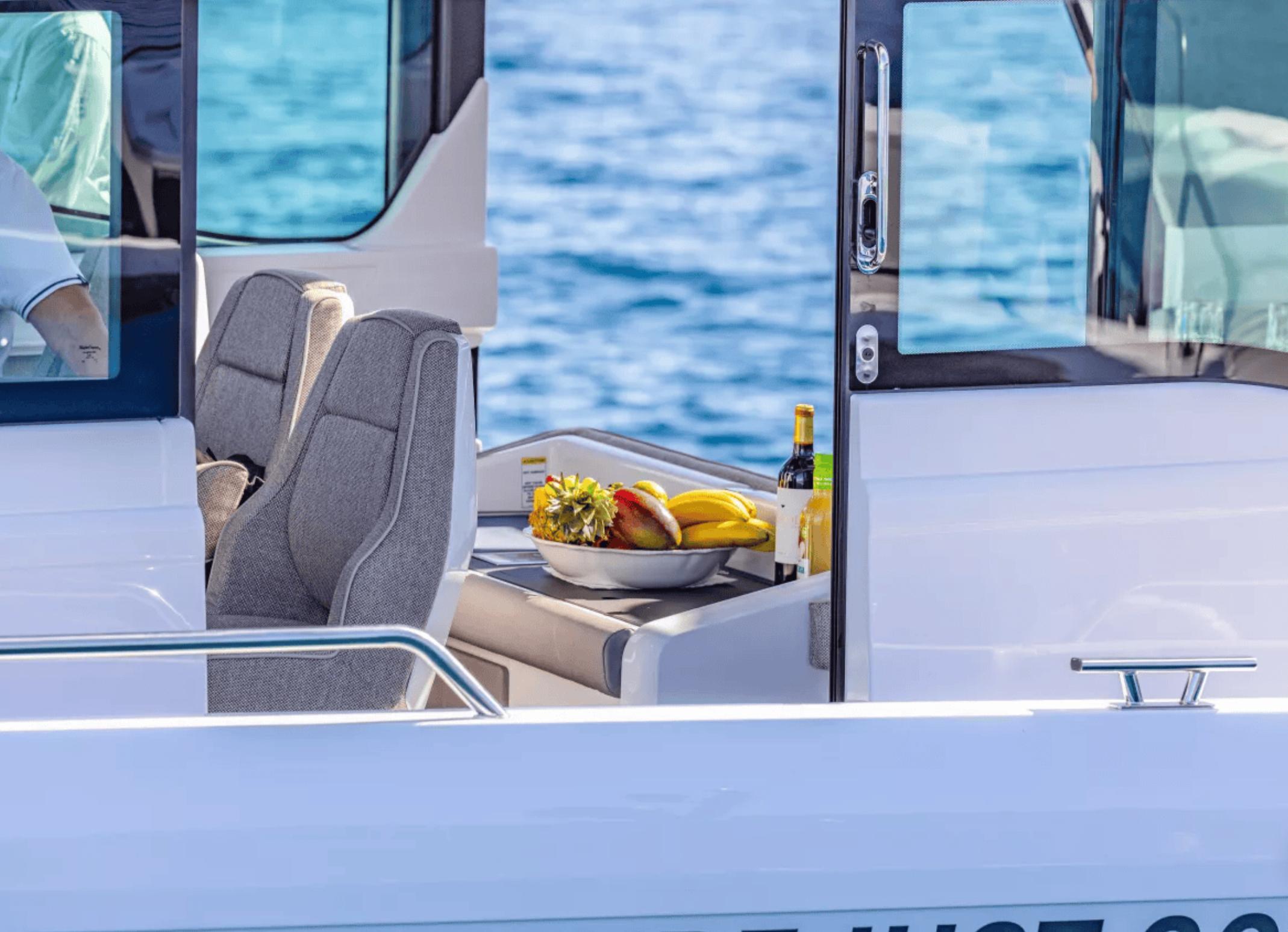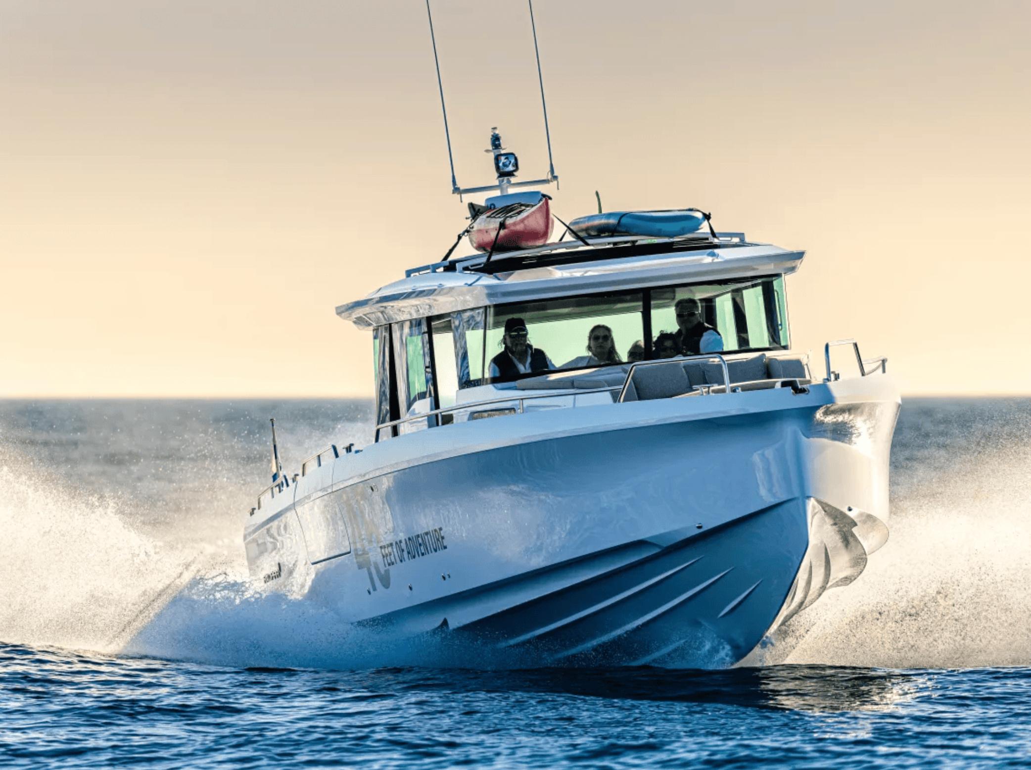 The Axopar 45 XC is powered by a trio of 300 hp Mercury Verado V8 engines, complete with Joystick Piloting (JPO) and E-Steering. This powerful engine configuration ensures power delivery and precision handling, allowing smooth navigation even in challenging conditions.