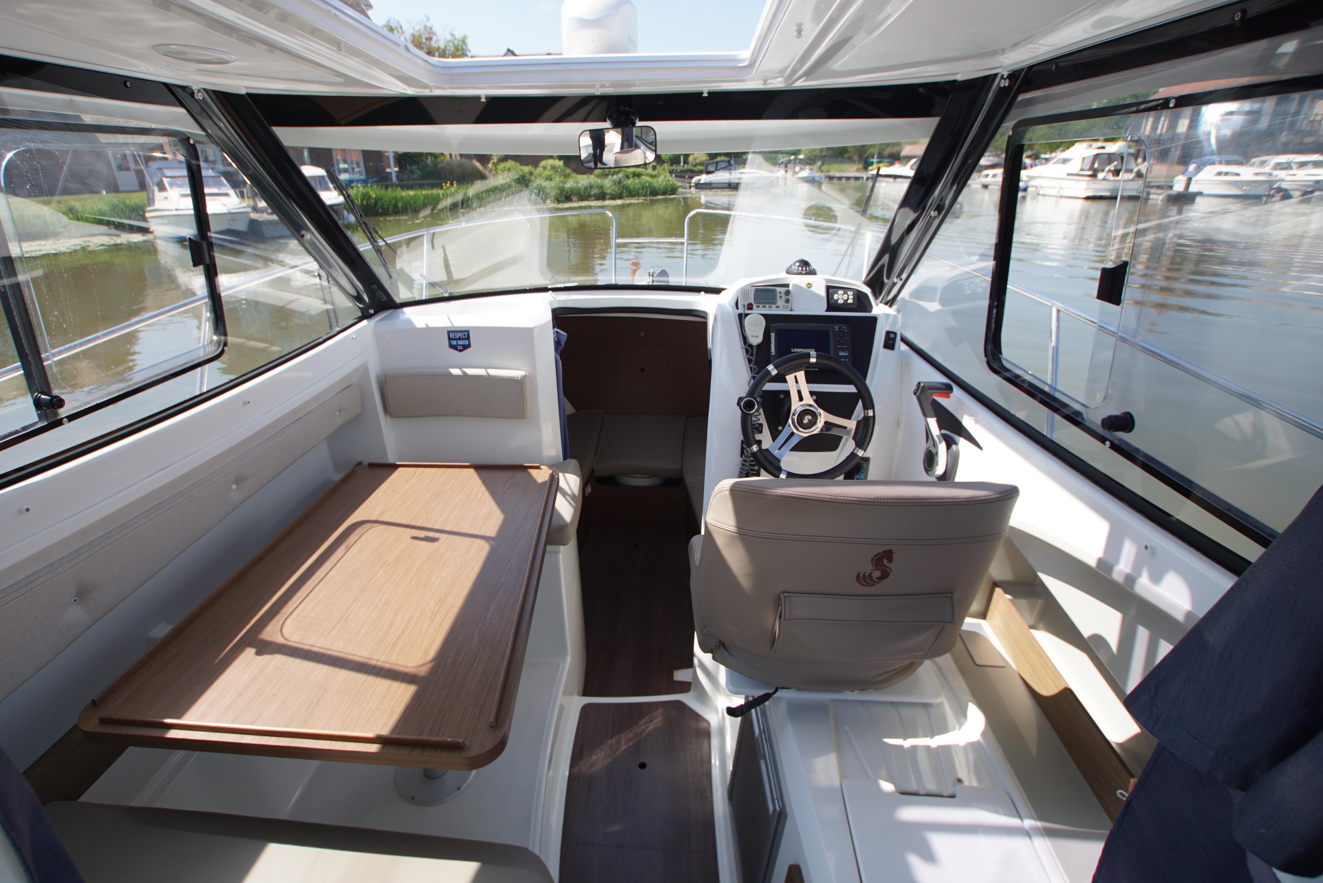 Beneteau Antares 6.80 fitted with a single Suzuki 115 engine. Equipped with U-shaped cockpit seating with sun pad conversion, VHF, Lowrance Elite 7 GPS Chartplotter, Fridge, Electric Sea Toilet, Horn and Remote spotlight. The Antares 6.80 is designed for coastal or inland use, accommodating up to seven persons on board. The cockpit and wheelhouse layouts are also great strong points of this boat, as it has been designed and thought out to give each passenger the maximum comfort. The boat has been copper-coated and has just received a polish. The boat will be supplied with a 3-month engine warranty. Viewings 7 days a week in Lincoln.