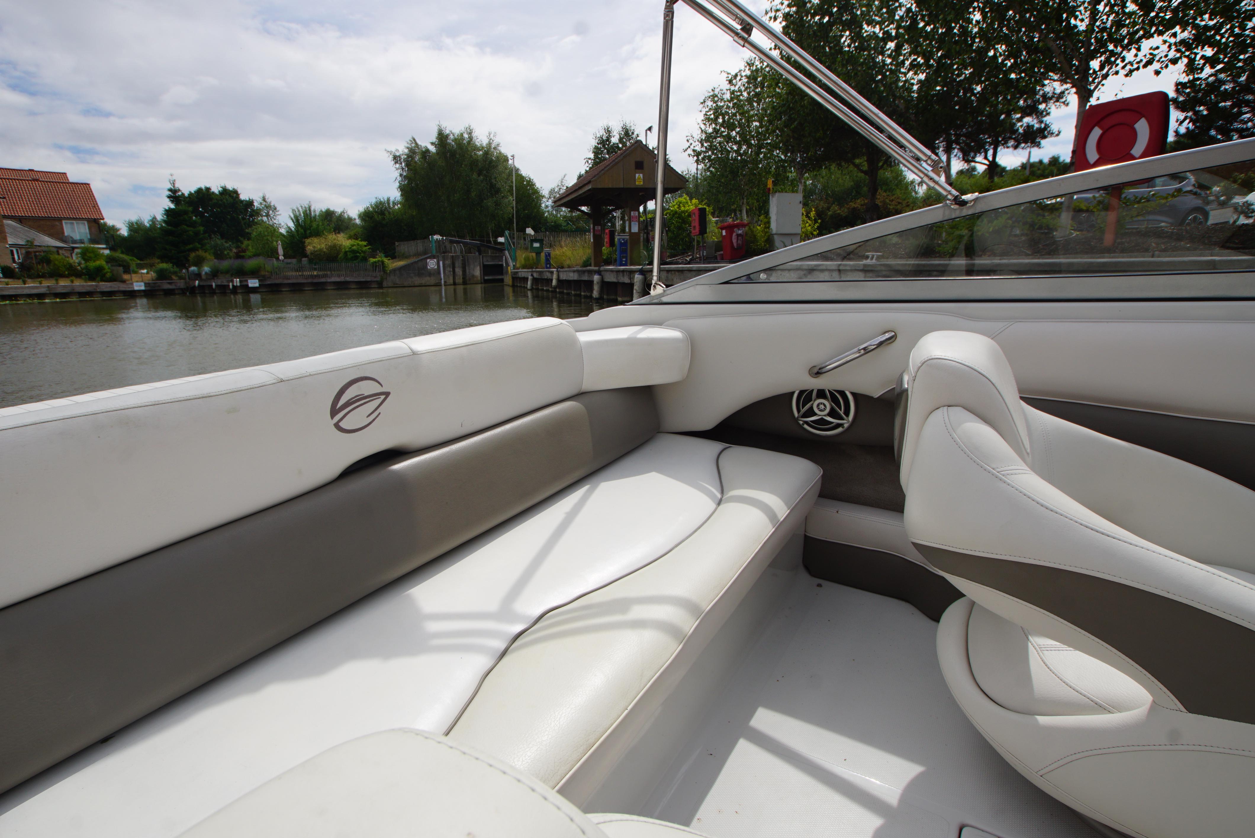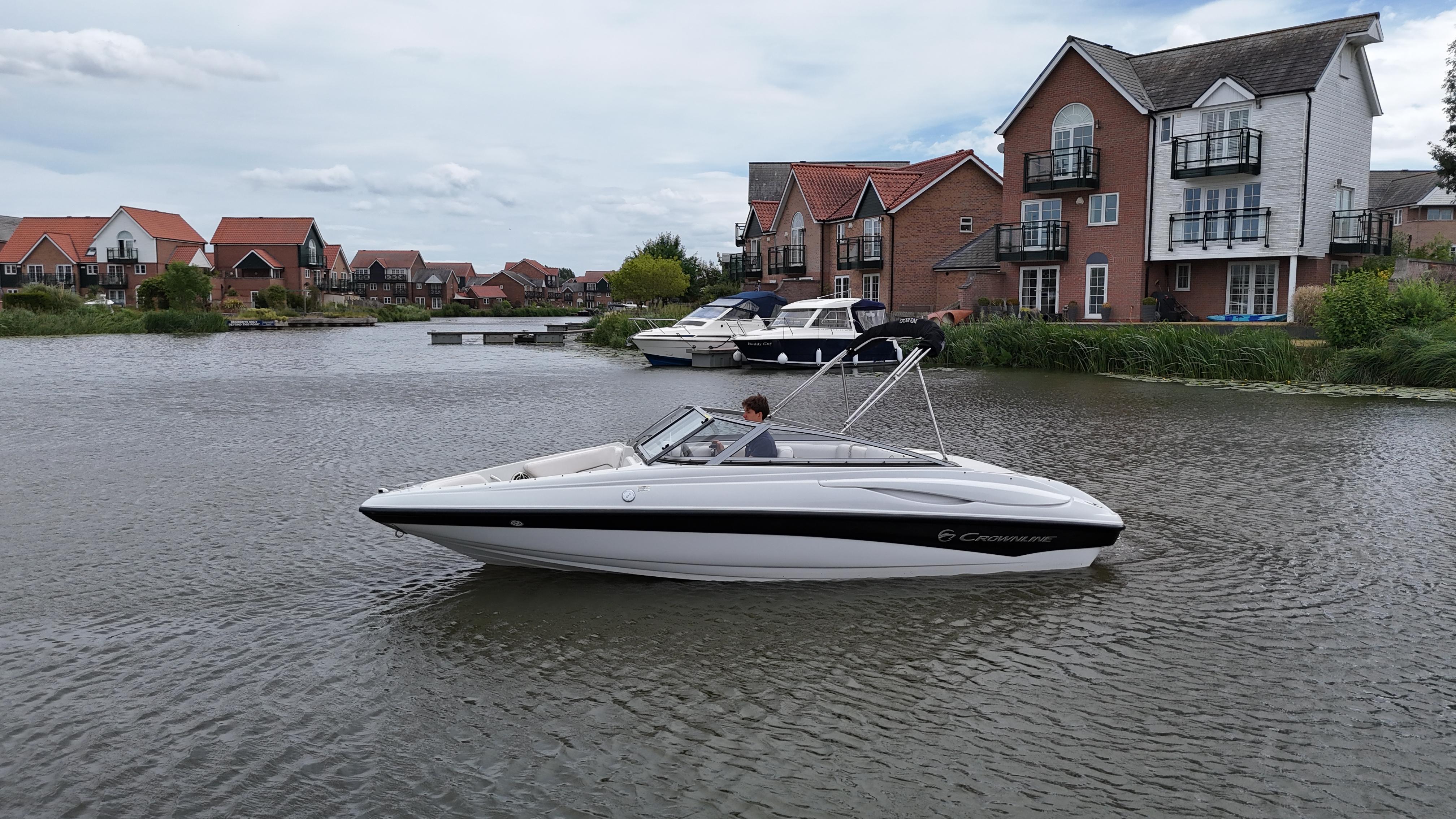2009, Crownline 185SS, powered by a 135hp Mercruiser petrol engine. The boat features engine management gauges, as well as an additional Lowrance depth and speed sounder, bimini top, waterski tow point, cool box and more…