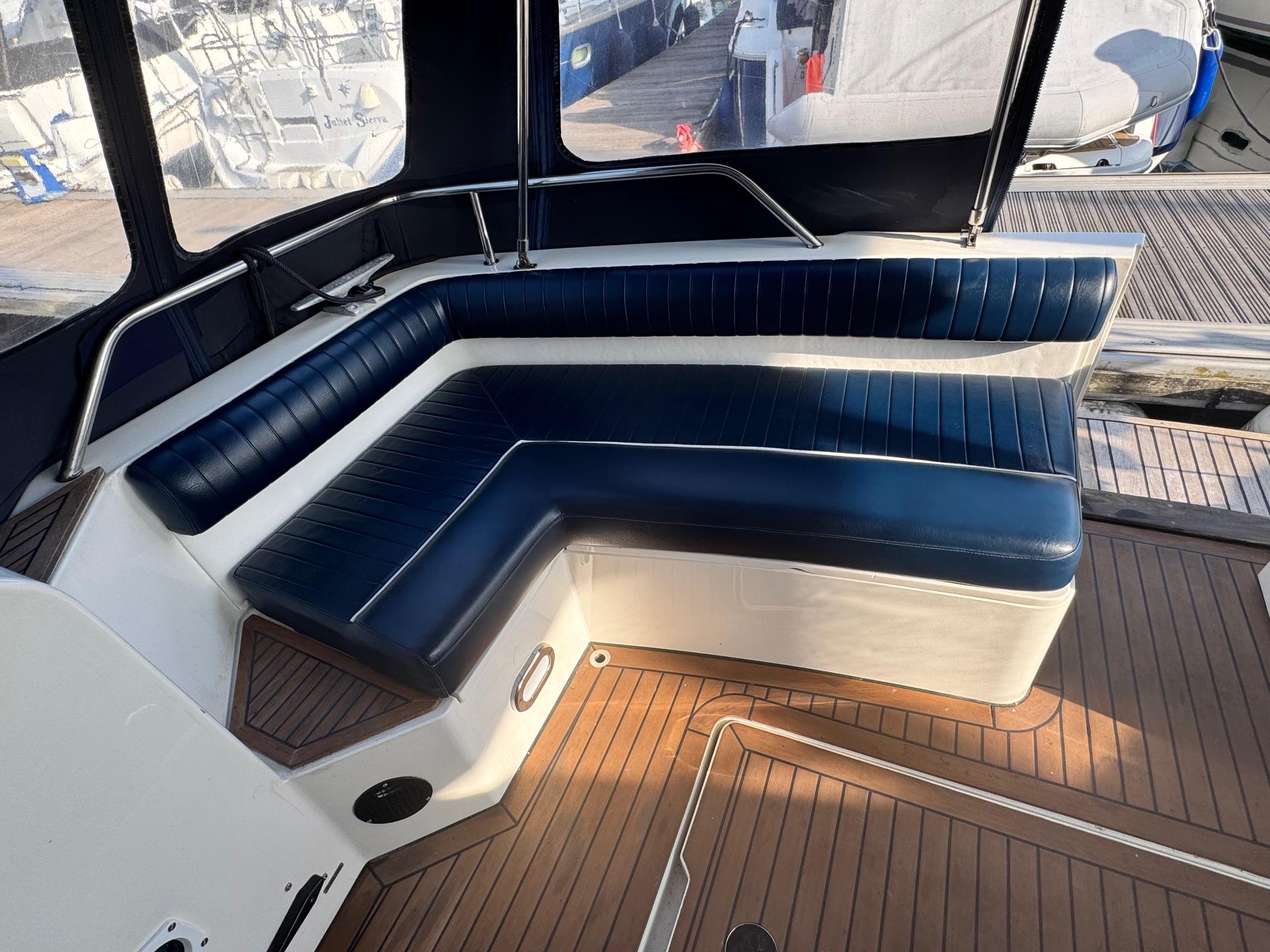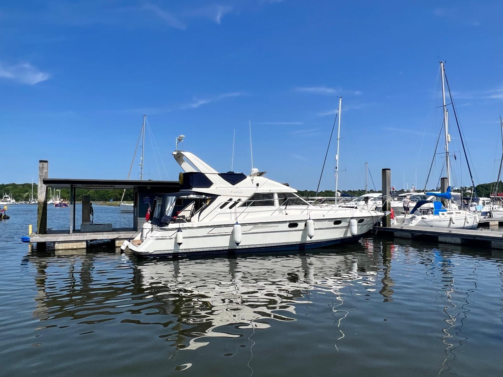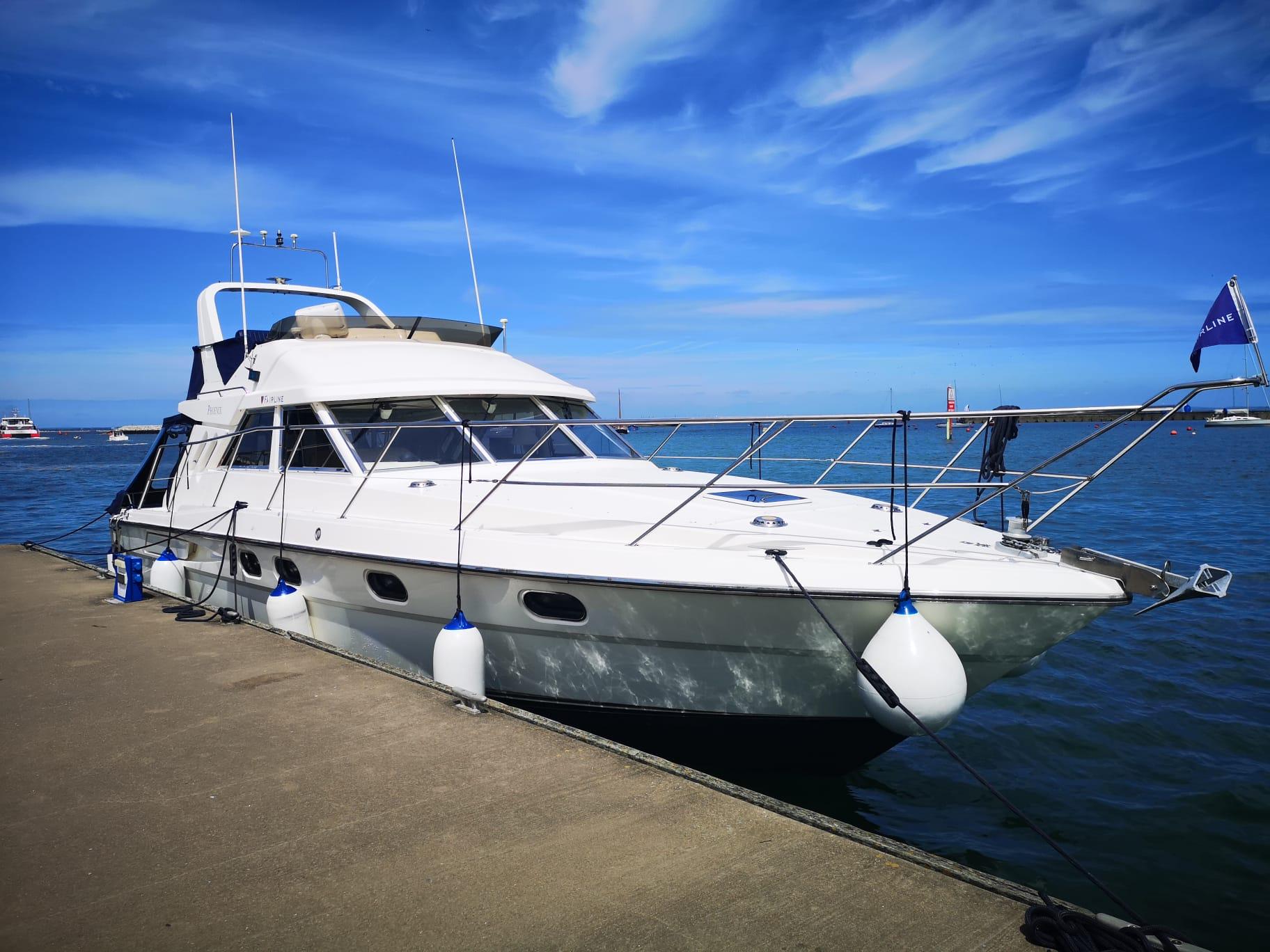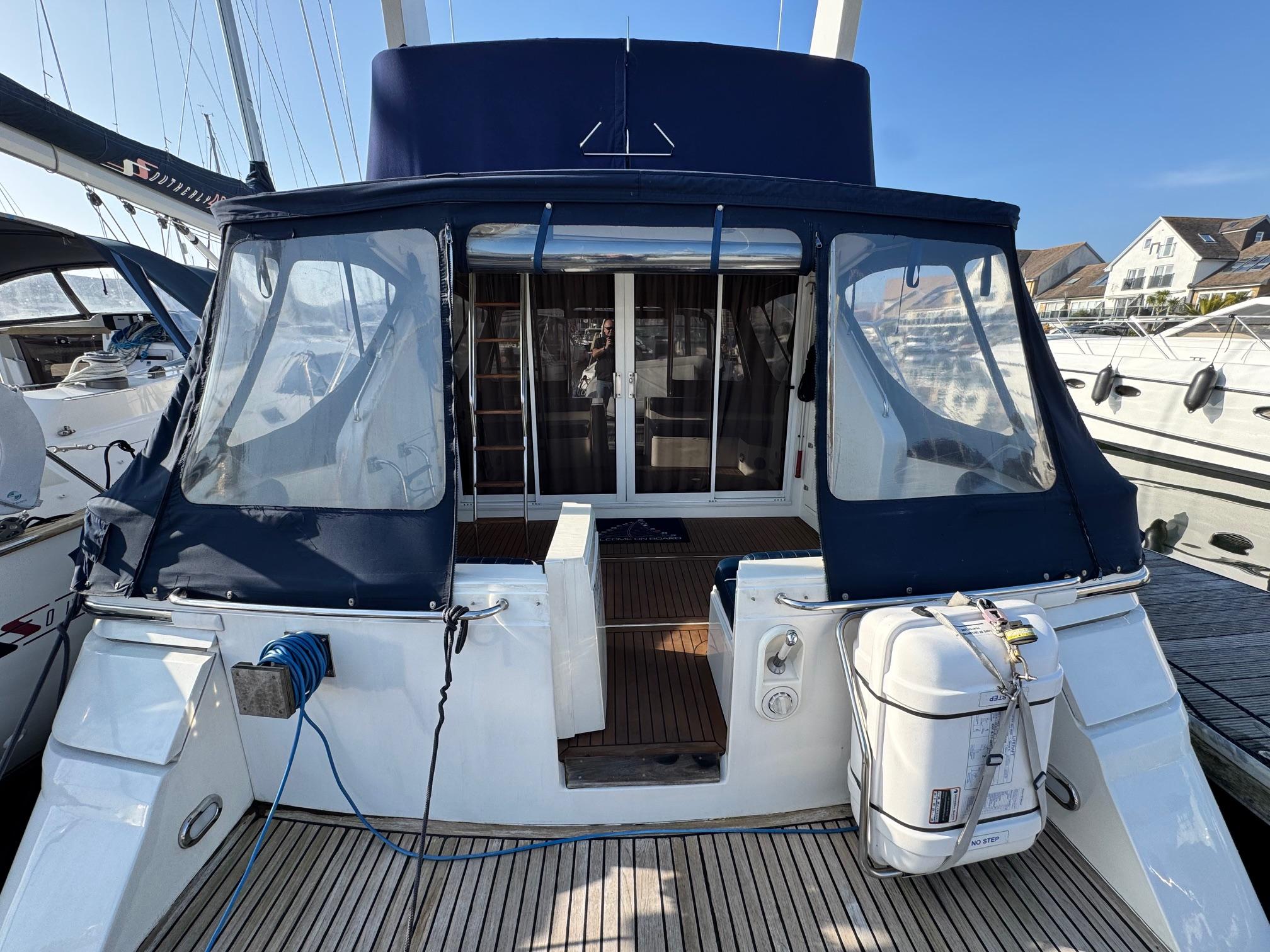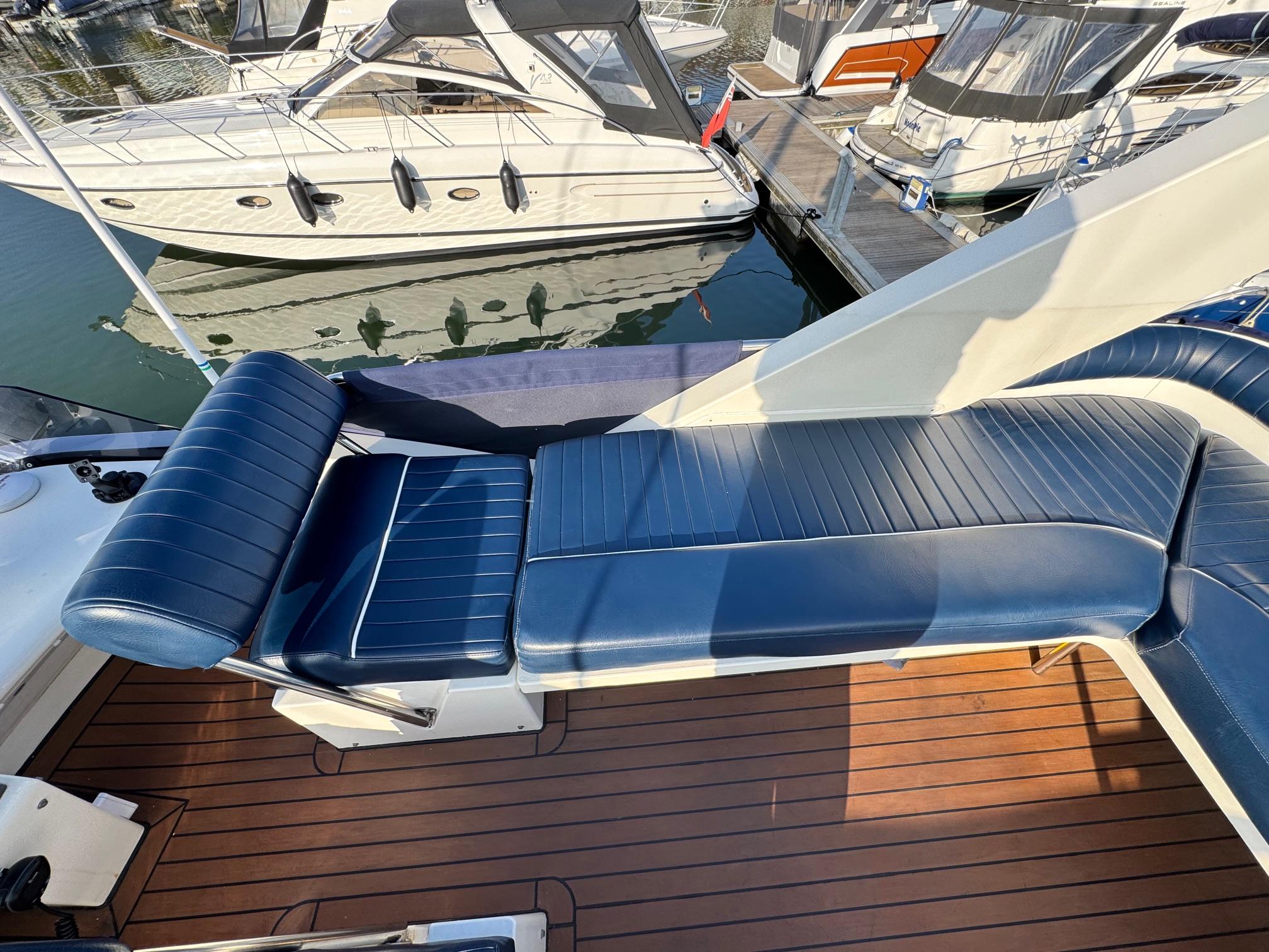 1989 Fairline 41 Sedan equipped with twin Caterpillar 3208 TA (375hp) Diesel engines. Lovingly cared for, this model by the renowned manufacturer offers a large specification that includes: Chartplotter, lower and upper helm, Radar (new in 2024) Depth Log, Compass, Autopilot, Speed Log, VHF, GPS – all repeated on flybridge. Bow and Stern Thrusters with remote control, Digital TV in lounge and master bedroom, Eberspacher heating, fridge in galley and lounge, Fusion Stereo with speakers in lounge, cockpit and flybridge, Electric hob and microwave, new flybridge Canopy, summer canopies for forward flybridge seats and instrument panel, windscreen and side window cover, new flybridge seats, new dodgers, Faux Teak flybridge floor, lower cockpit has faux teak floor, large lazarette, new seats, under seat storage, additional centre seat insert and more. Engines serviced in 2024, antifouled and new anodes applied March 2025, props burnished and hull polished Available to view via appointment only.