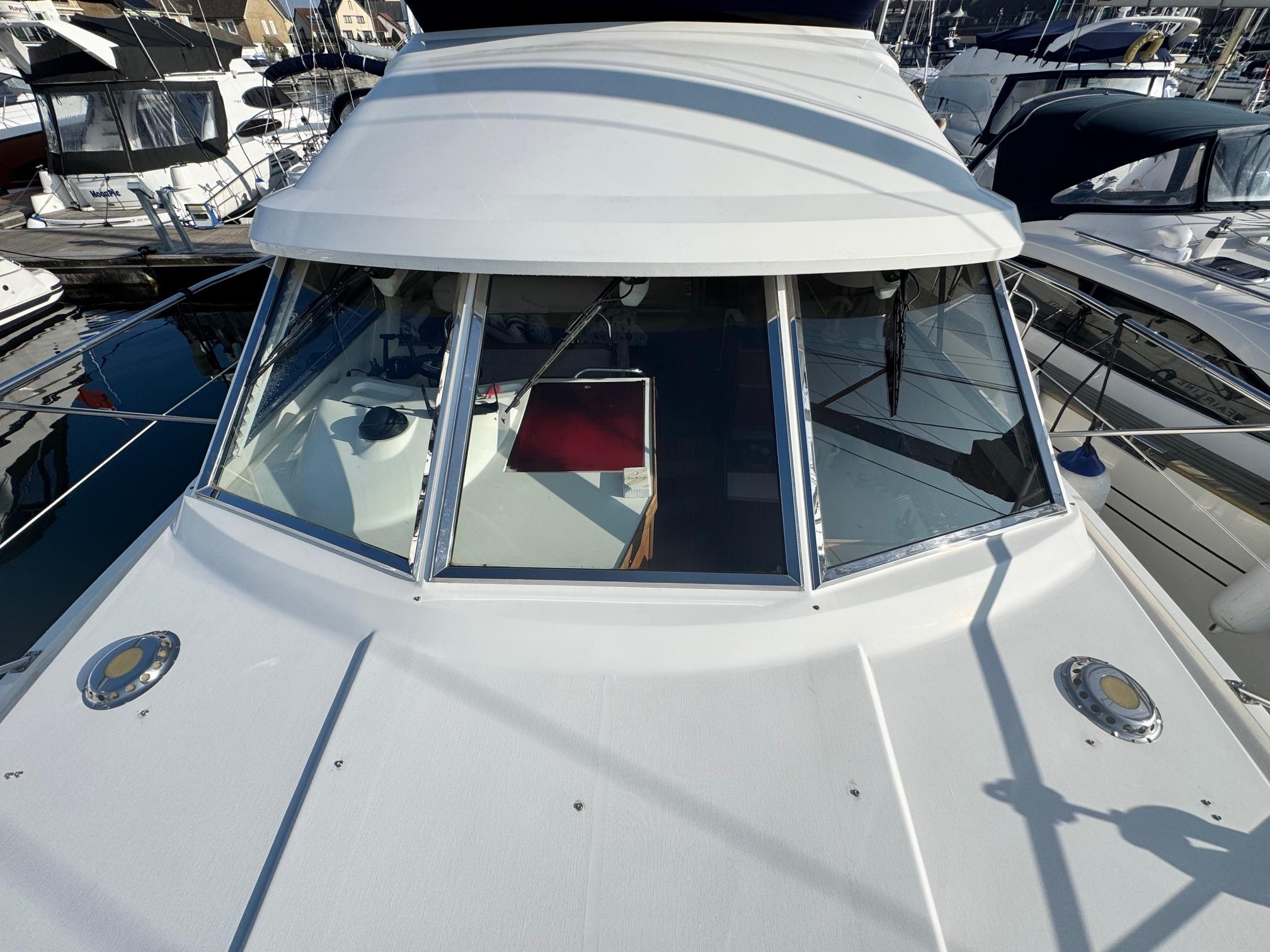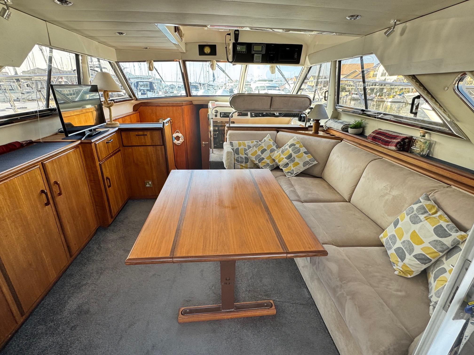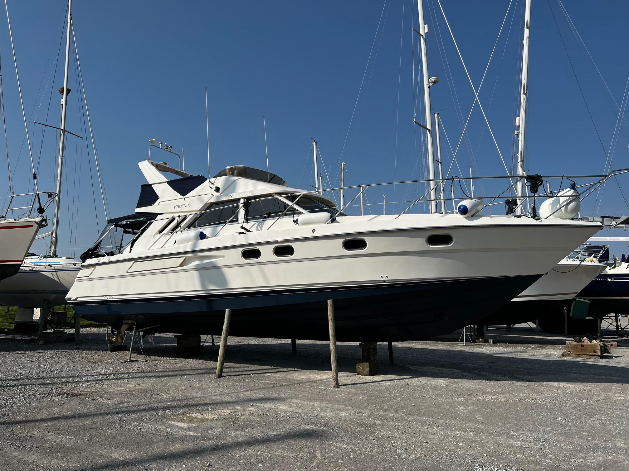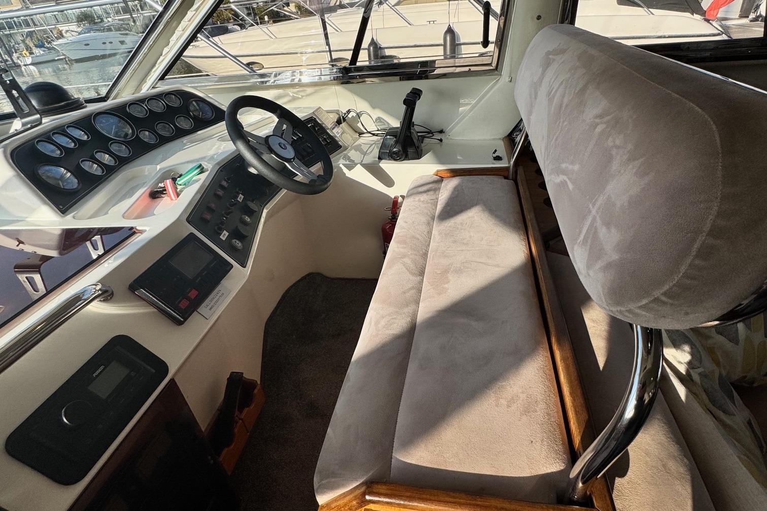 1989 Fairline 41 Sedan equipped with twin Caterpillar 3208 TA (375hp) Diesel engines. Lovingly cared for, this model by the renowned manufacturer offers a large specification that includes: Chartplotter, lower and upper helm, Radar (new in 2024) Depth Log, Compass, Autopilot, Speed Log, VHF, GPS – all repeated on flybridge. Bow and Stern Thrusters with remote control, Digital TV in lounge and master bedroom, Eberspacher heating, fridge in galley and lounge, Fusion Stereo with speakers in lounge, cockpit and flybridge, Electric hob and microwave, new flybridge Canopy, summer canopies for forward flybridge seats and instrument panel, windscreen and side window cover, new flybridge seats, new dodgers, Faux Teak flybridge floor, lower cockpit has faux teak floor, large lazarette, new seats, under seat storage, additional centre seat insert and more. Engines serviced in 2024, antifouled and new anodes applied March 2025, props burnished and hull polished Available to view via appointment only.