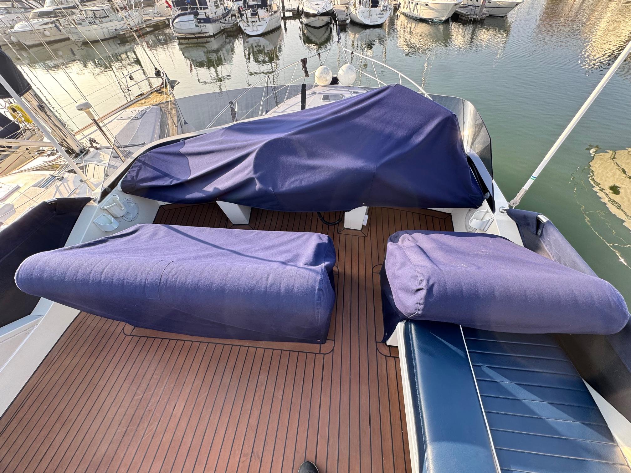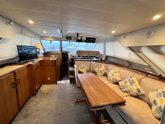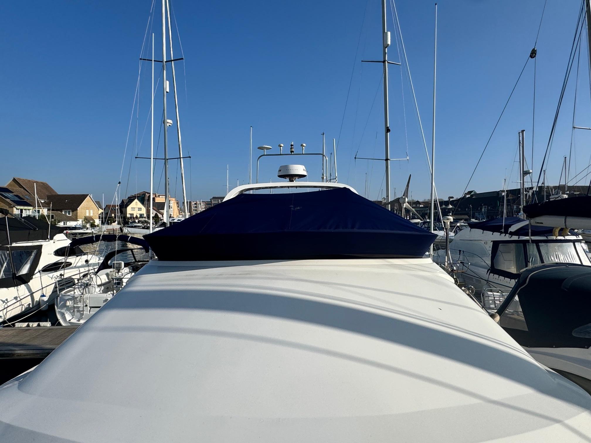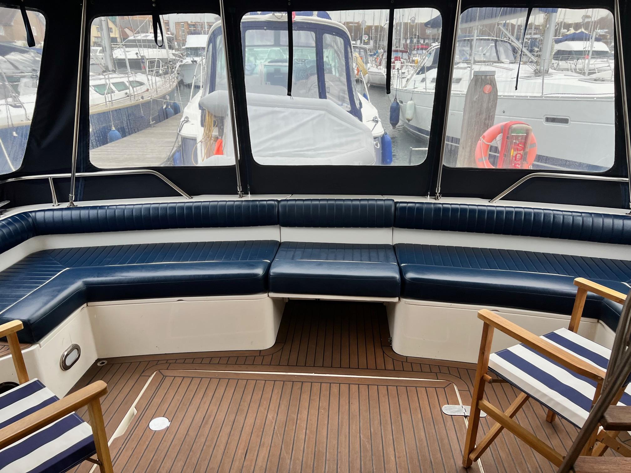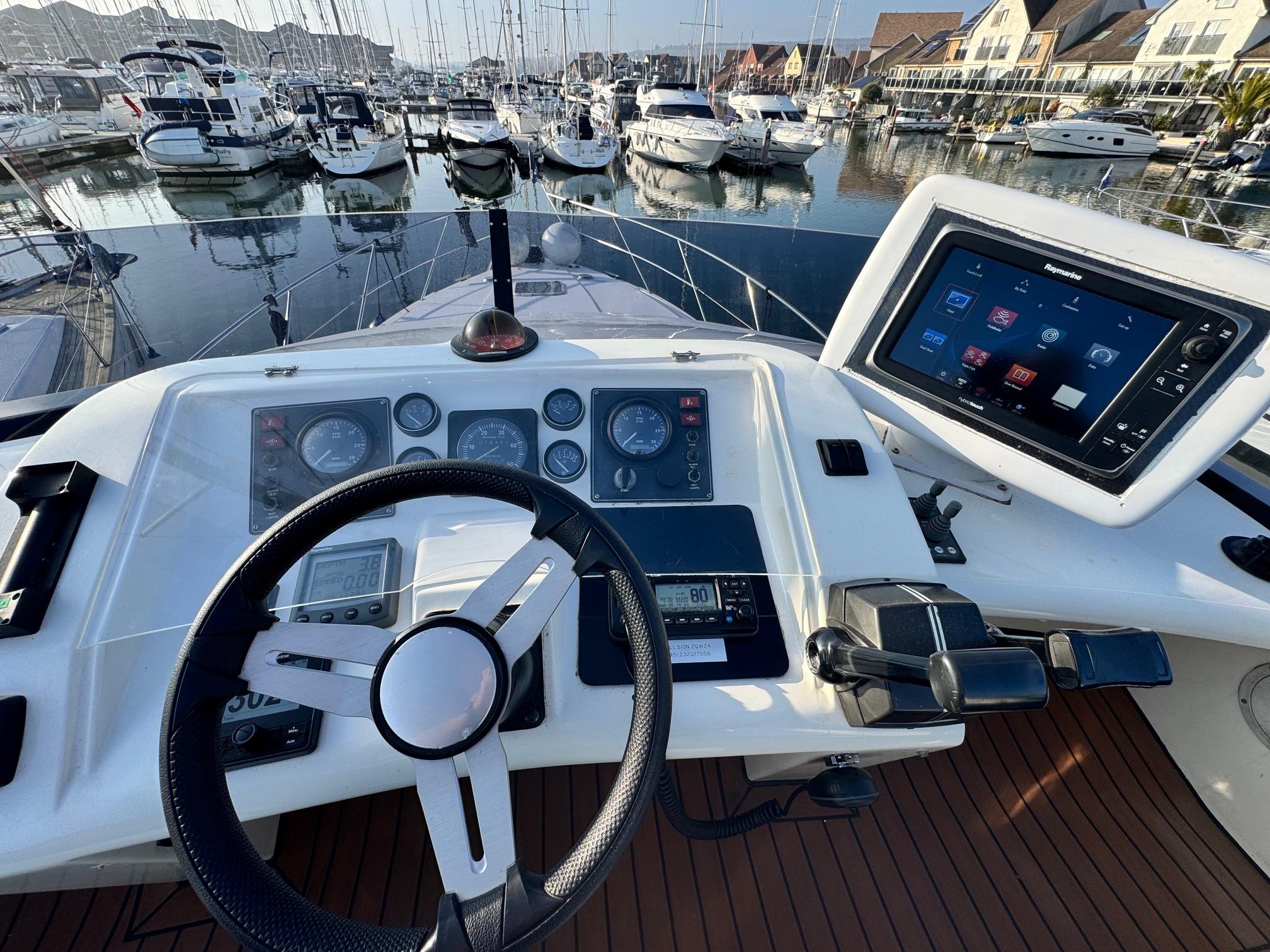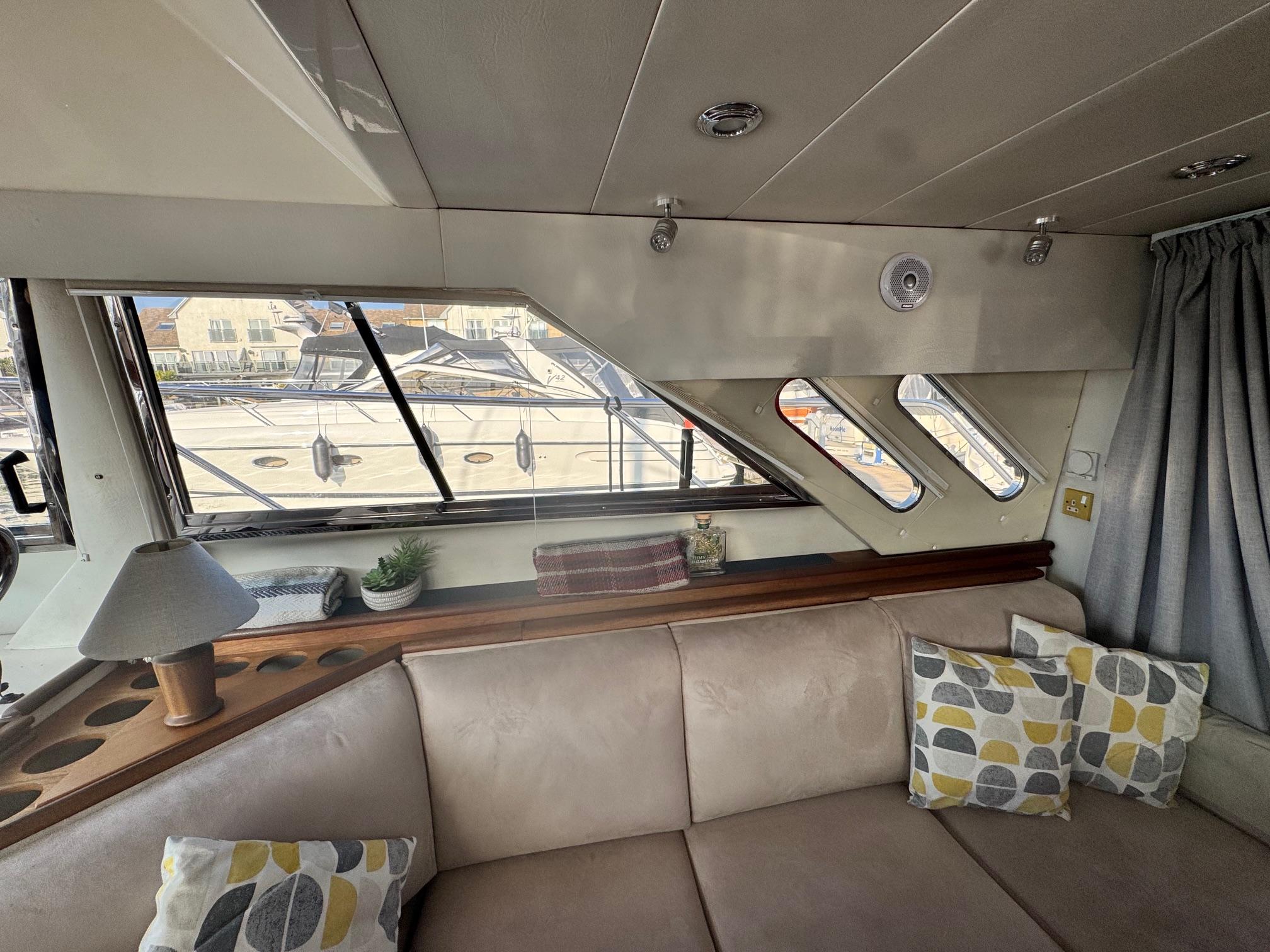 1989 Fairline 41 Sedan equipped with twin Caterpillar 3208 TA (375hp) Diesel engines. Lovingly cared for, this model by the renowned manufacturer offers a large specification that includes: Chartplotter, lower and upper helm, Radar (new in 2024) Depth Log, Compass, Autopilot, Speed Log, VHF, GPS – all repeated on flybridge. Bow and Stern Thrusters with remote control, Digital TV in lounge and master bedroom, Eberspacher heating, fridge in galley and lounge, Fusion Stereo with speakers in lounge, cockpit and flybridge, Electric hob and microwave, new flybridge Canopy, summer canopies for forward flybridge seats and instrument panel, windscreen and side window cover, new flybridge seats, new dodgers, Faux Teak flybridge floor, lower cockpit has faux teak floor, large lazarette, new seats, under seat storage, additional centre seat insert and more. Engines serviced in 2024, antifouled and new anodes applied March 2025, props burnished and hull polished Available to view via appointment only.