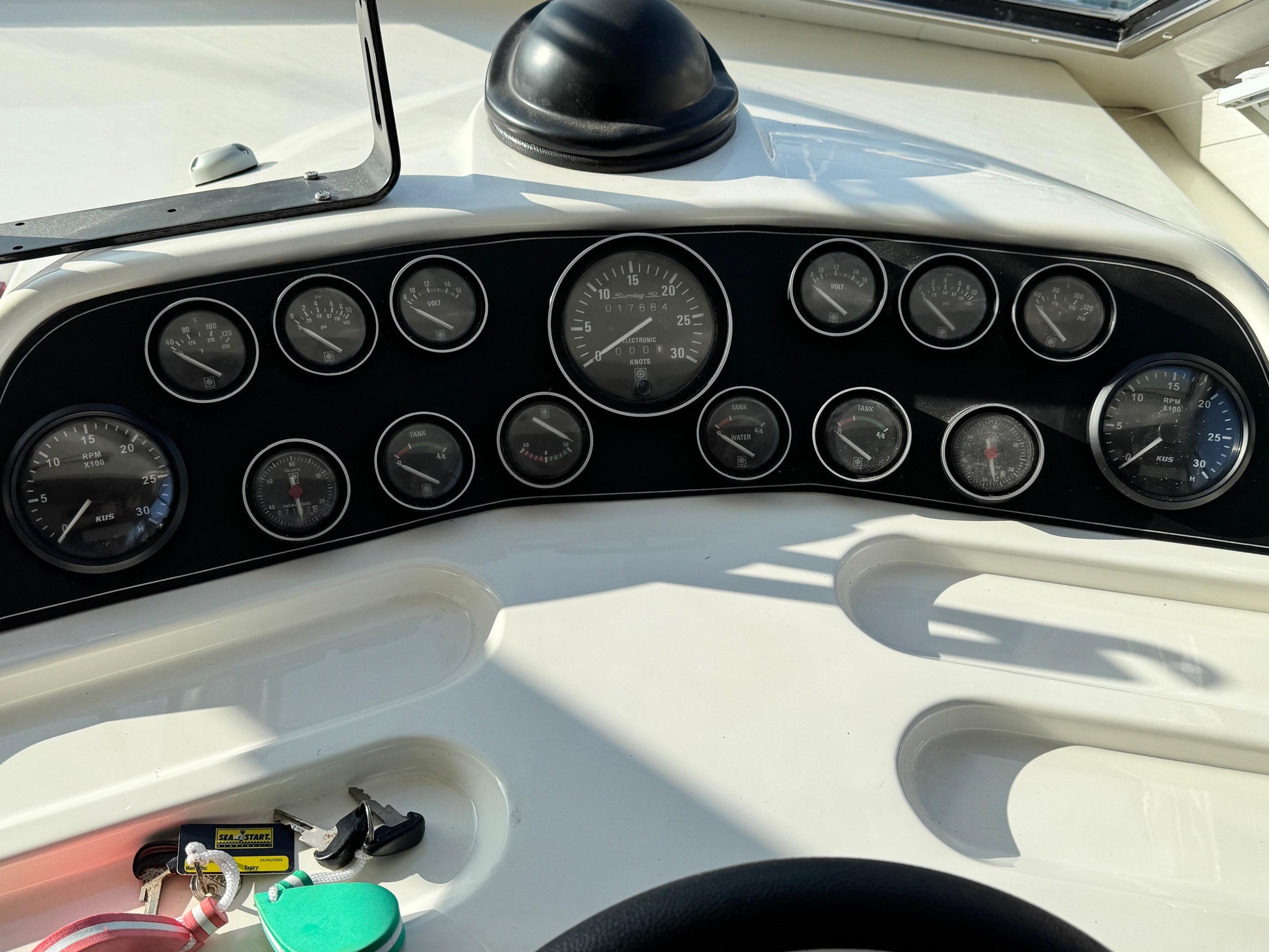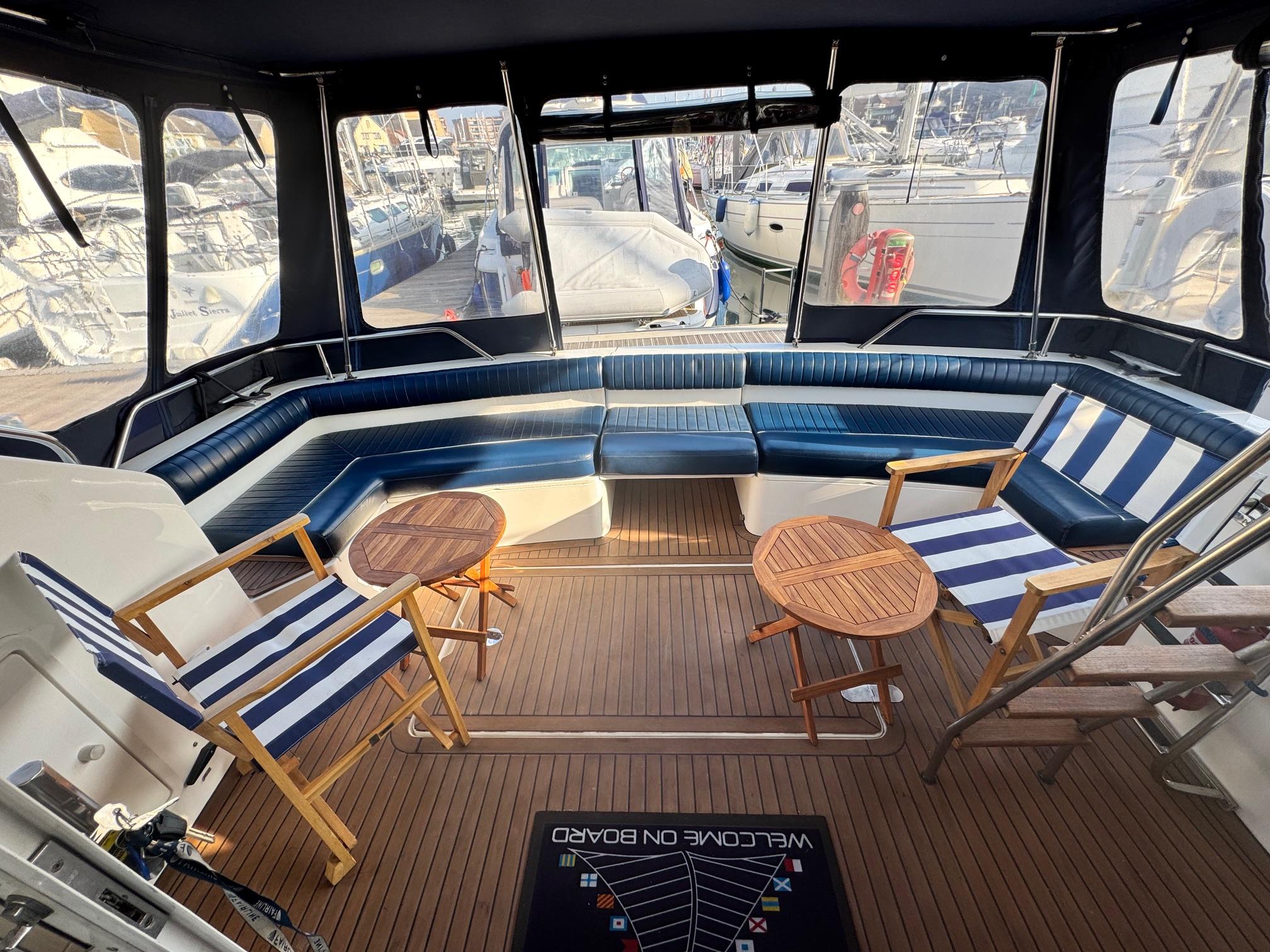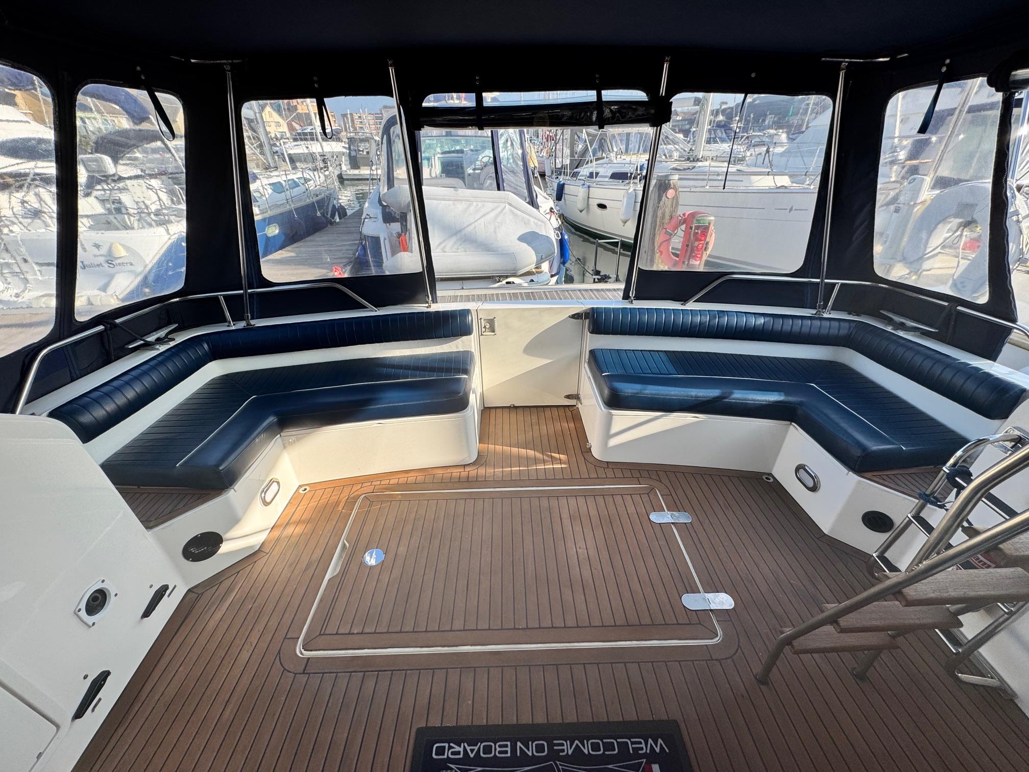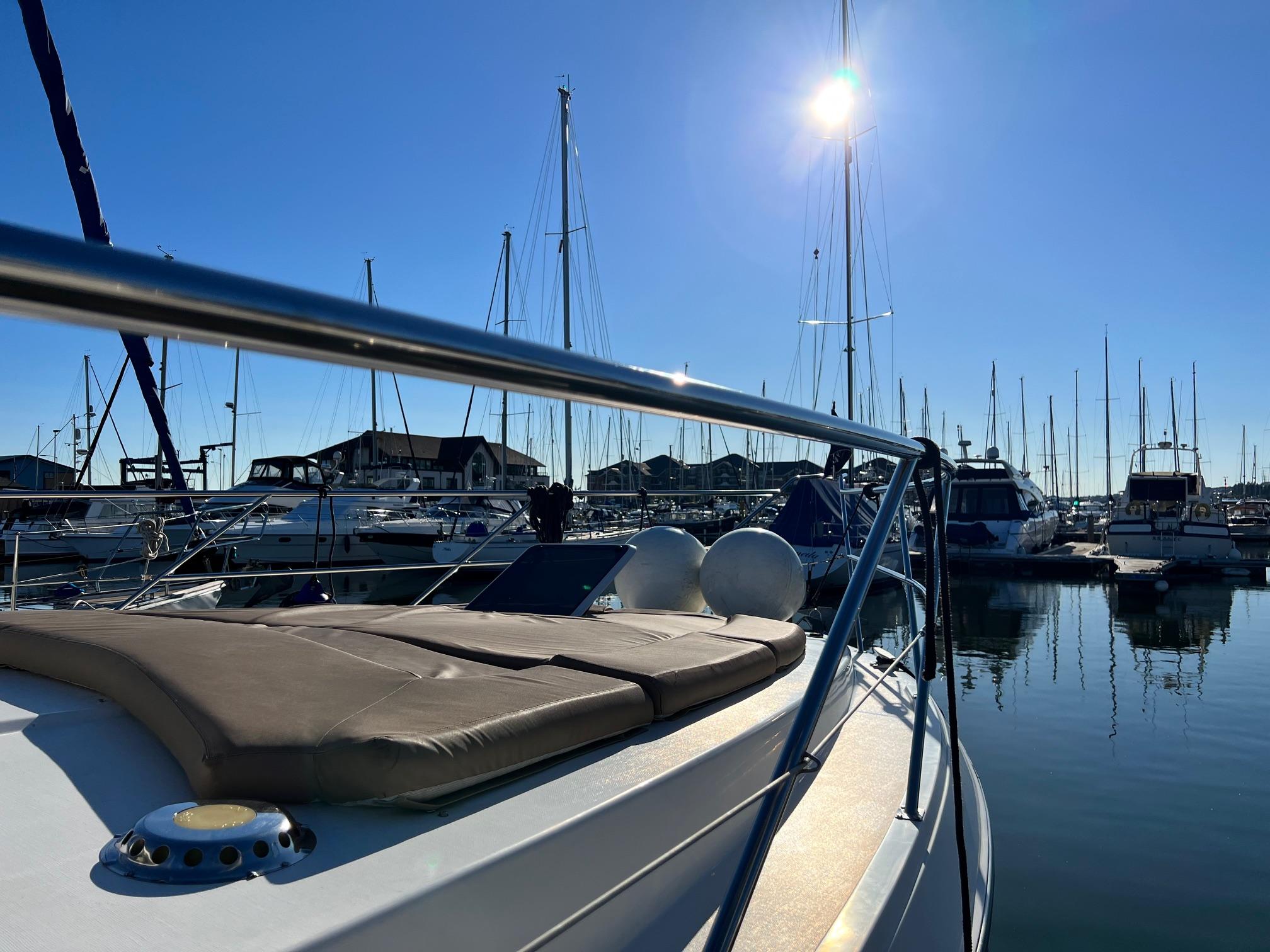 1989 Fairline 41 Sedan equipped with twin Caterpillar 3208 TA (375hp) Diesel engines. Lovingly cared for, this model by the renowned manufacturer offers a large specification that includes: Chartplotter, lower and upper helm, Radar (new in 2024) Depth Log, Compass, Autopilot, Speed Log, VHF, GPS – all repeated on flybridge. Bow and Stern Thrusters with remote control, Digital TV in lounge and master bedroom, Eberspacher heating, fridge in galley and lounge, Fusion Stereo with speakers in lounge, cockpit and flybridge, Electric hob and microwave, new flybridge Canopy, summer canopies for forward flybridge seats and instrument panel, windscreen and side window cover, new flybridge seats, new dodgers, Faux Teak flybridge floor, lower cockpit has faux teak floor, large lazarette, new seats, under seat storage, additional centre seat insert and more. Engines serviced in 2024, antifouled and new anodes applied March 2025, props burnished and hull polished Available to view via appointment only.