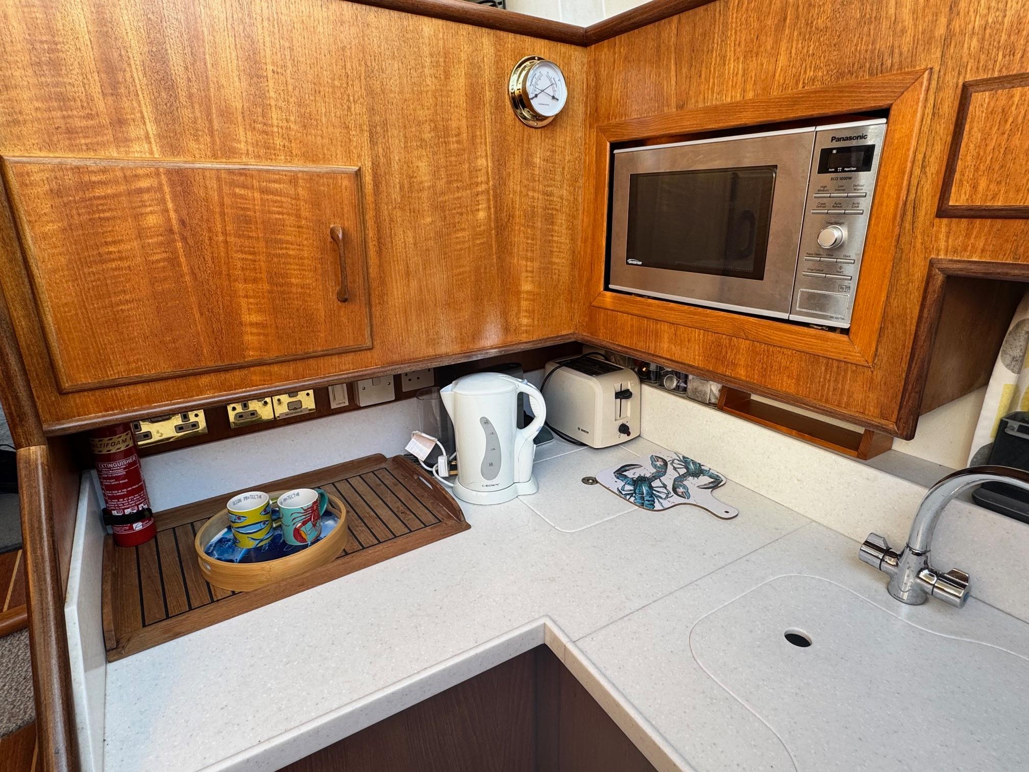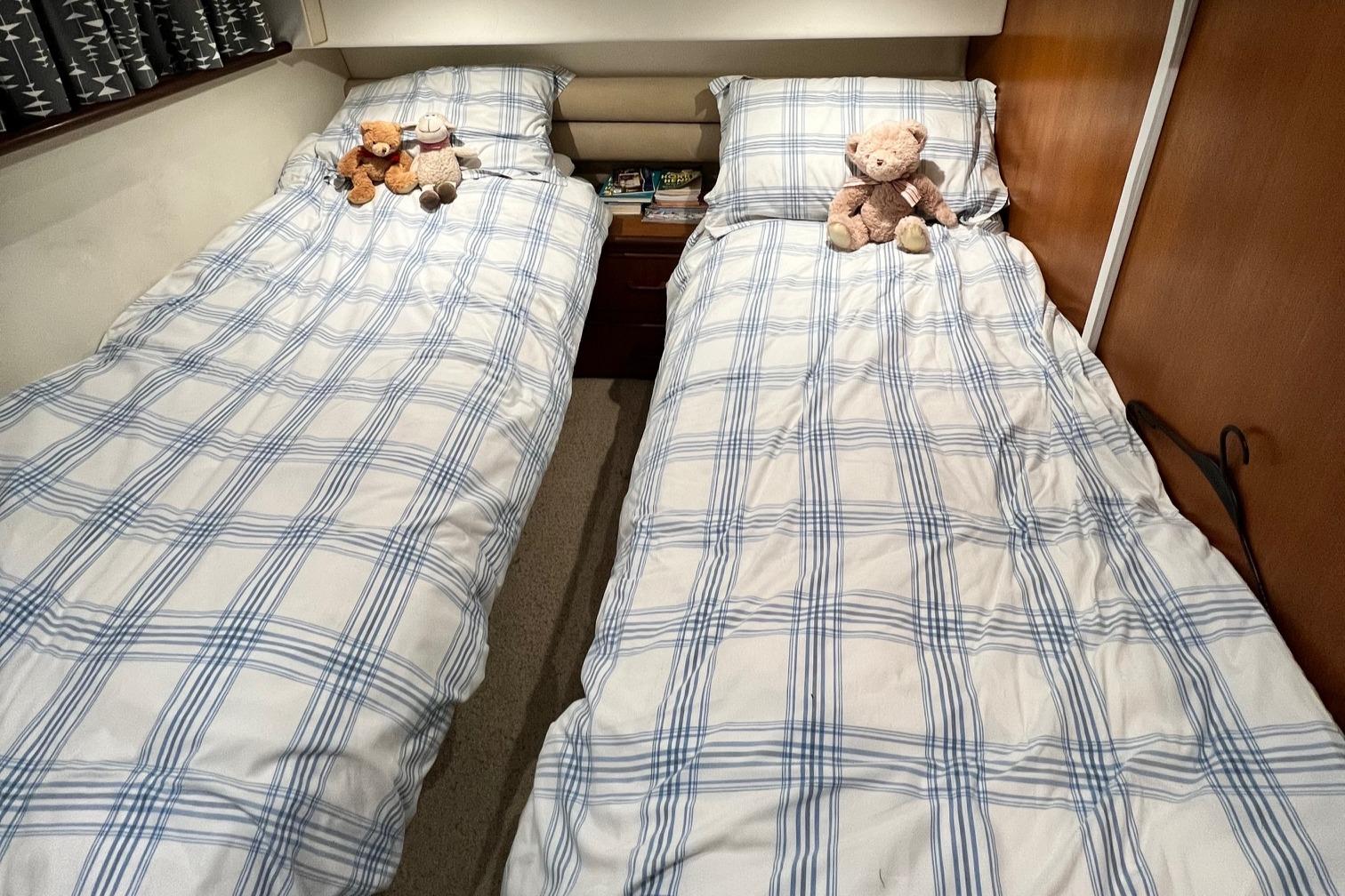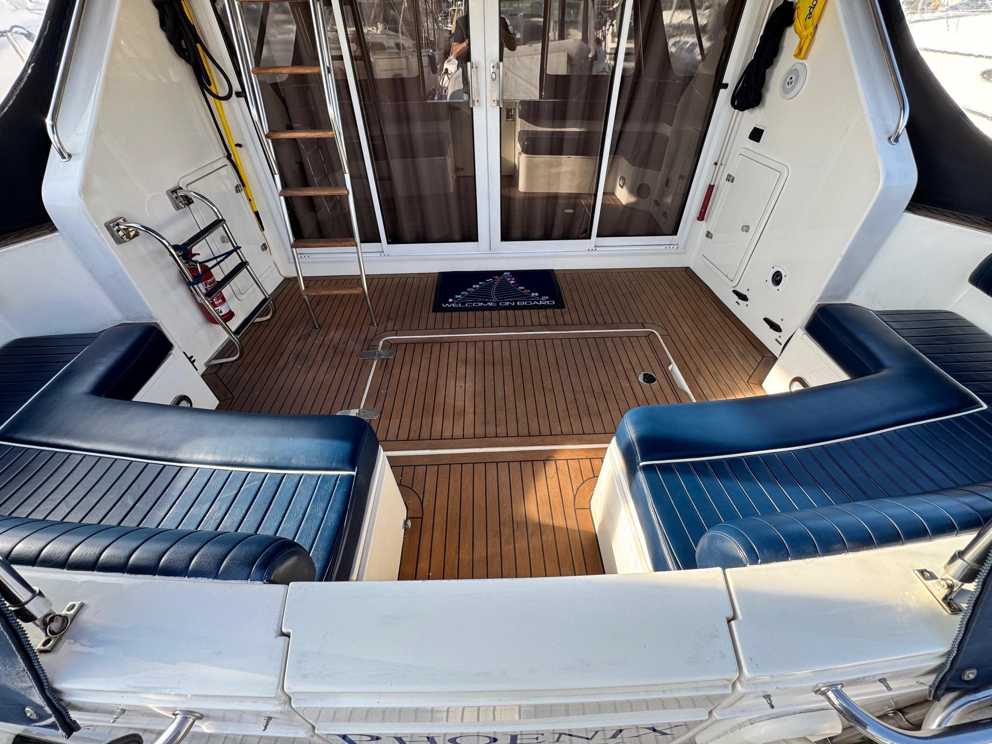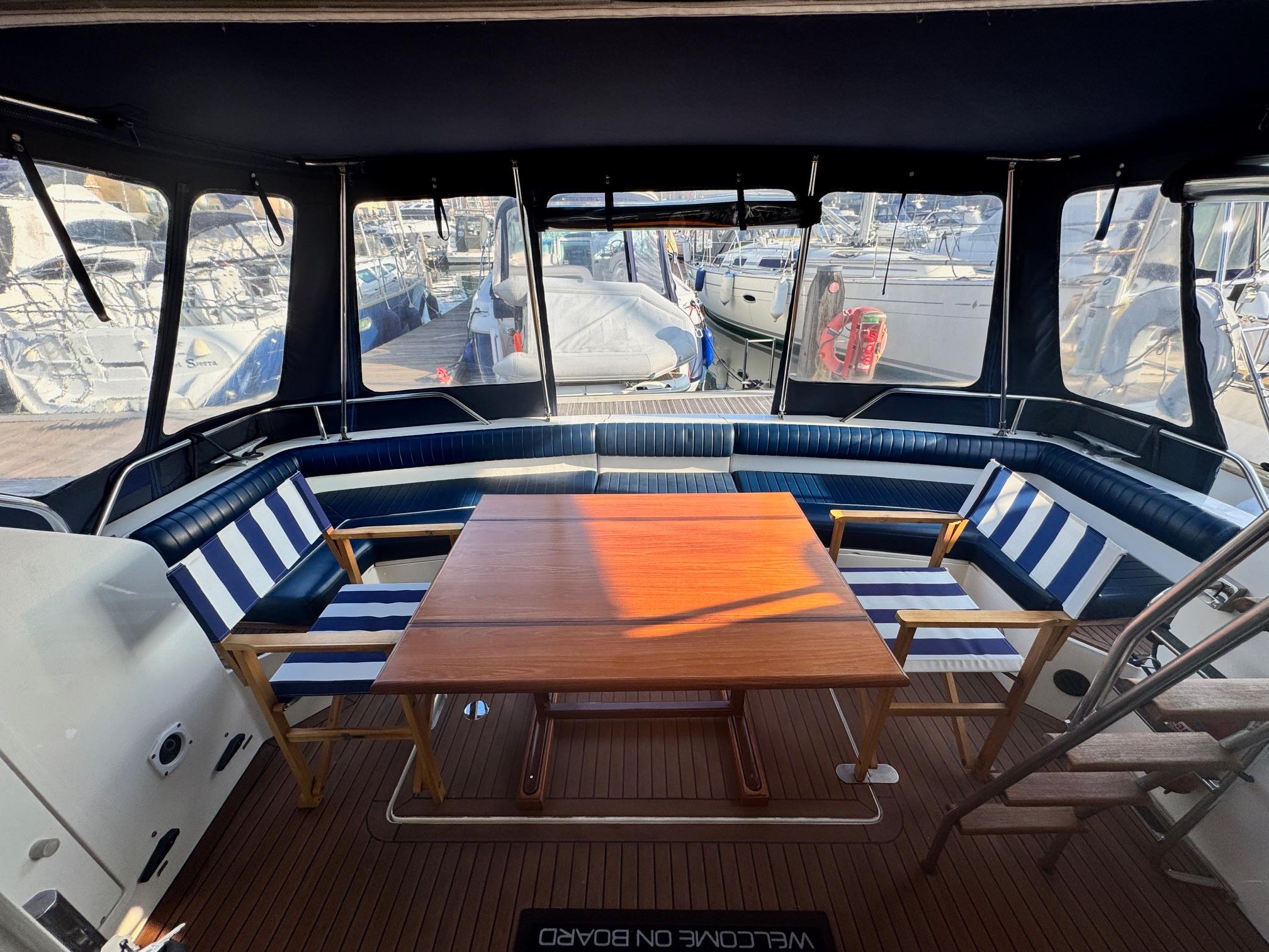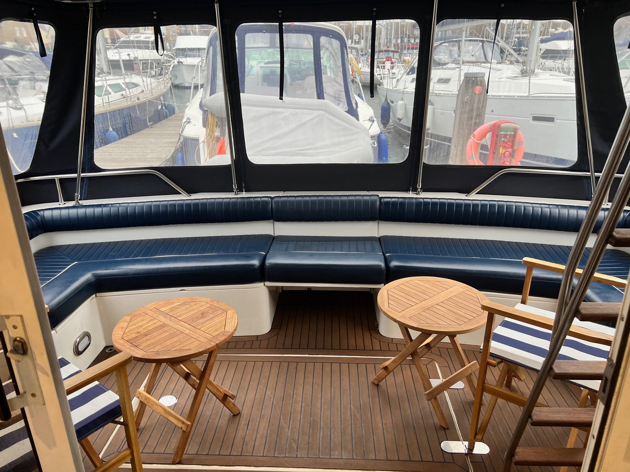 1989 Fairline 41 Sedan equipped with twin Caterpillar 3208 TA (375hp) Diesel engines. Lovingly cared for, this model by the renowned manufacturer offers a large specification that includes: Chartplotter, lower and upper helm, Radar (new in 2024) Depth Log, Compass, Autopilot, Speed Log, VHF, GPS – all repeated on flybridge. Bow and Stern Thrusters with remote control, Digital TV in lounge and master bedroom, Eberspacher heating, fridge in galley and lounge, Fusion Stereo with speakers in lounge, cockpit and flybridge, Electric hob and microwave, new flybridge Canopy, summer canopies for forward flybridge seats and instrument panel, windscreen and side window cover, new flybridge seats, new dodgers, Faux Teak flybridge floor, lower cockpit has faux teak floor, large lazarette, new seats, under seat storage, additional centre seat insert and more. Engines serviced in 2024, antifouled and new anodes applied March 2025, props burnished and hull polished Available to view via appointment only.