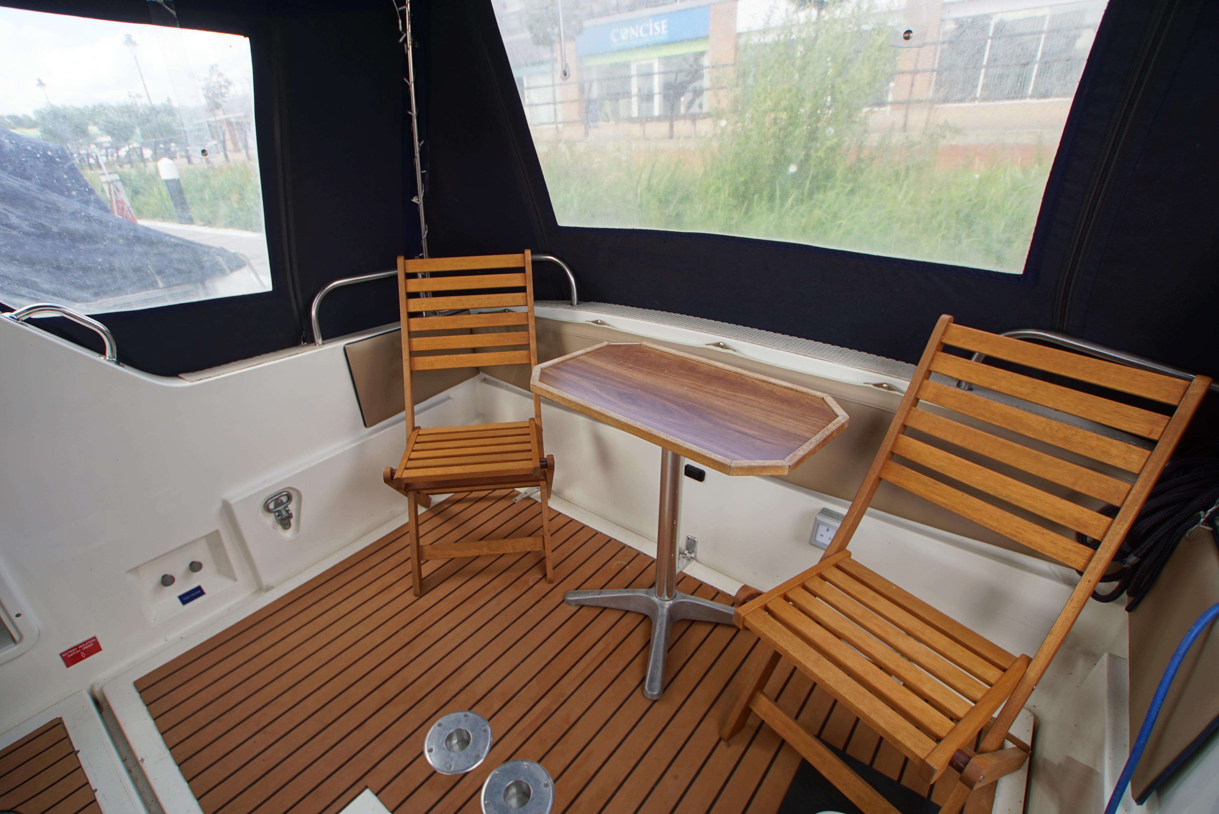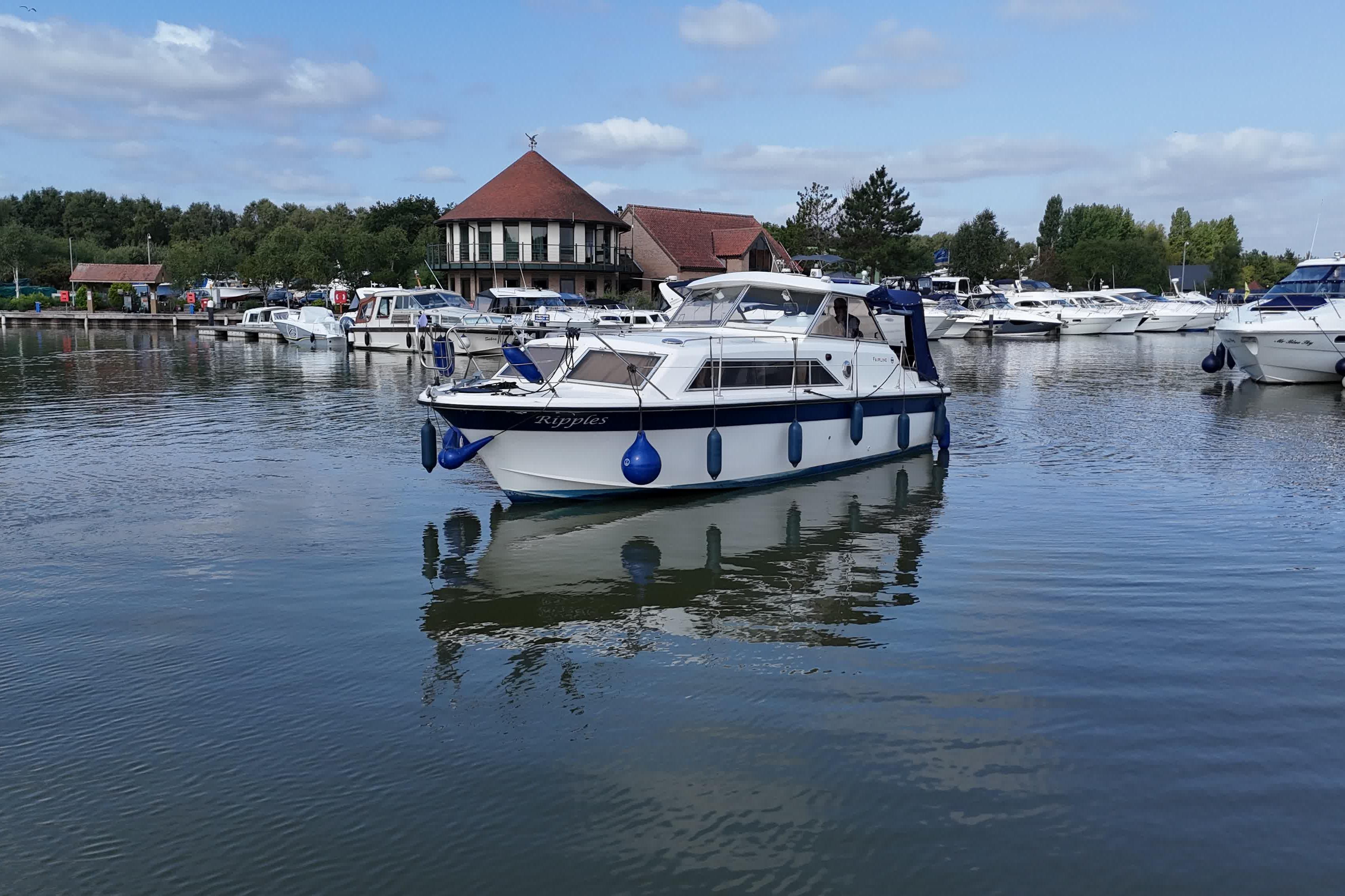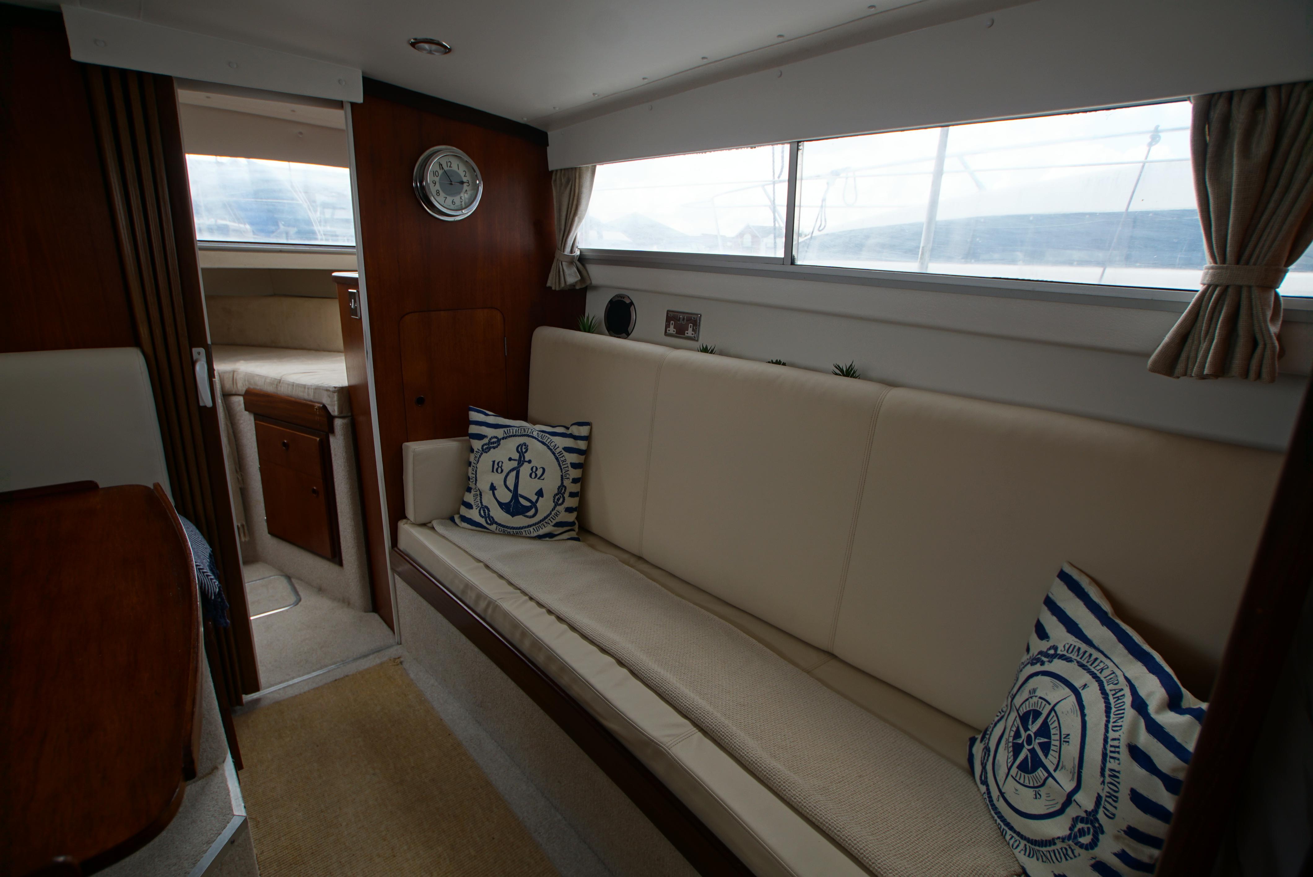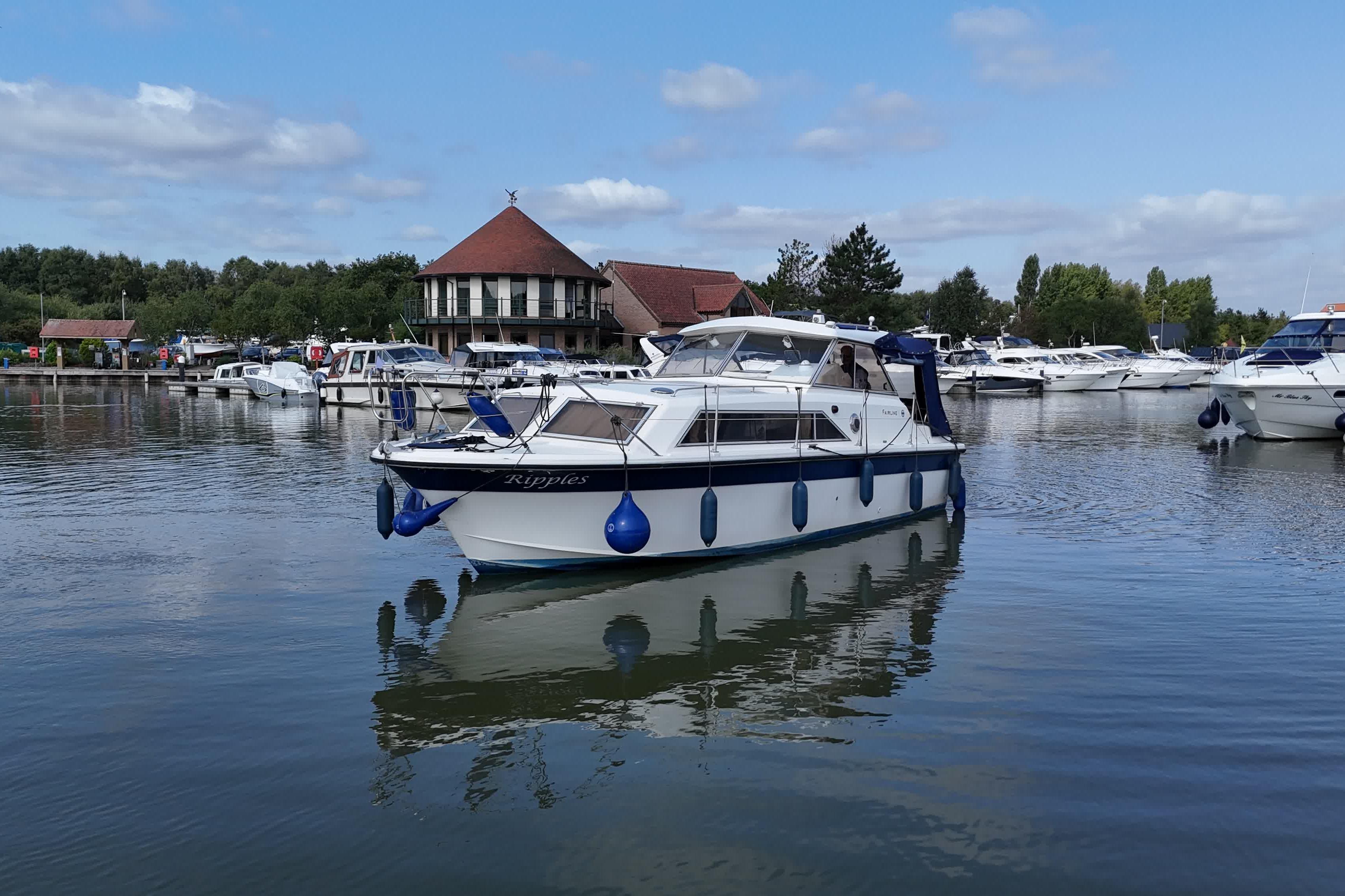 1983 Fairline Mirage 29 with twin Volvo Penta 145A petrol engines. Very well presented example of this popular model from the British marque. The cockpit is partially covered with a GRP hardtop and with a canopy surround in place to fully enclose the area it doesn’t compromise the usability in poor weather. The cockpit upholstery has been replaced in Silvertex fabric for a more modern look and cockpit floor finished in synthetic teak. The helm position is well laid out and gives all crucial engine information as houses a Garmin plotter and Trim tab control. The interior is very well appointed with many amenities including: Microwave (replaced 2021) inverter (Fitted 2021) Fridge (replaced 2021) Calorifier and immersion for hot water, electric heater in saloon and more. Available to view 7 days a week at Burton Waters Boat Sales in Lincoln, Boat Safety certificate valid until February 2026