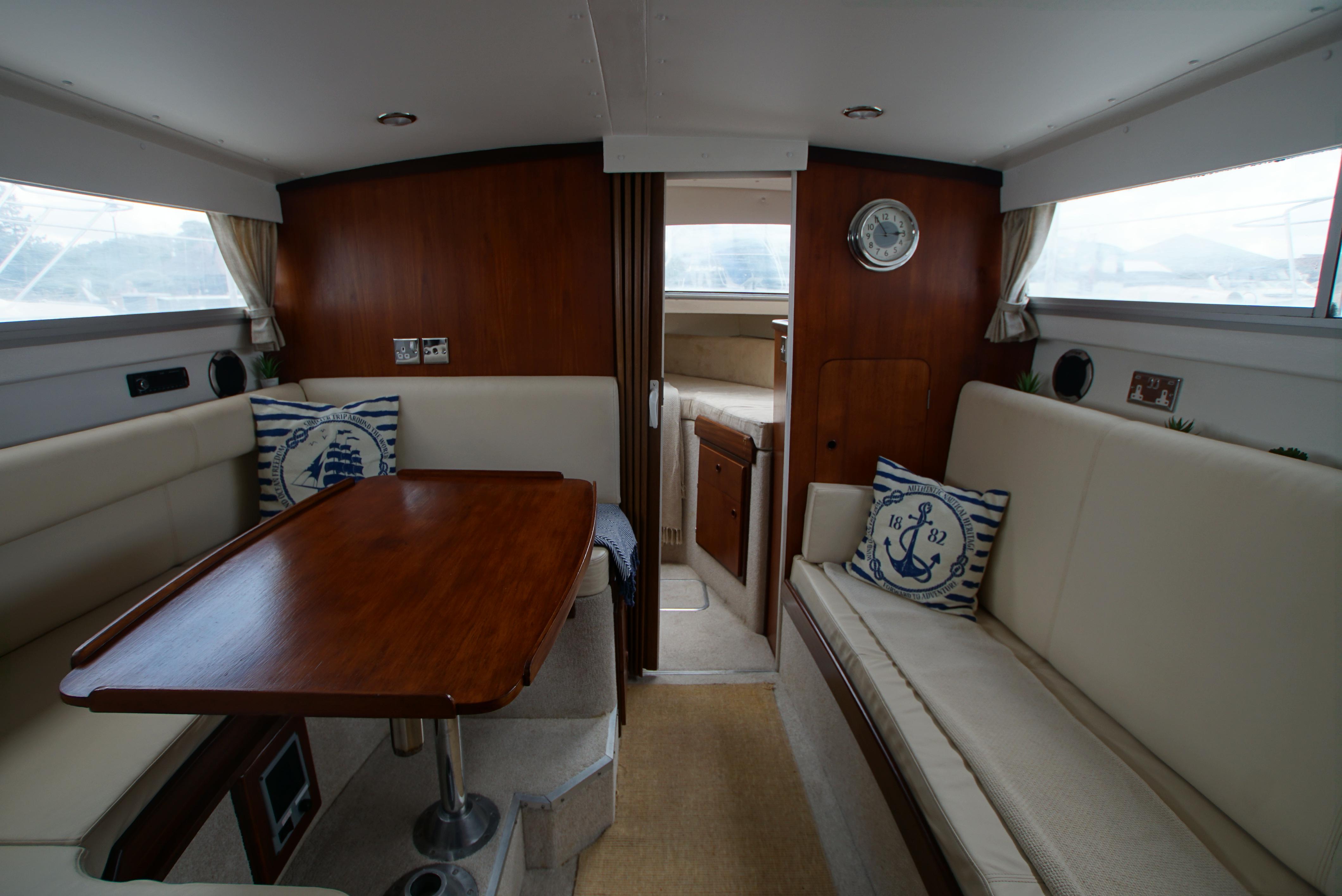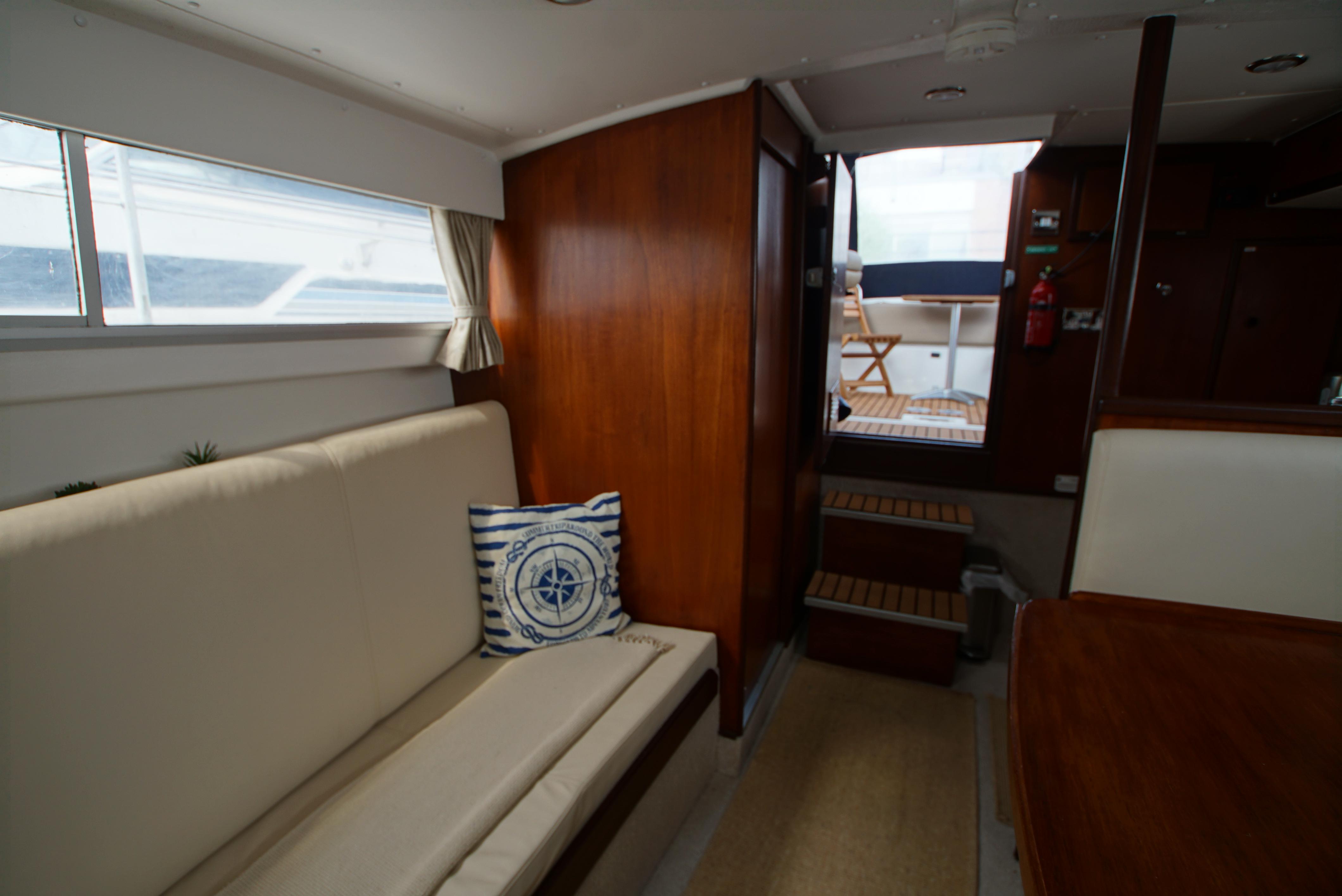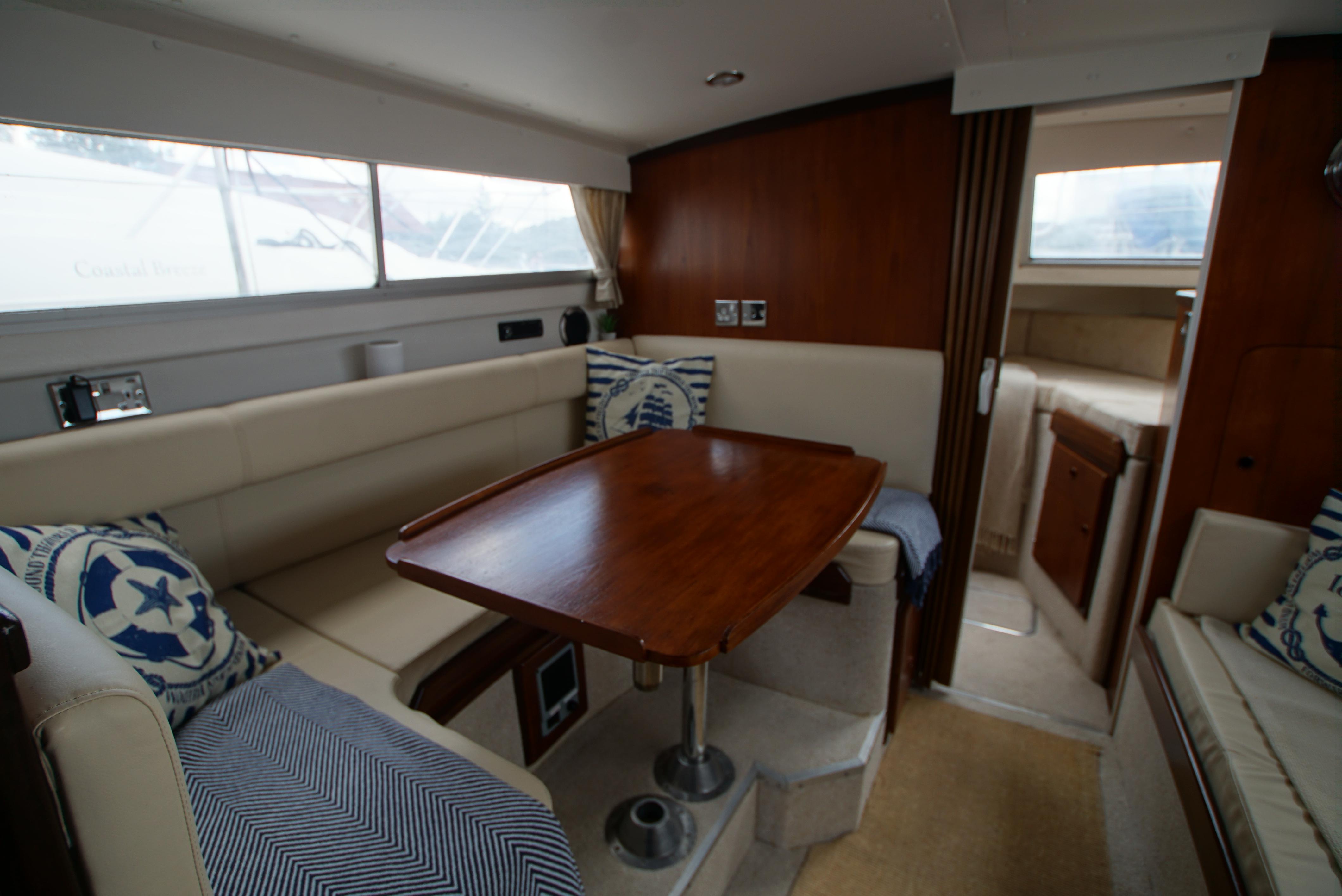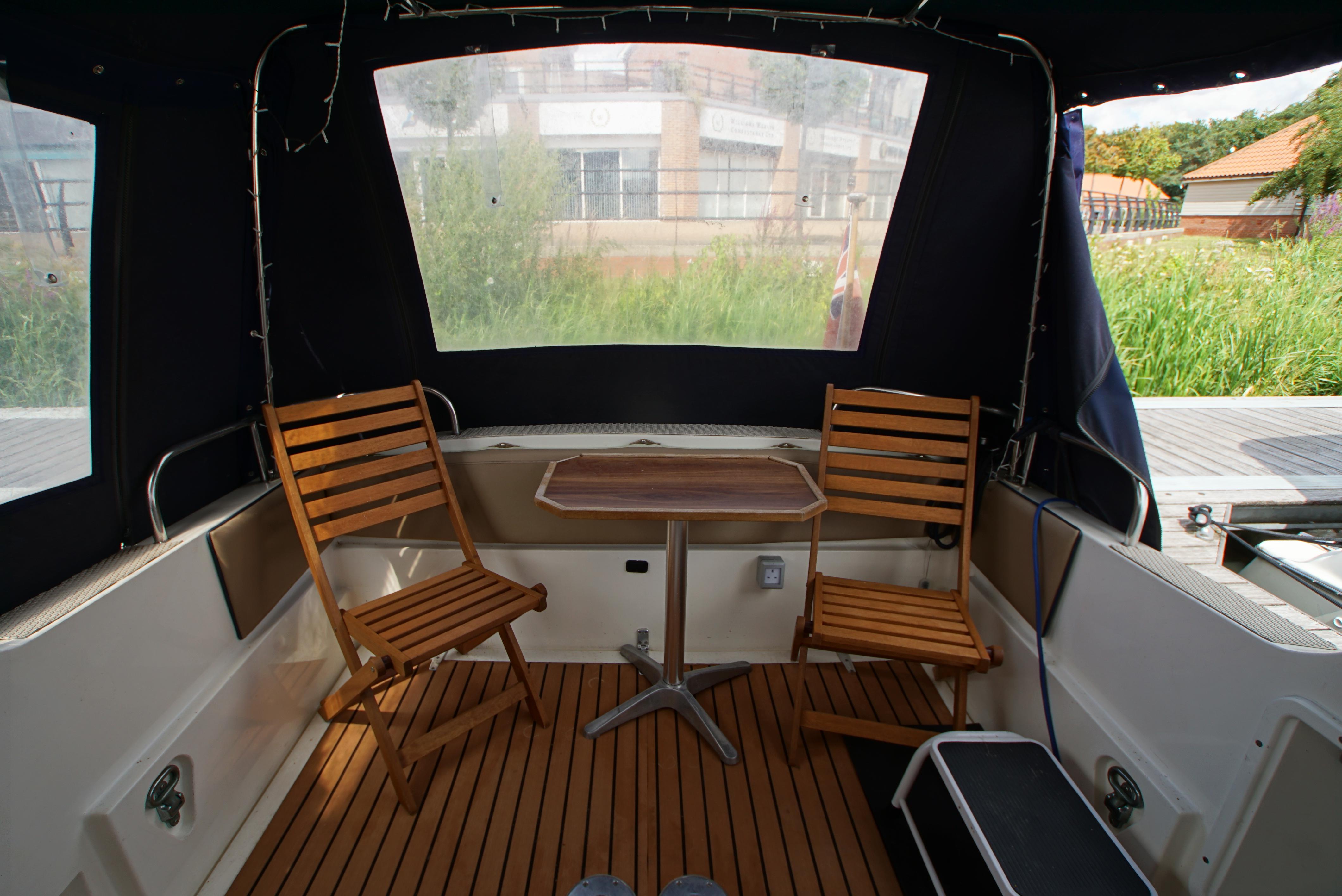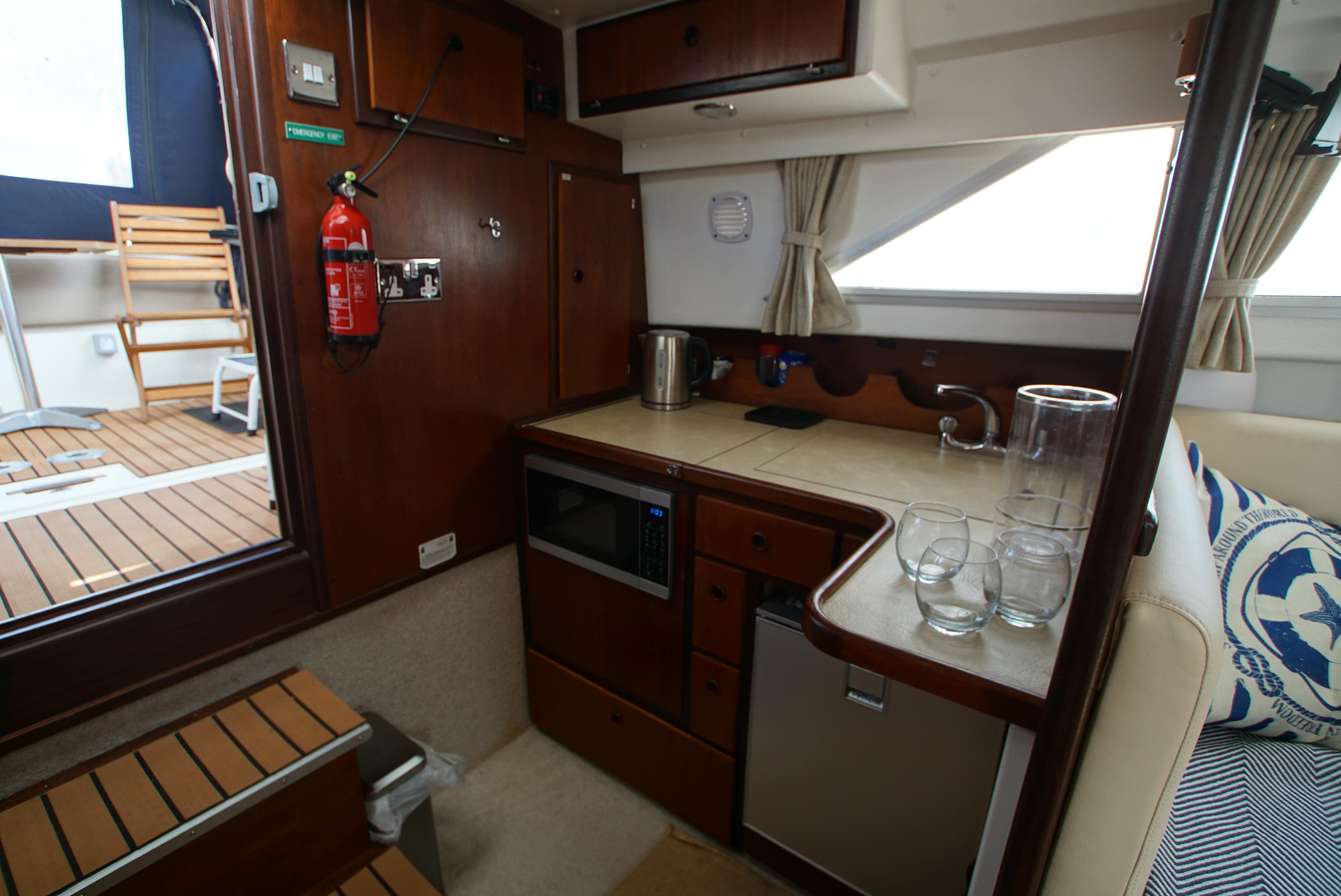 1983 Fairline Mirage 29 with twin Volvo Penta 145A petrol engines. Very well presented example of this popular model from the British marque. The cockpit is partially covered with a GRP hardtop and with a canopy surround in place to fully enclose the area it doesn’t compromise the usability in poor weather. The cockpit upholstery has been replaced in Silvertex fabric for a more modern look and cockpit floor finished in synthetic teak. The helm position is well laid out and gives all crucial engine information as houses a Garmin plotter and Trim tab control. The interior is very well appointed with many amenities including: Microwave (replaced 2021) inverter (Fitted 2021) Fridge (replaced 2021) Calorifier and immersion for hot water, electric heater in saloon and more. Available to view 7 days a week at Burton Waters Boat Sales in Lincoln, Boat Safety certificate valid until February 2026