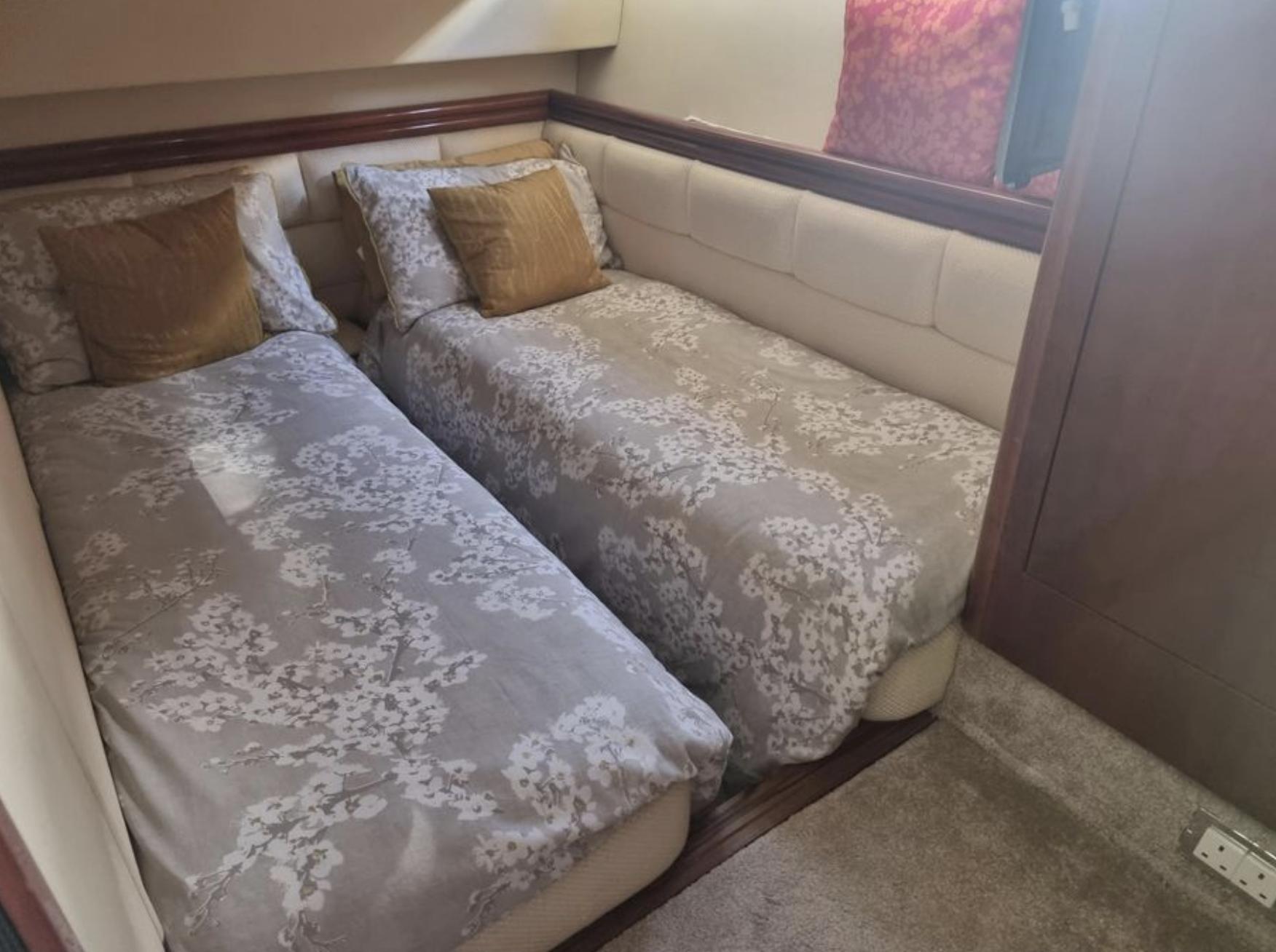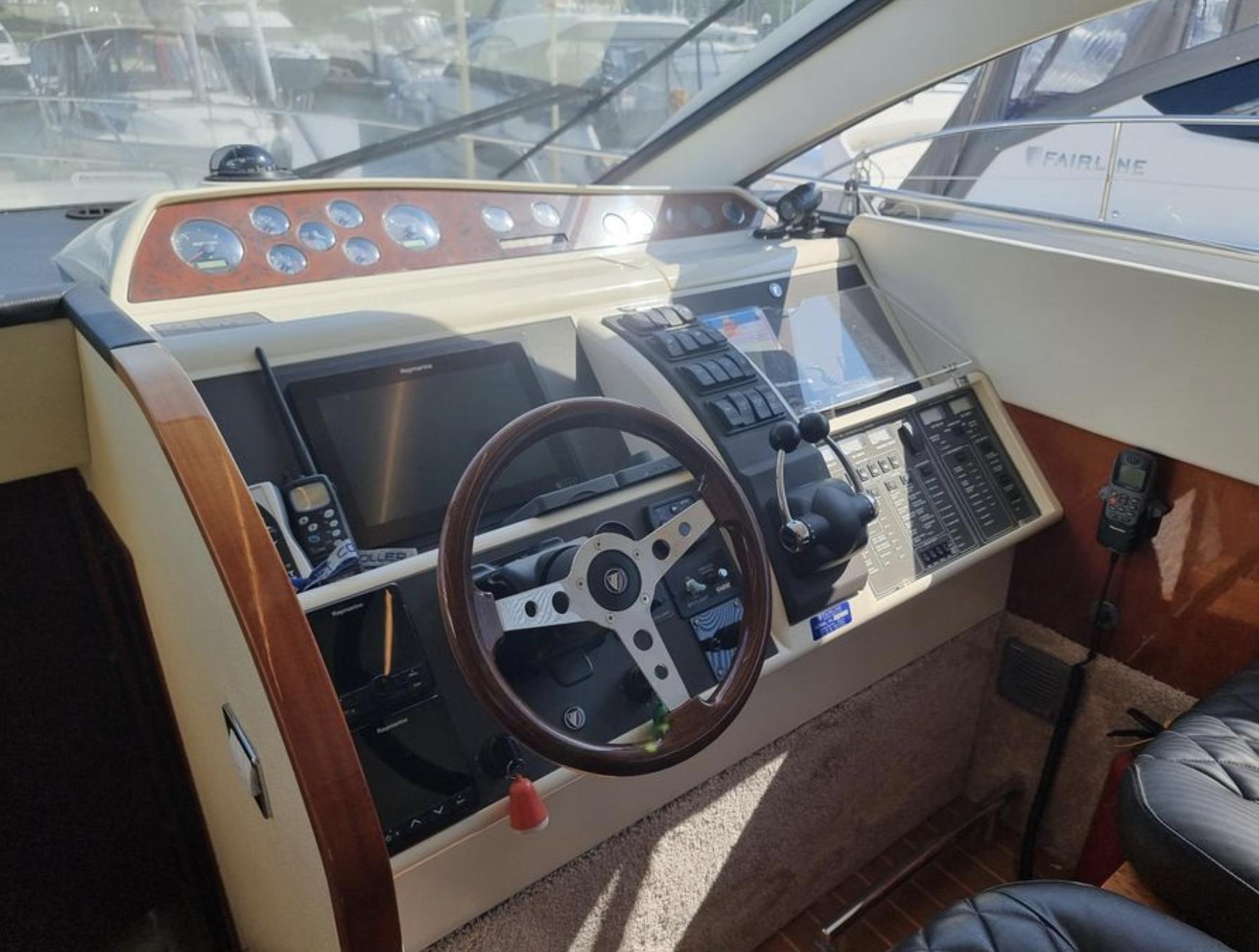 Fairline Phantom 50, 2005, with upgraded 2 x 715hp D12 Volvo Penta Diesel engines. This model from the British yard comes loaded with extras, new saloon upholstery and linings in 2022, new cockpit canvas 2022, new flybridge bimini 2022, upgraded Silvertex upholstery also including: air-conditioning, diesel heating, generator, bow thruster (linked to remote yacht controller*), passerelle , new internal upholstery, exterior upgraded Silvertex Upholstery, wetbar and flybridge grill, upgraded Raymarine Axiom chartplotter (repeated on flybridge), Quantum 2 radar scanner, AIS auto pilot, Fusion stereo with Bluetooth, Glomex WIFI, Inverter, underwater lights, washing machine and much more. Viewing by appointment only, PART EXCHANGE CONSIDERED.