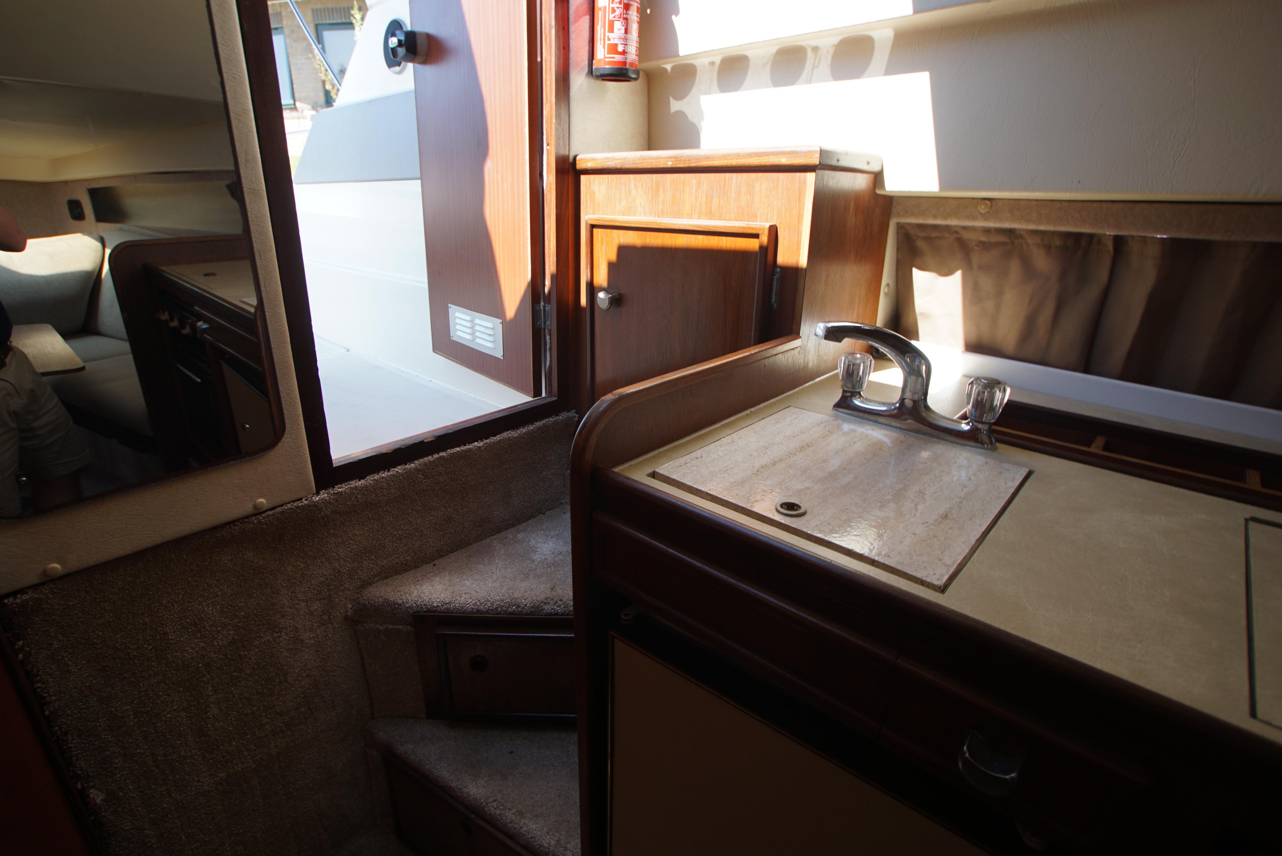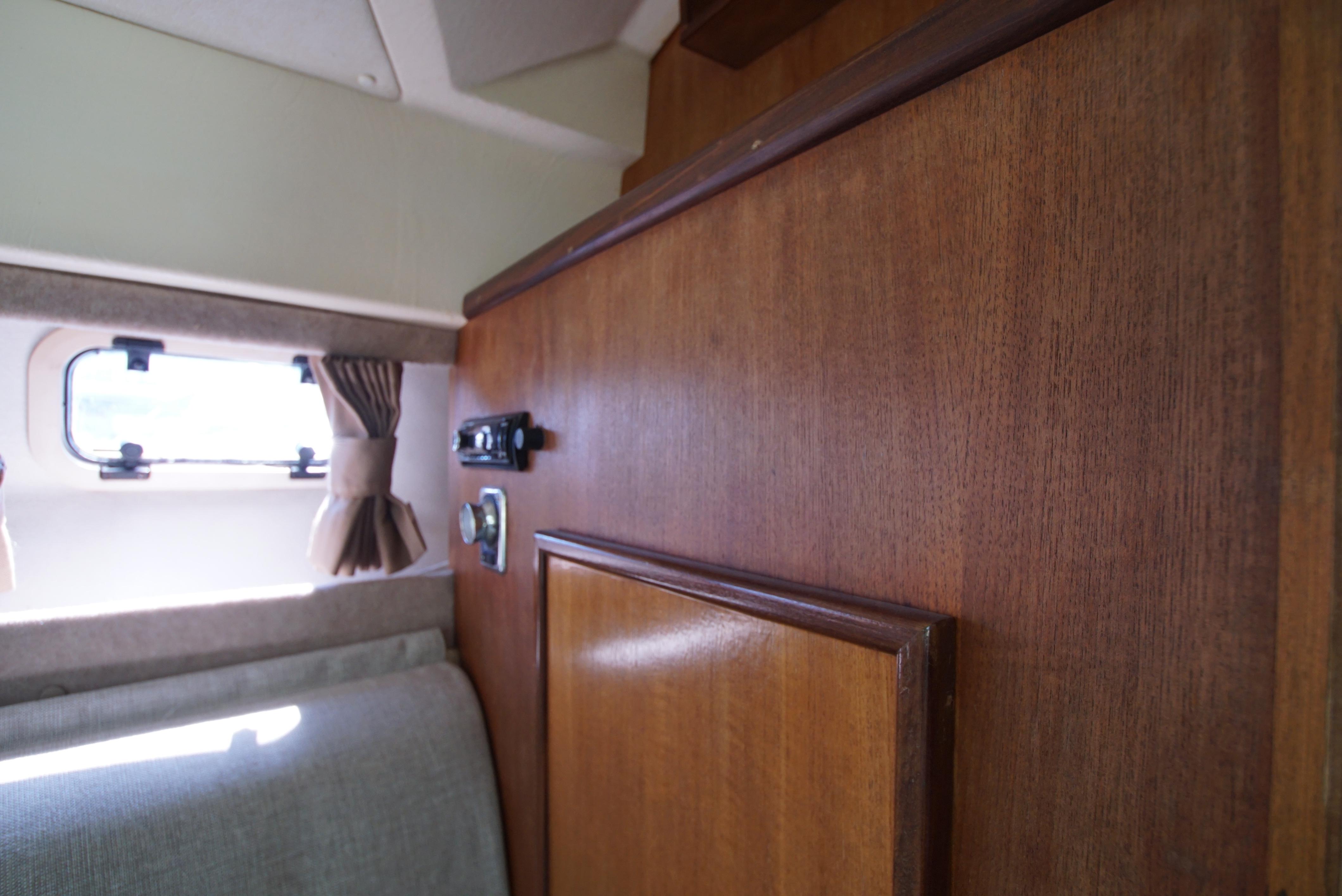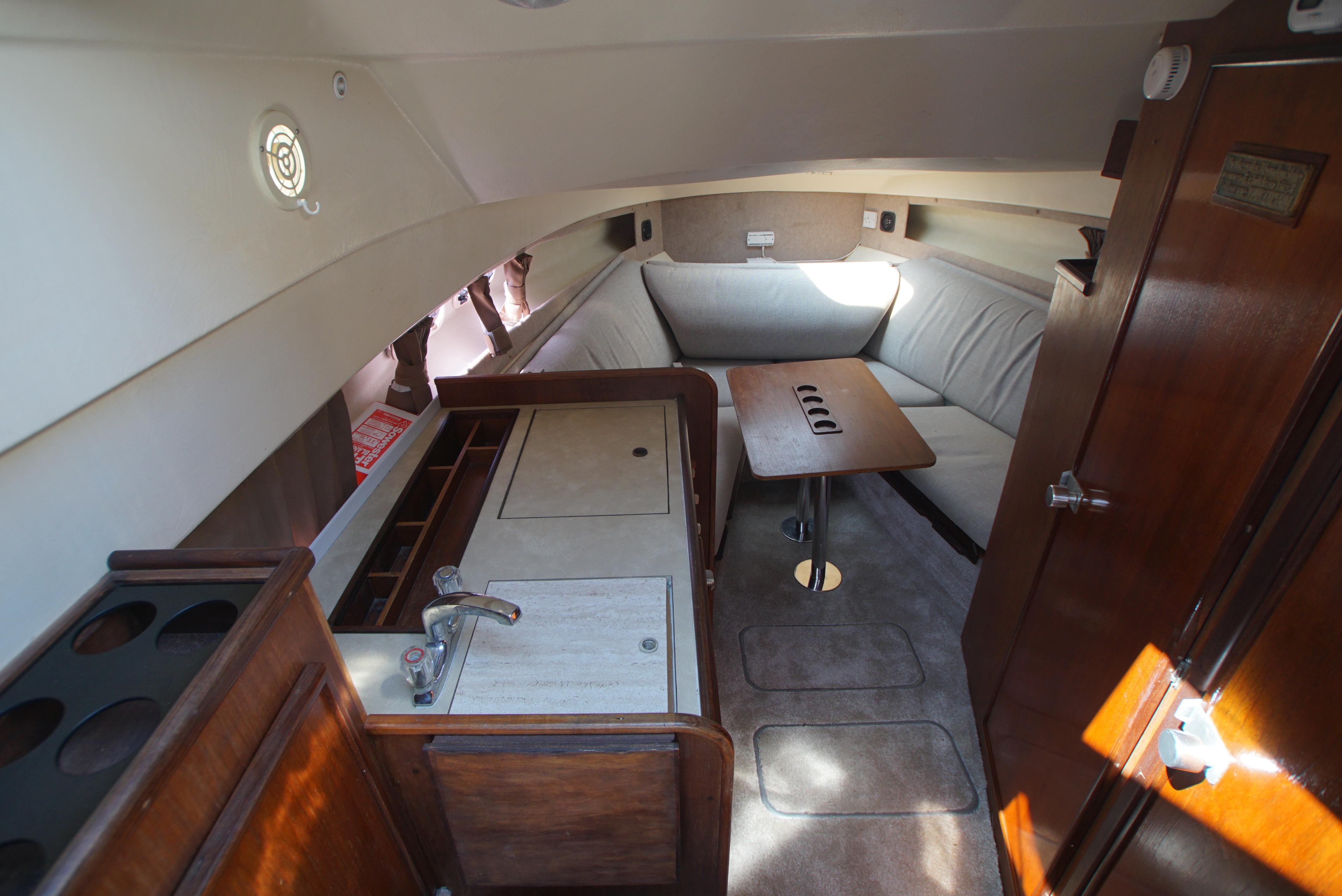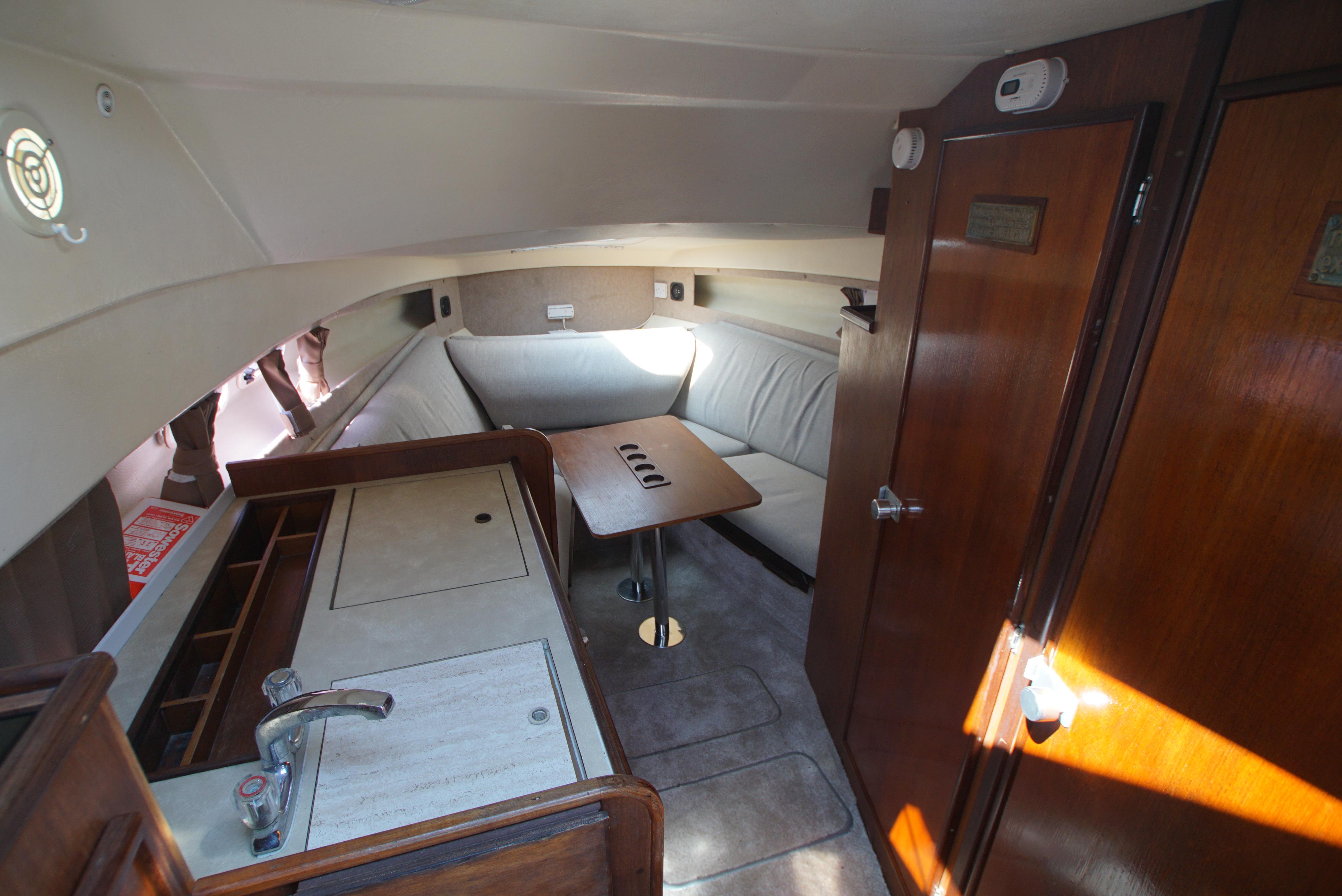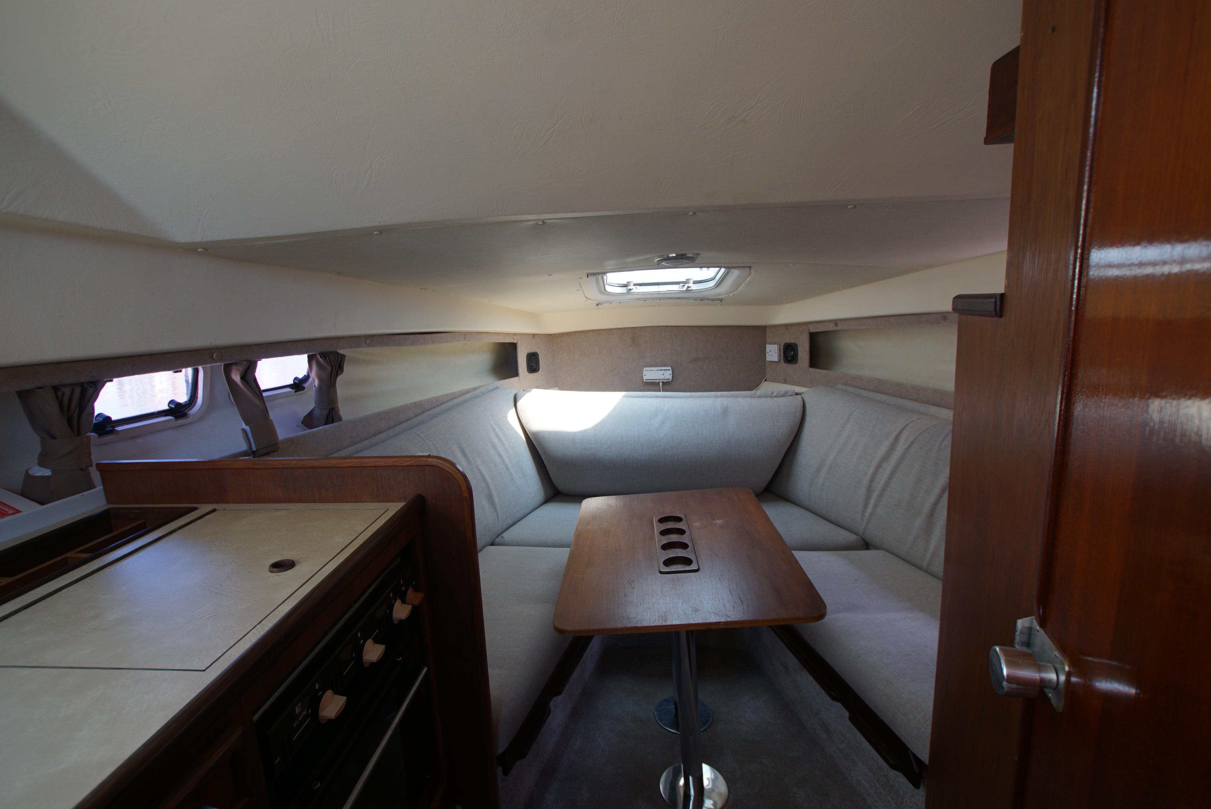 1989 Fairline Sunfury 26, with twin Diesel engines. British built sports cruiser with large cockpit area. The cockpit canopy can be completely removed to make the most of the sun or remain fully enclosed for milder days. There is a separate rear cabin with single berth or dinette conversion in the central saloon. Further Specification includes: extended bathing platform, wide side decks for access, gas hob and oven, fridge, shorepower, manual toilet, VHF radio, Garmin Fishfinder 250, FM radio and more. Recent works include new interior carpets and cushions, new canopy fitted in 2023. Lying at our Burton Waters branch in Lincoln, has a current Boat Safety certificate. Viewing by appointment only. Call us on 01522 567404.