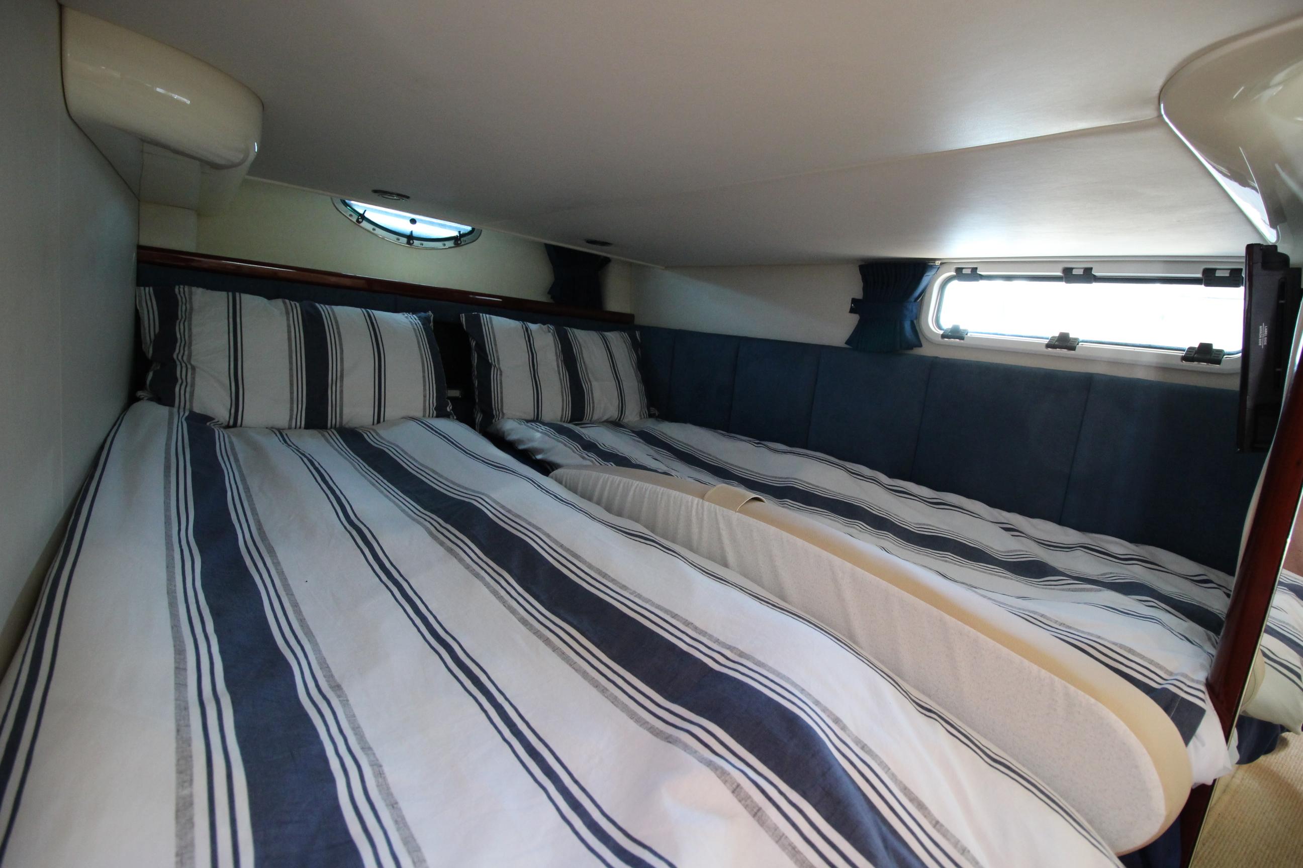 Fairline Targa 34, 2000, equipped with Twin Volvo Penta KAD 44/DP engines done 1350 on outdrives. The vessel offers 6 berths in two cabins and a convertible saloon. This vessel is a stunning example that is a real credit to her current owners. The vessel also benefits from a drive service in March, including antifouling and cut and polish. Additionally, an engine service is scheduled for May 2025. This boat is already to go and benefits from an upgrade of Garmin navigation equipment, upgraded cockpit upholstery, upgraded internal upholstery and a recent canopy. If you are looking for a Fairline Targa 34 or a two-cabin boat, viewing is strongly recommended. The specification includes a bow thruster, Garmin tri data speed and depth log, VHF, FM/CD player, electric windlass, and diesel blow air heating and is Available to view 6 days at Burton Waters Beacon marina, Ipswich. Part exchange available.