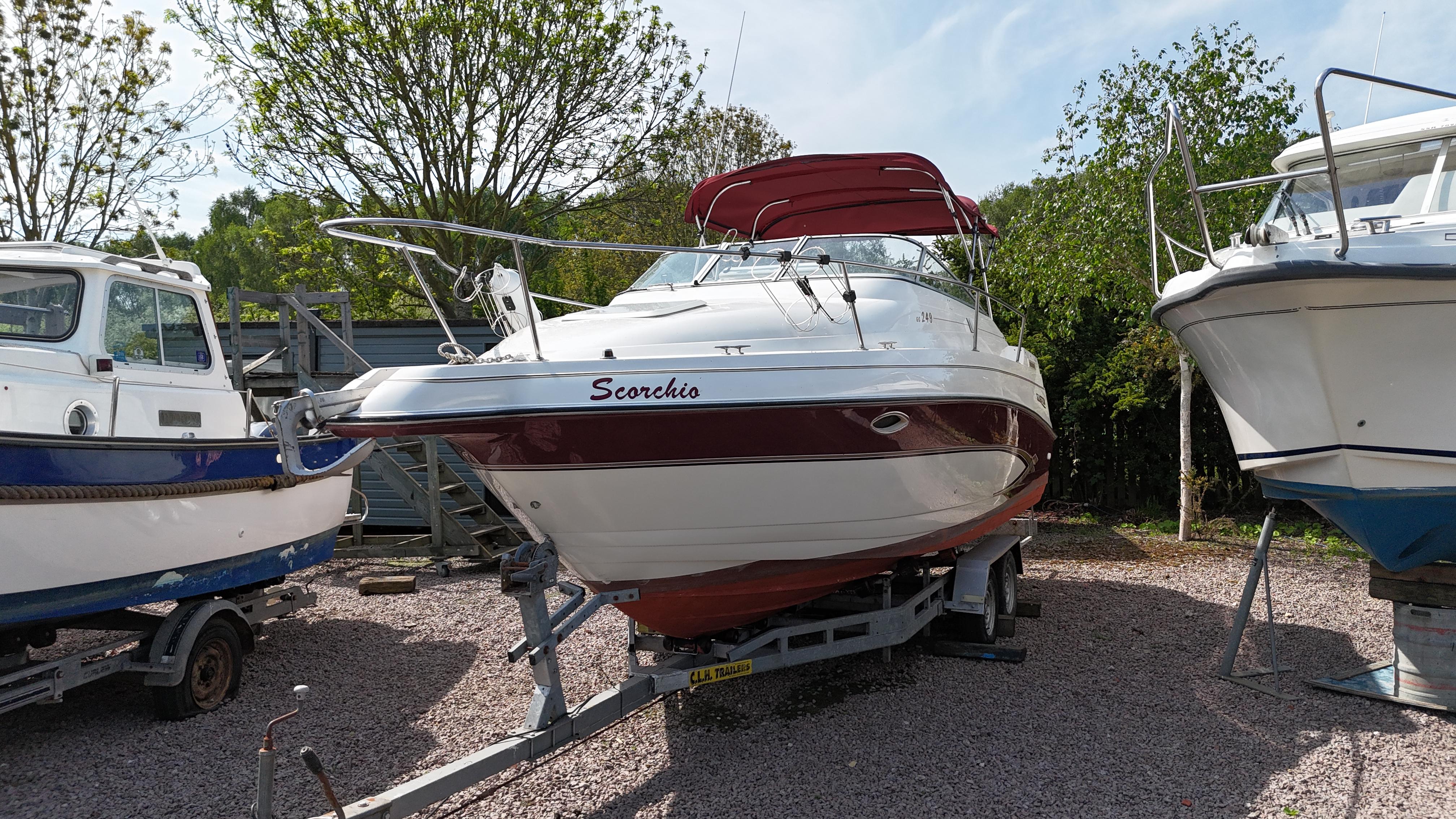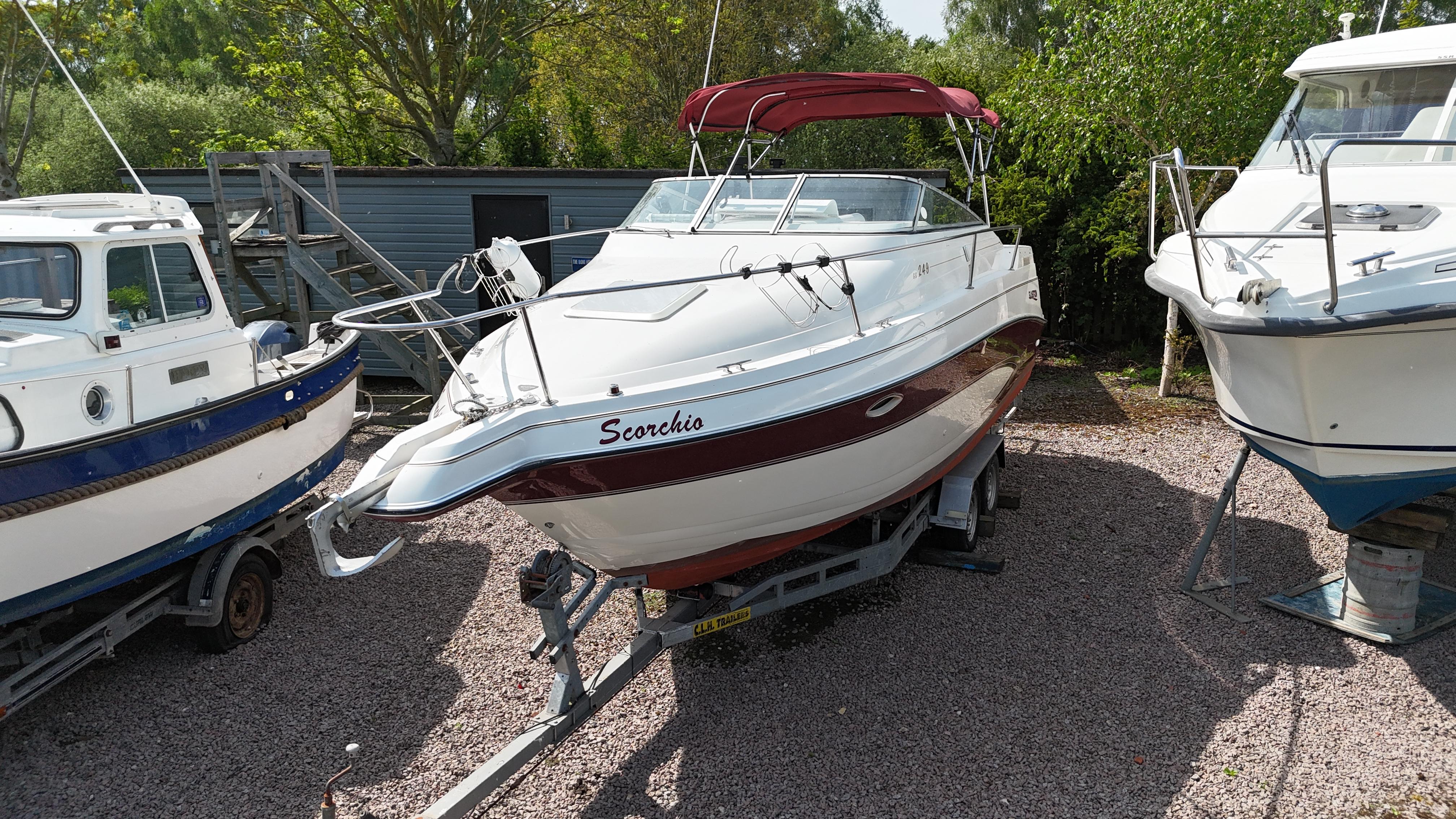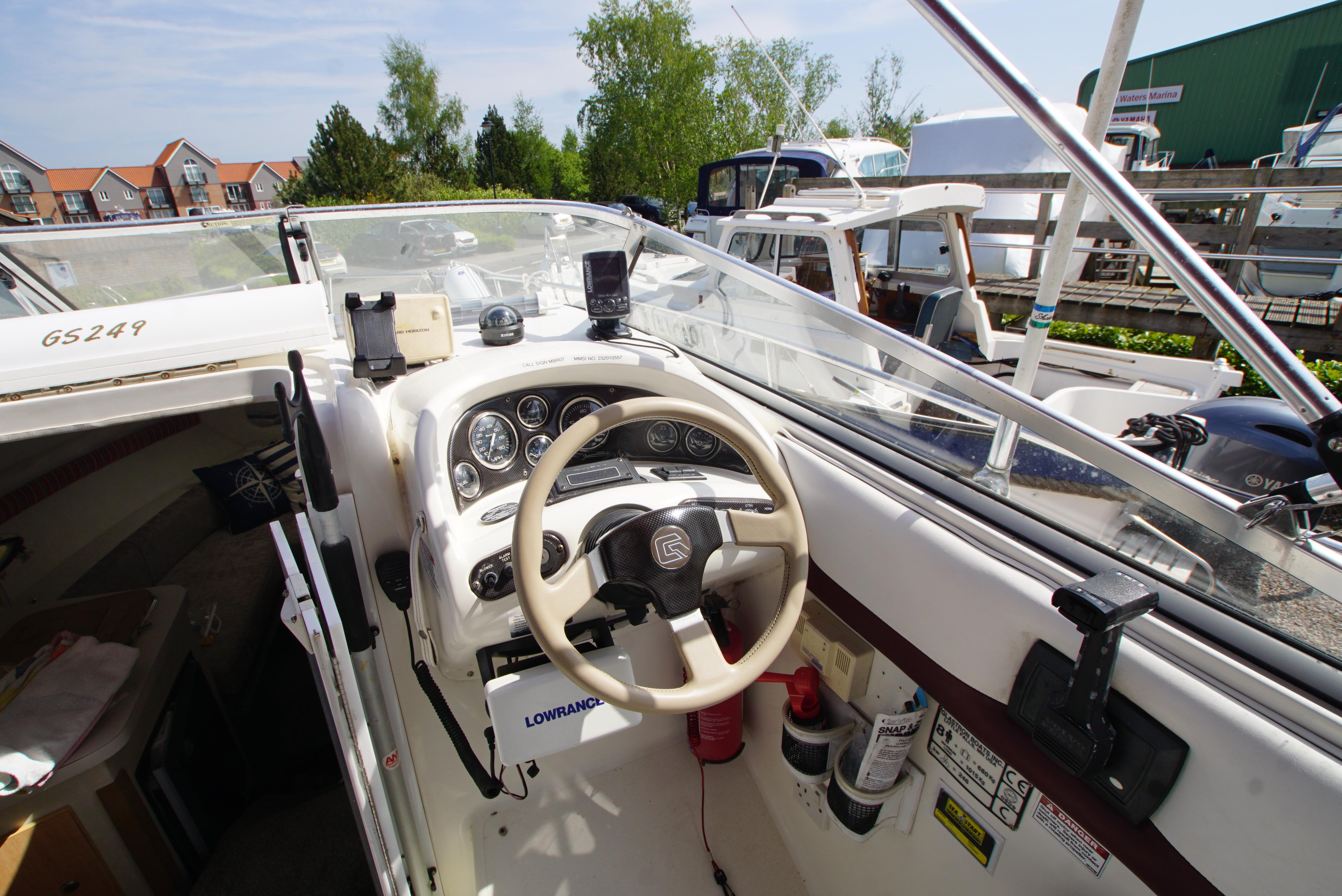 1998 Glastron GS 249 equipped with a single Volvo AD31 Diesel engine. offering 4 spacious berths. Excellent economical starter boat with a specification which includes: Full cockpit cover, shore power with cable, Lowrance VHF radio, Lowrance Elite 4 Fishfinder Humminbird, electric hob, microwave, fridge, flat screen TV, and more. New carpets in Saloon, power polished in April 2025, Boat Safety certificate valid until 2027. Comes with Road trailer! Available to view 7 days a week in Lincoln.