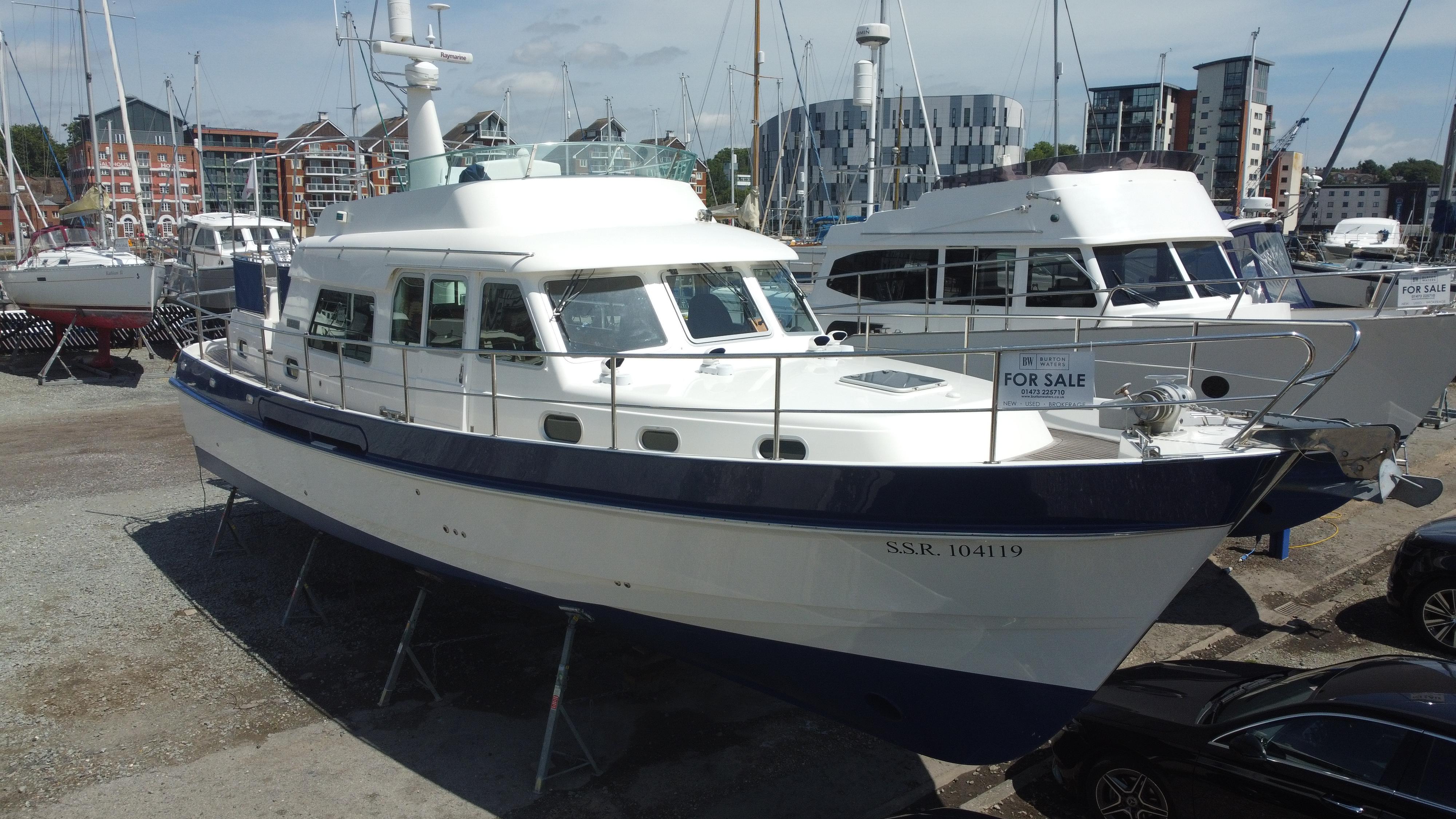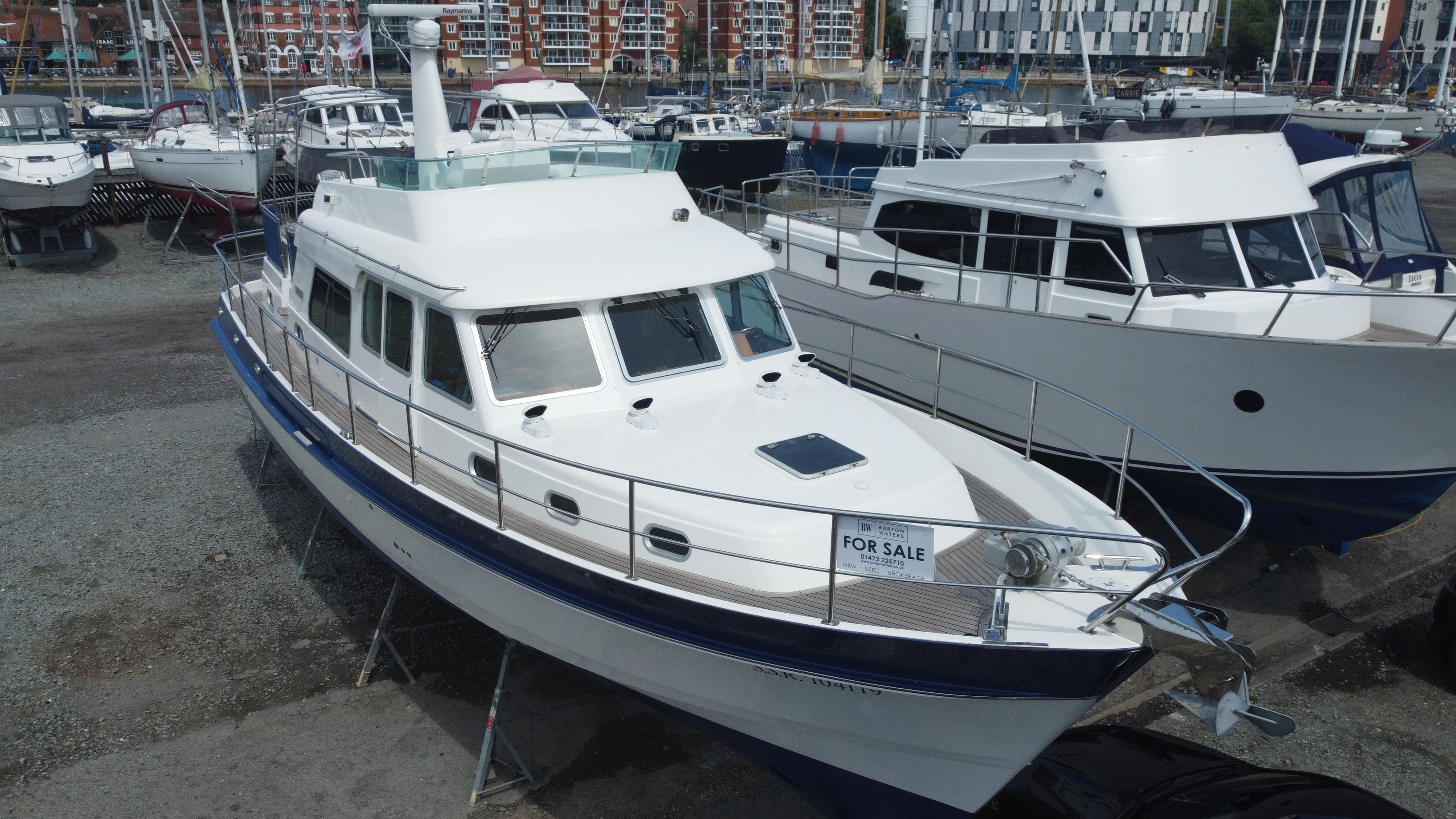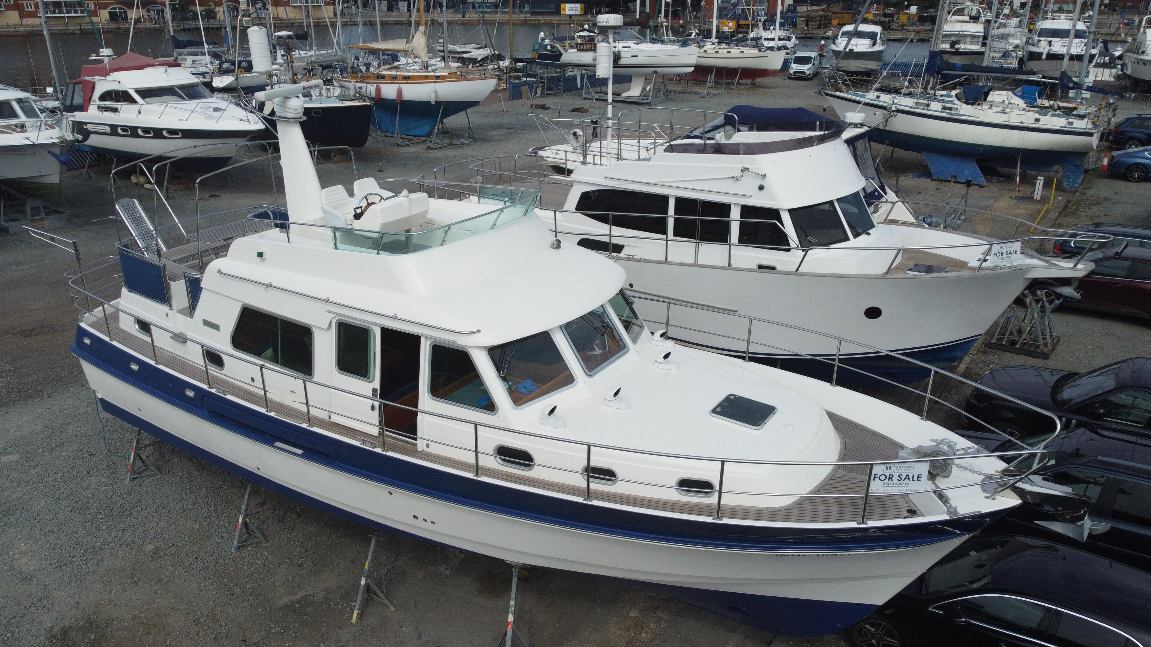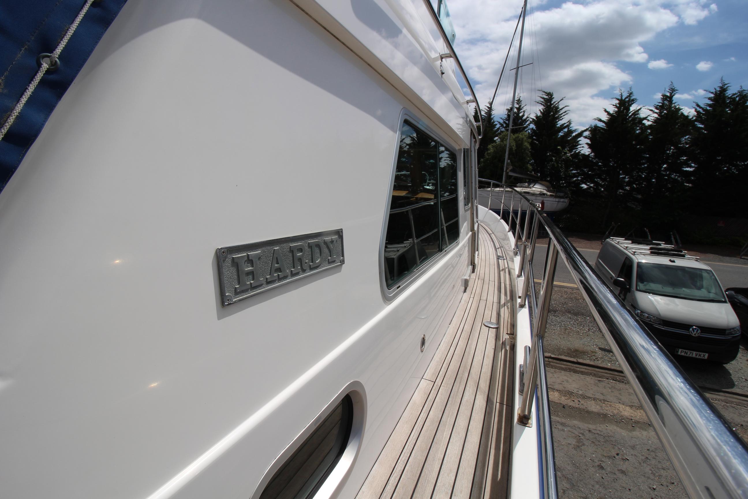 Hardy Commodore 42 2003 flybridge with twin Yanmar 440HP 6YL2 -STE 6 cylinder diesel engines on shaft drive with bow and stern thrusters. This is a great opportunity to purchase one of the great all-round cruising boats. The Hardy 42 should be at the top of your list if you’re looking for a safe, sea-capable cruising boat with great accommodation and a turn of speed to get you home! The Hardy Commodore 42 offers 5 berths in 3 cabins: the master aft cabin with an en-suite and double island bed, a single cabin to the port side forward, and a forward bow cabin with two single berths. The saloon offers plenty of seating with a 360-degree view and a drop down to the galley on the starboard side. The vessel has had extensive works carried out on her recently, which are detailed on the website, as well as a full deep clean inside and out and a cut and polish to the topsides and superstructure in June. Please contact us to arrange a viewing of this stunning Hardy Commodore 42.