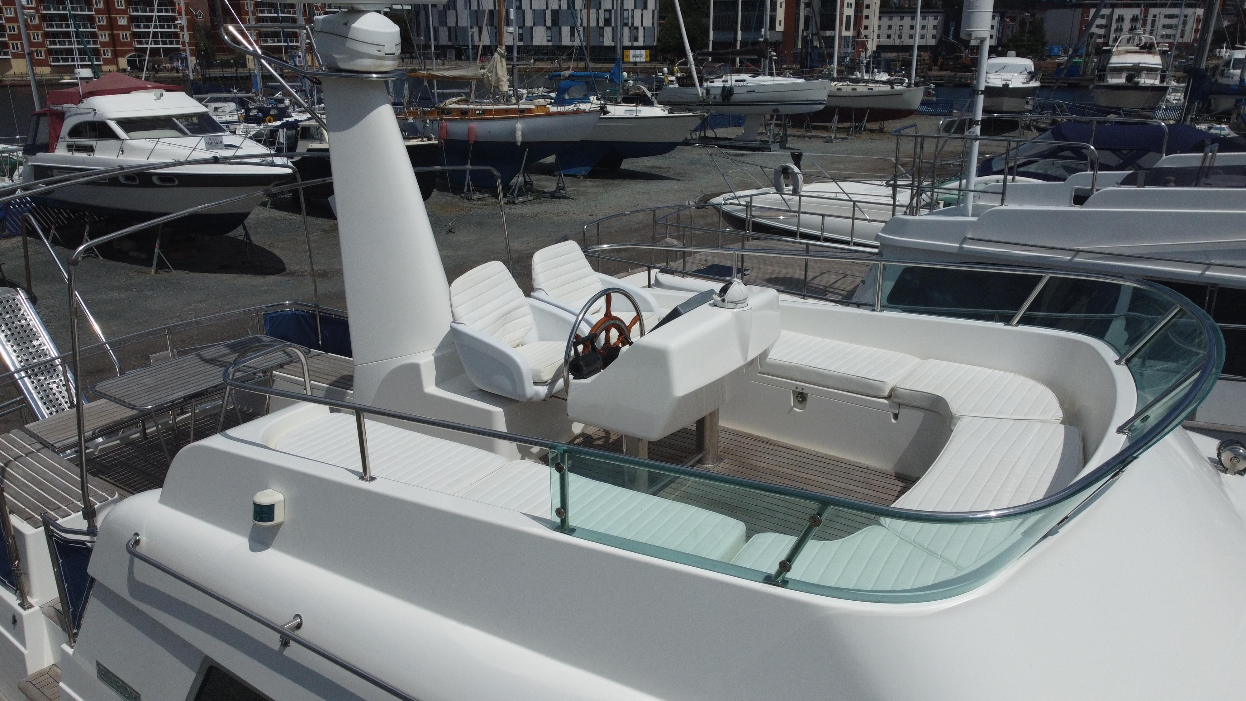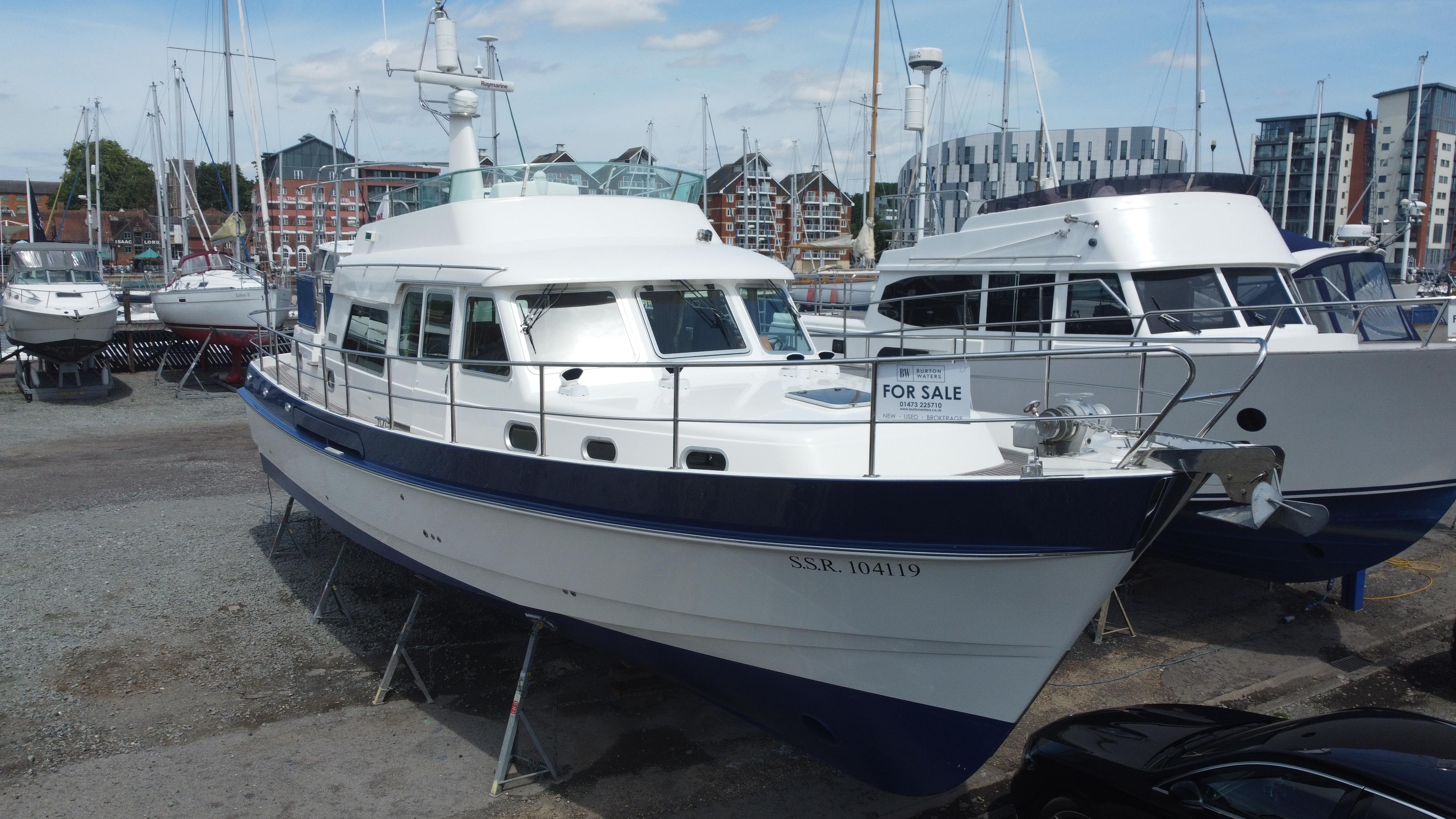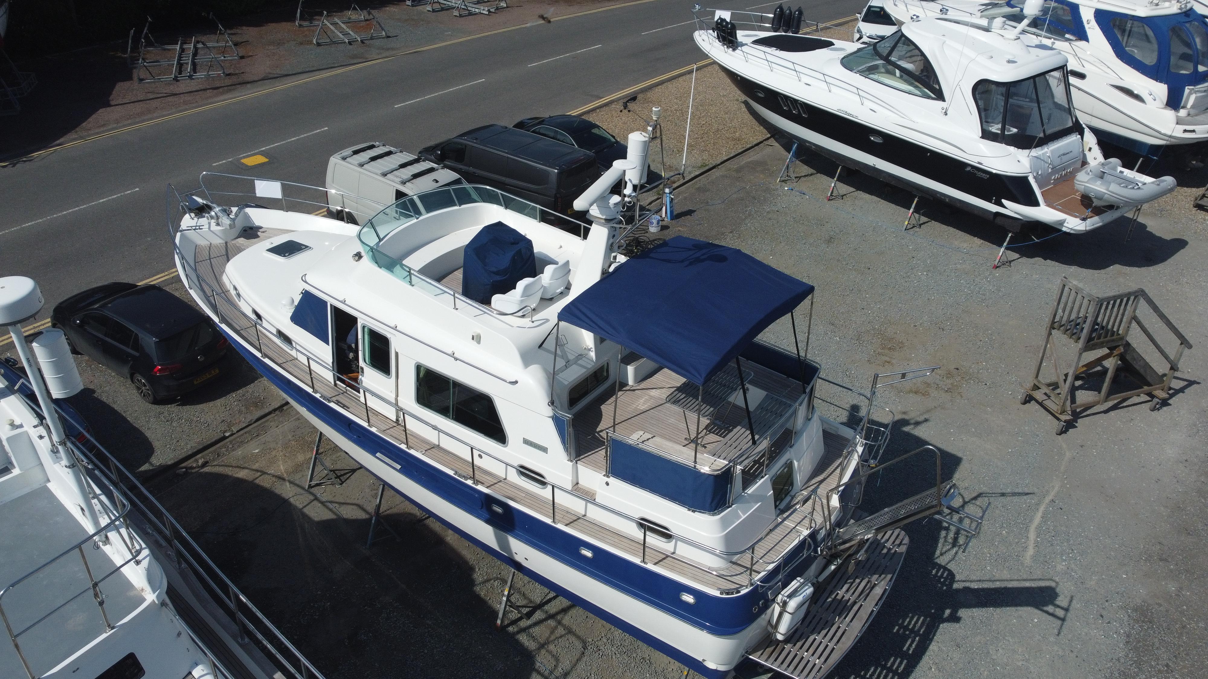 Hardy Commodore 42 2003 flybridge with twin Yanmar 440HP 6YL2 -STE 6 cylinder diesel engines on shaft drive with bow and stern thrusters. This is a great opportunity to purchase one of the great all-round cruising boats. The Hardy 42 should be at the top of your list if you’re looking for a safe, sea-capable cruising boat with great accommodation and a turn of speed to get you home! The Hardy Commodore 42 offers 5 berths in 3 cabins: the master aft cabin with an en-suite and double island bed, a single cabin to the port side forward, and a forward bow cabin with two single berths. The saloon offers plenty of seating with a 360-degree view and a drop down to the galley on the starboard side. The vessel has had extensive works carried out on her recently, which are detailed on the website, as well as a full deep clean inside and out and a cut and polish to the topsides and superstructure in June. Please contact us to arrange a viewing of this stunning Hardy Commodore 42.