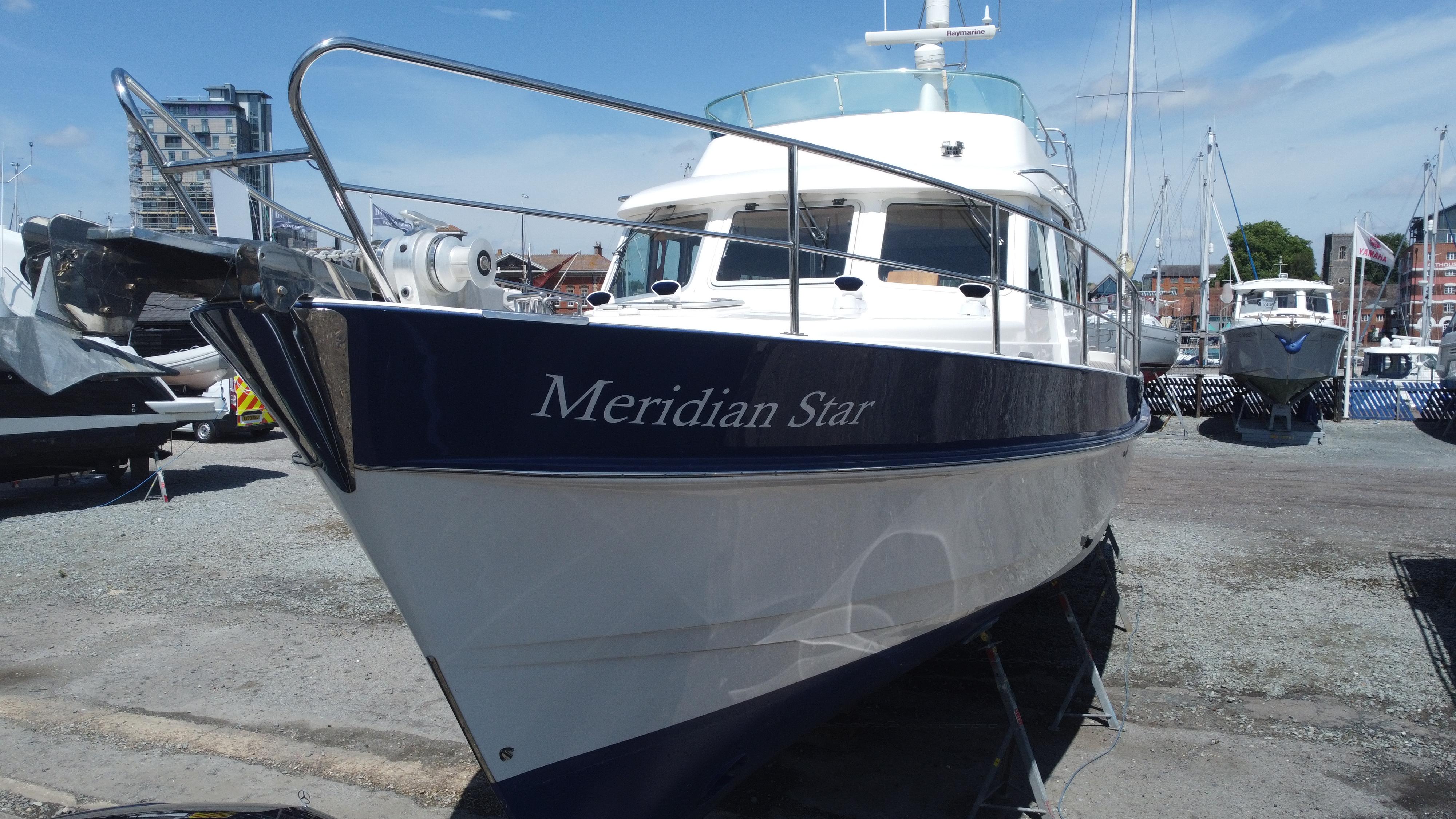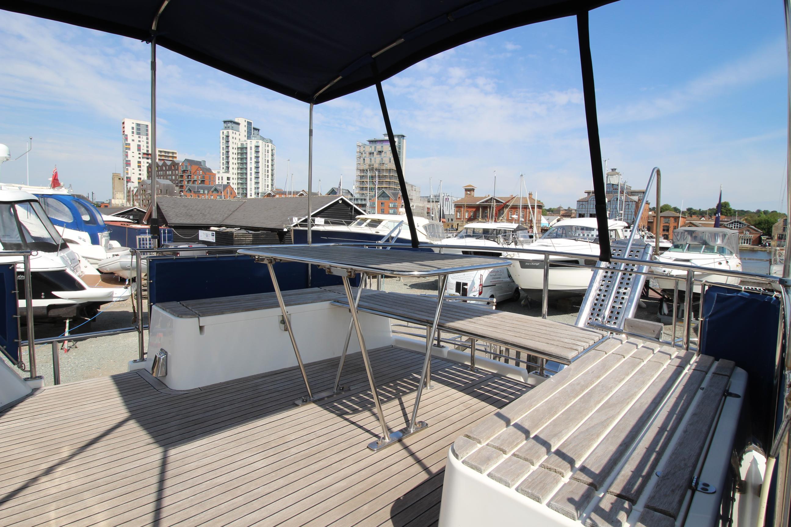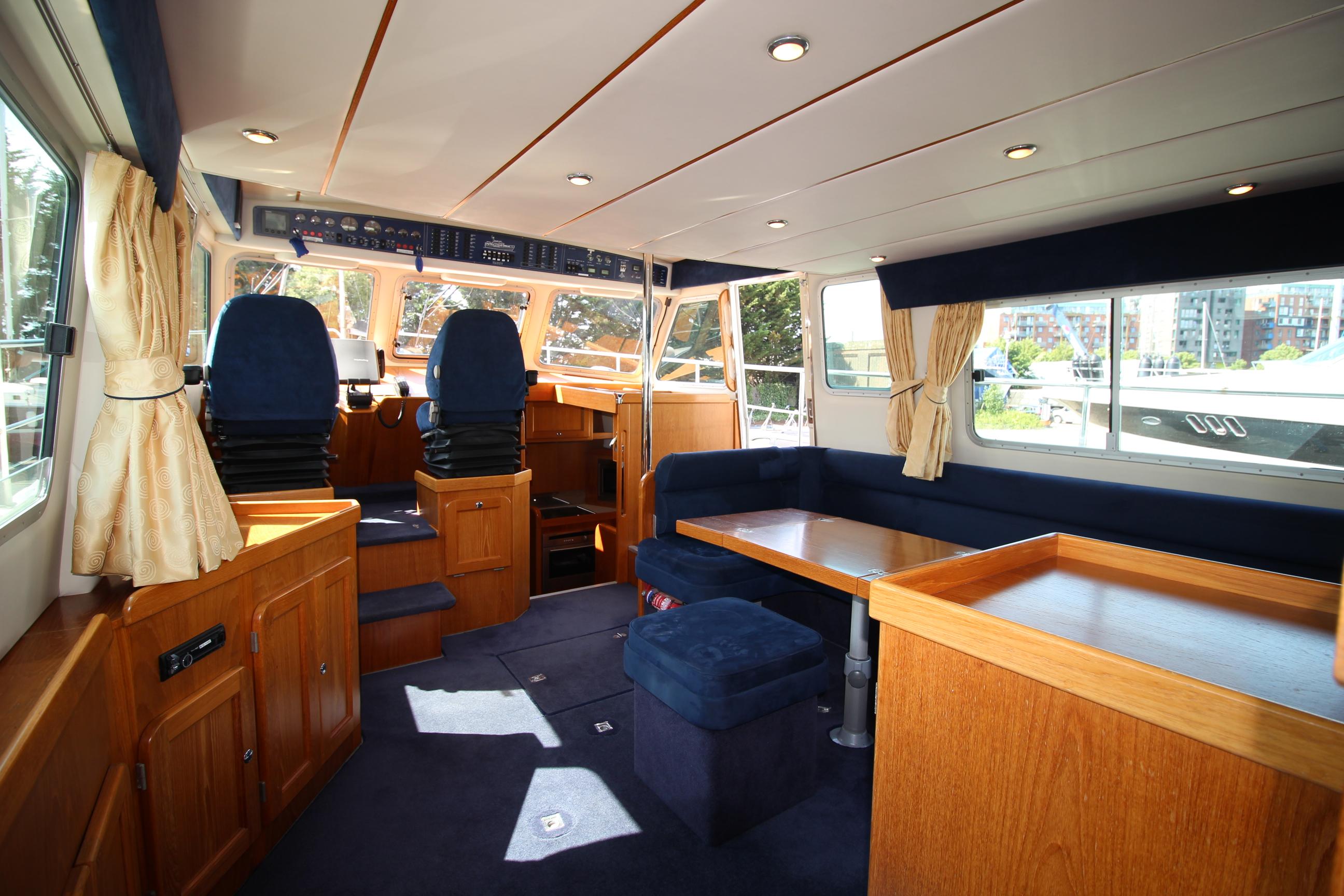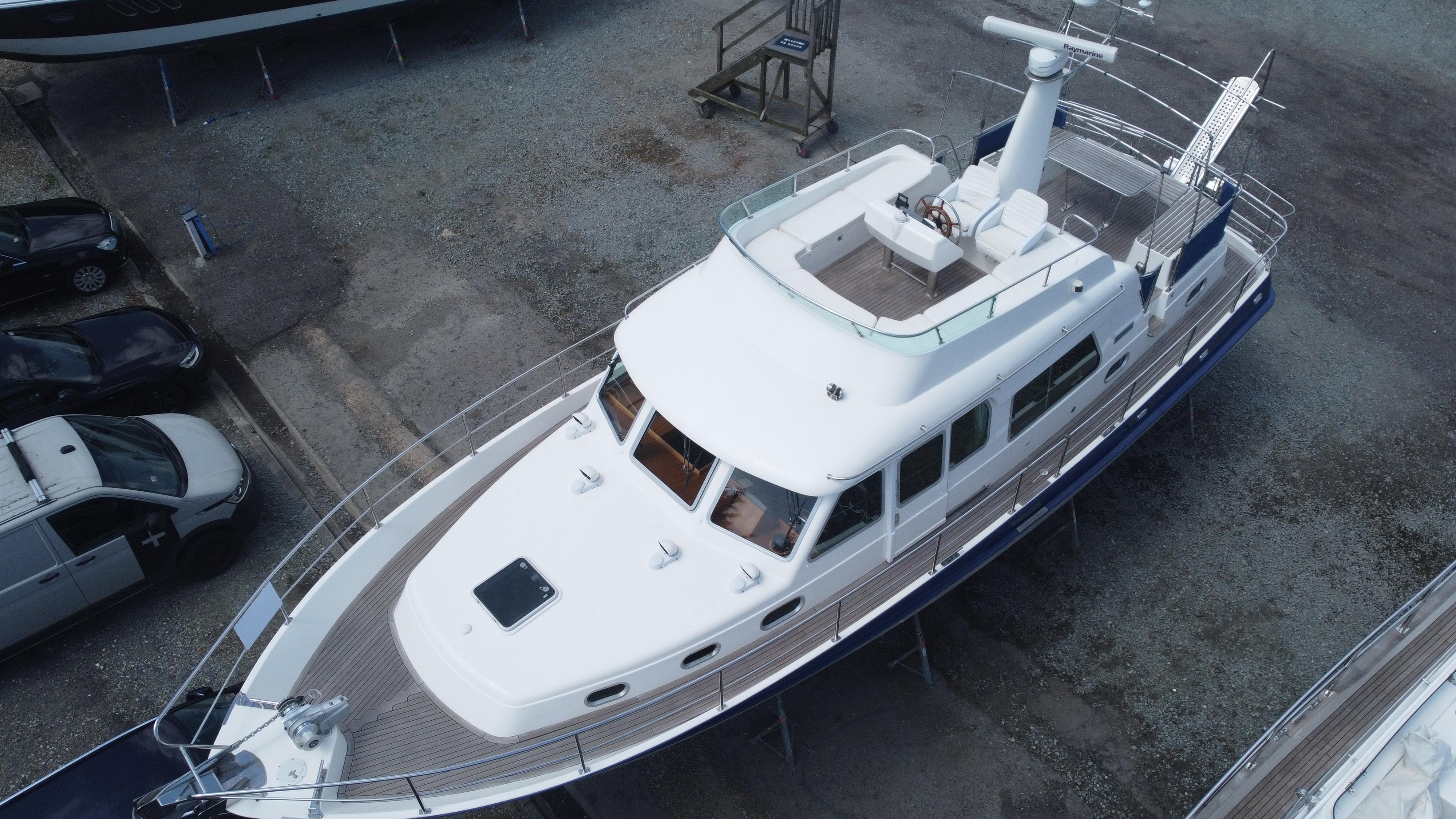 Hardy Commodore 42 2003 flybridge with twin Yanmar 440HP 6YL2 -STE 6 cylinder diesel engines on shaft drive with bow and stern thrusters. This is a great opportunity to purchase one of the great all-round cruising boats. The Hardy 42 should be at the top of your list if you’re looking for a safe, sea-capable cruising boat with great accommodation and a turn of speed to get you home! The Hardy Commodore 42 offers 5 berths in 3 cabins: the master aft cabin with an en-suite and double island bed, a single cabin to the port side forward, and a forward bow cabin with two single berths. The saloon offers plenty of seating with a 360-degree view and a drop down to the galley on the starboard side. The vessel has had extensive works carried out on her recently, which are detailed on the website, as well as a full deep clean inside and out and a cut and polish to the topsides and superstructure in June. Please contact us to arrange a viewing of this stunning Hardy Commodore 42.