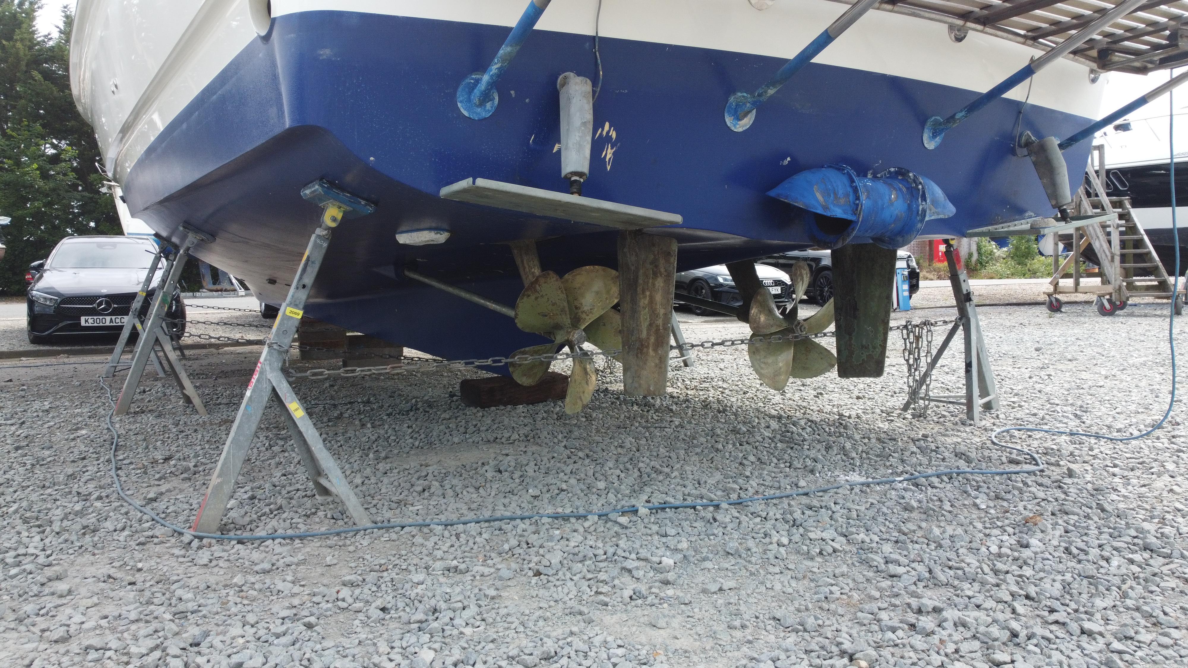 2-handed, 4-bladed bronze Clements pitch, 32.5” diameter, 23.5”