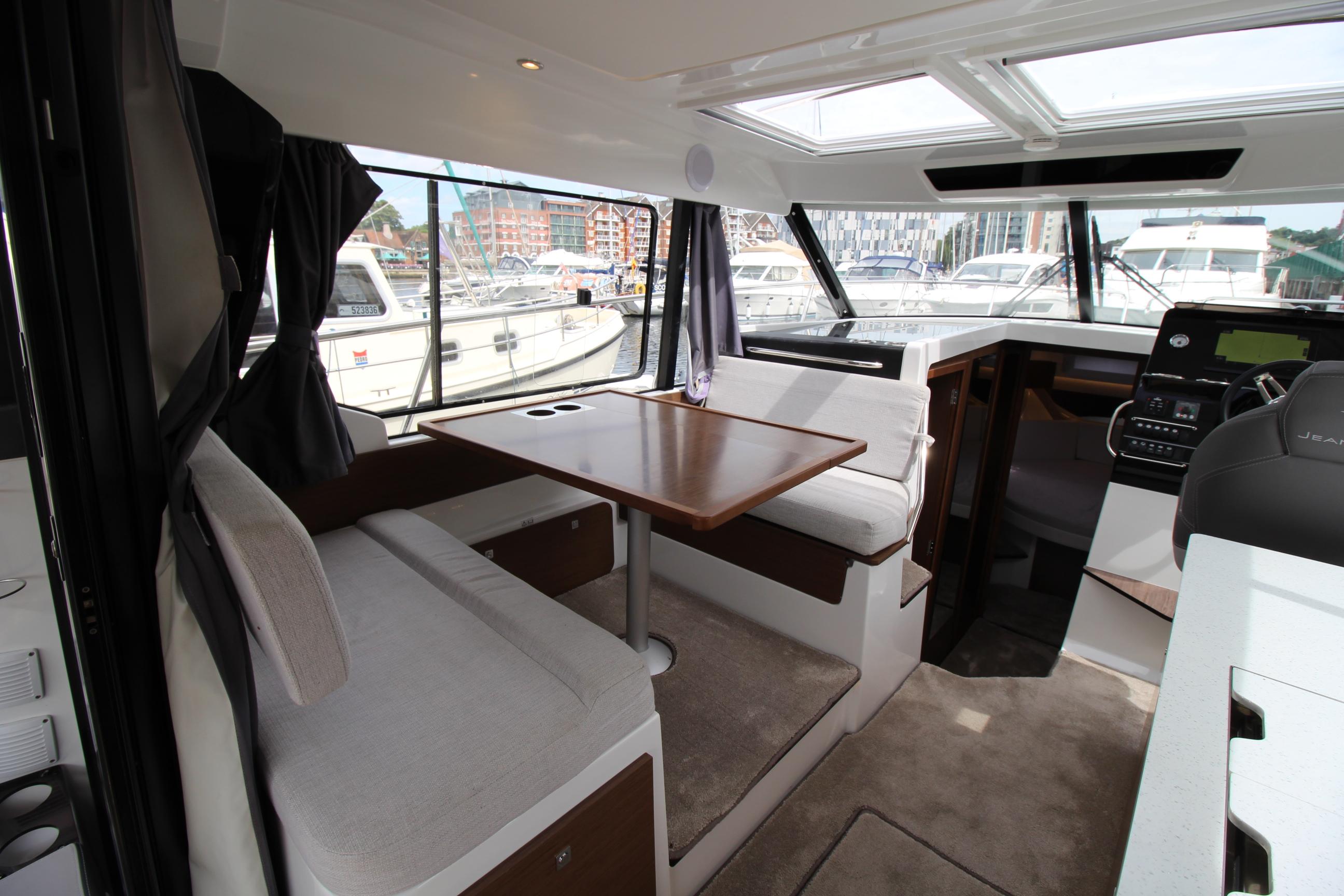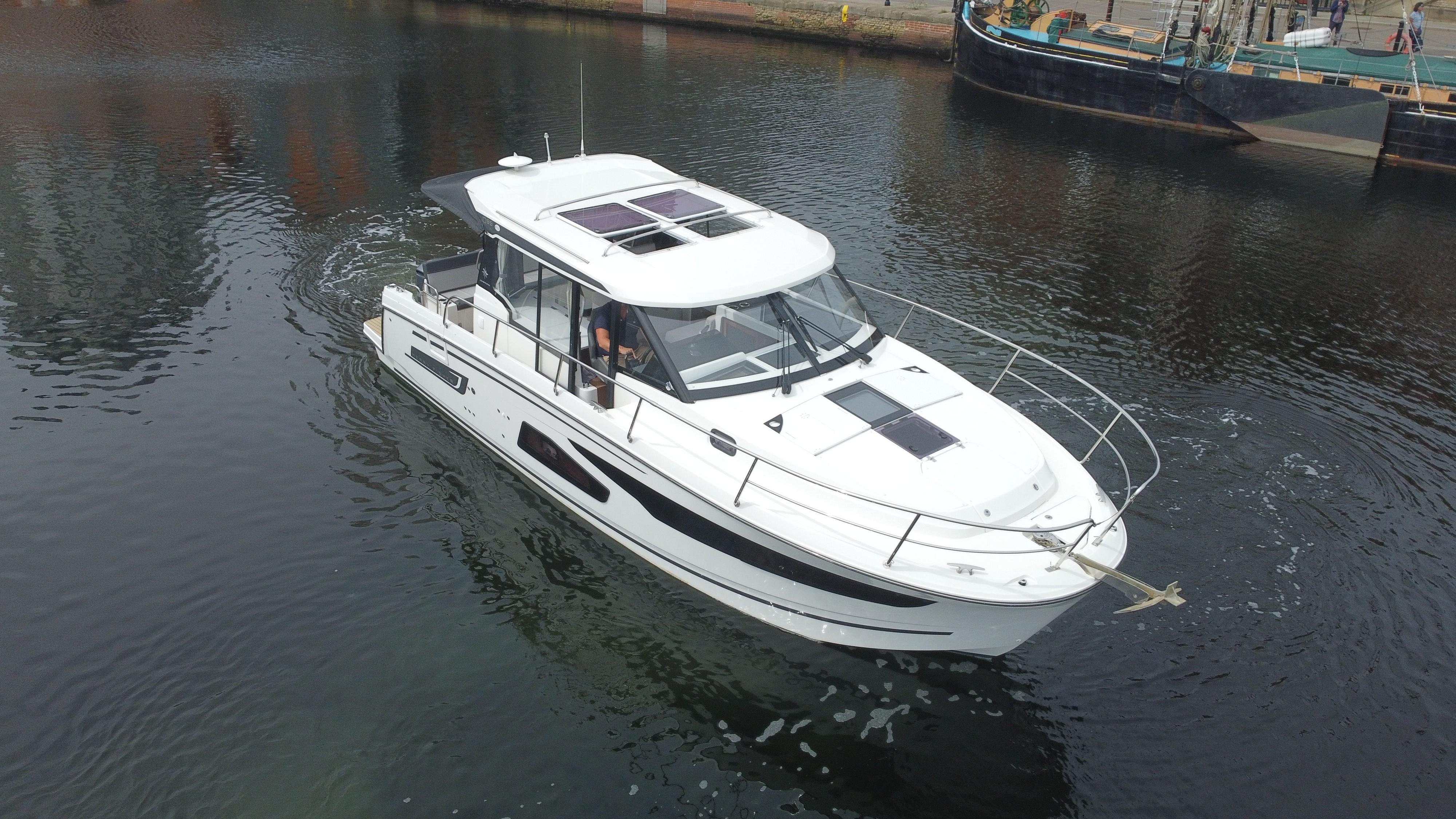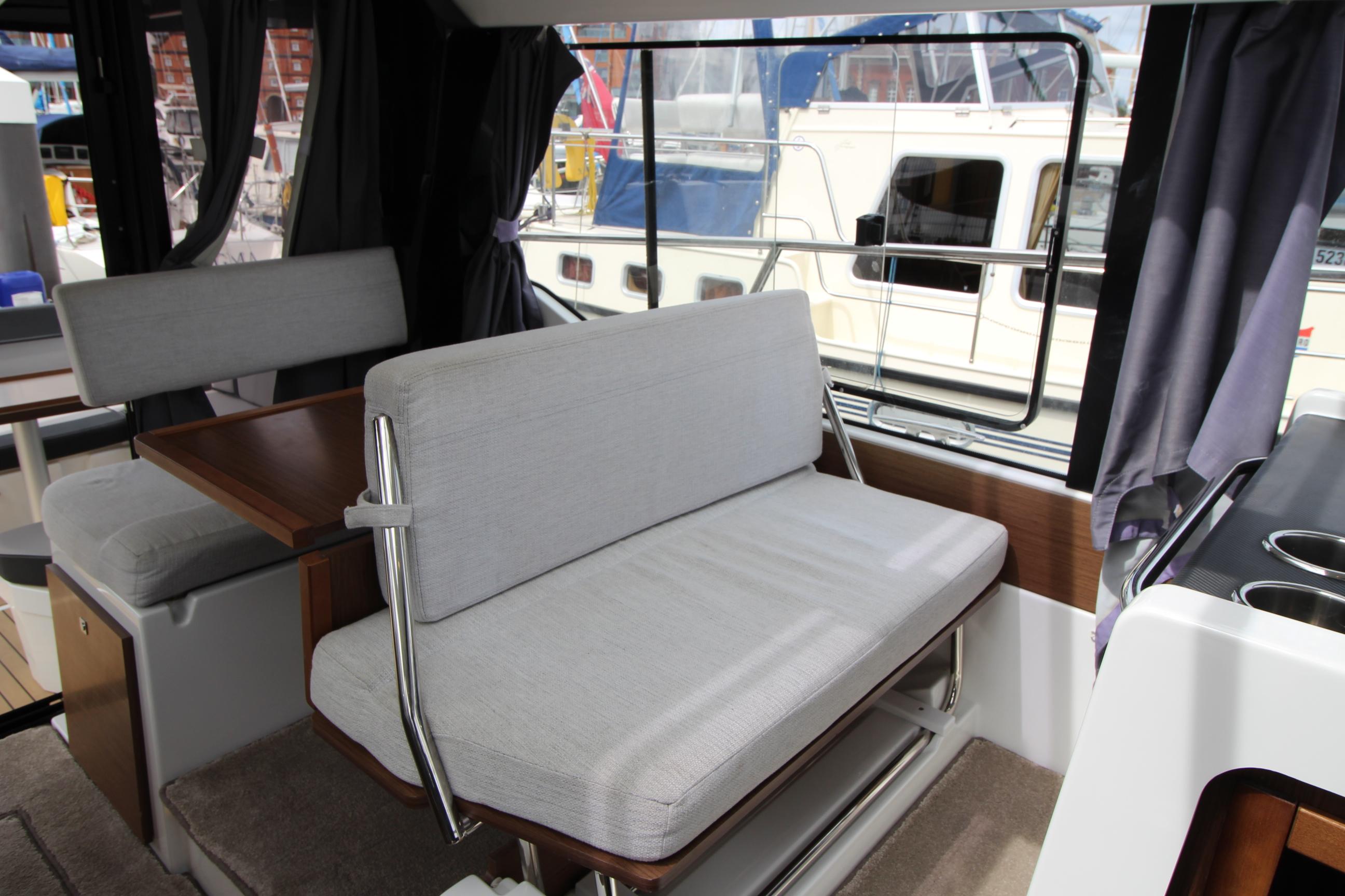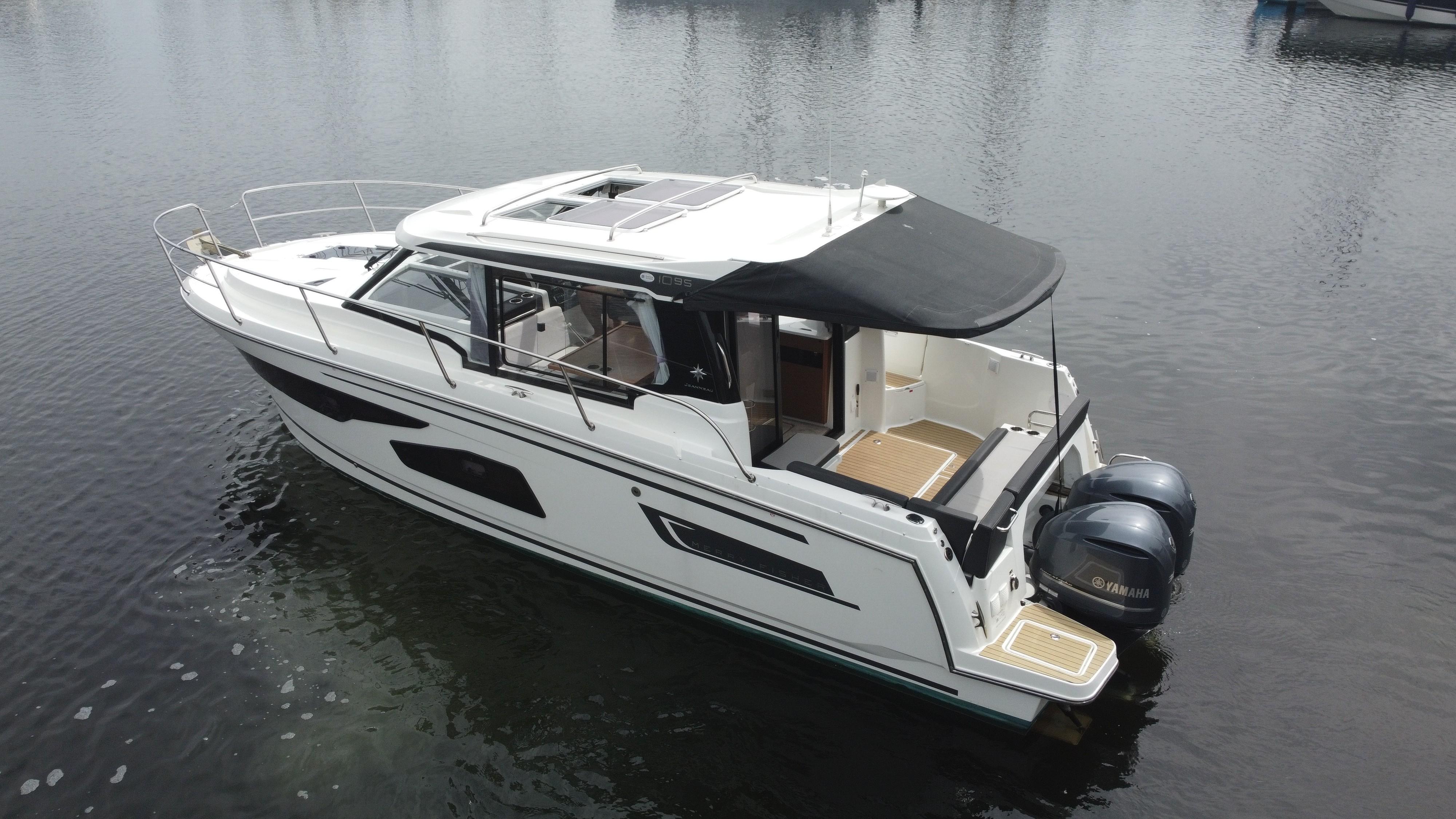 Jeanneau Merry Fisher 1095, 2020 build, 2021 model and launch year and equipped with the larger Yamaha 300hp outboards, and bow thruster. The Jeanneau Merry Fisher 1095 offers 6 berths in three cabins along with a large cockpit for entertaining with family and friends. The vessel is a true all-year-round boat with a full closing canopy for the cockpit and a great elevated saloon the offers a 360 degree view with diesel blow air heating. The vessel is presented with a great specification that includes bow thruster, 12″ Garmin chartplotter, Webasto diesel heating & hot water, Fusion audio system, electric toilet, synthetic teak cockpit flooring, bimini and cockpit enclosure, please see full specification listed below. This Burton Waters stock boat benefits from being copper coated from new, and transport can be arranged for anywhere in the UK. Viewings 6 days a week at our Ipswich office. *Part exchange considered*