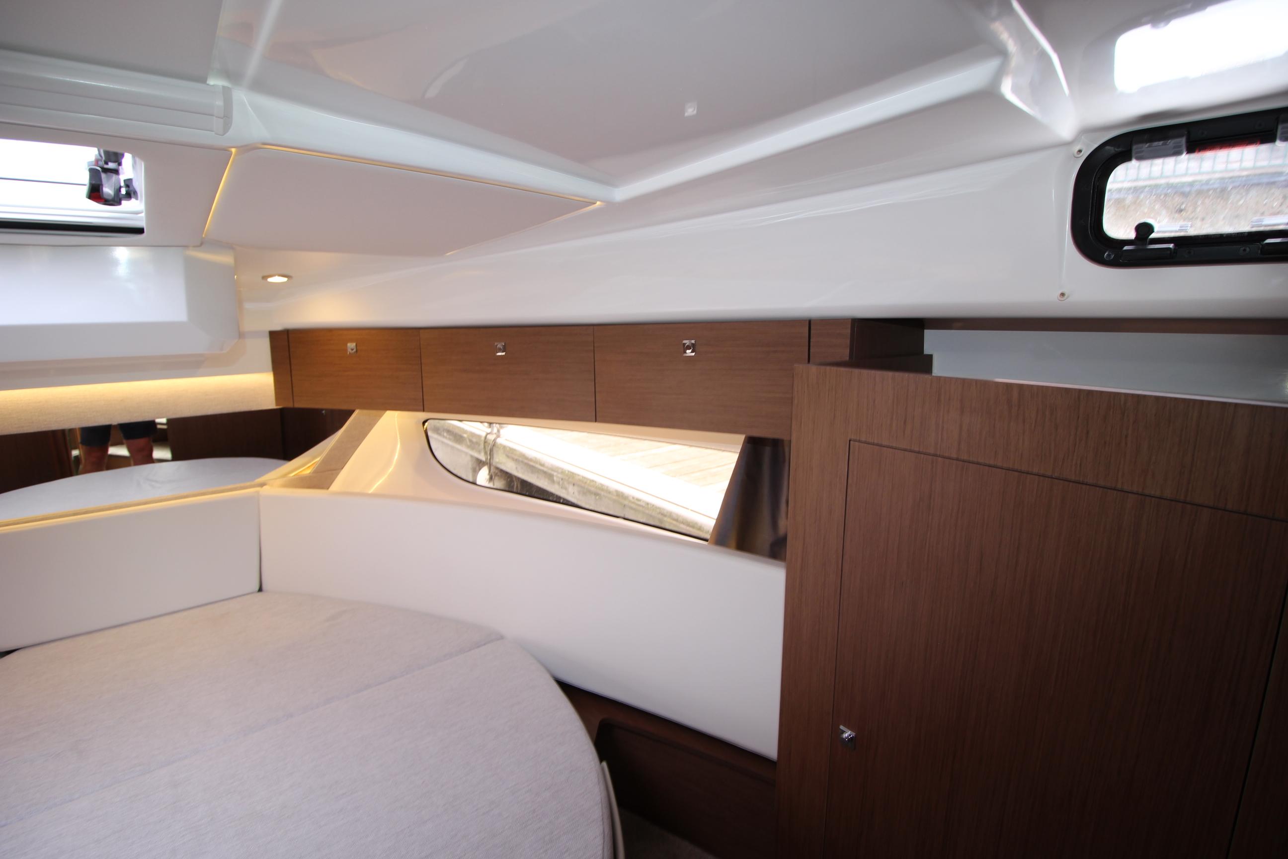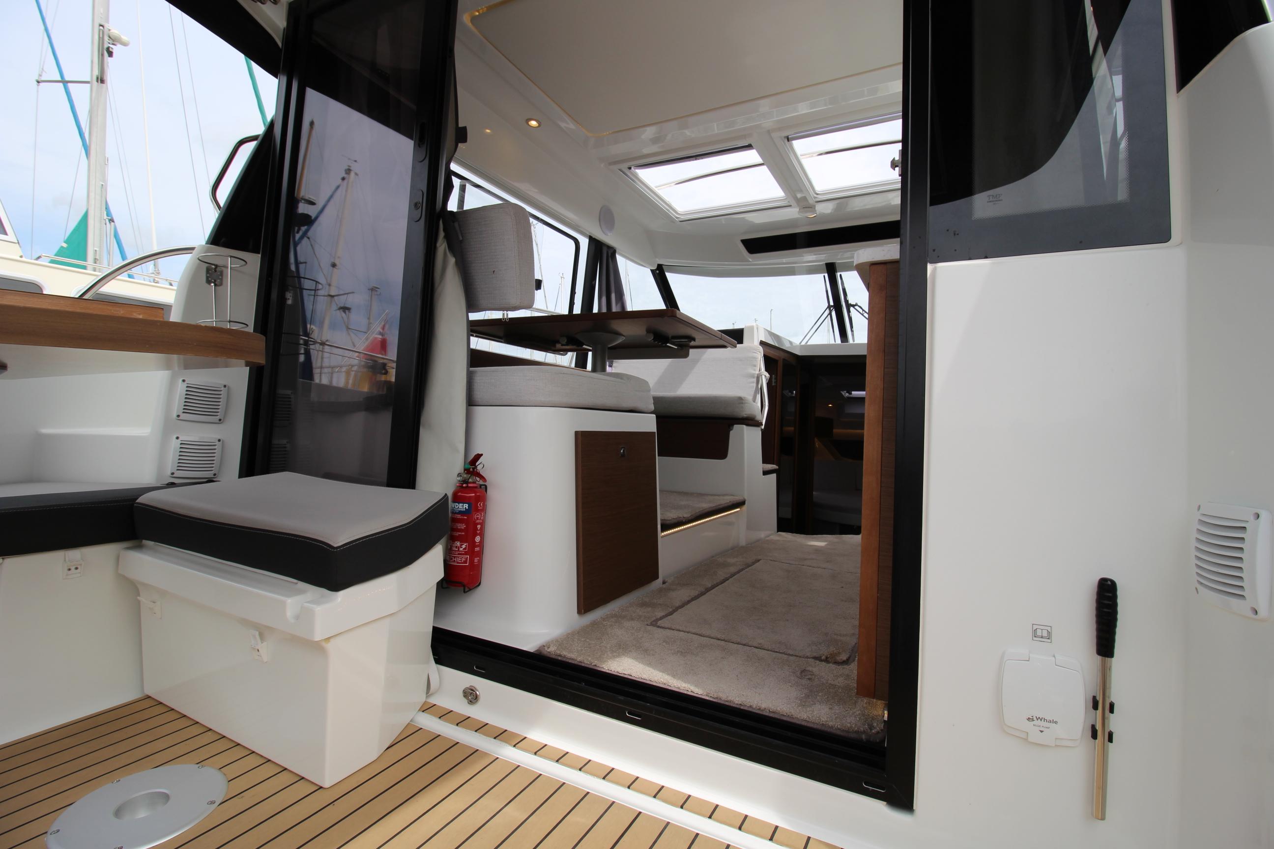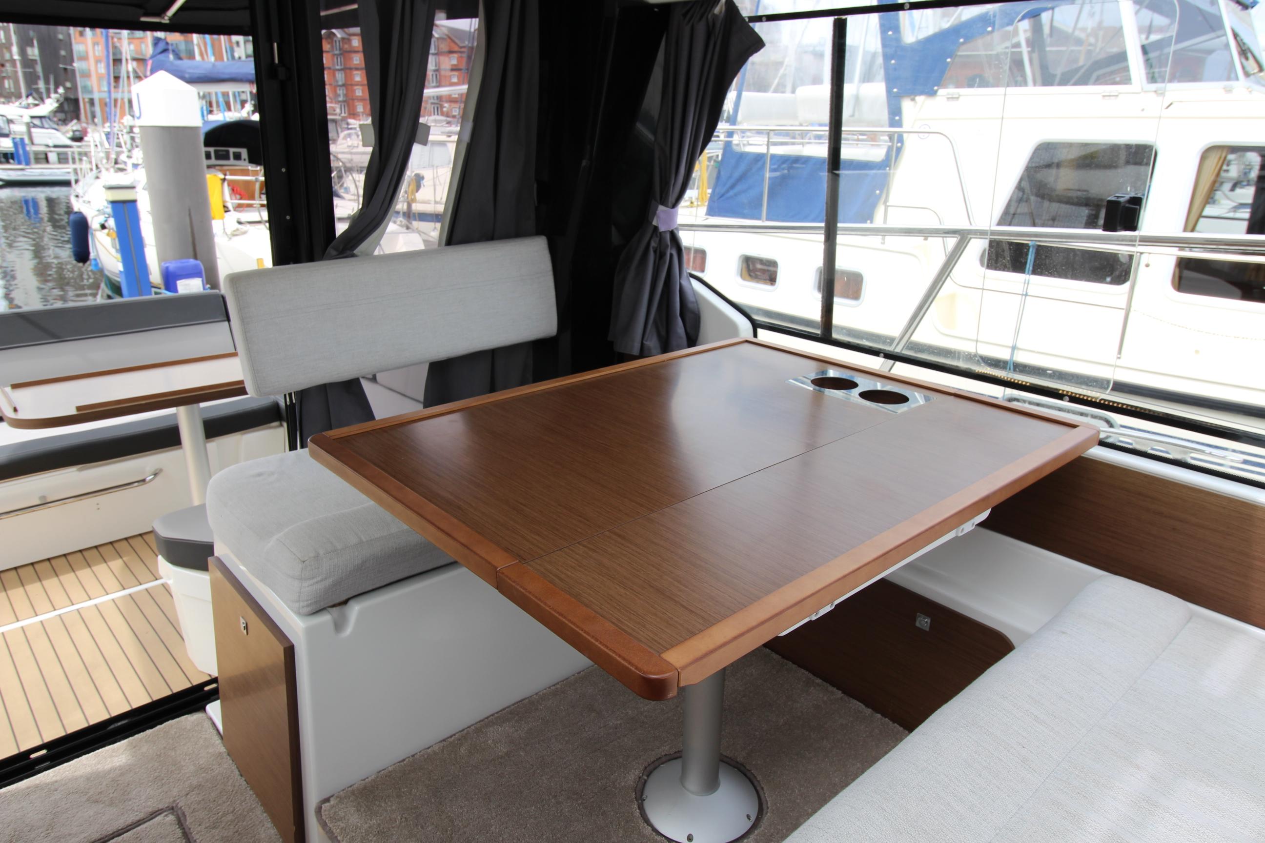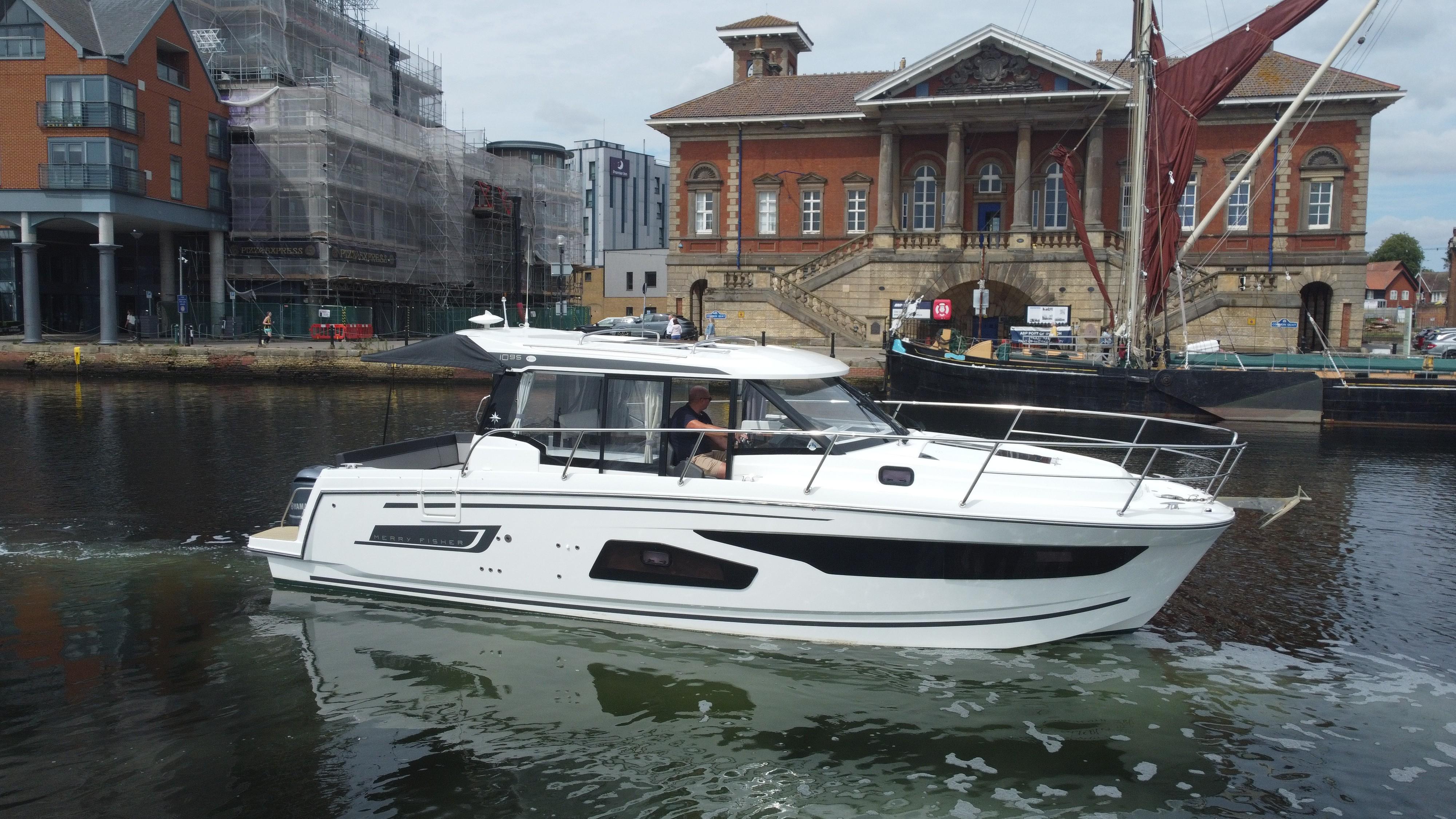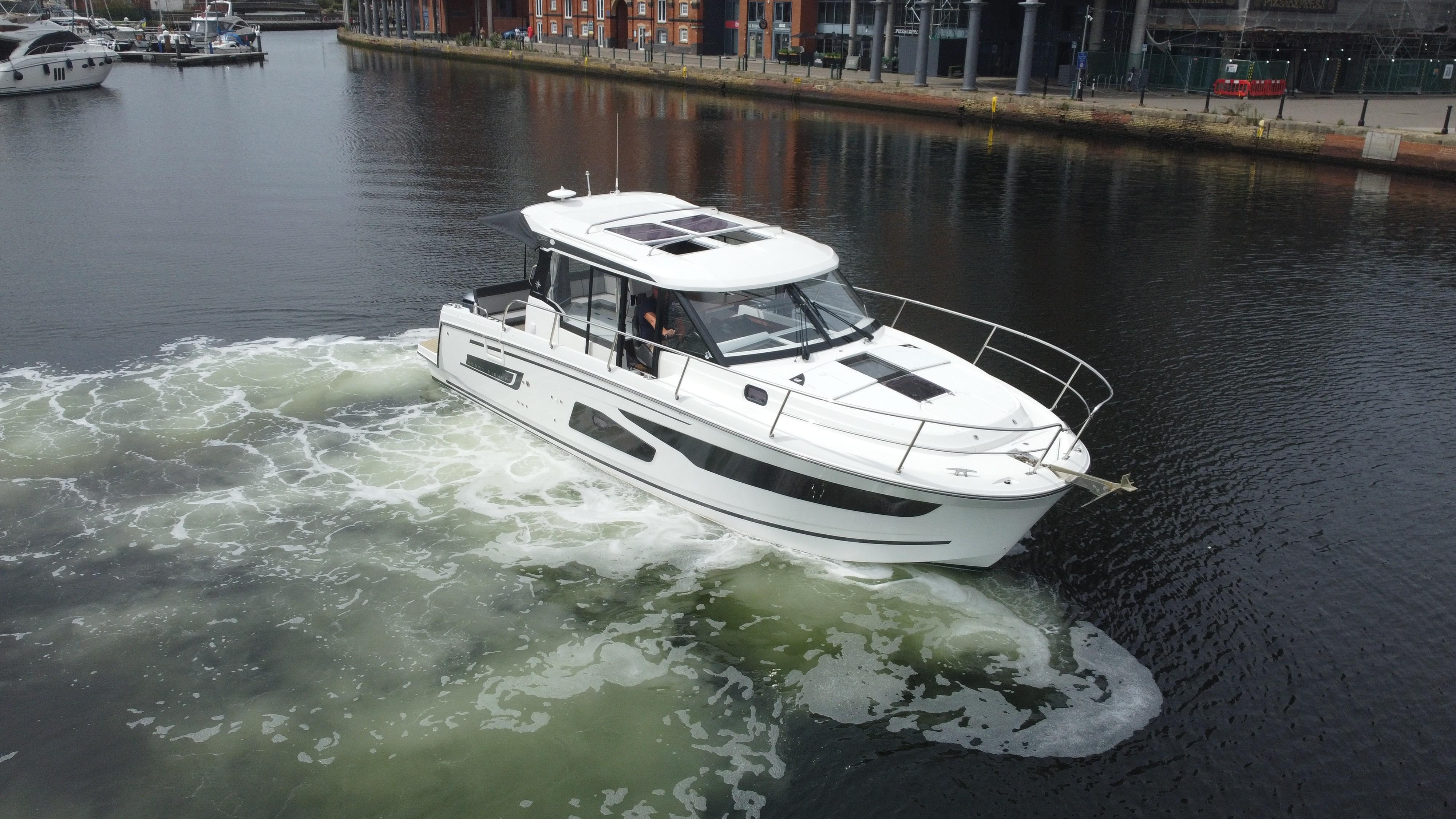Jeanneau Merry Fisher 1095, 2020 build, 2021 model and launch year and equipped with the larger Yamaha 300hp outboards, and bow thruster. The Jeanneau Merry Fisher 1095 offers 6 berths in three cabins along with a large cockpit for entertaining with family and friends. The vessel is a true all-year-round boat with a full closing canopy for the cockpit and a great elevated saloon the offers a 360 degree view with diesel blow air heating. The vessel is presented with a great specification that includes bow thruster, 12″ Garmin chartplotter, Webasto diesel heating & hot water, Fusion audio system, electric toilet, synthetic teak cockpit flooring, bimini and cockpit enclosure, please see full specification listed below. This Burton Waters stock boat benefits from being copper coated from new, and transport can be arranged for anywhere in the UK. Viewings 6 days a week at our Ipswich office. *Part exchange considered*