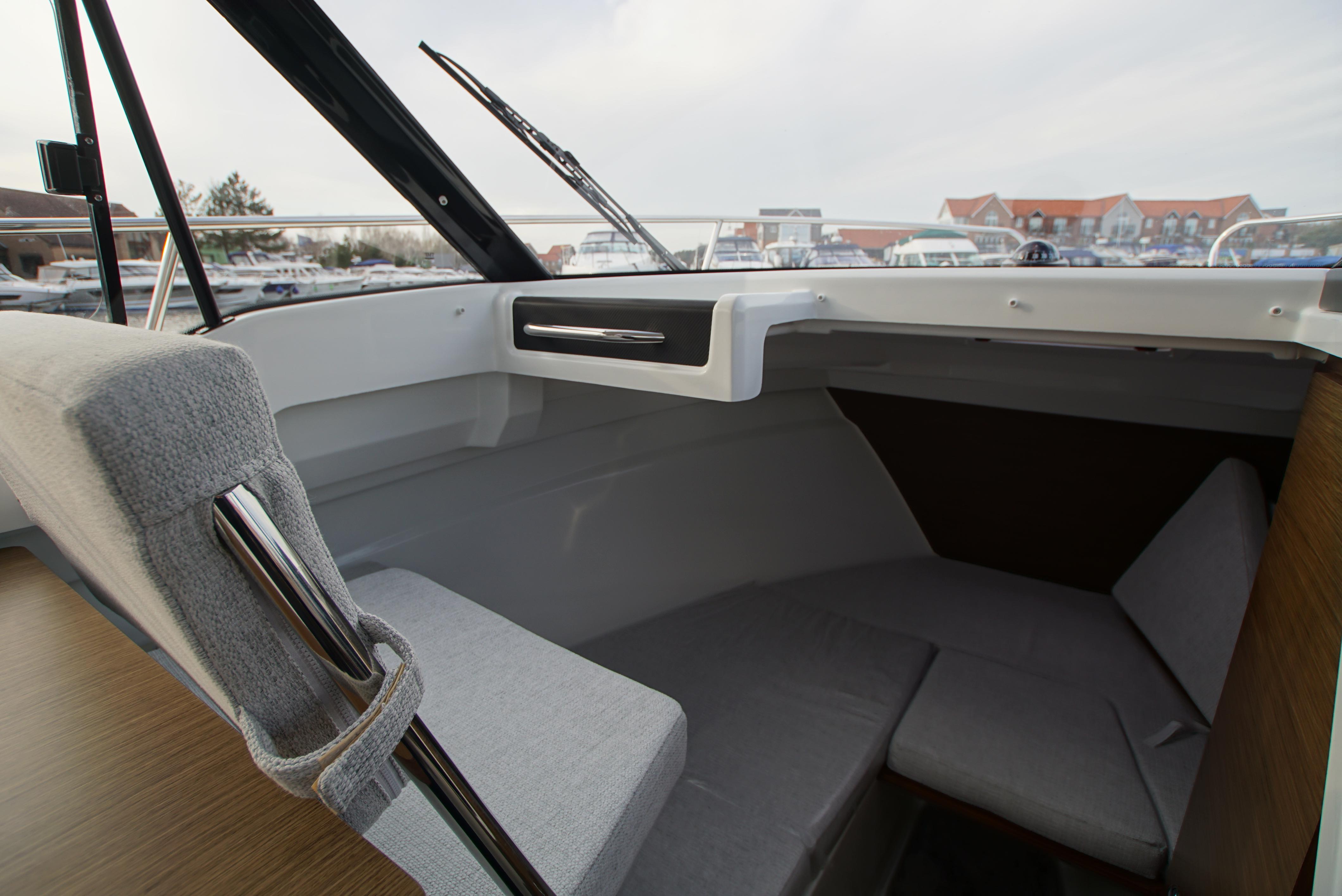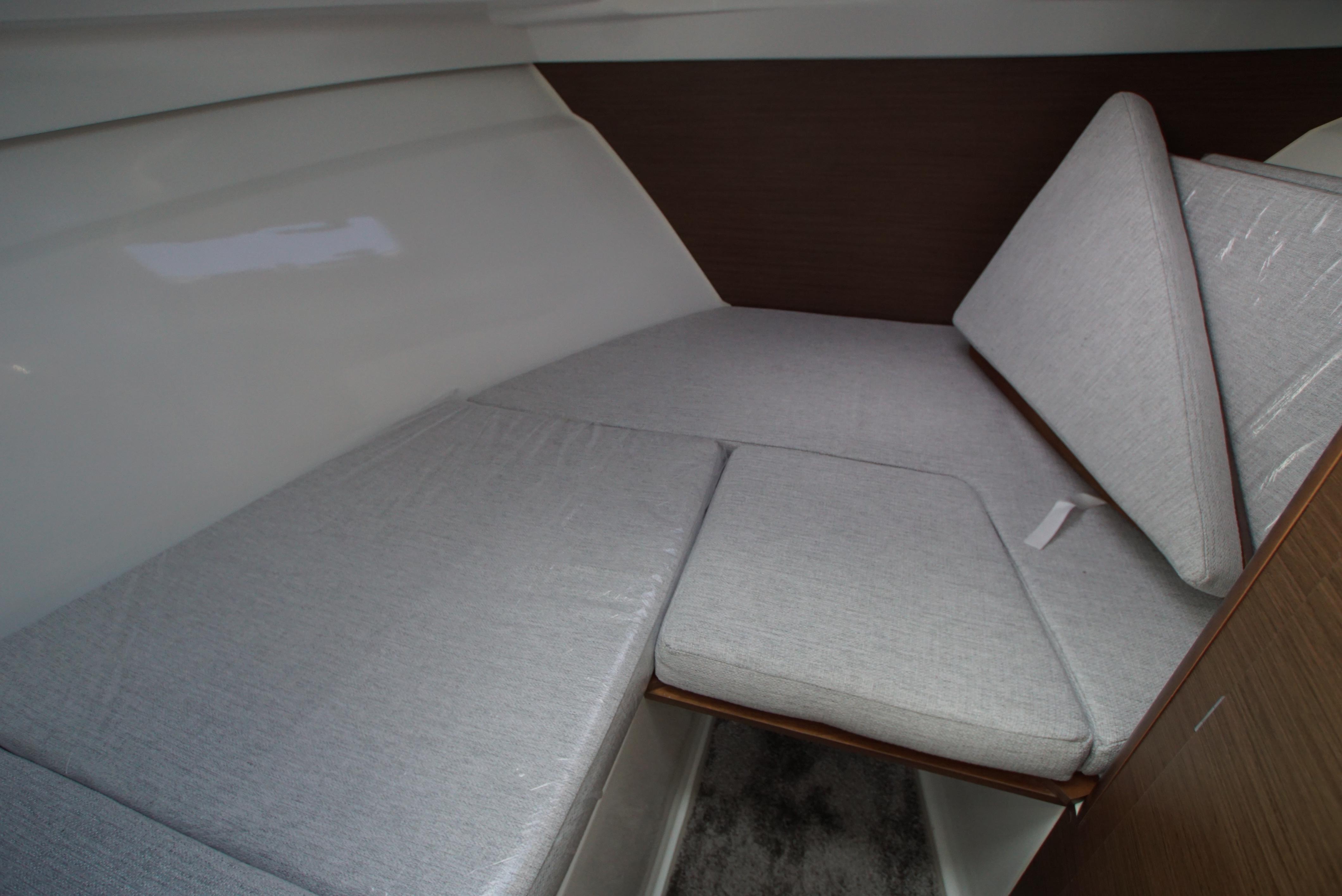 This vessel includes a Premiere Pack trim level including a moveable backrest for the co-pilot bench for optimal comfort and convenience, wheelhouse sliding hatch, aft cockpit bench cushions (seats and backrests, and sliding window.