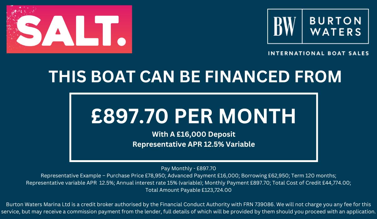 In stock and ready to go! Originally £89,950, now just £72,950. Powered by a Yamaha 150hp outboard engine, perfect for coastal cruising and inland waterways.