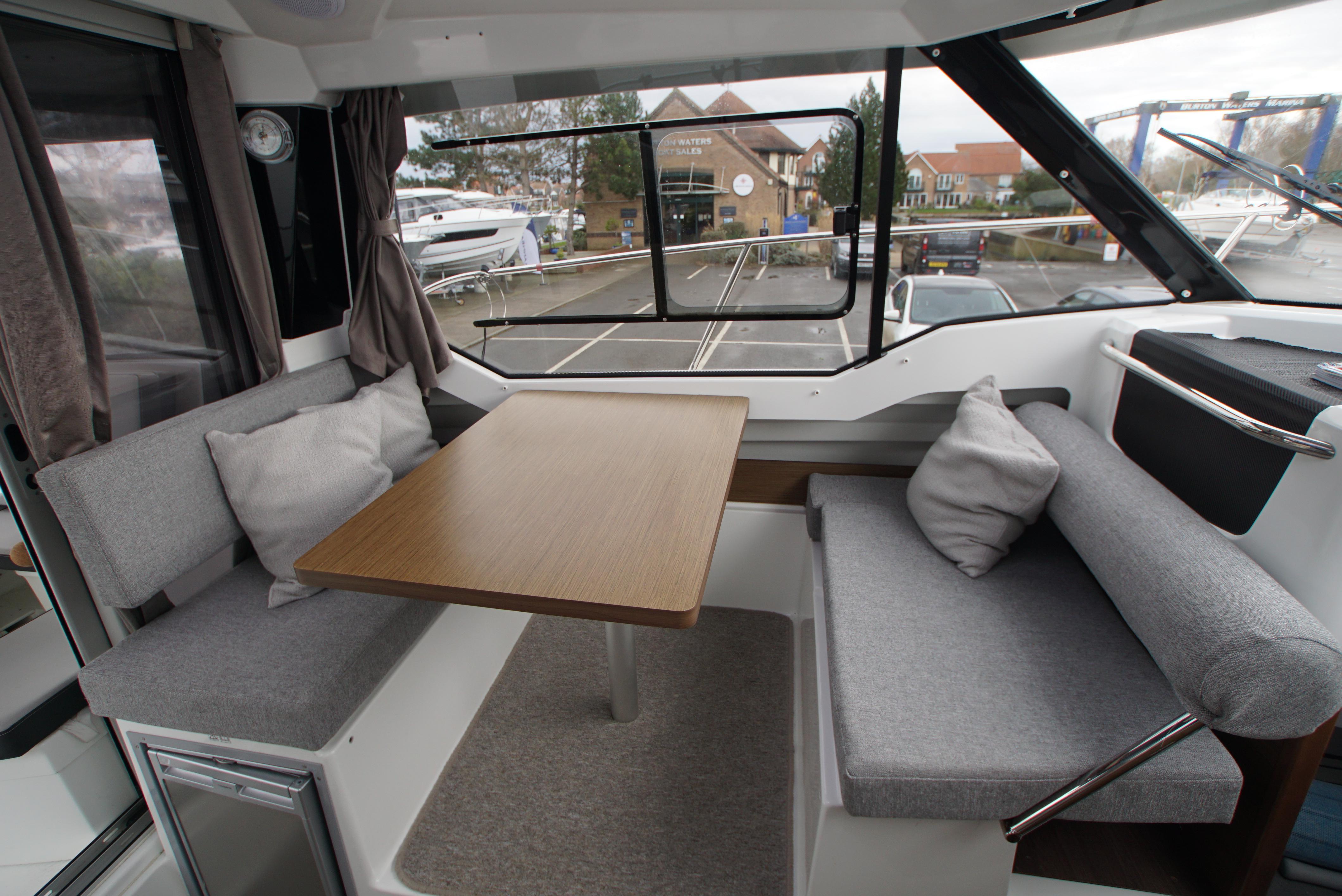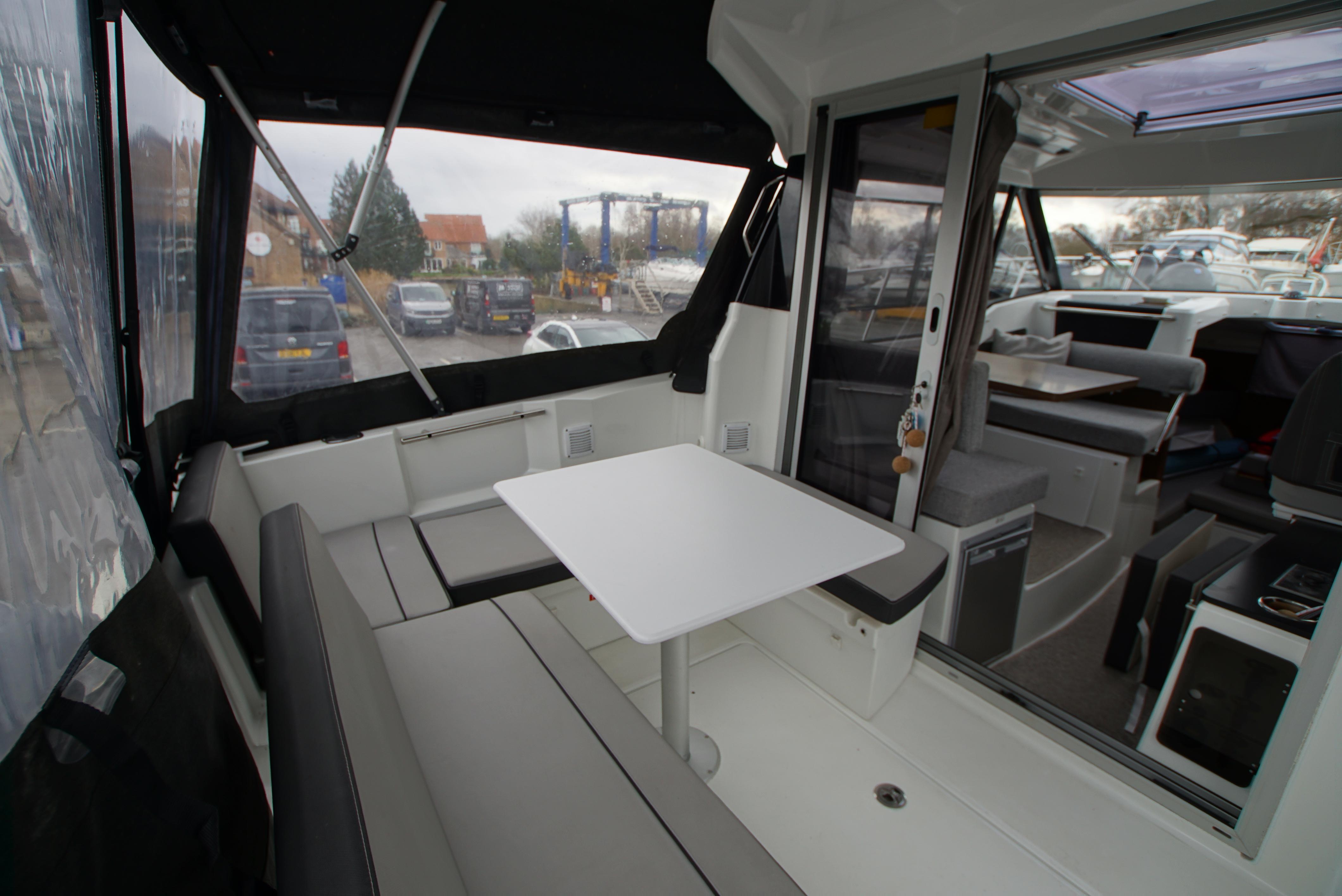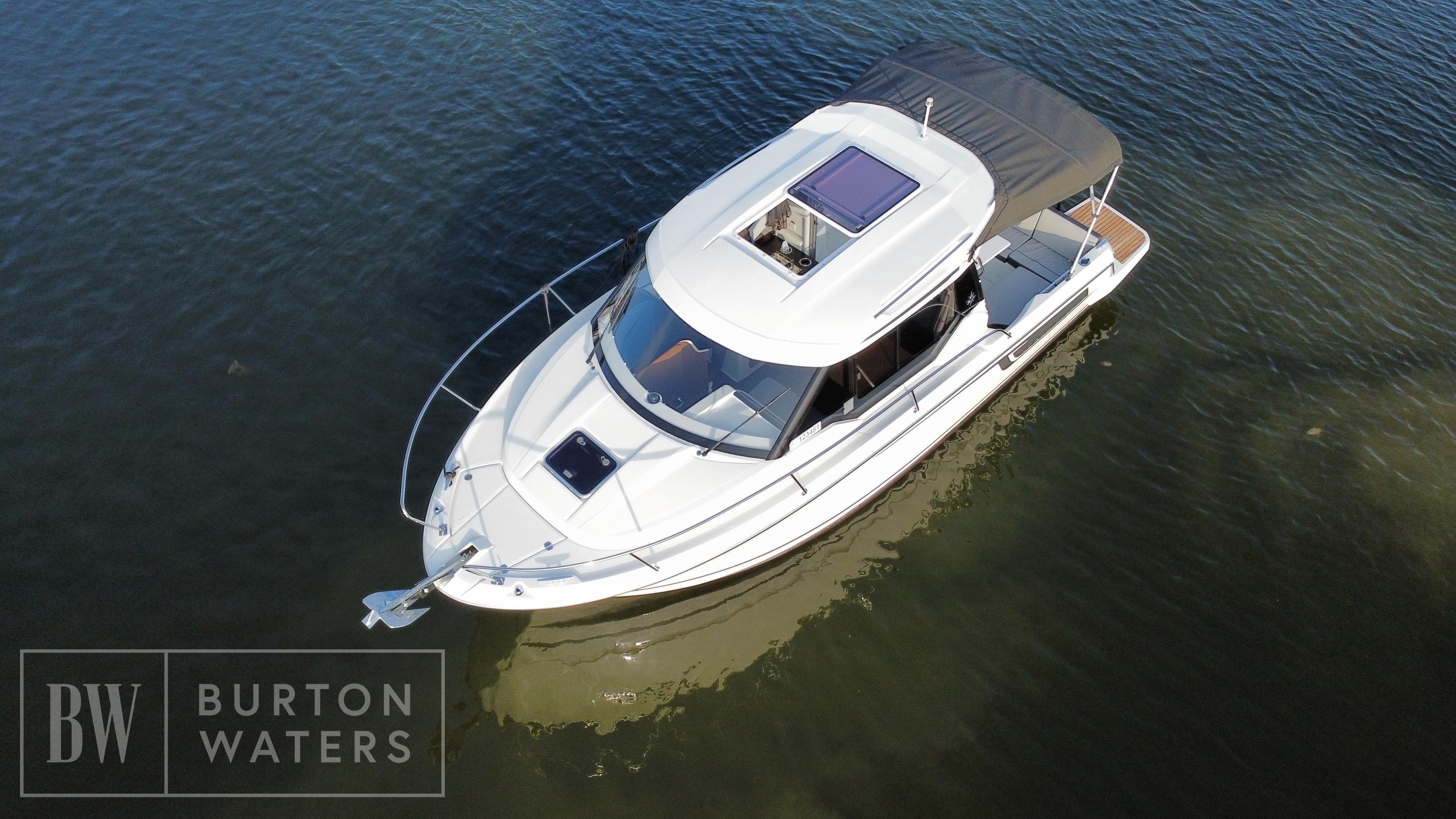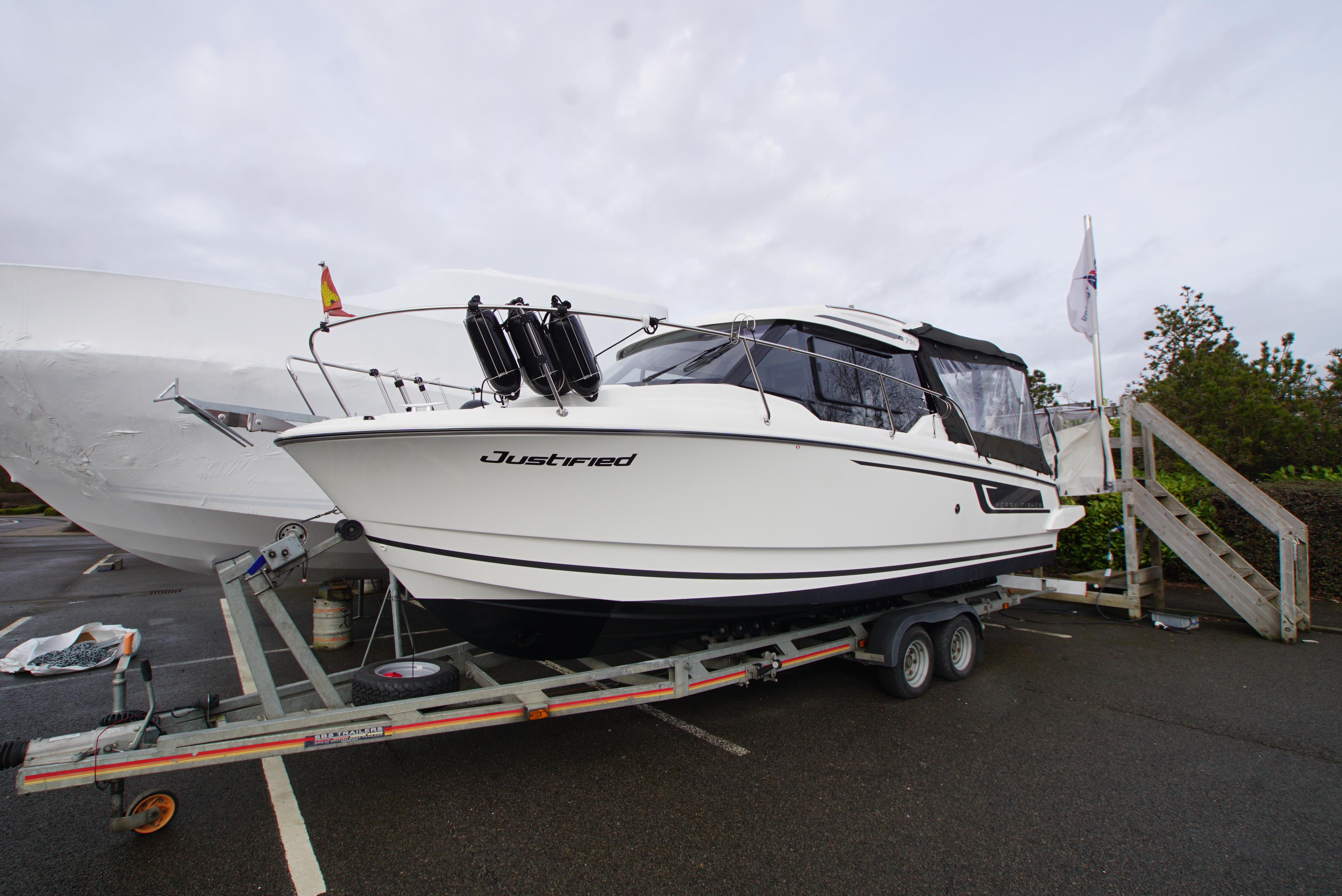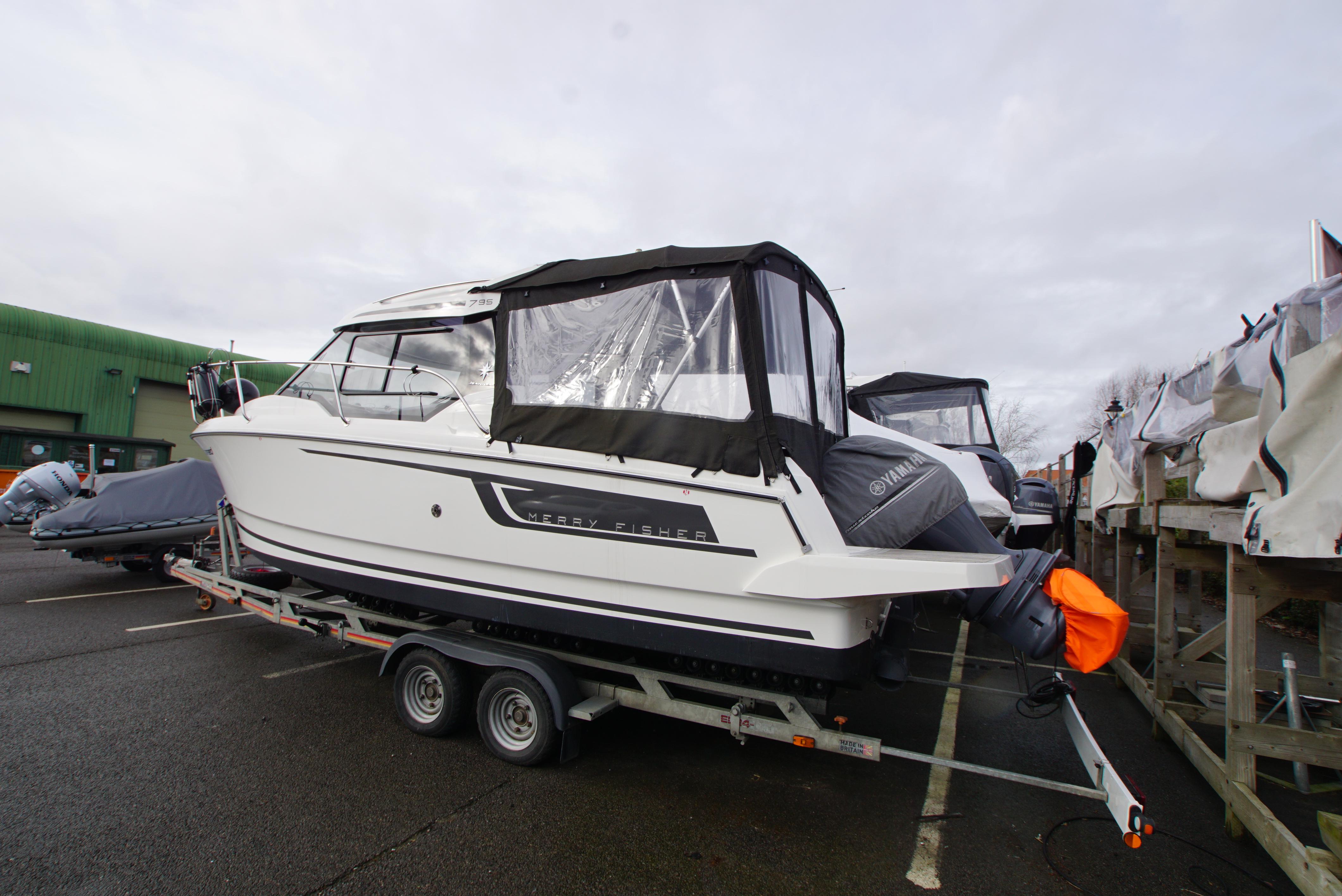 Jeanneau Merry Fisher 795, 2019 build and model year, equipped with a single Yamaha 150 hp outboard with only 130 hours completed. ‘Justified’ is presented in excellent condition and boasts a huge specification which includes: trim level Premier Pack*, electric windlass, U-shape cockpit saloon sundeck, cockpit sun awning and enclosure, teak bathing platforms, bow & stern thrusters on a remote, Webasto diesel heating with cockpit outlet, Fusion audio system, luxury galley, 40L Waeco fridge, marine toilet to holding tank, Garmin touchscreen plotter, carpets and more. This ever-popular model has had two owners from new and supplied each time by Burton Waters. Boat Safety Certificate valid until August 2027 so ready to cruise the inland or coastal waters. Available to view 7 days a week at Burton Waters in Lincoln. A recent SBS 3500 roller trailer is available with the boat by separate negotiation.