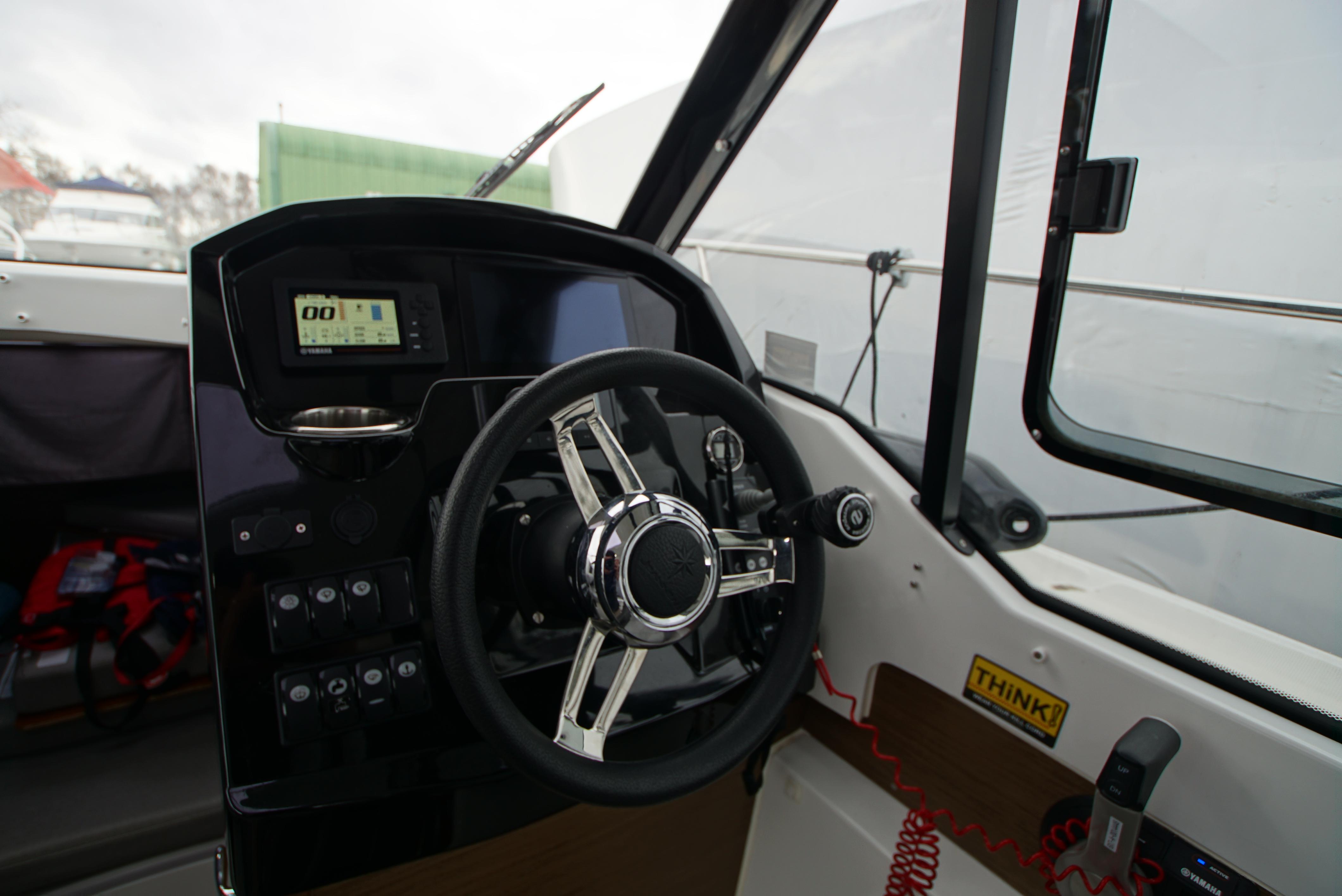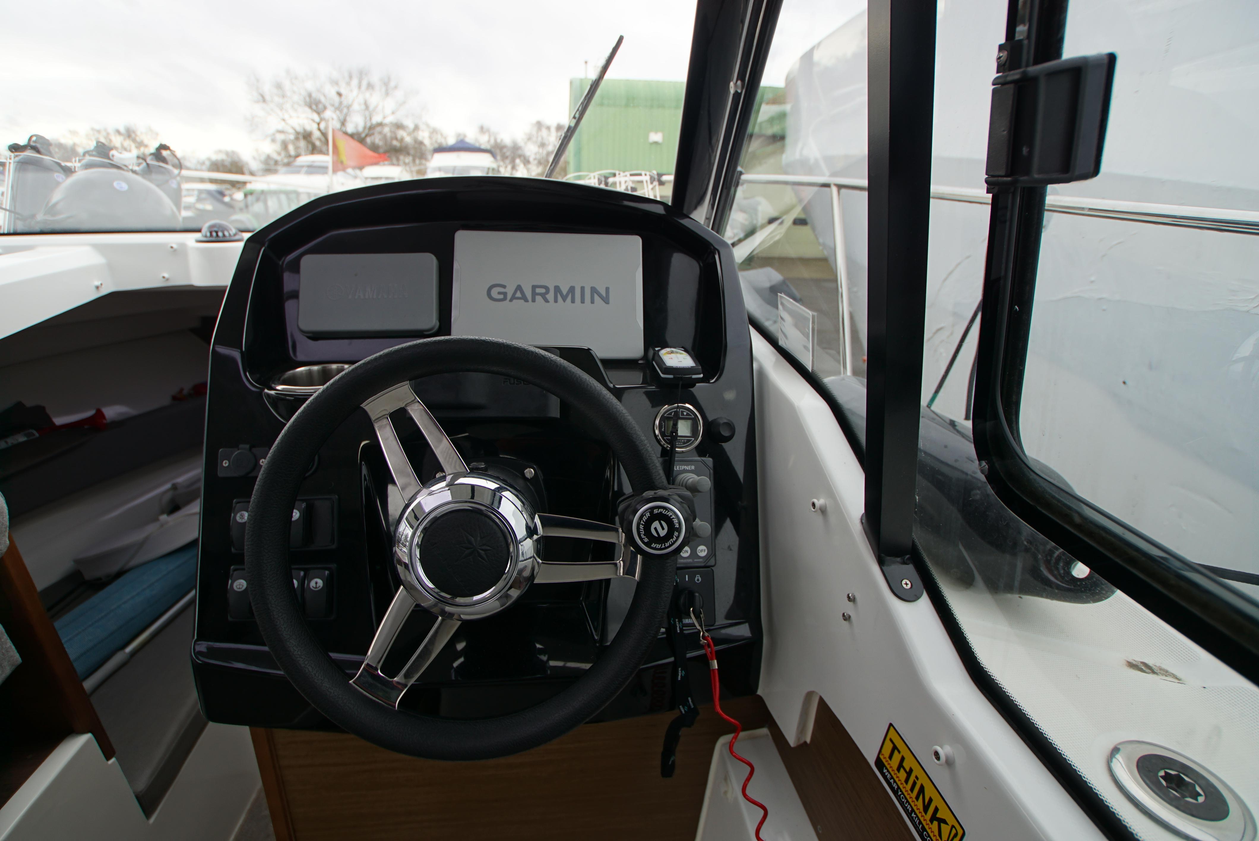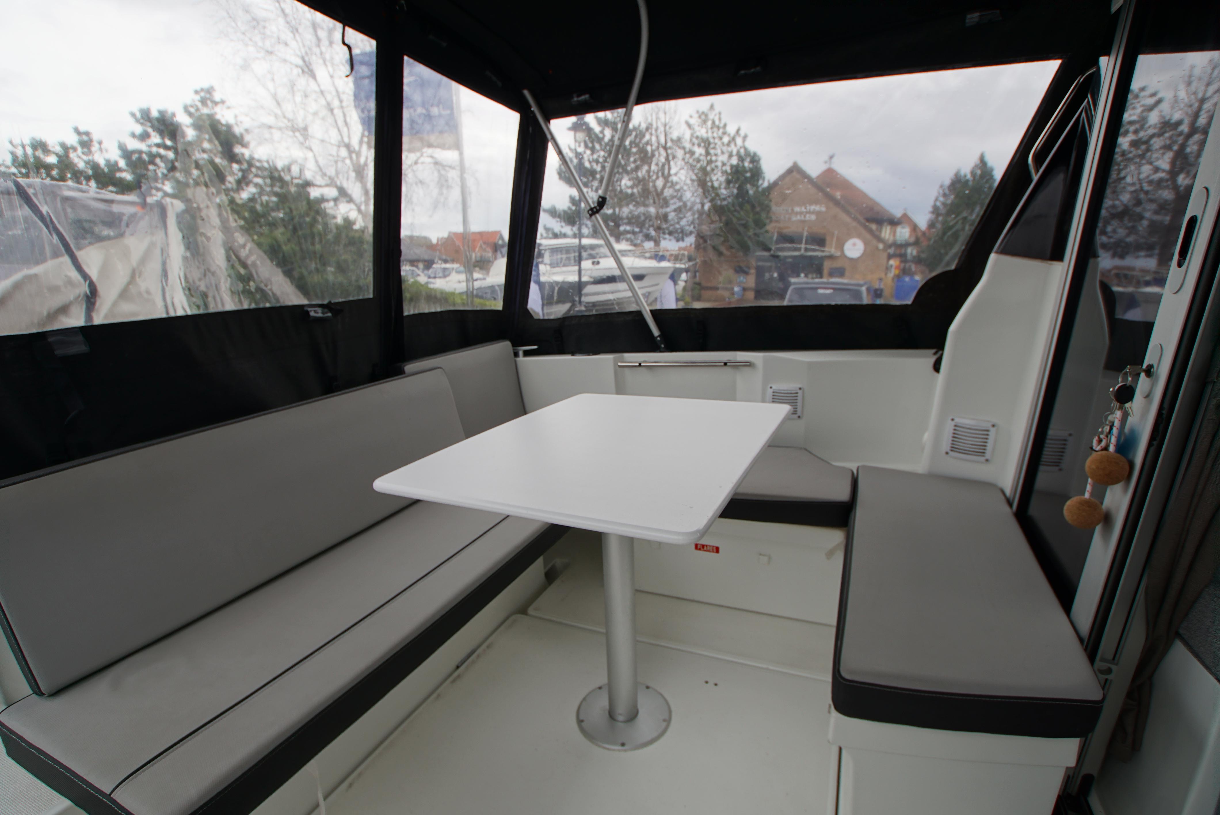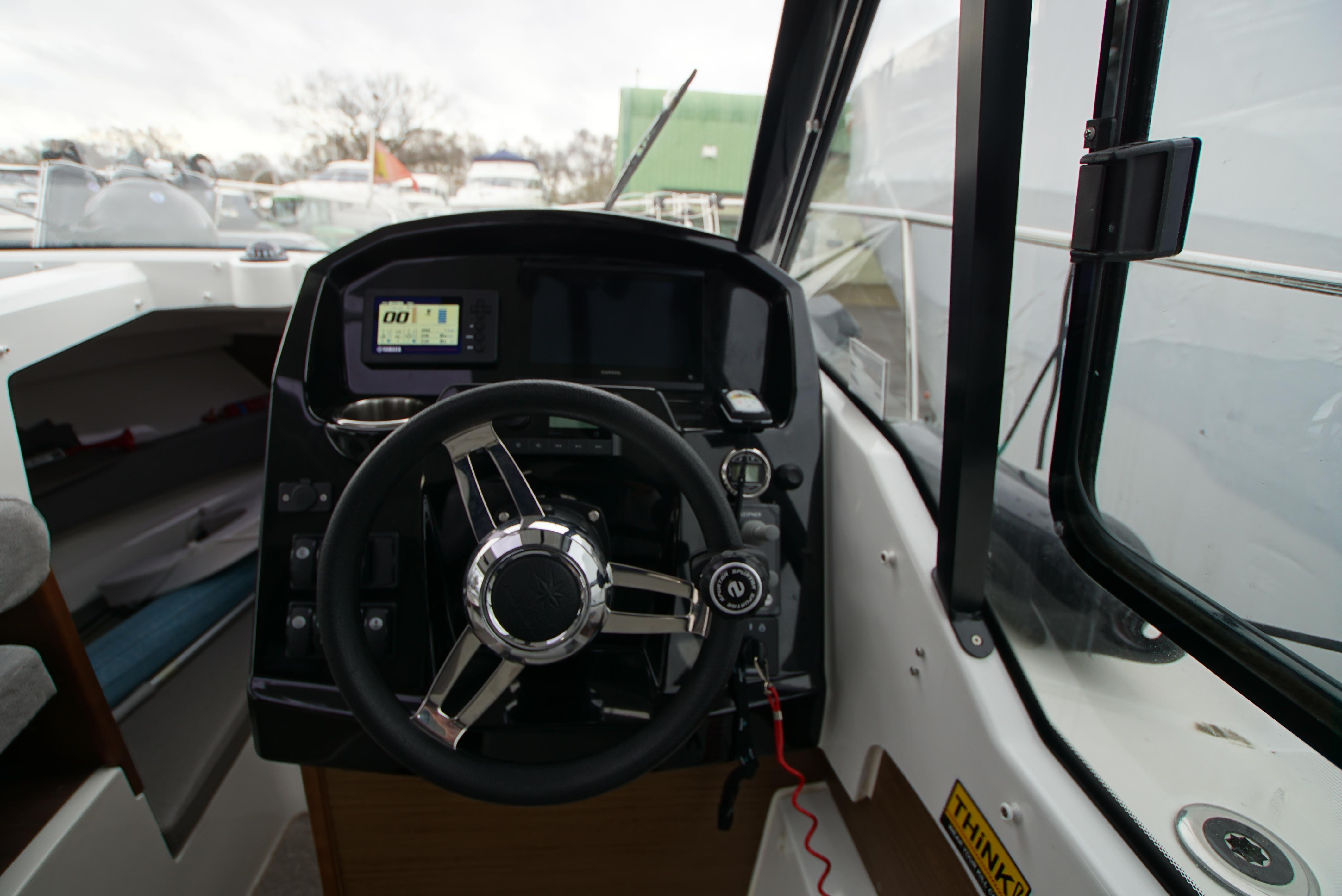 Jeanneau Merry Fisher 795, 2019 build and model year, equipped with a single Yamaha 150 hp outboard with only 130 hours completed. ‘Justified’ is presented in excellent condition and boasts a huge specification which includes: trim level Premier Pack*, electric windlass, U-shape cockpit saloon sundeck, cockpit sun awning and enclosure, teak bathing platforms, bow & stern thrusters on a remote, Webasto diesel heating with cockpit outlet, Fusion audio system, luxury galley, 40L Waeco fridge, marine toilet to holding tank, Garmin touchscreen plotter, carpets and more. This ever-popular model has had two owners from new and supplied each time by Burton Waters. Boat Safety Certificate valid until August 2027 so ready to cruise the inland or coastal waters. Available to view 7 days a week at Burton Waters in Lincoln. A recent SBS 3500 roller trailer is available with the boat by separate negotiation.