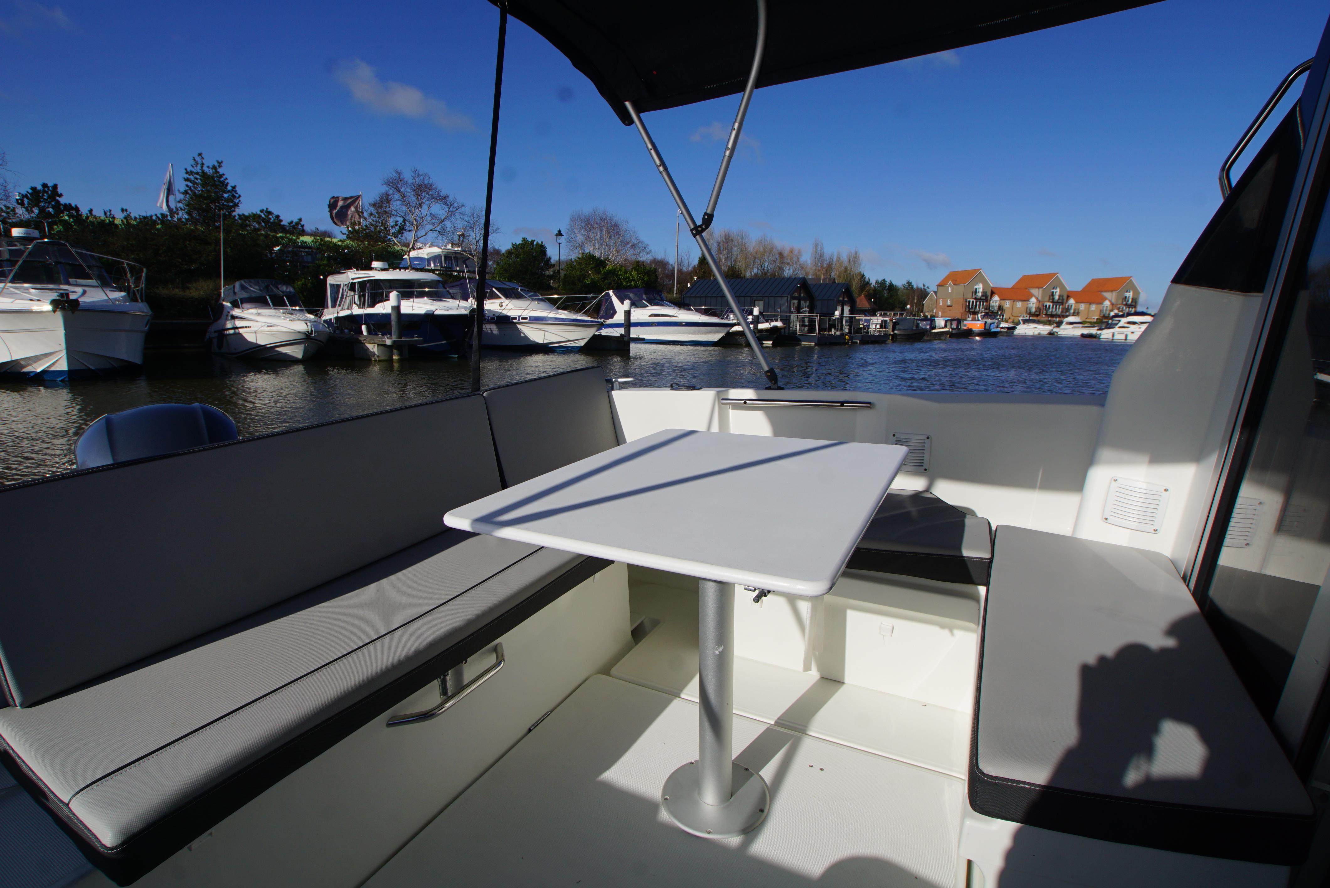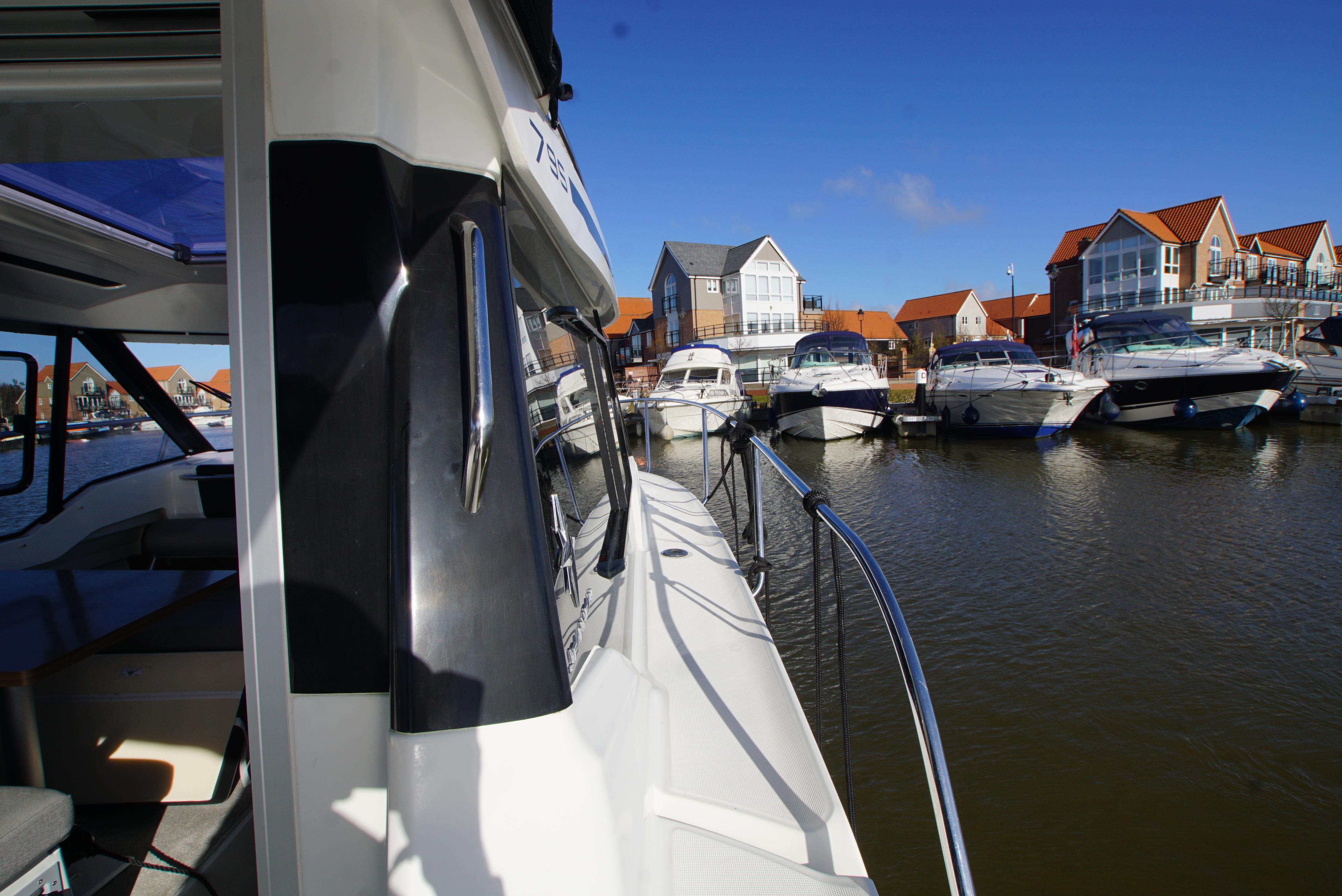 Available Now!! 2019 model launched 2020 Merry Fisher 795 equipped with a Yamaha 200hp outboard motor and a specification that includes diesel heating, Bow thruster, Fusion stereo, VHF, U-shape cockpit seating, saloon & sundeck complement, swimming platforms with teak, shore power plug and battery charger, luxury galley, 42l fridge, wheelhouse interior curtains and cabin separation curtain, marine toilet and holding tank and sun awning. this very popular boat is available now all ready for this season. Viewings 7 days a week in Lincoln.