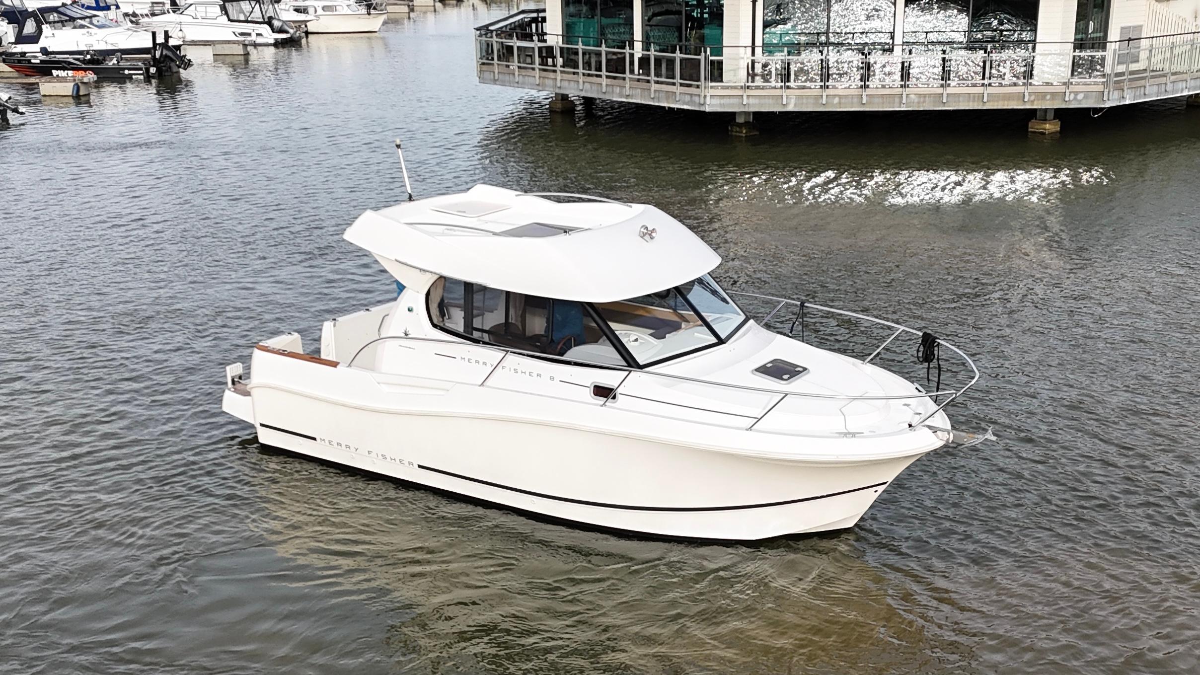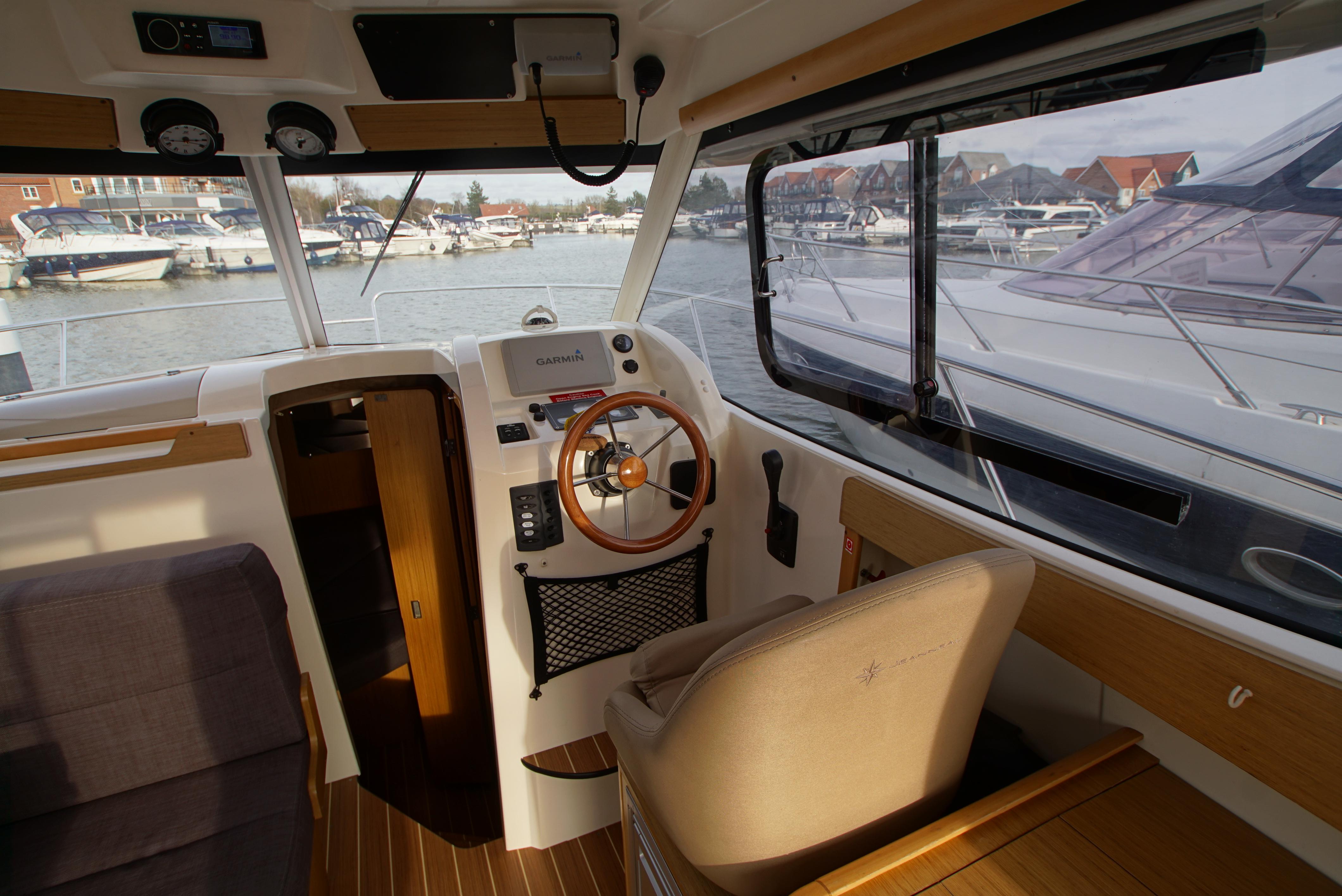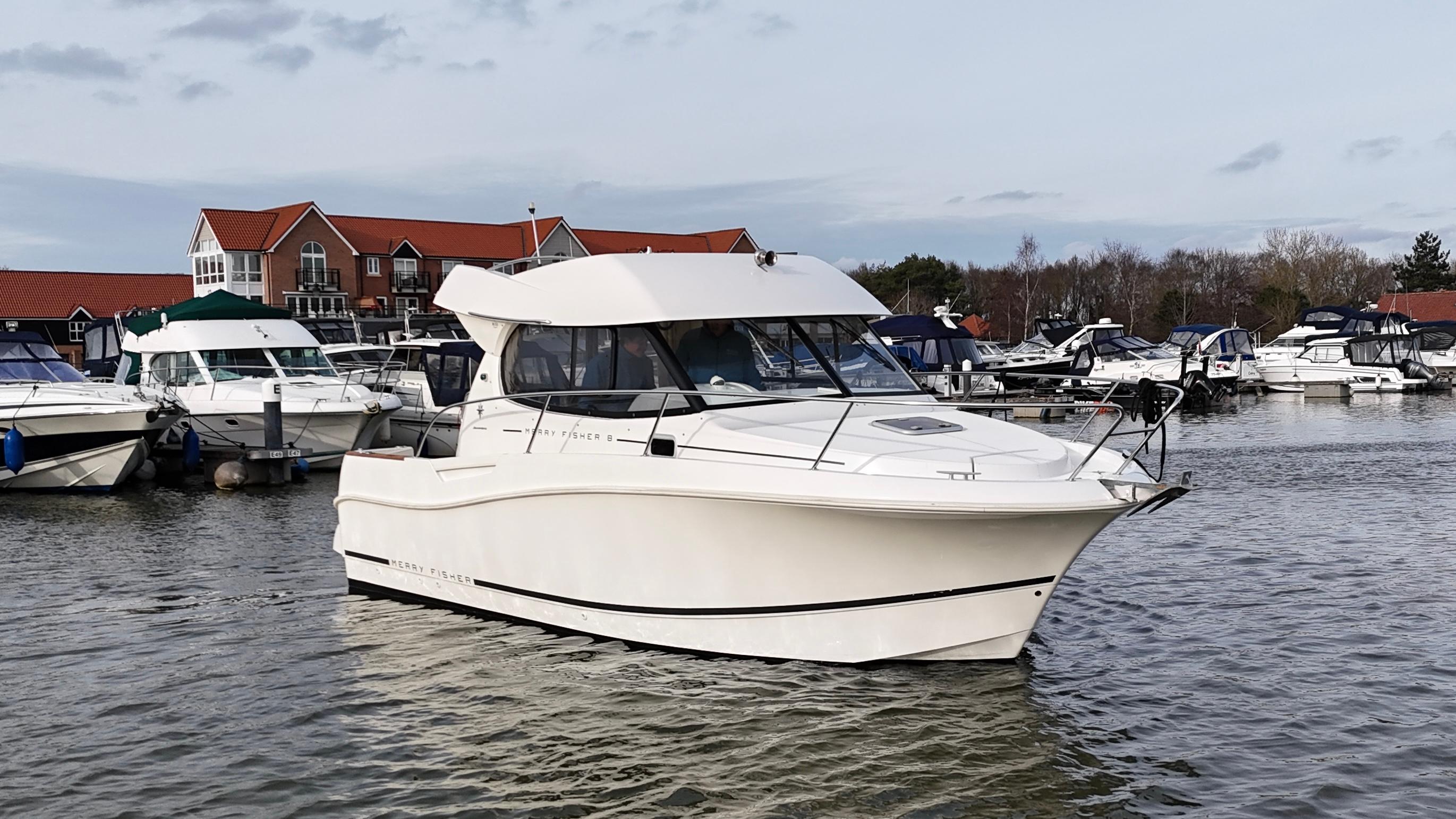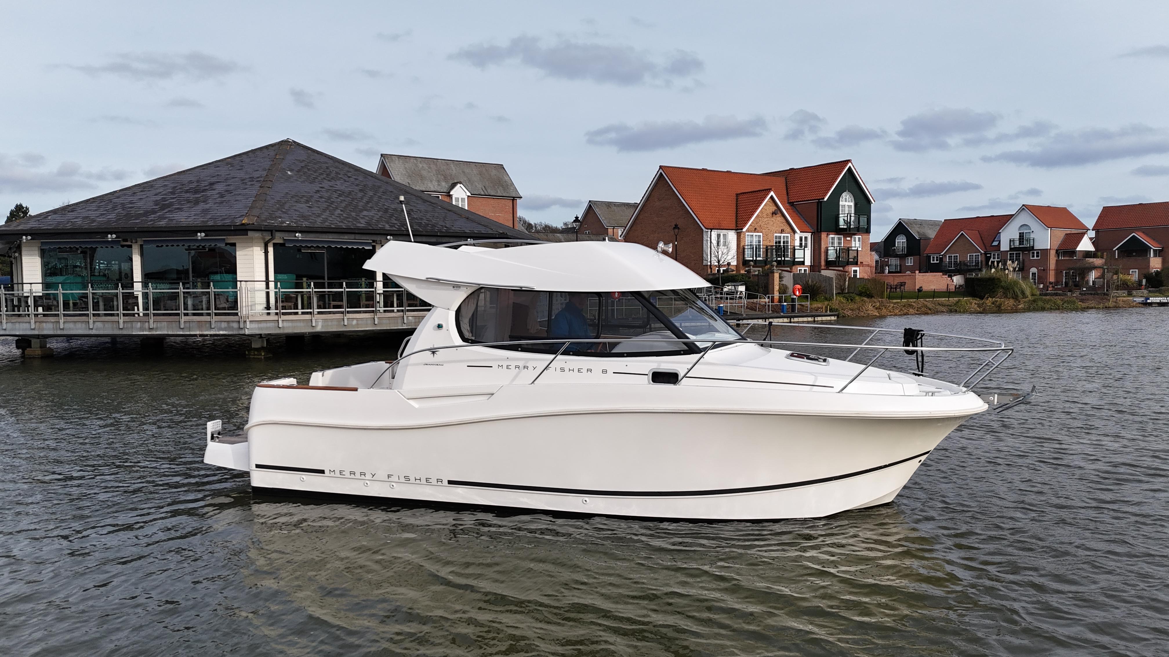 Jeanneau Merry Fisher 8, 2010 build. This well presented Merry Fisher 8, offers economical and comfortable cruising. Powered by the inboard diesel Nanni 200hp, with only 655 hours. This boat offers excellent accommodation, as well as, well thought of saloon features in order to maximise space and the experience on the water. The boat includes a big specification, including a bow thruster, Garmin chart plotter, upgraded Fusion audio system, Heating, marine toilet, and much more… As one of our stock boats it has received a full engine service, antifoul and power polish. This boat will be supplied with a 3 months engine warranty. Part exchange available and viewings 7 days a week at Lincoln.