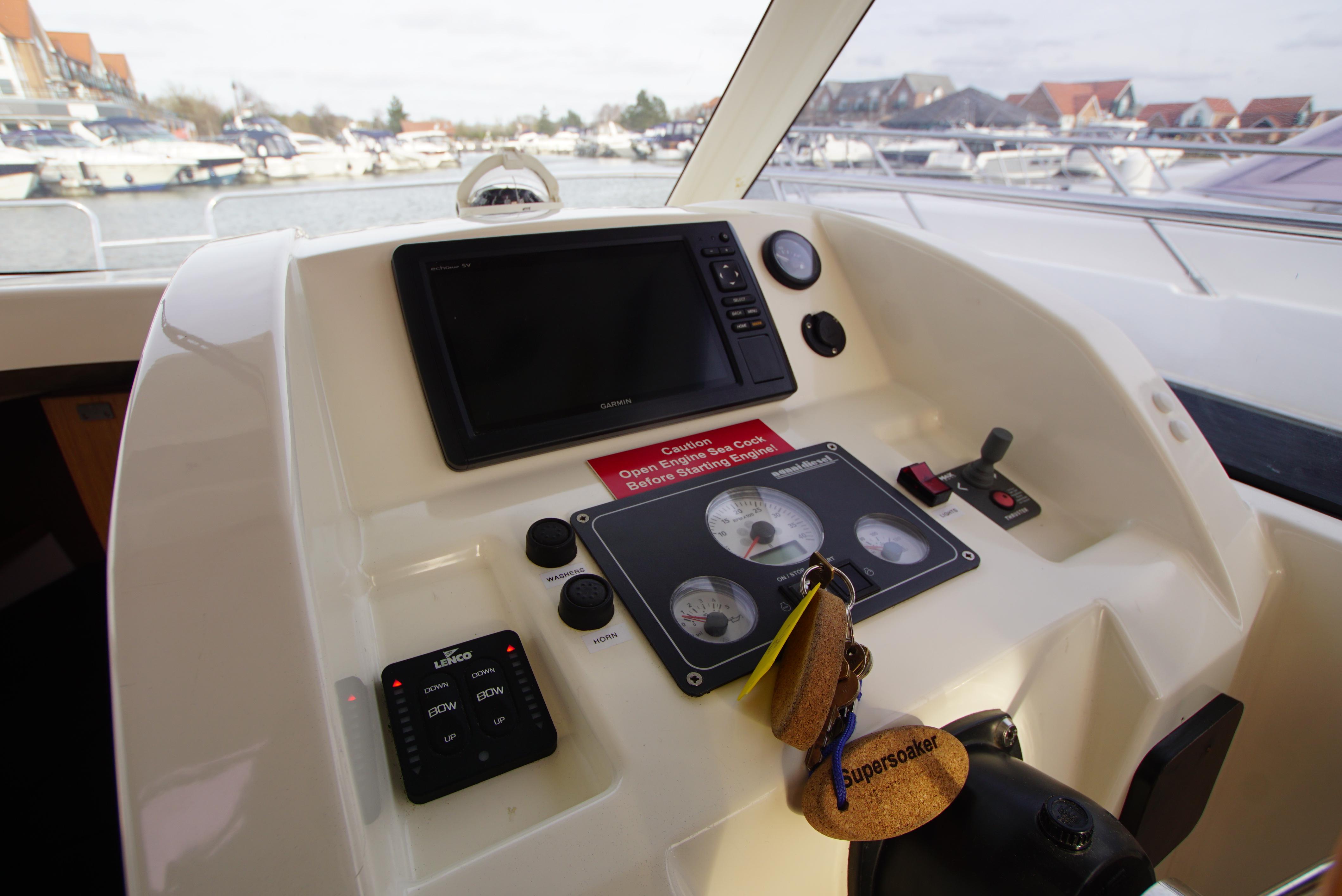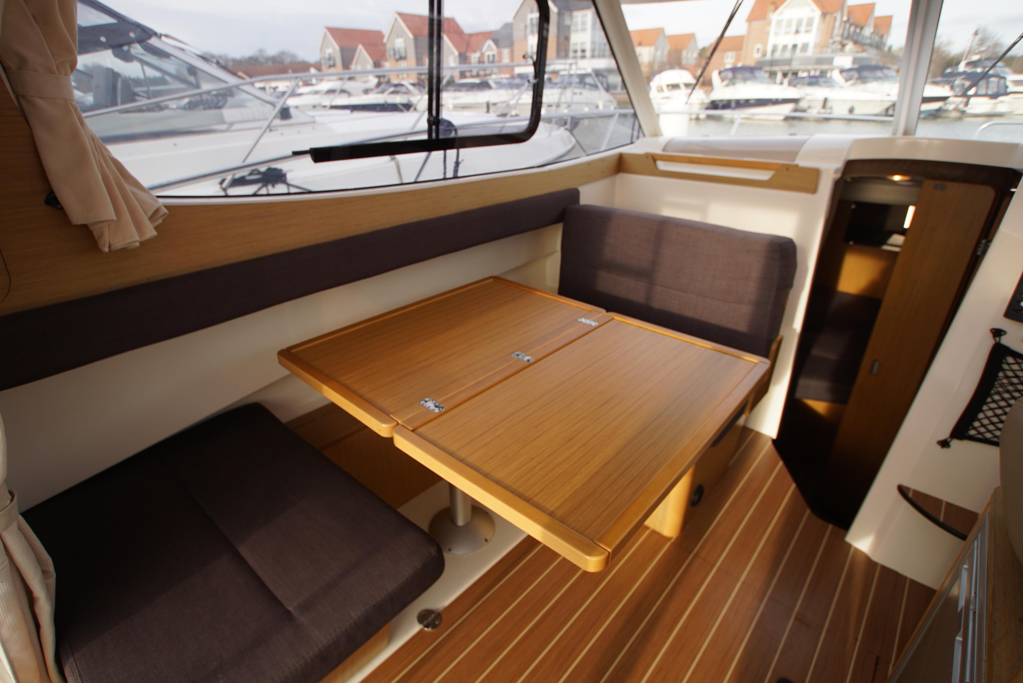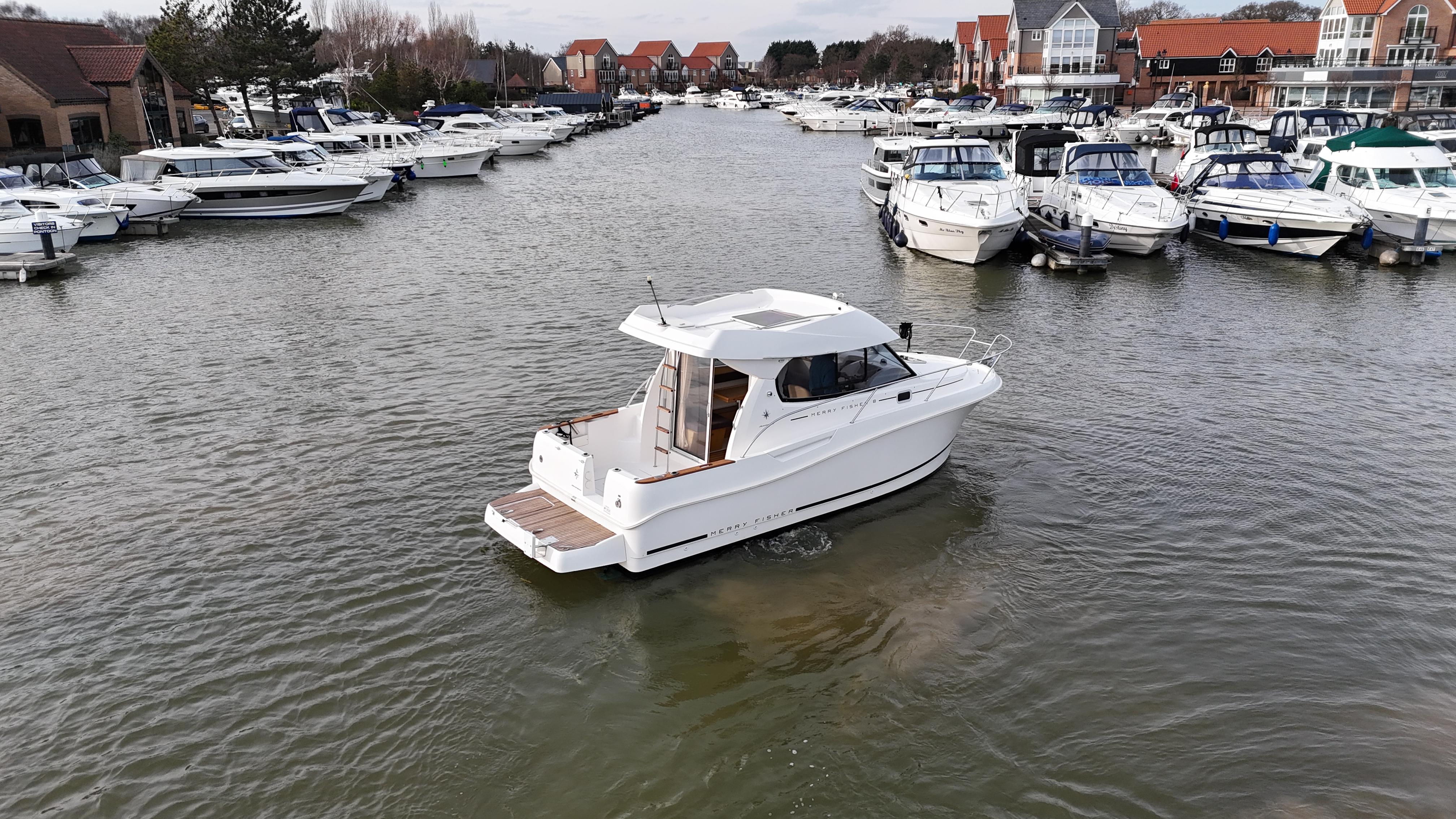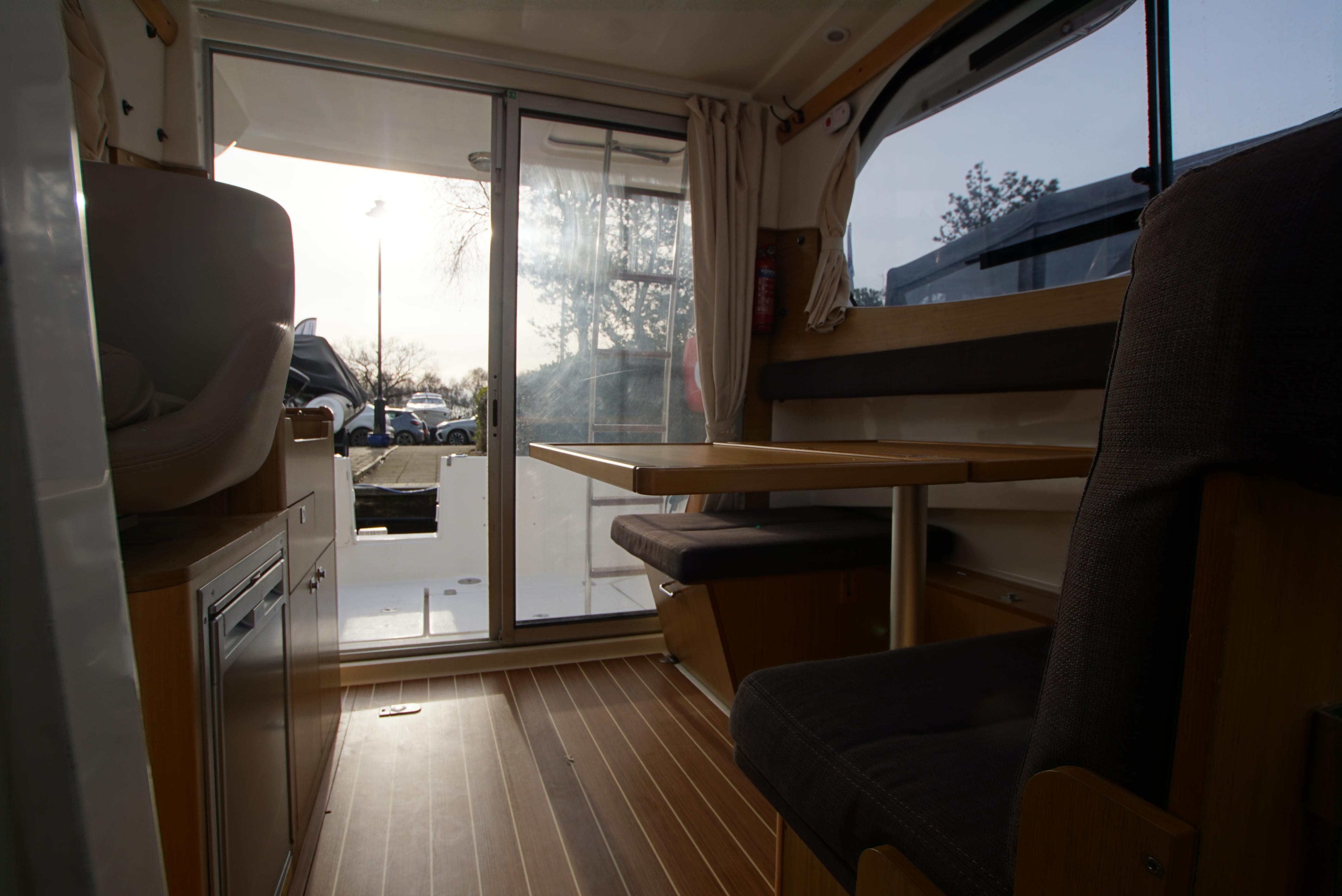 Jeanneau Merry Fisher 8, 2010 build. This well presented Merry Fisher 8, offers economical and comfortable cruising. Powered by the inboard diesel Nanni 200hp, with only 655 hours. This boat offers excellent accommodation, as well as, well thought of saloon features in order to maximise space and the experience on the water. The boat includes a big specification, including a bow thruster, Garmin chart plotter, upgraded Fusion audio system, Heating, marine toilet, and much more… As one of our stock boats it has received a full engine service, antifoul and power polish. This boat will be supplied with a 3 months engine warranty. Part exchange available and viewings 7 days a week at Lincoln.