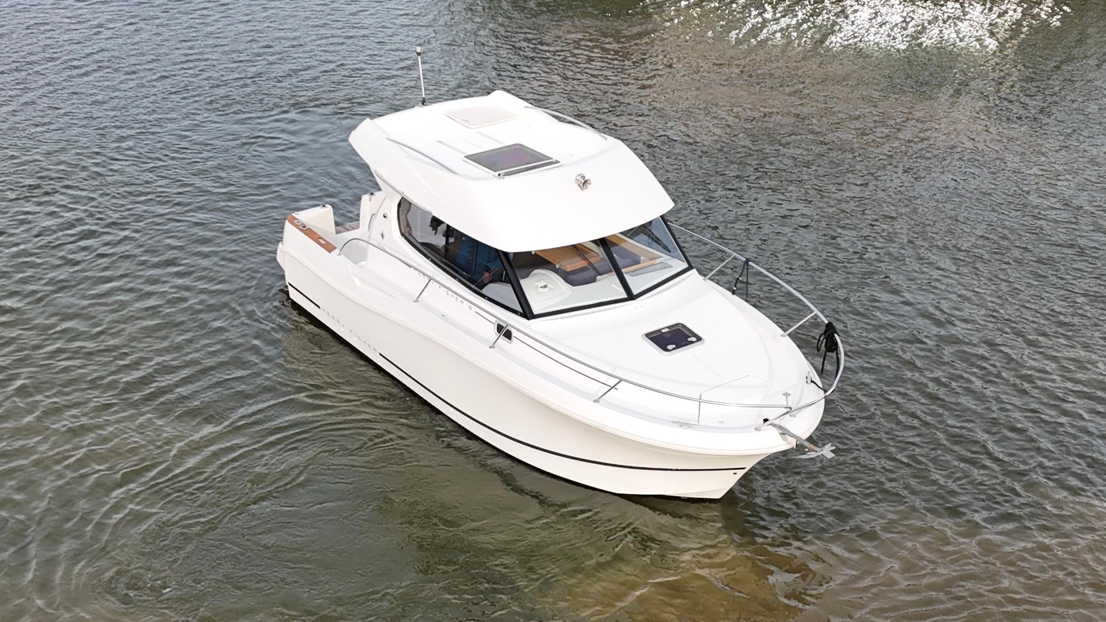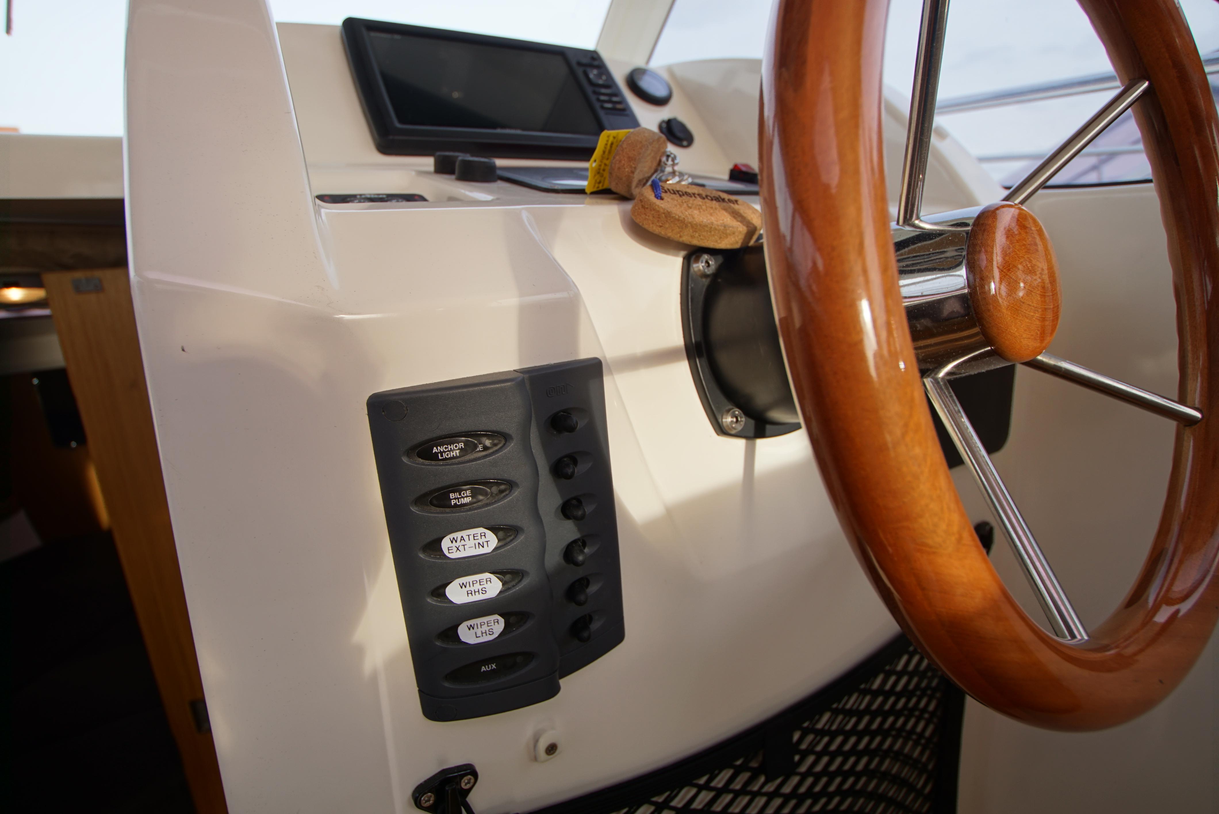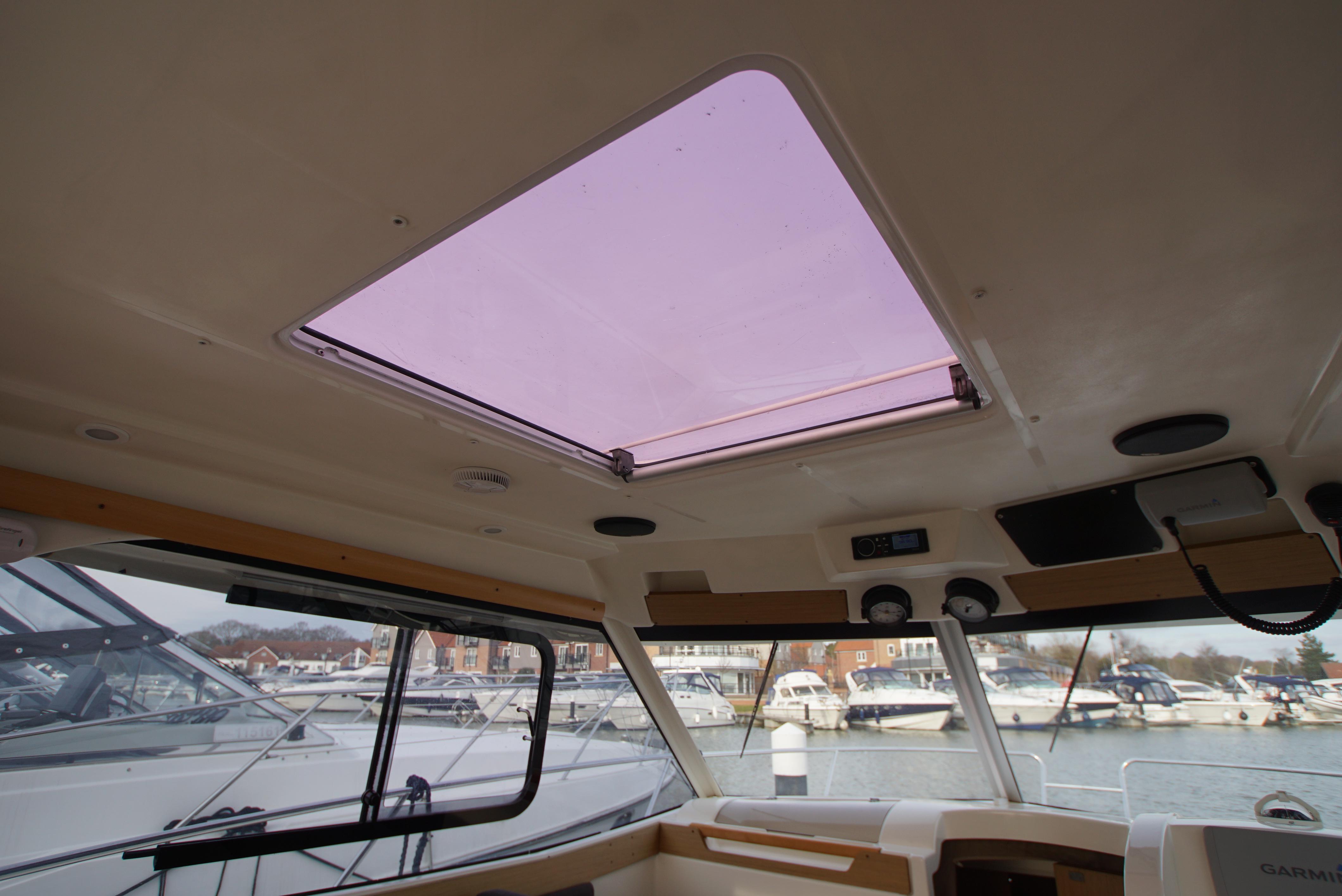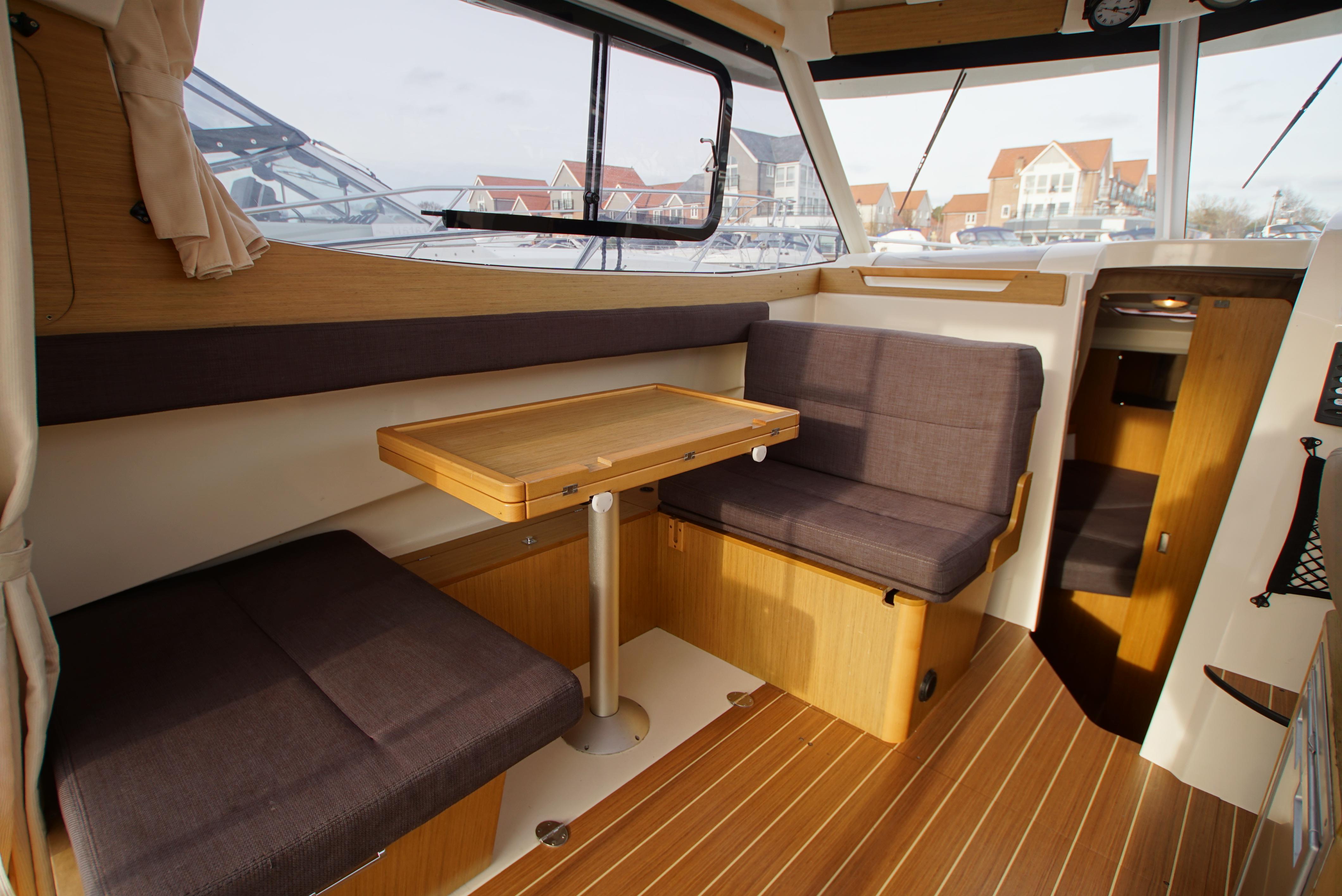 Jeanneau Merry Fisher 8, 2010 build. This well presented Merry Fisher 8, offers economical and comfortable cruising. Powered by the inboard diesel Nanni 200hp, with only 655 hours. This boat offers excellent accommodation, as well as, well thought of saloon features in order to maximise space and the experience on the water. The boat includes a big specification, including a bow thruster, Garmin chart plotter, upgraded Fusion audio system, Heating, marine toilet, and much more… As one of our stock boats it has received a full engine service, antifoul and power polish. This boat will be supplied with a 3 months engine warranty. Part exchange available and viewings 7 days a week at Lincoln.