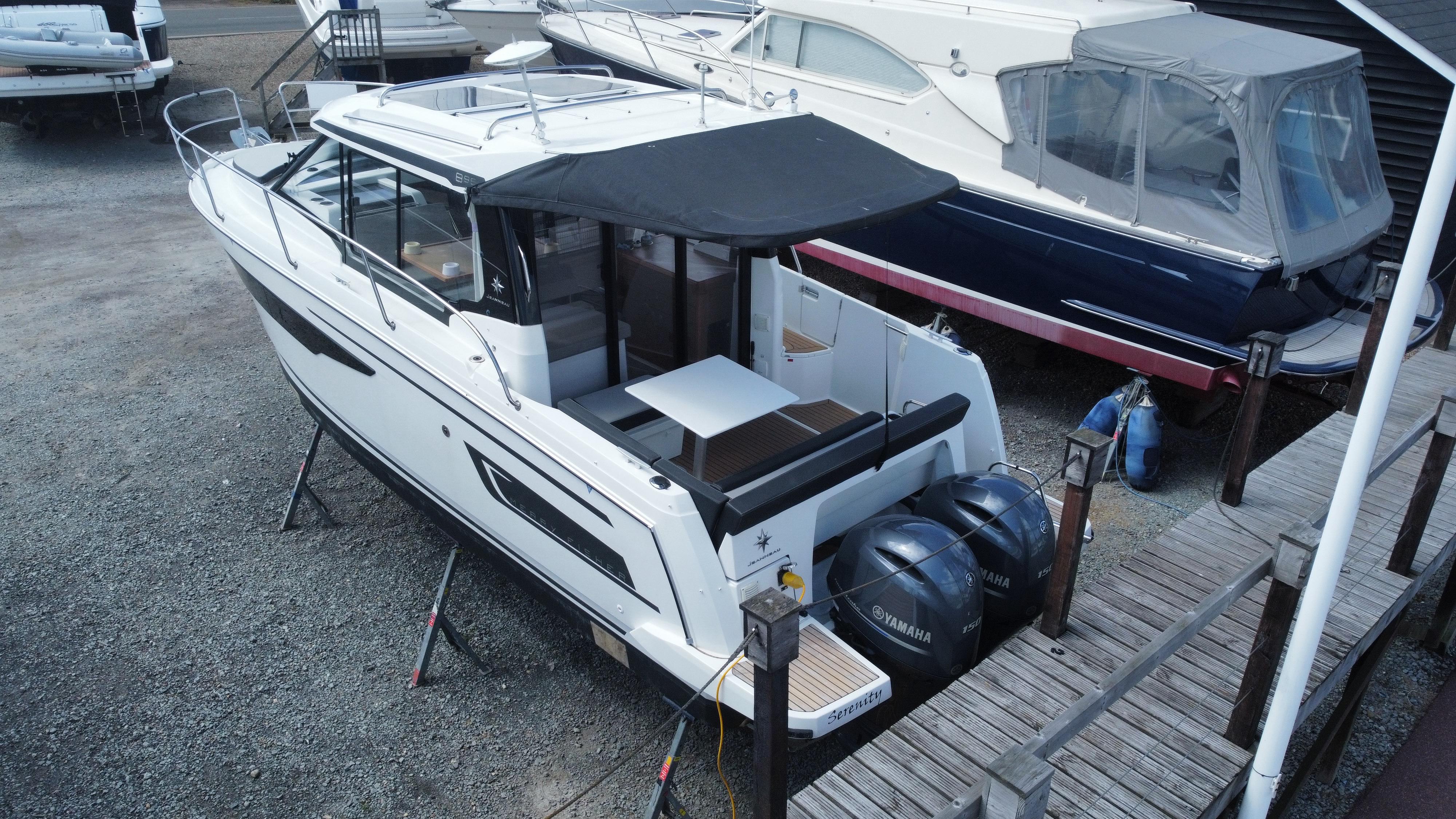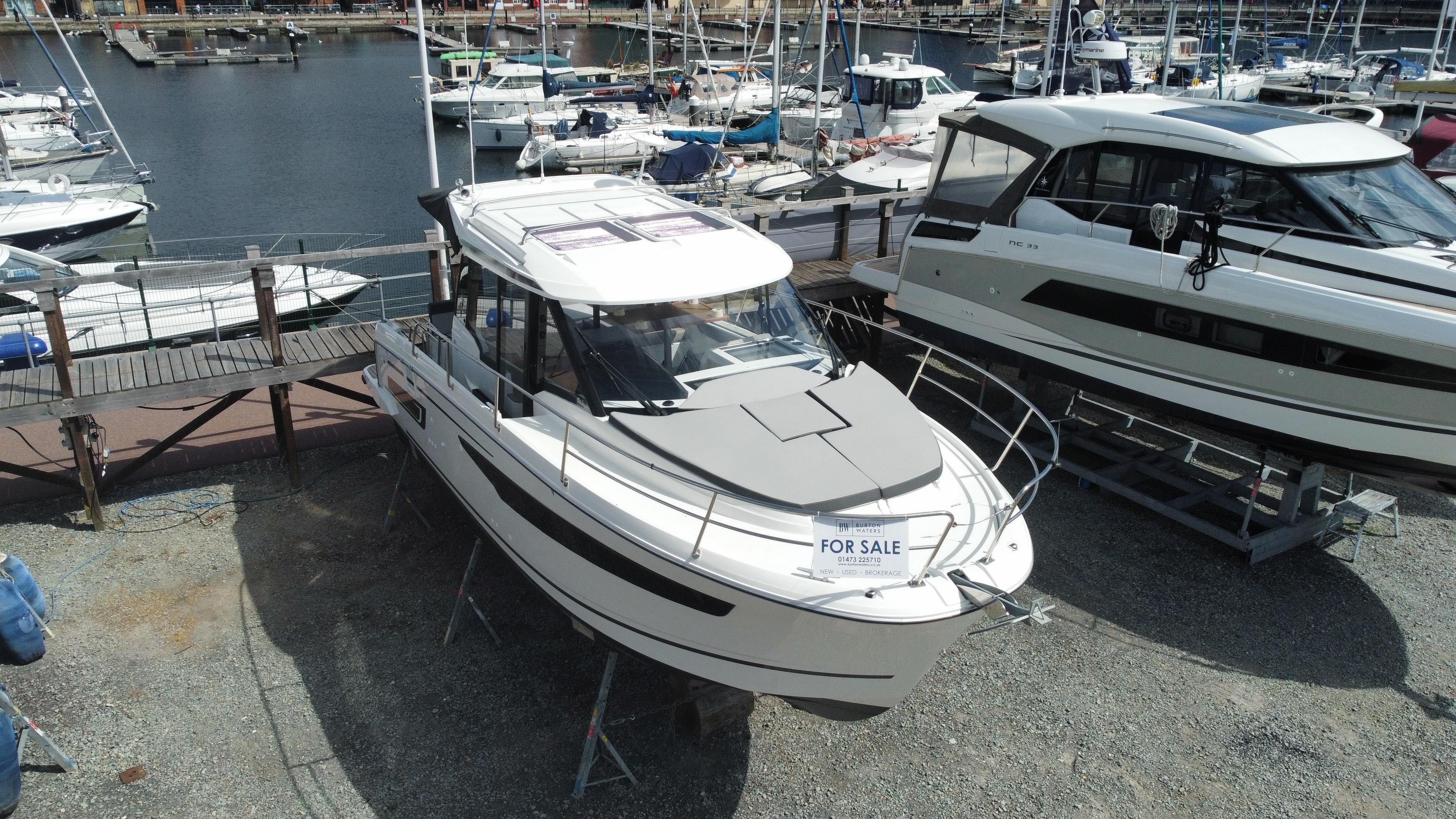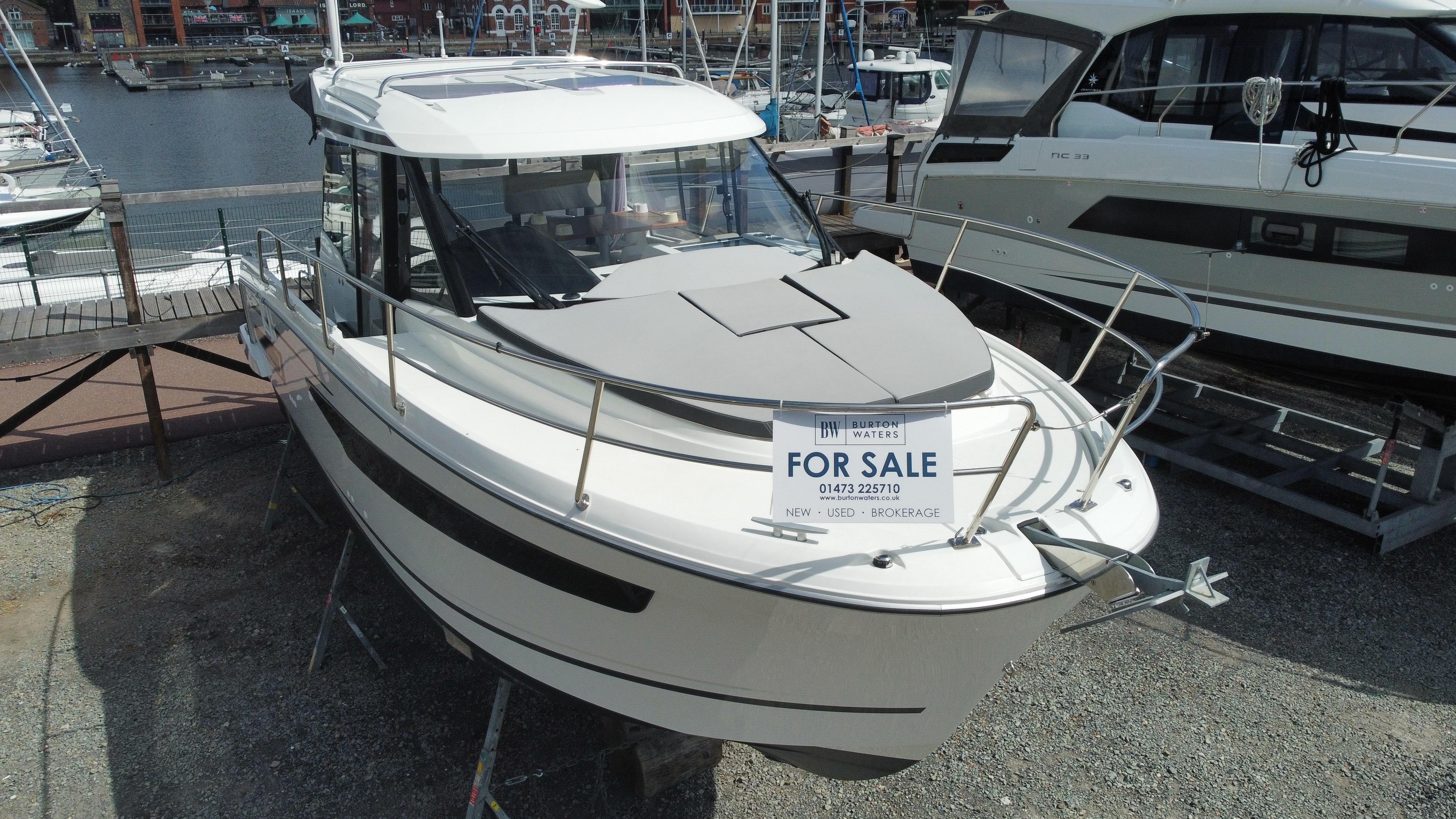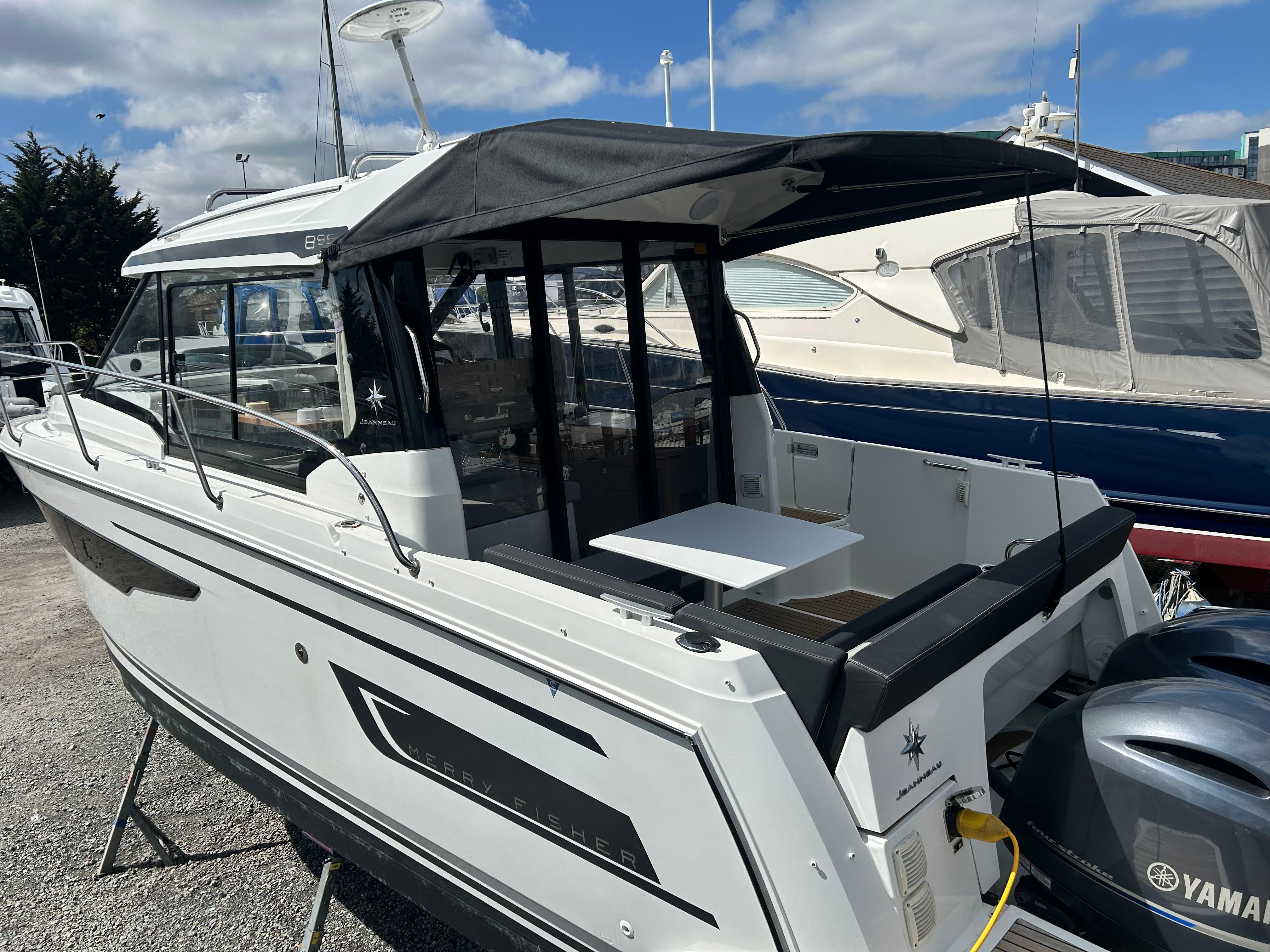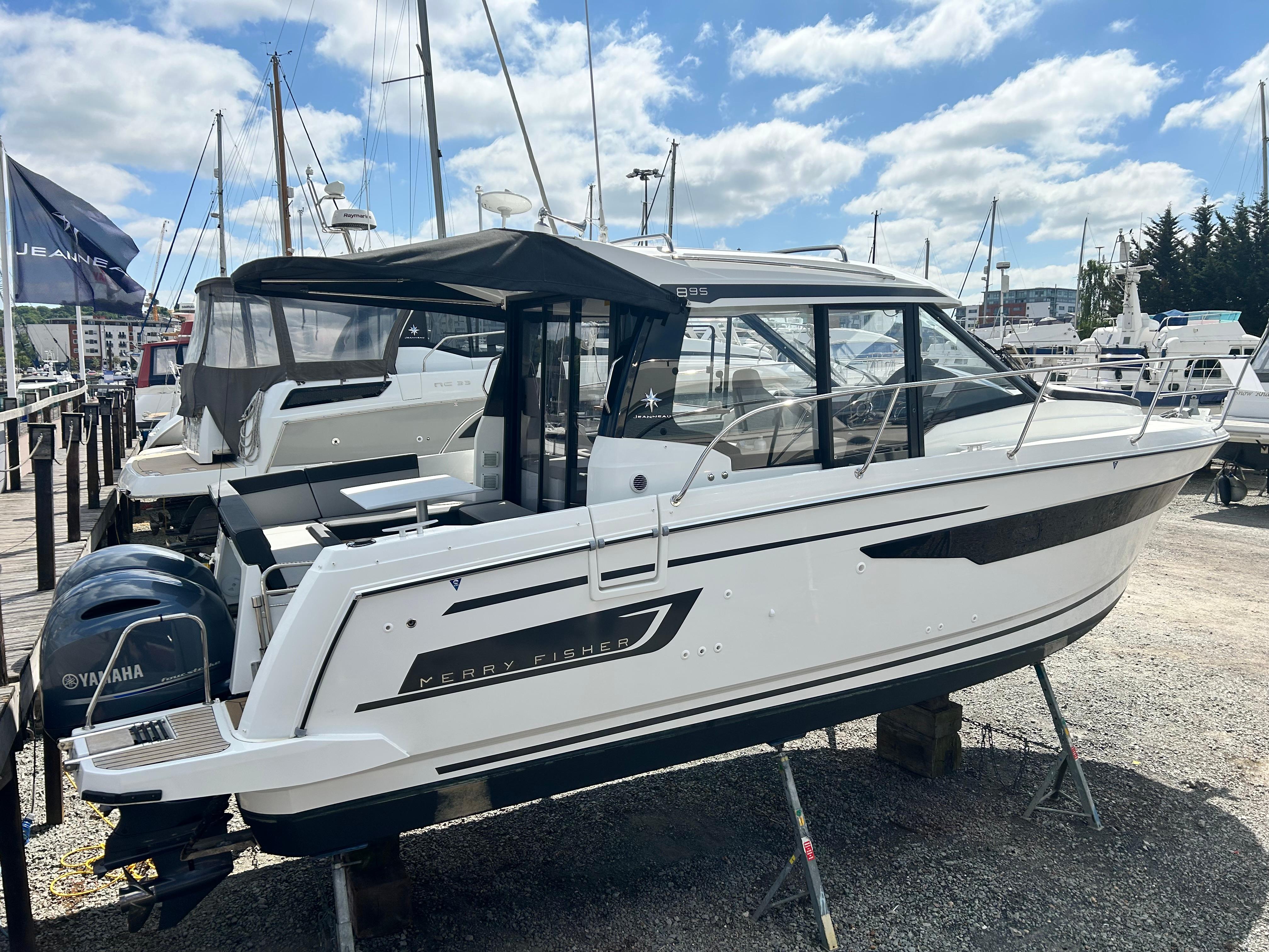 2022 model Jeanneau Merry Fisher 895, equipped with twin Yamaha 150hp outboards with only 140hrs. The Jeanneau Merry Fisher 895 offers an amazing 6 berths in two cabins with a convertible saloon as well as a large cockpit area. The stunning specification that includes a Flexi teak decks & cockpit, trim level premiere pack, saloon upholstery in Dolce leatherette, Garmin electronic pack, inverter, microwave oven, comfort pack, ‘U’ shape cockpit seating with sun pad conversion, bow cushions, cockpit sun awning, bow thruster, diesel heating, carpets for saloon and cabins, curtains for wheelhouse, and Garmin VHF. a truly impressive family boat, well-designed, versatile, manoeuvrable, and well-suited to weekends away and days out with the family all year round. *PART EXCHANGE CONSIDERED*