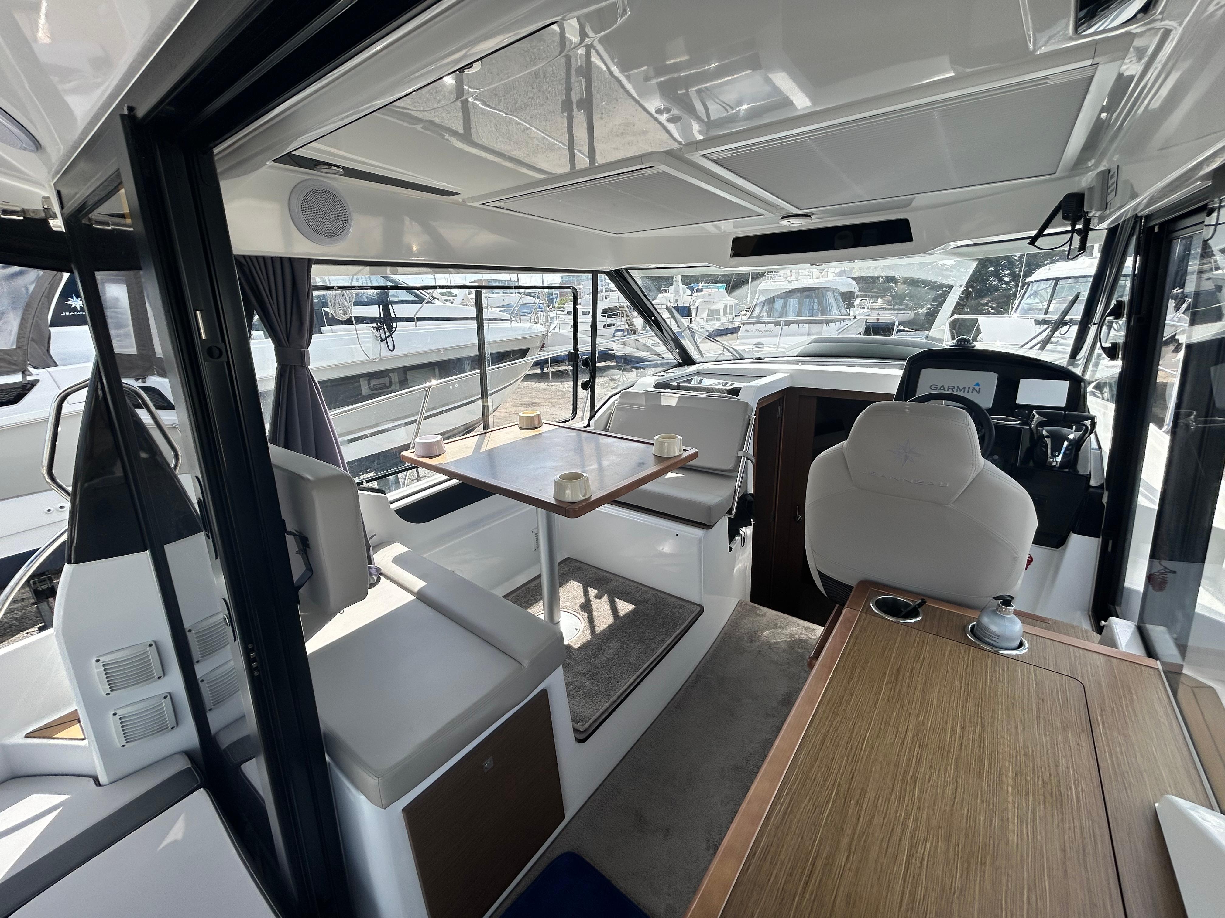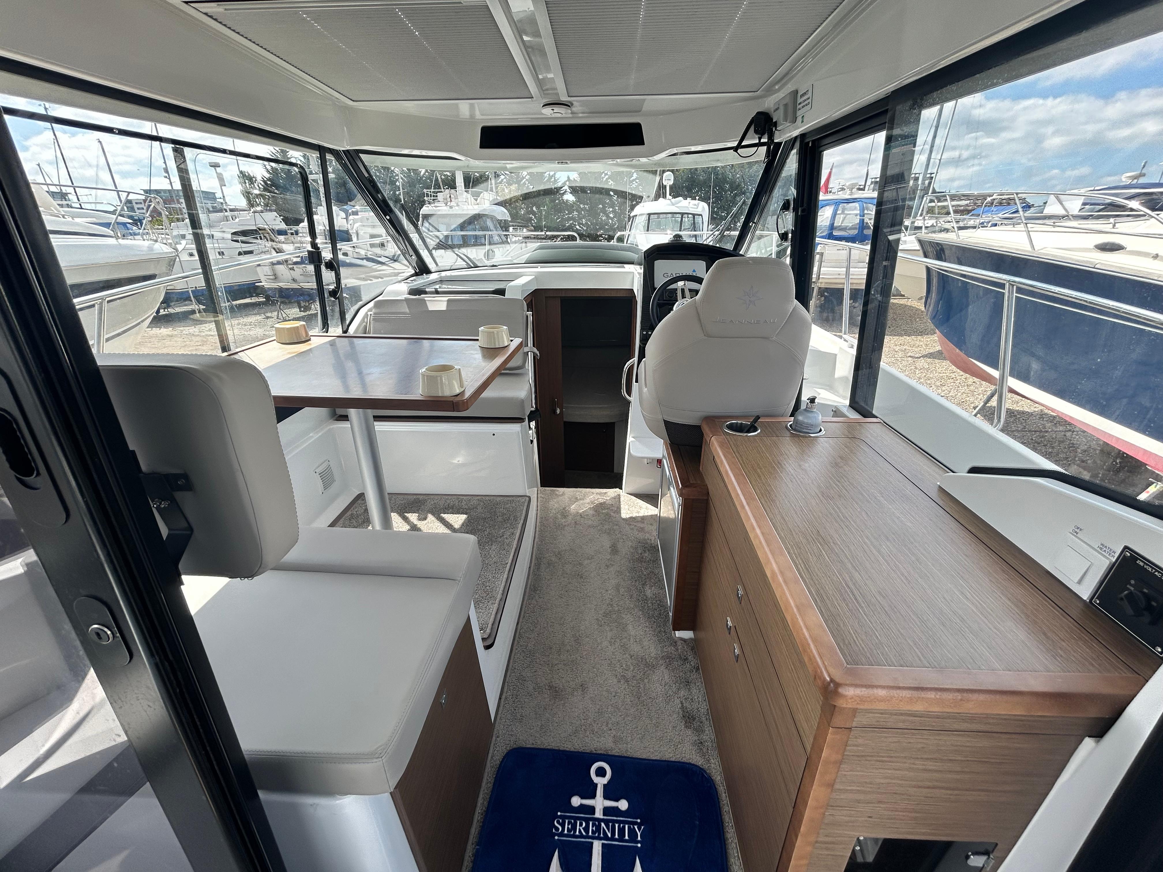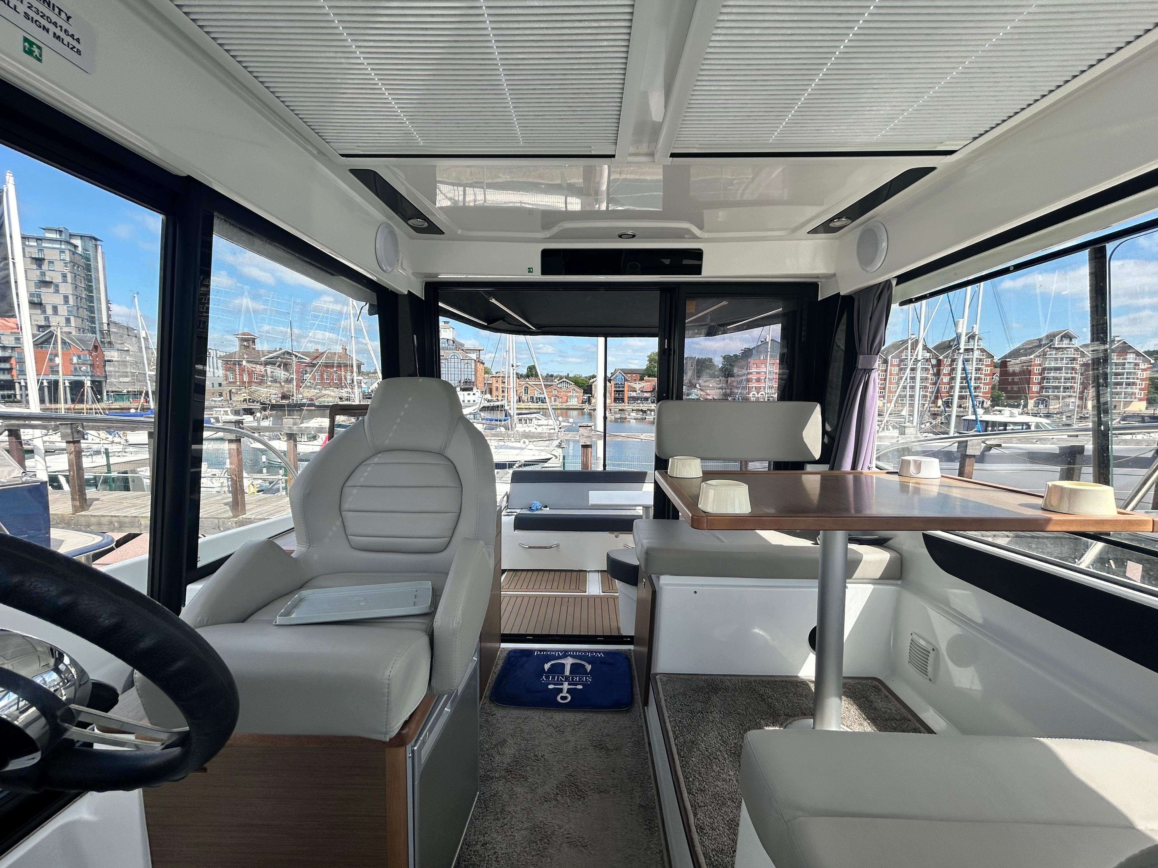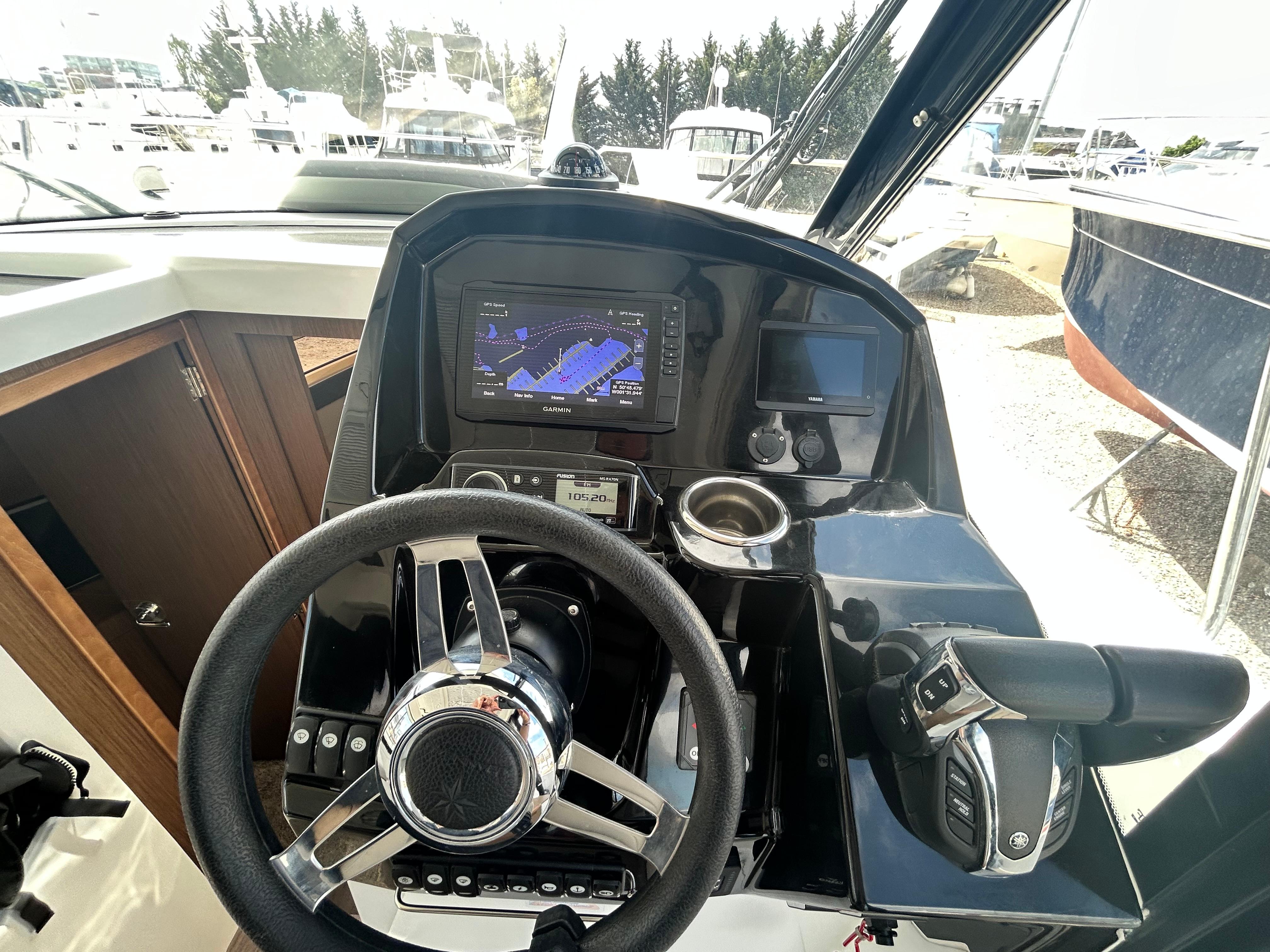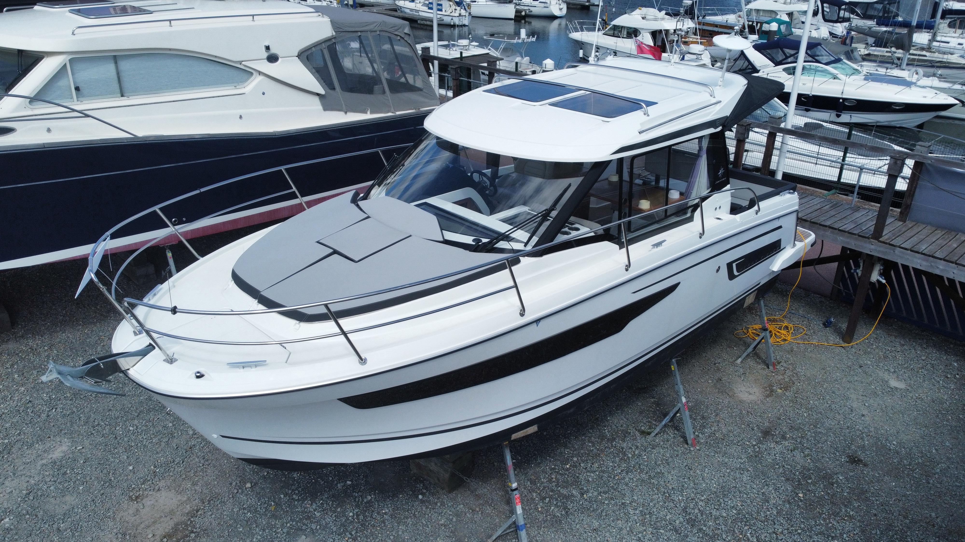 2022 model Jeanneau Merry Fisher 895, equipped with twin Yamaha 150hp outboards with only 140hrs. The Jeanneau Merry Fisher 895 offers an amazing 6 berths in two cabins with a convertible saloon as well as a large cockpit area. The stunning specification that includes a Flexi teak decks & cockpit, trim level premiere pack, saloon upholstery in Dolce leatherette, Garmin electronic pack, inverter, microwave oven, comfort pack, ‘U’ shape cockpit seating with sun pad conversion, bow cushions, cockpit sun awning, bow thruster, diesel heating, carpets for saloon and cabins, curtains for wheelhouse, and Garmin VHF. a truly impressive family boat, well-designed, versatile, manoeuvrable, and well-suited to weekends away and days out with the family all year round. *PART EXCHANGE CONSIDERED*