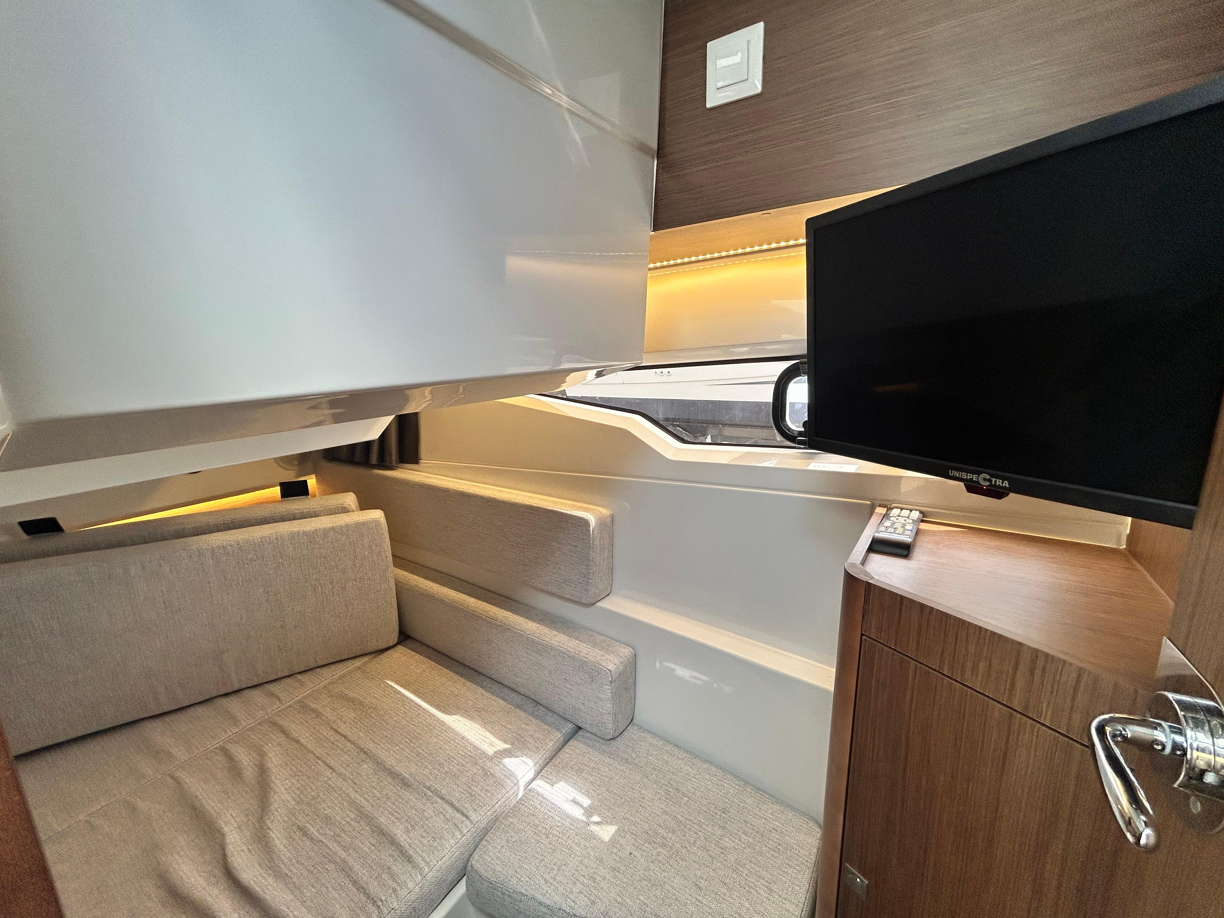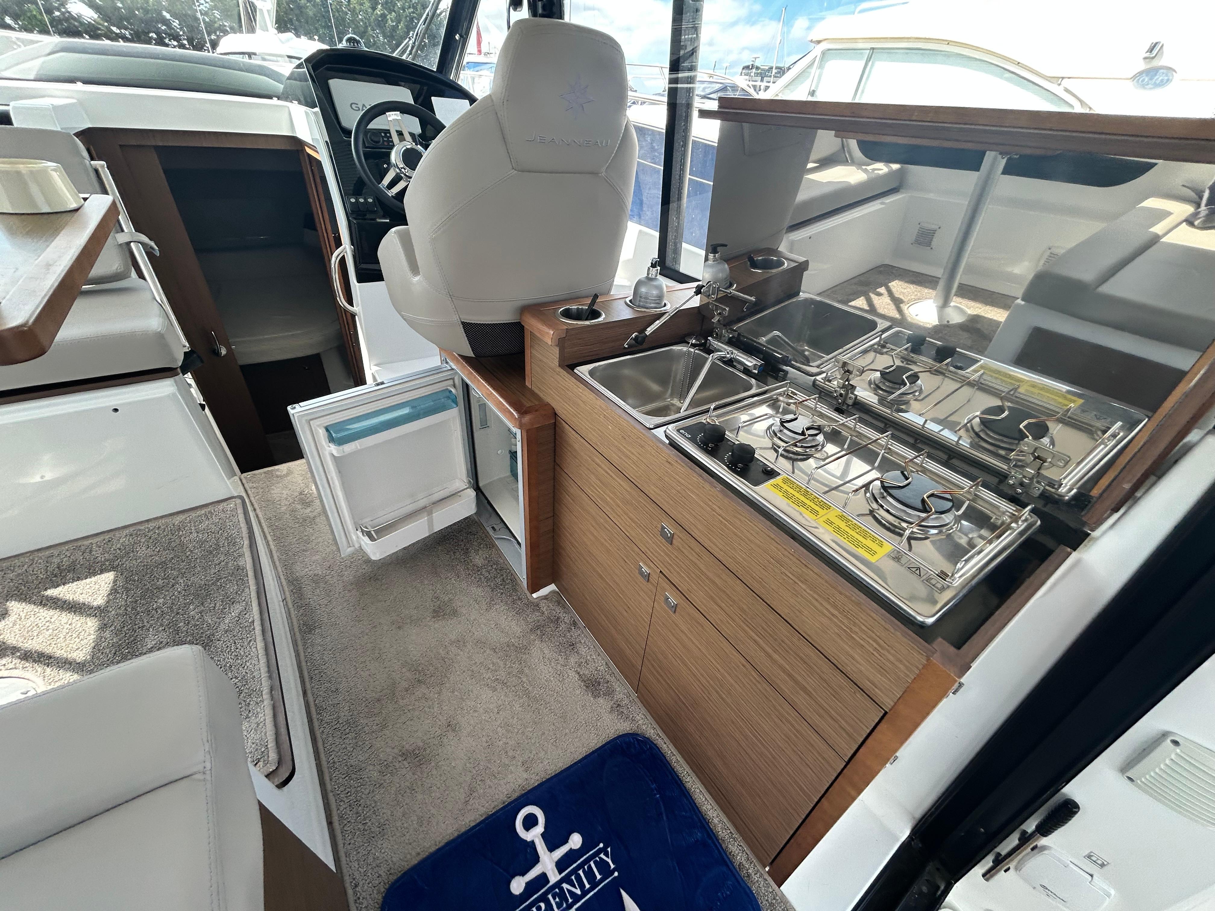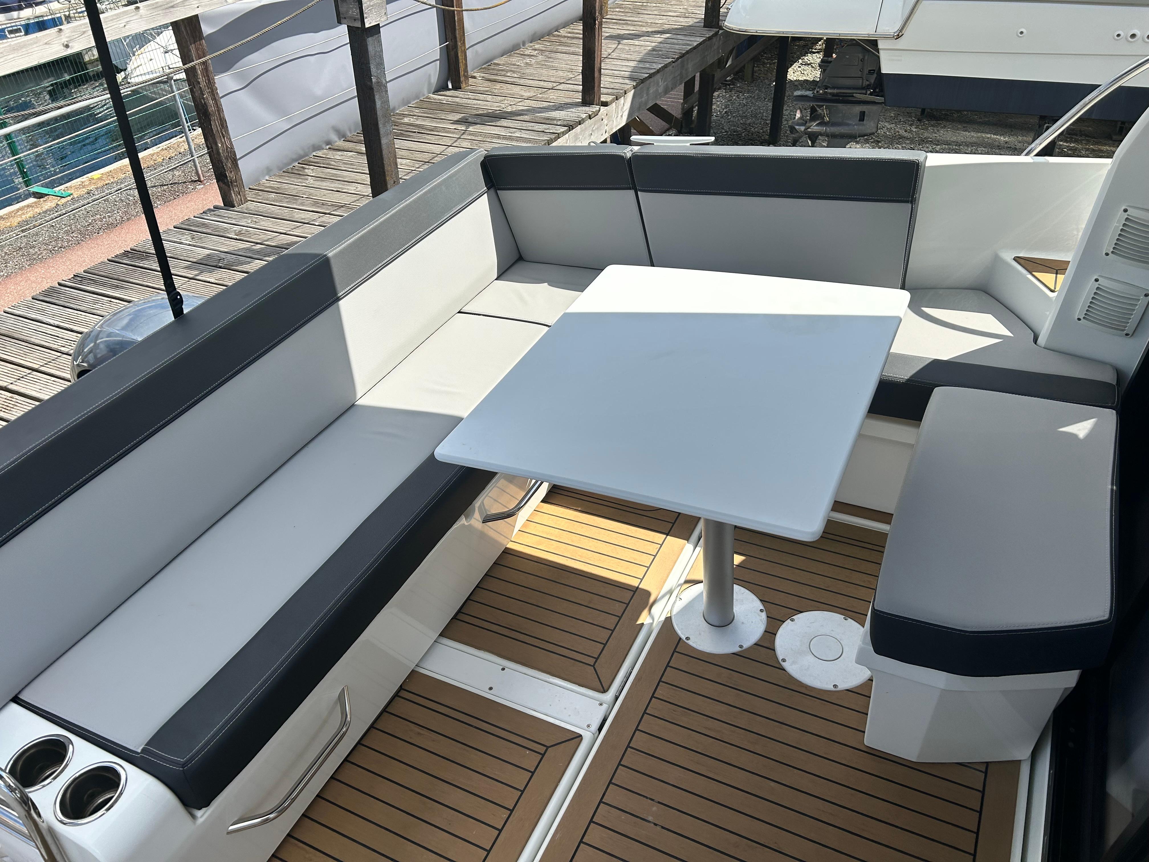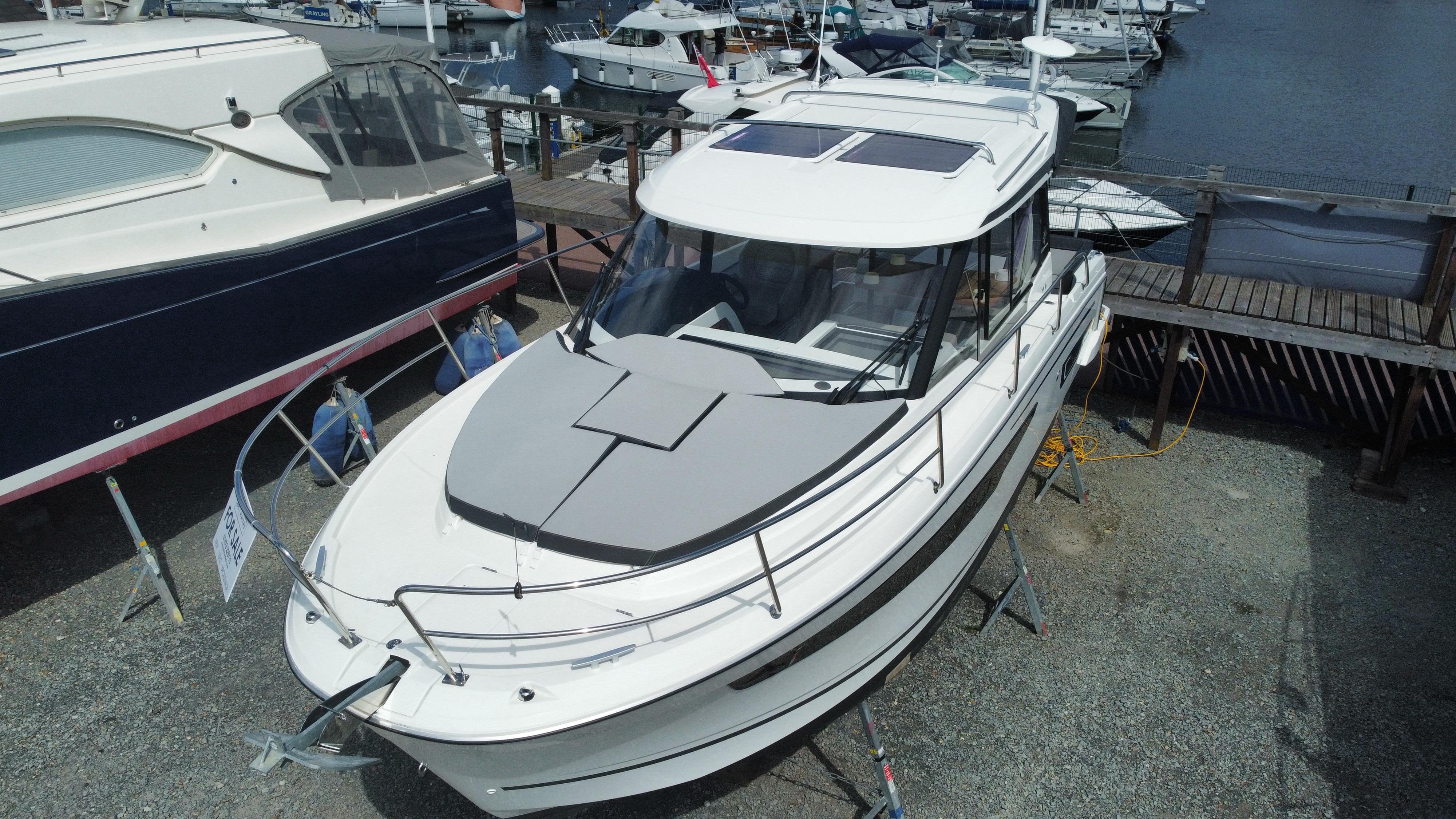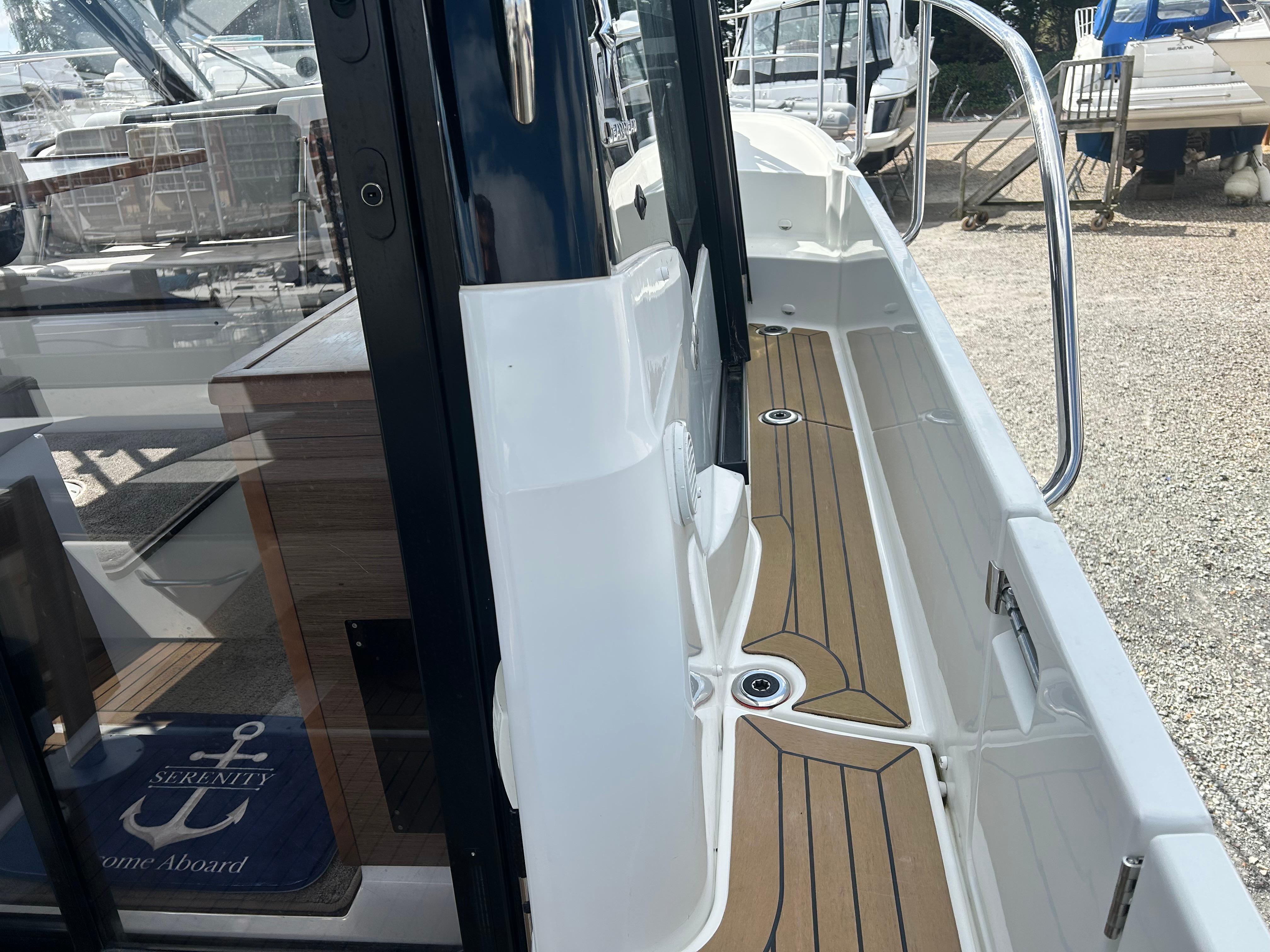 2022 model Jeanneau Merry Fisher 895, equipped with twin Yamaha 150hp outboards with only 140hrs. The Jeanneau Merry Fisher 895 offers an amazing 6 berths in two cabins with a convertible saloon as well as a large cockpit area. The stunning specification that includes a Flexi teak decks & cockpit, trim level premiere pack, saloon upholstery in Dolce leatherette, Garmin electronic pack, inverter, microwave oven, comfort pack, ‘U’ shape cockpit seating with sun pad conversion, bow cushions, cockpit sun awning, bow thruster, diesel heating, carpets for saloon and cabins, curtains for wheelhouse, and Garmin VHF. a truly impressive family boat, well-designed, versatile, manoeuvrable, and well-suited to weekends away and days out with the family all year round. *PART EXCHANGE CONSIDERED*