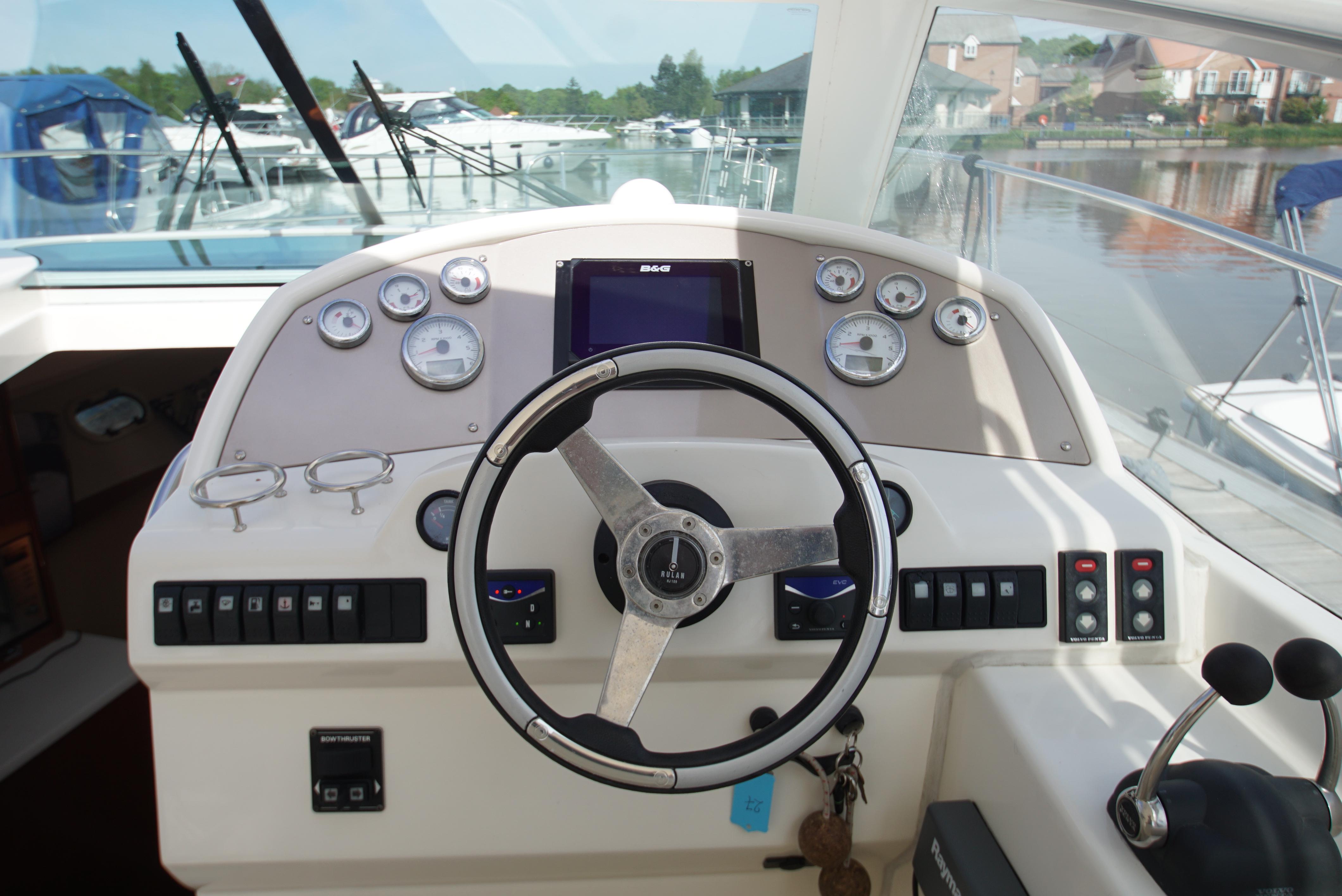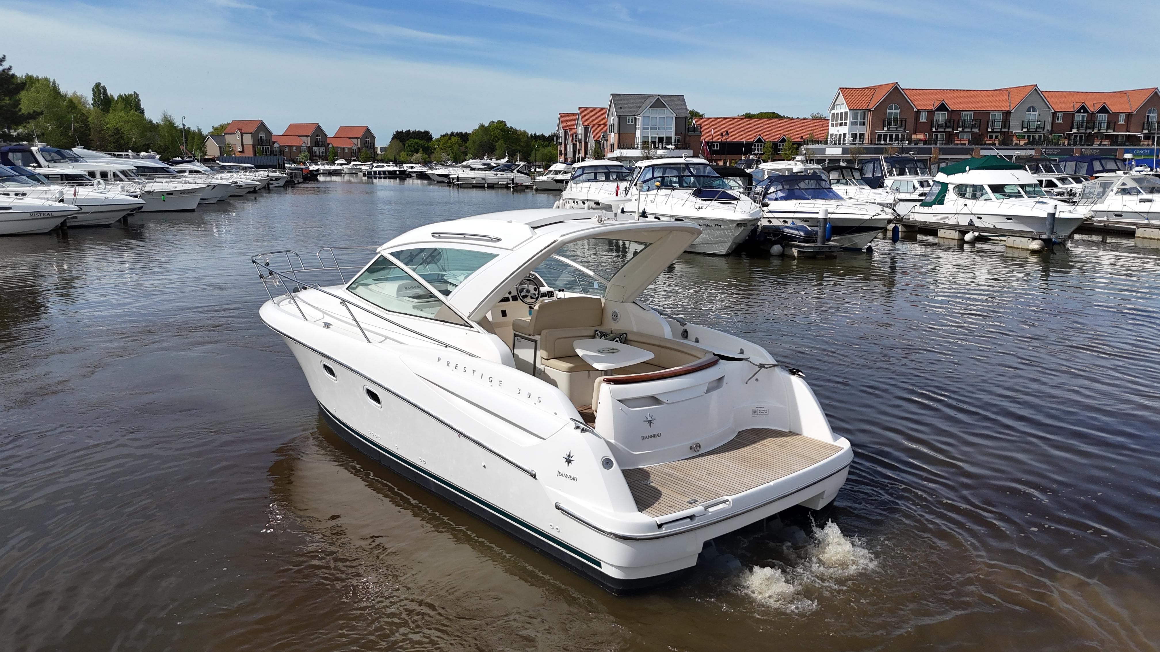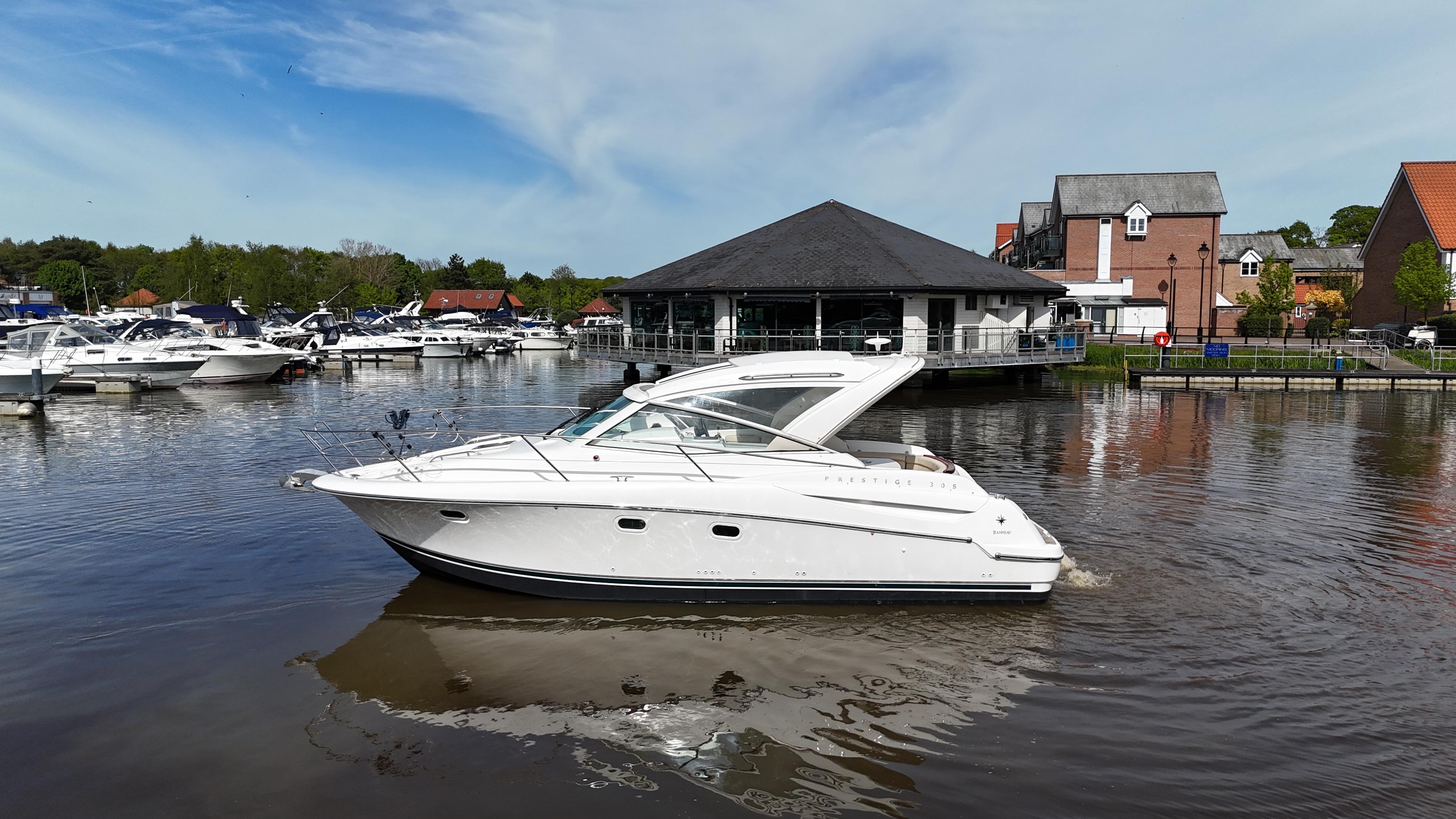 Jeanneau Prestige 30S, 2007 build and equipped with twin Volvo Penta D3 190hp diesel engines with only 370 hours completed. This popular sports cruiser comes very highly equipped with B&G chartplotter, bow thruster, diesel heating, sliding roof, microwave, VHF, trim tabs, cockpit fridge and much more. Offering a sociable cockpit and generous cabin space with saloon area which converts to a double berth, and then a separate aft cabin. Lying off site at Newark, viewing by appointment only.