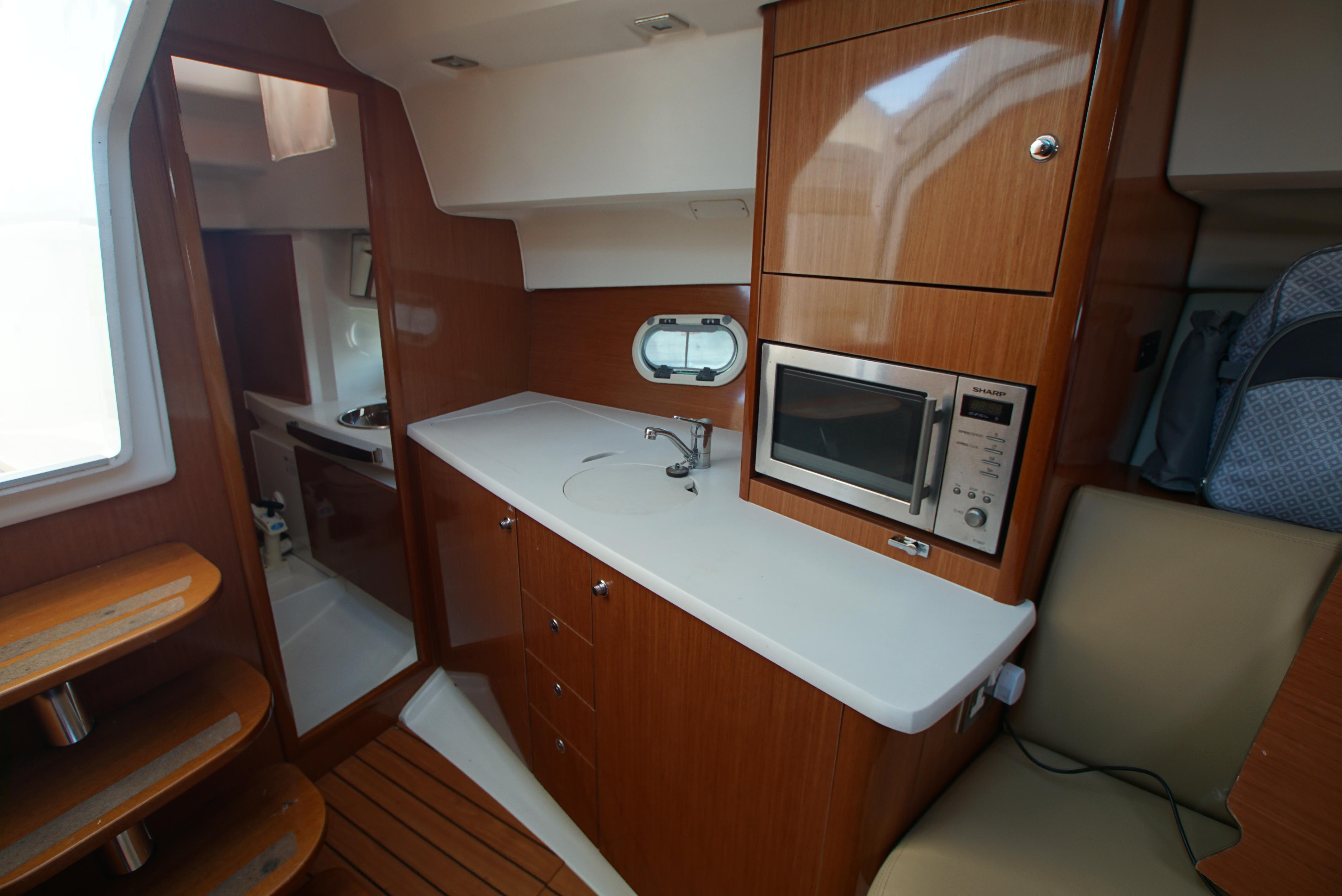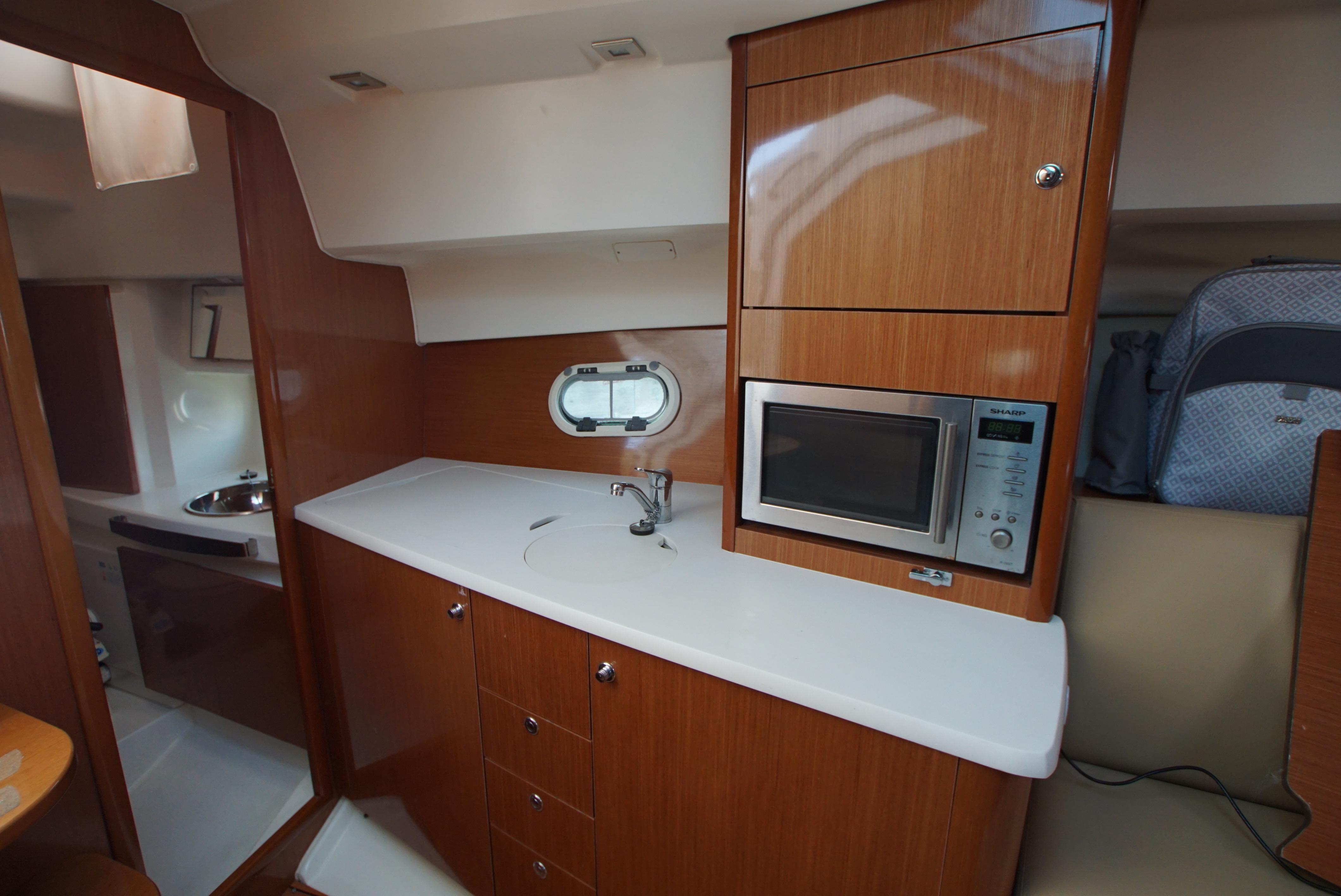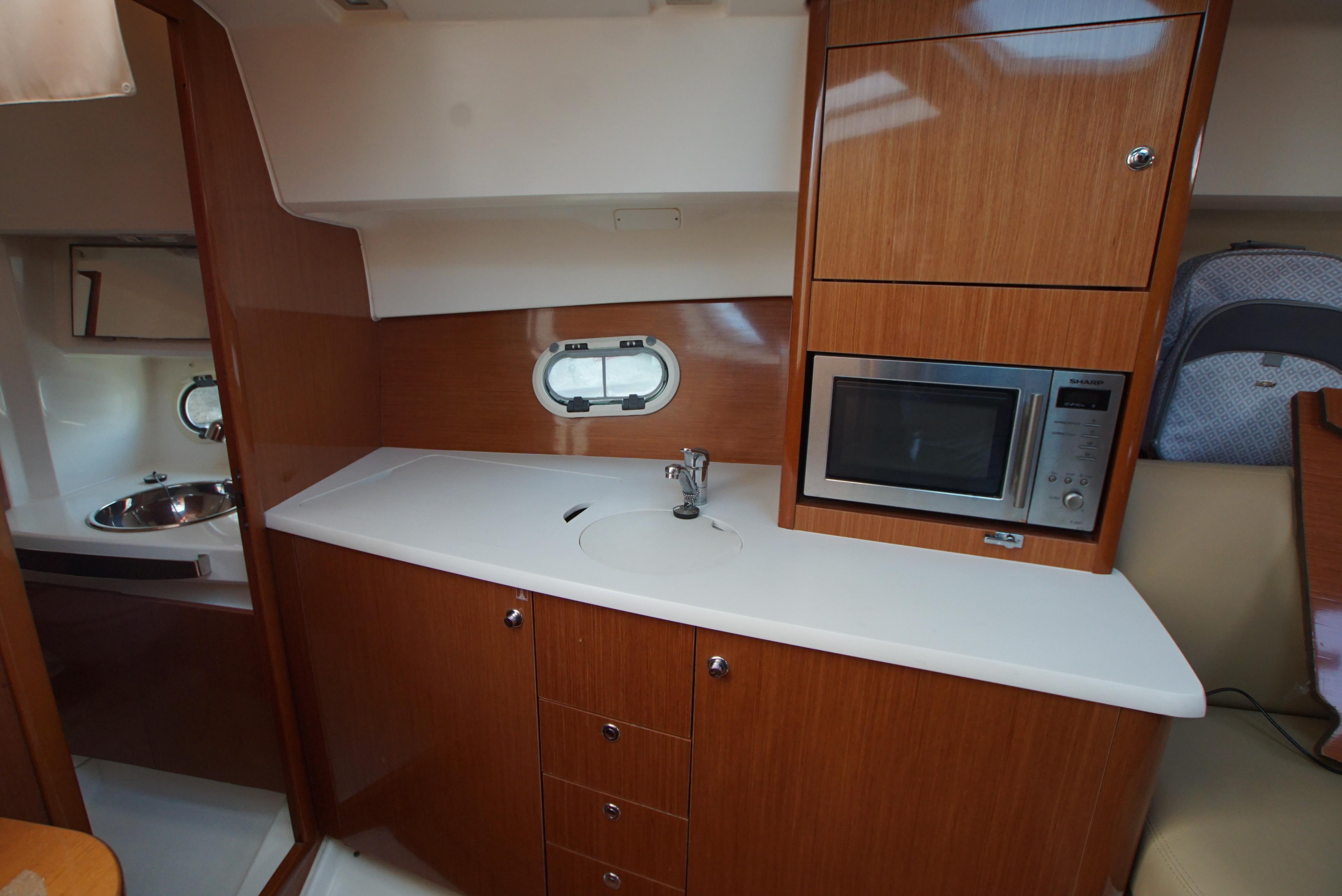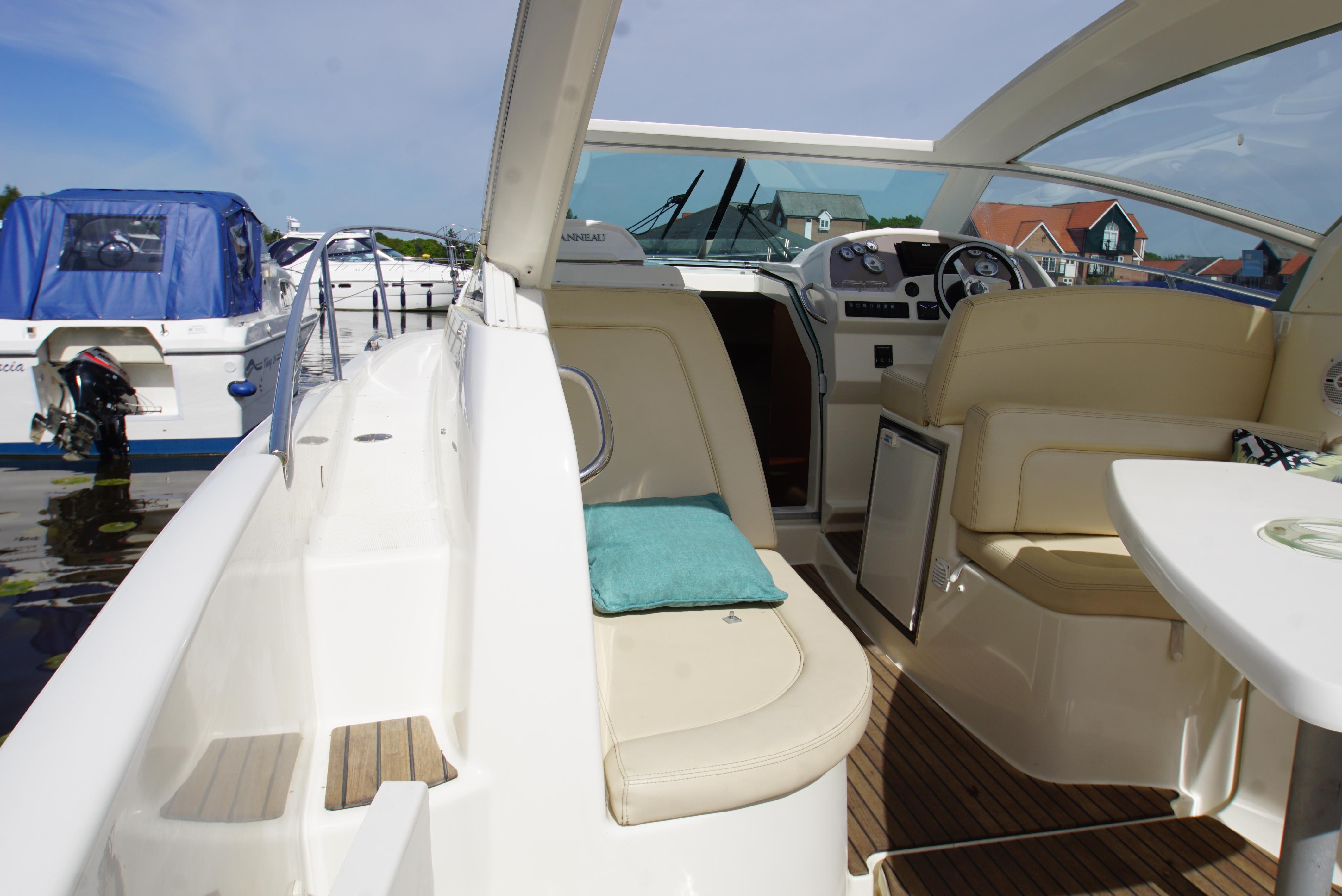 Jeanneau Prestige 30S, 2007 build and equipped with twin Volvo Penta D3 190hp diesel engines with only 370 hours completed. This popular sports cruiser comes very highly equipped with B&G chartplotter, bow thruster, diesel heating, sliding roof, microwave, VHF, trim tabs, cockpit fridge and much more. Offering a sociable cockpit and generous cabin space with saloon area which converts to a double berth, and then a separate aft cabin. Lying off site at Newark, viewing by appointment only.