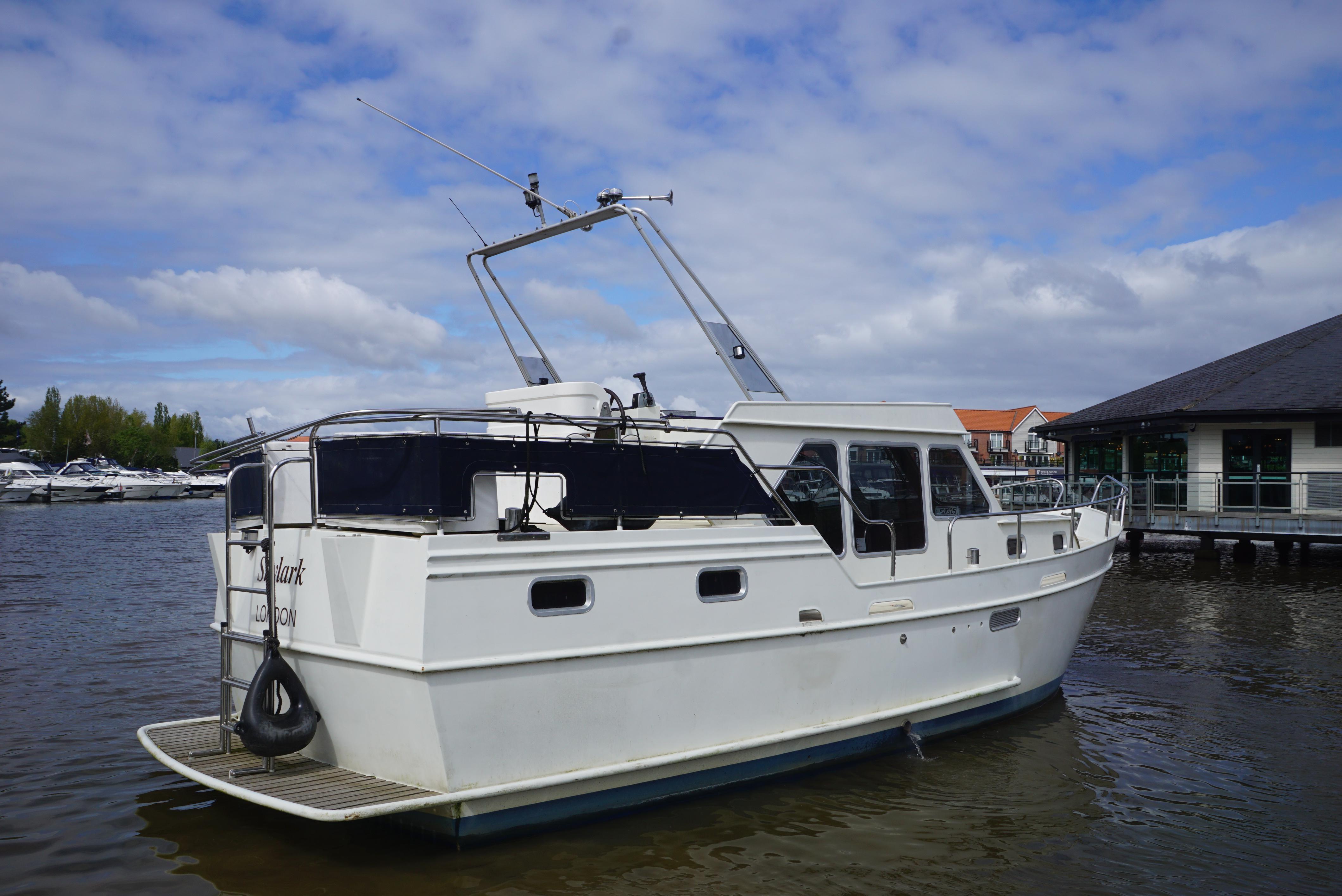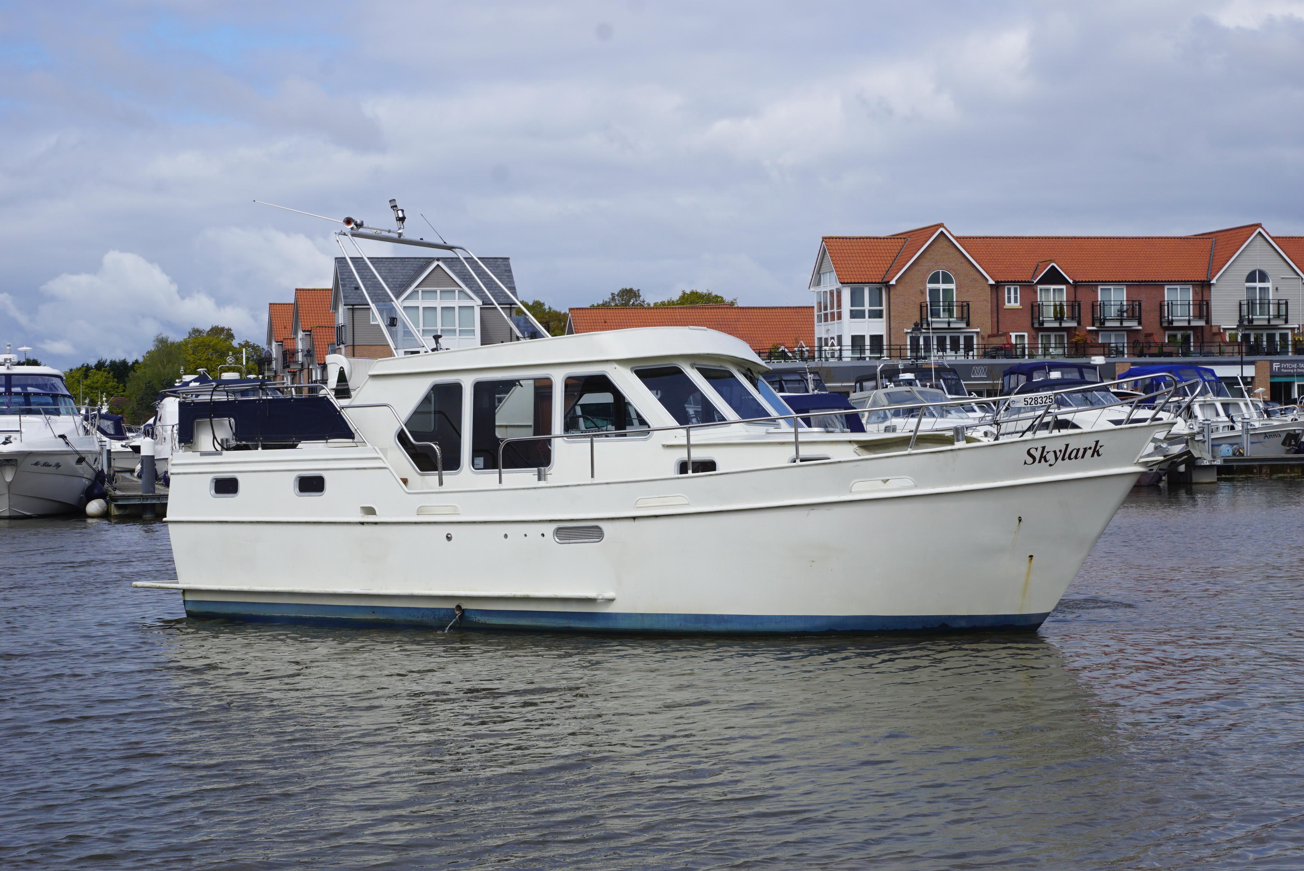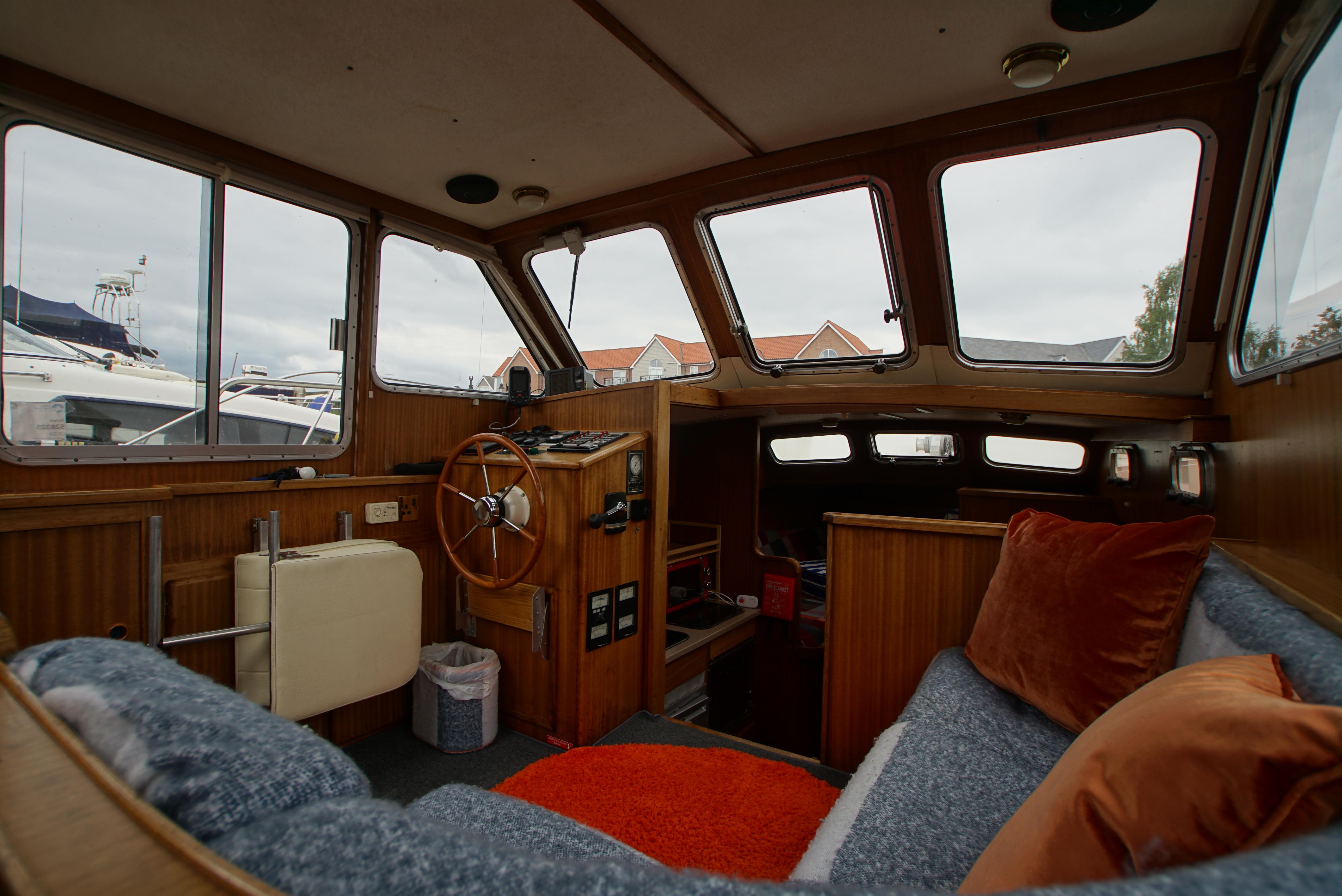 Linssen 32SL, 1989 build and equipped with a Volvo Penta TMD31 100hp diesel engine. This spacious boat offers a fantastic aft cabin, ideal for a liveaboard or long term cruising. “Skylark” offers two steering positions, one on the aft deck boasting good views and another internally for ultimate versatility. This steel cruiser comes equipped with a bow thruster, warm air heating, manual windlass, gas oven and hob, new microwave, new toilet leading to holding tank, wine cooler and roper cutter. Four seater dinette has been recovered and she has had new marine carpets throughout. Viewings 7 days a week in Lincoln, BSS valid until May 2029.