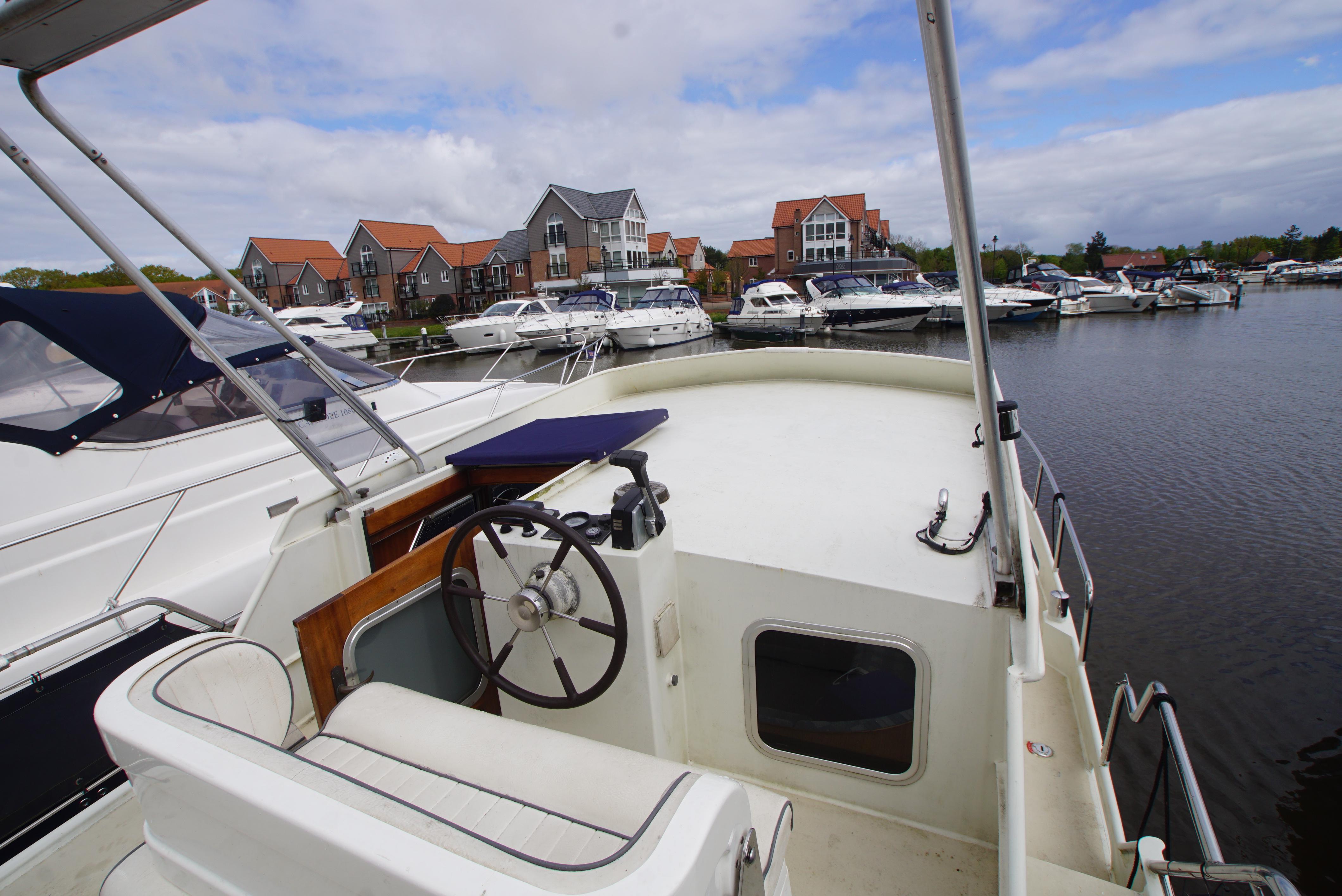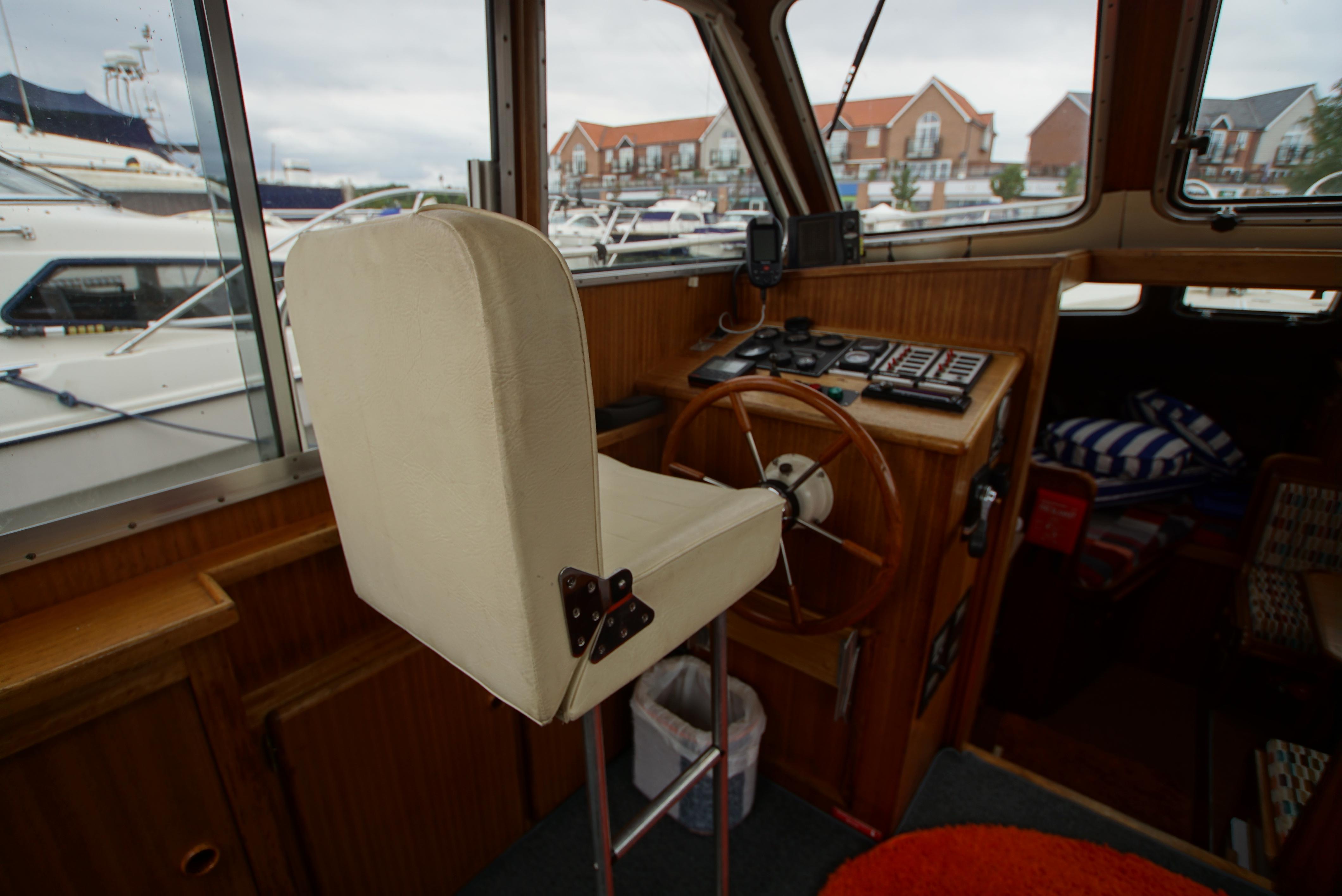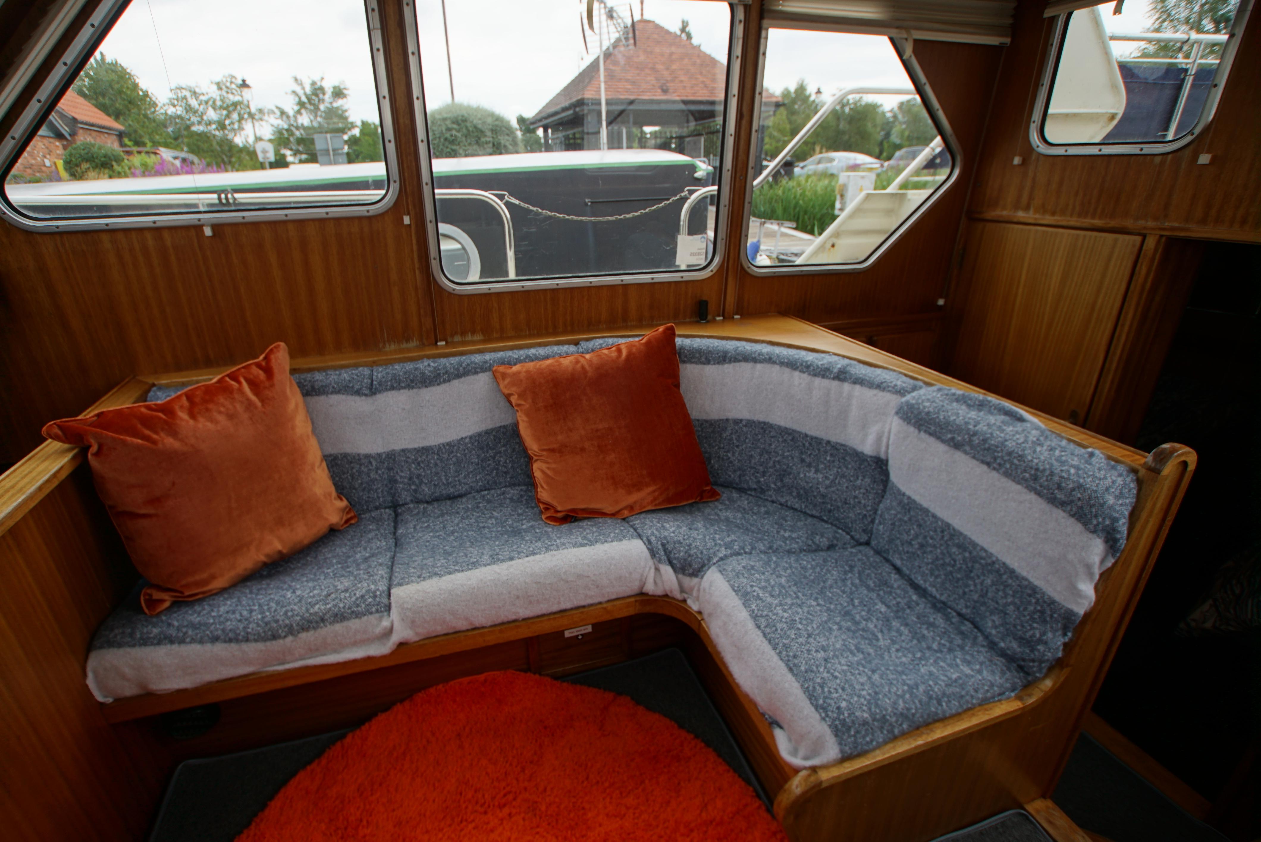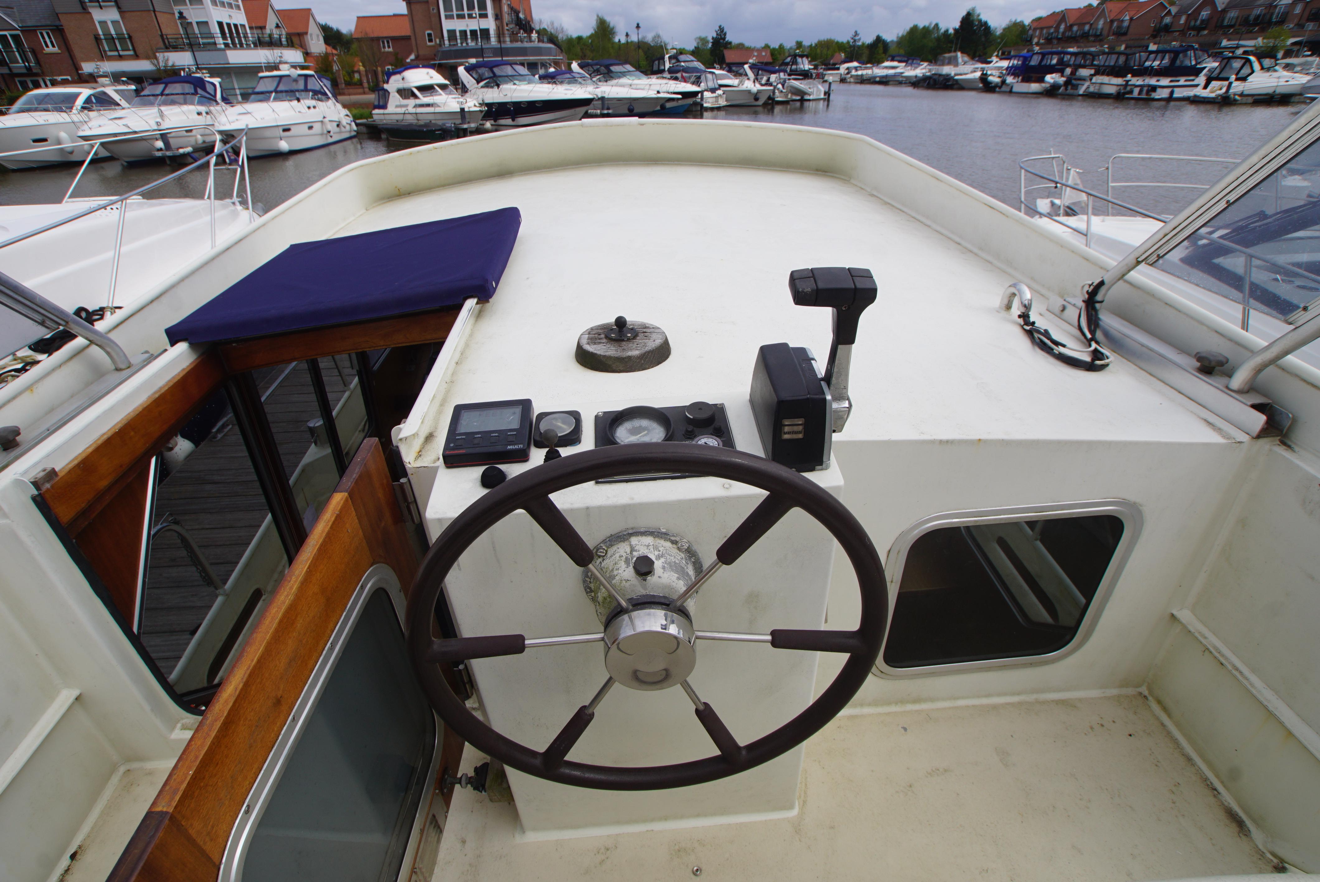Linssen 32SL, 1989 build and equipped with a Volvo Penta TMD31 100hp diesel engine. This spacious boat offers a fantastic aft cabin, ideal for a liveaboard or long term cruising. “Skylark” offers two steering positions, one on the aft deck boasting good views and another internally for ultimate versatility. This steel cruiser comes equipped with a bow thruster, warm air heating, manual windlass, gas oven and hob, new microwave, new toilet leading to holding tank, wine cooler and roper cutter. Four seater dinette has been recovered and she has had new marine carpets throughout. Viewings 7 days a week in Lincoln, BSS valid until May 2029.