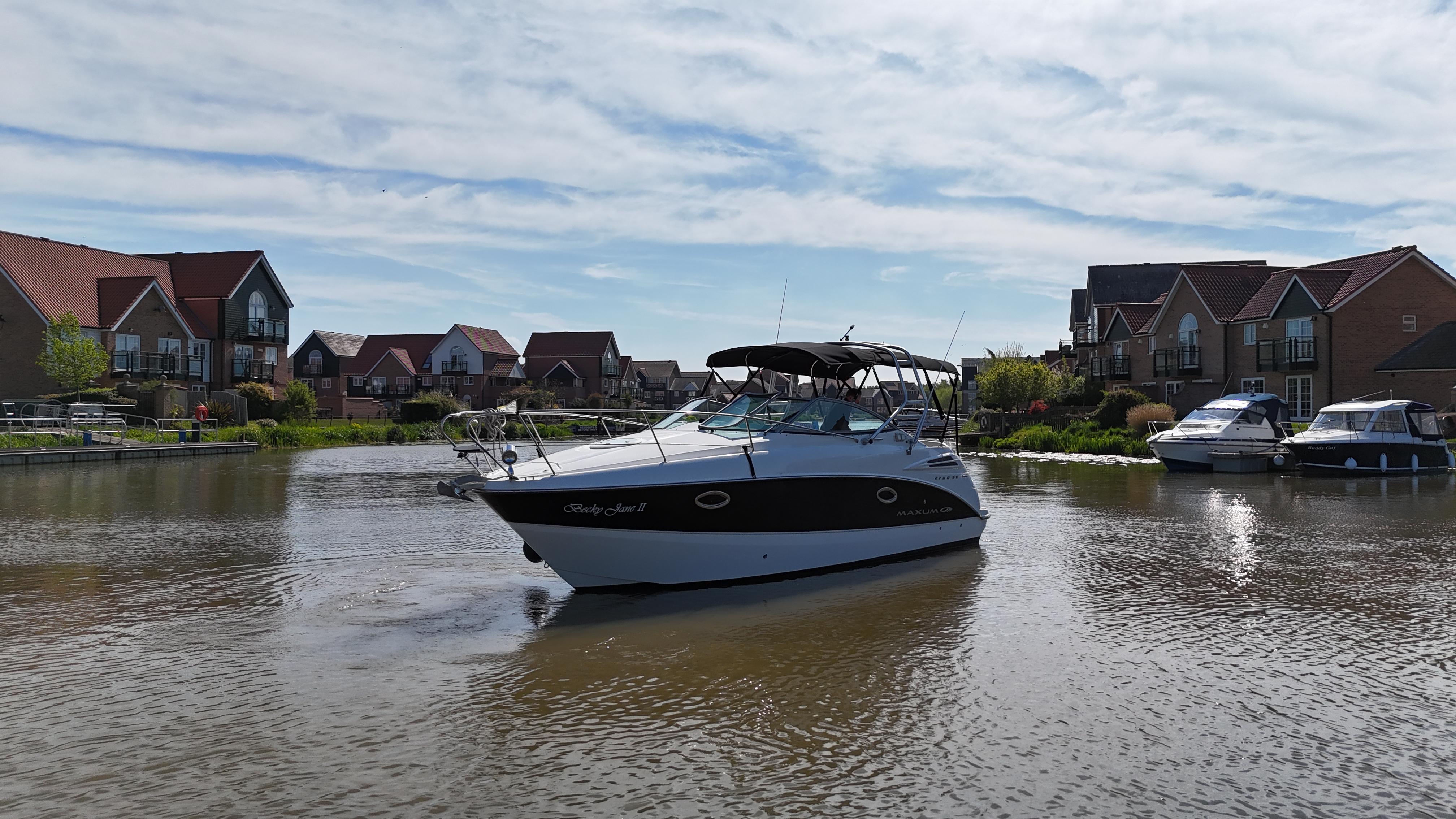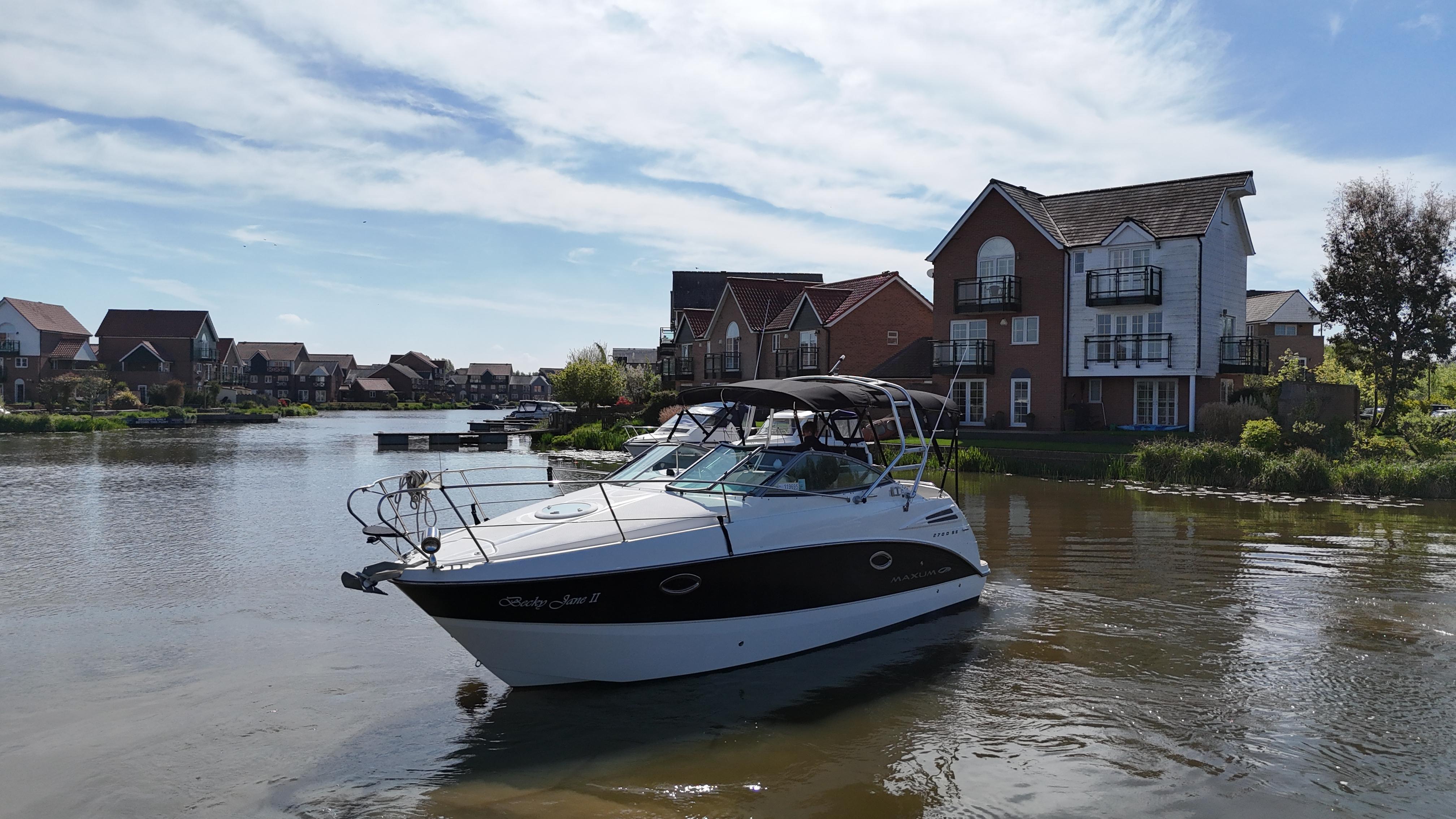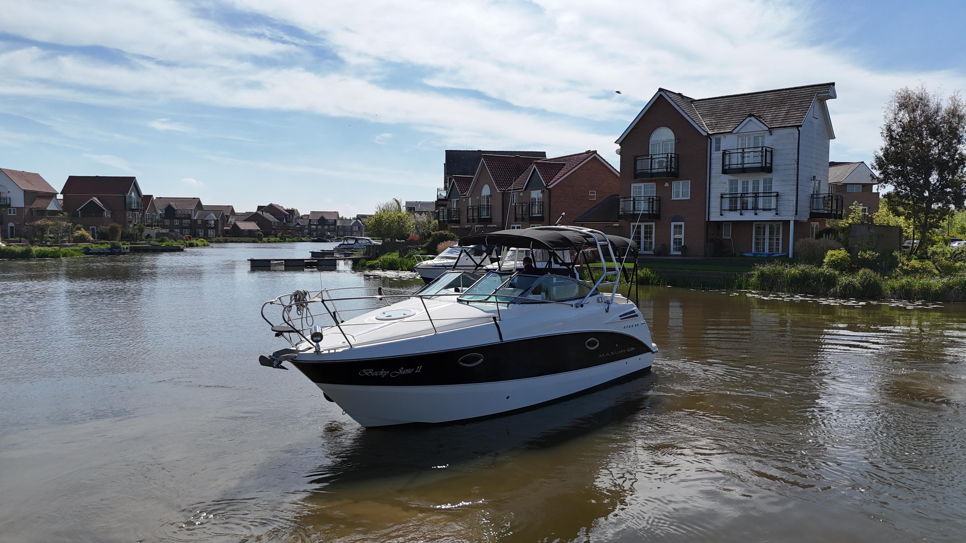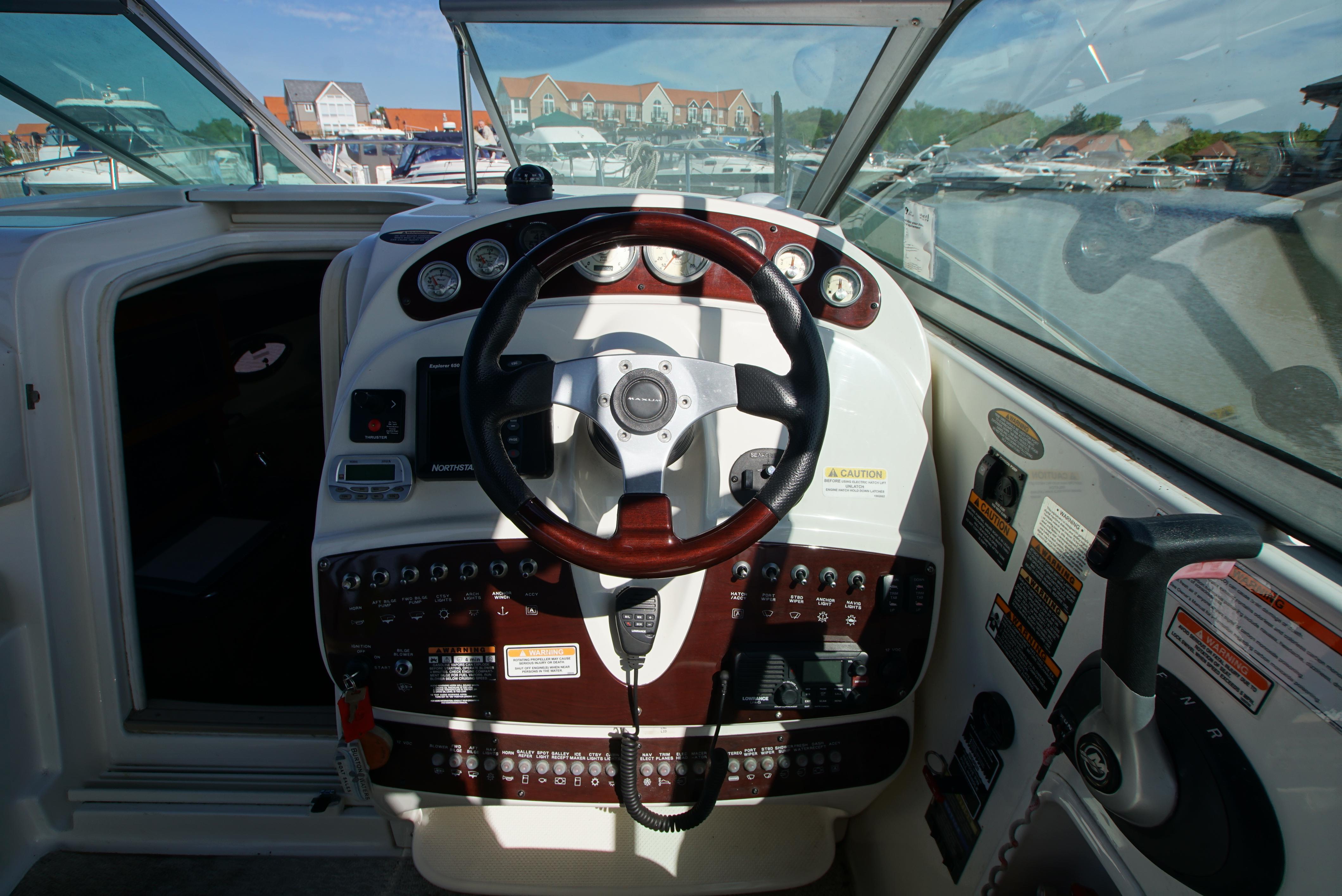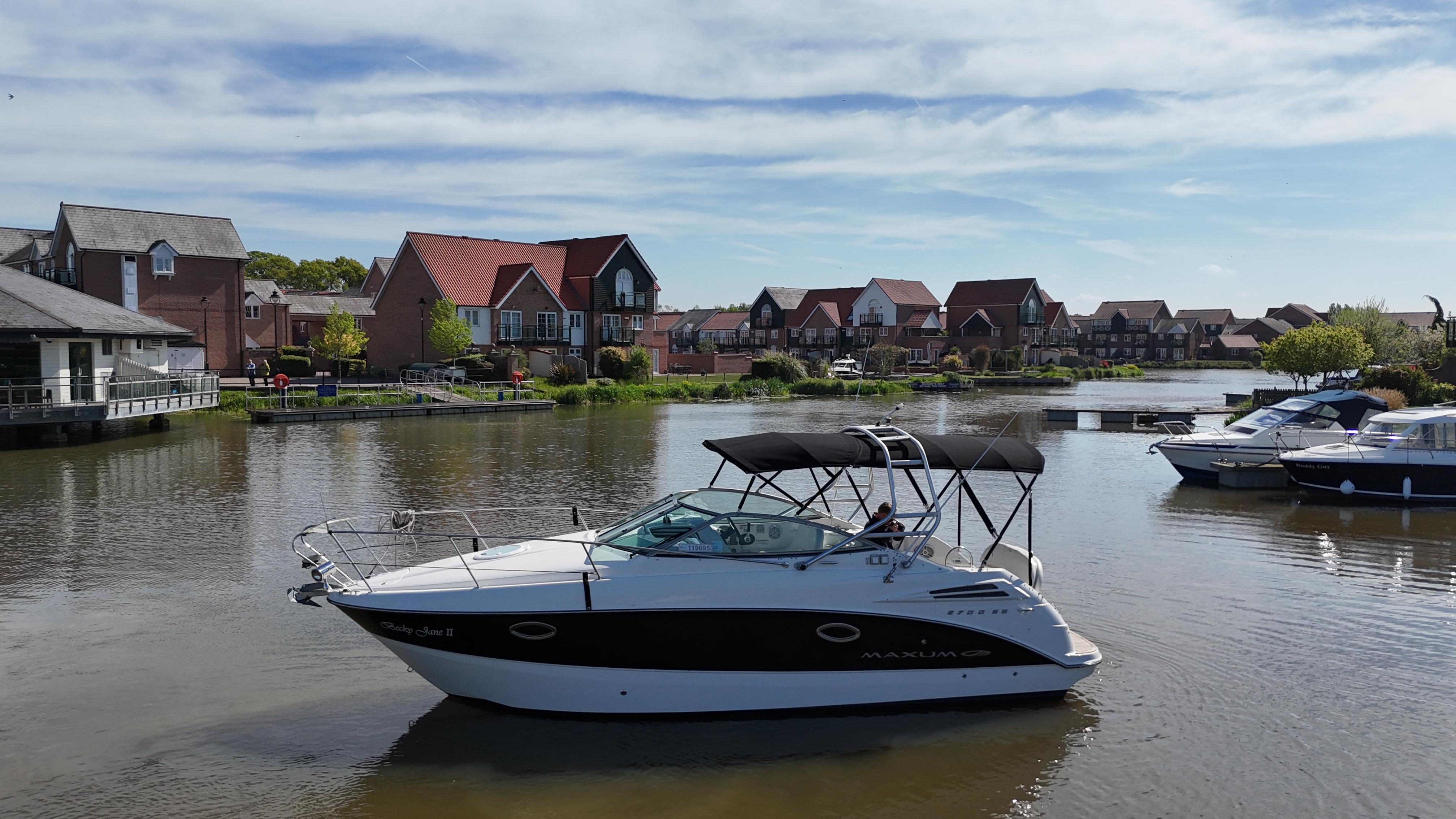 2008/09 Maxum 2700 SE sports cruiser with single Mercruiser 4.2L Diesel engine (250hp) Offering a large sociable and versatile cockpit space, this nicely presented cruiser offers a specification that includes: teak effect bathing platform, full cockpit cover with new perspex windows, wetbar, cockpit fridge, cockpit carpet, Radar/sports arch, Bowthruster, Northstar explorer plotter, VHF radio, electric hob, microwave. She has just been power polished, antifouled and is good to go for the season! Boat safety certificate valid until 2028.