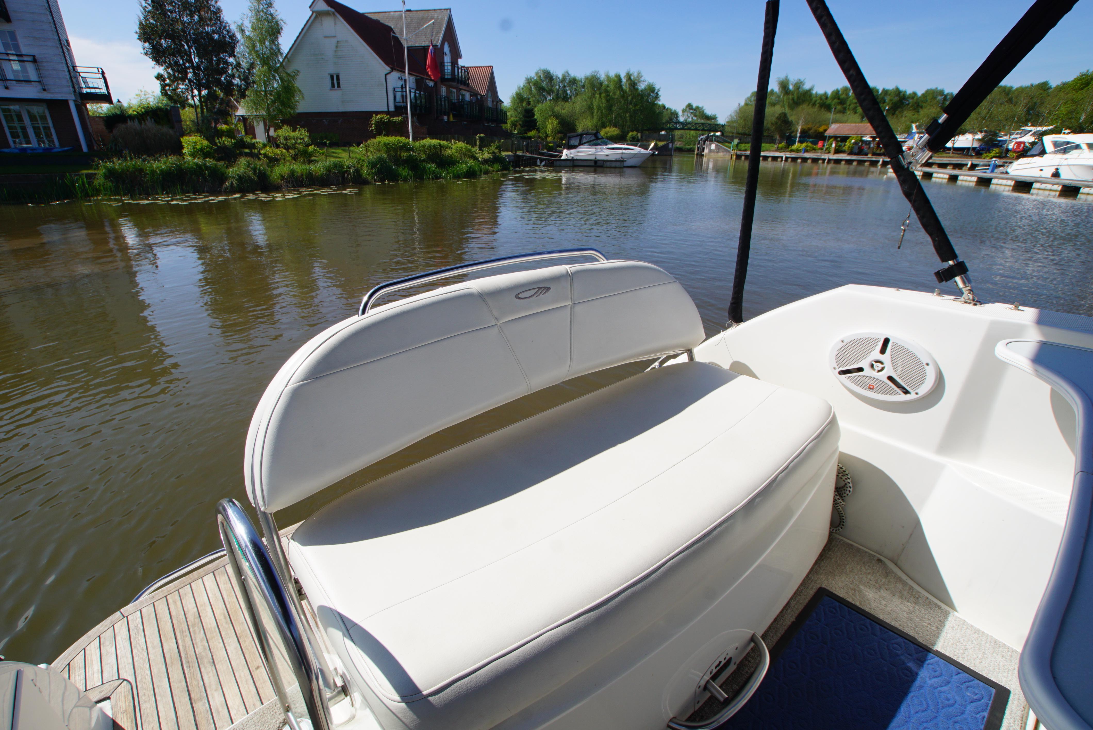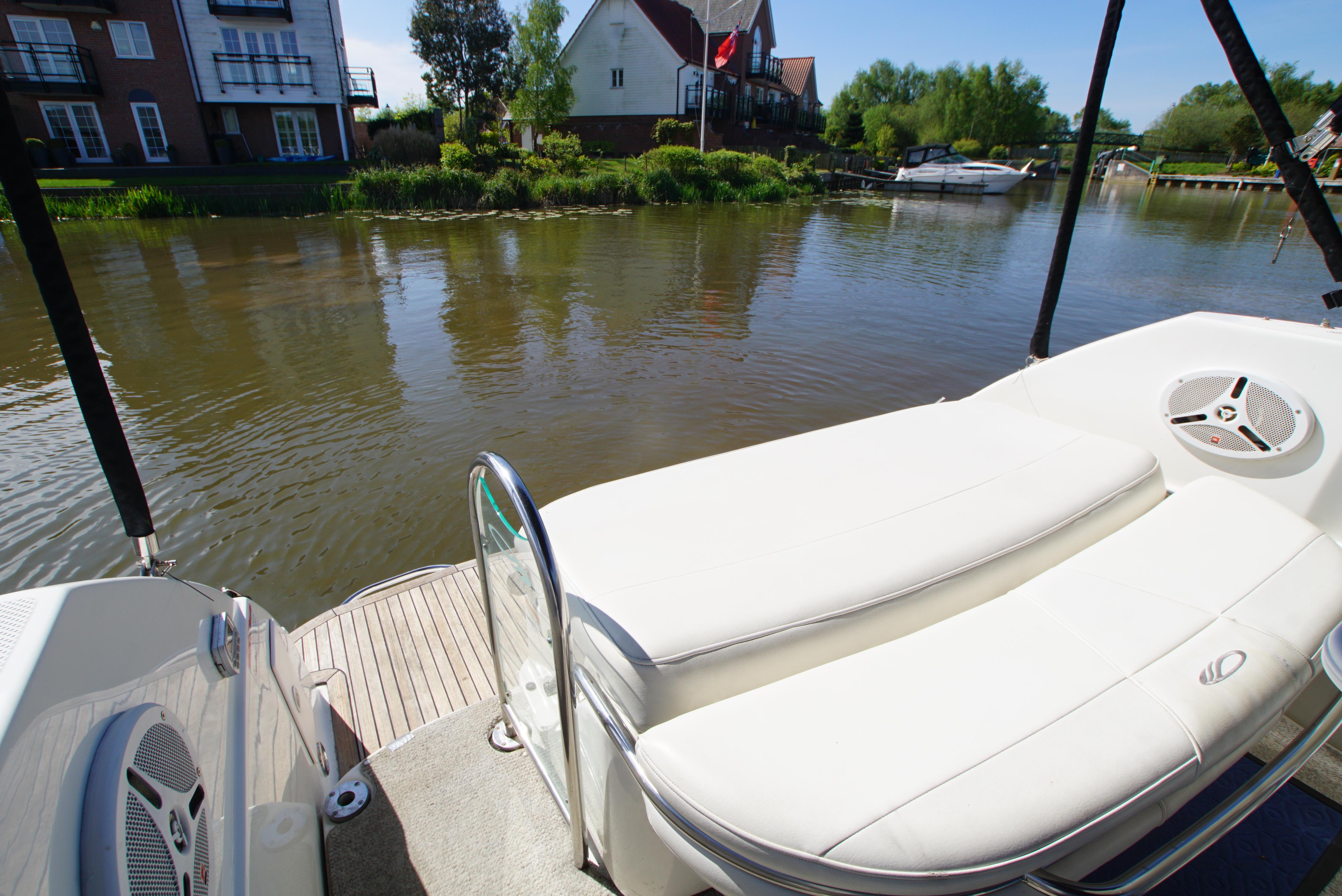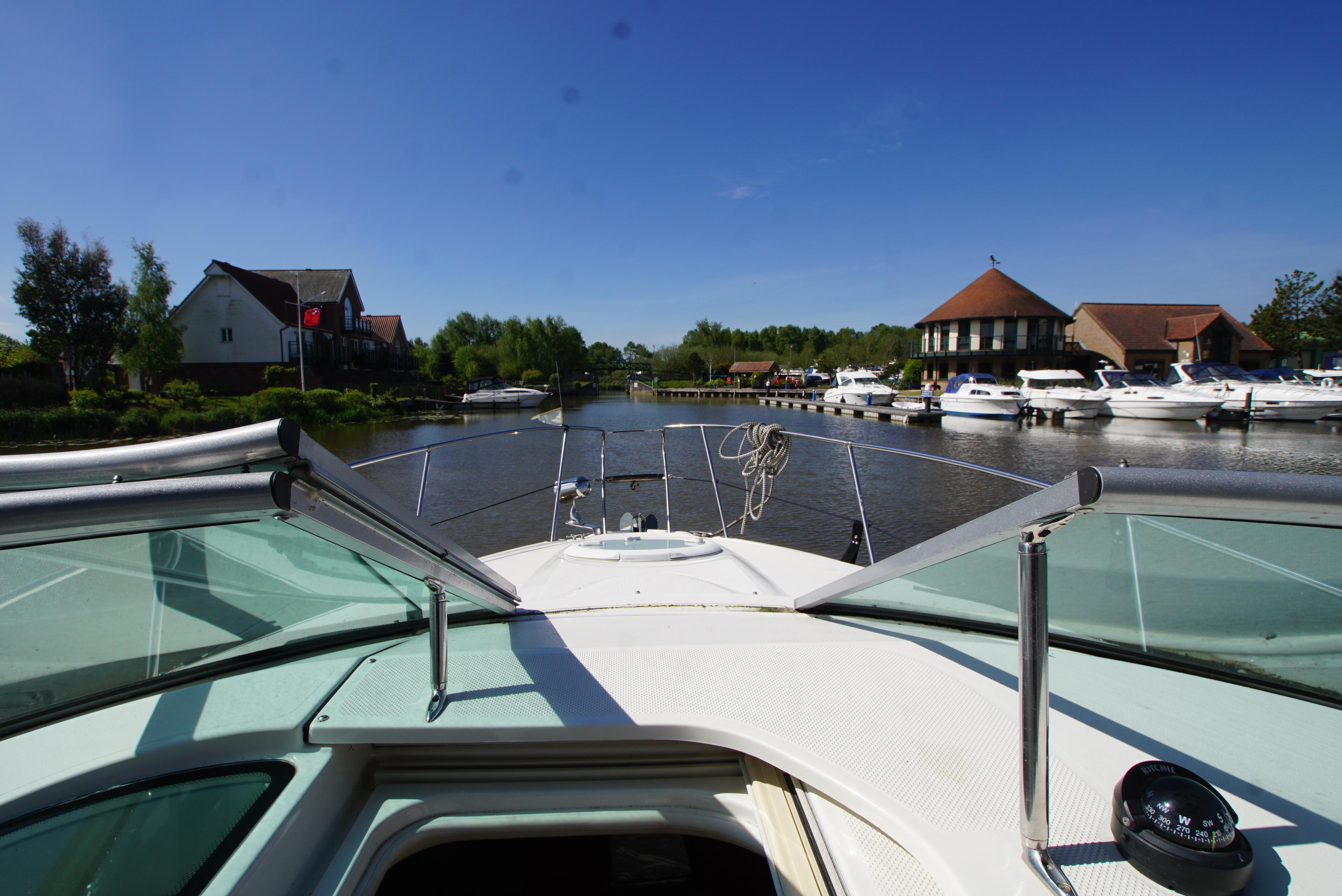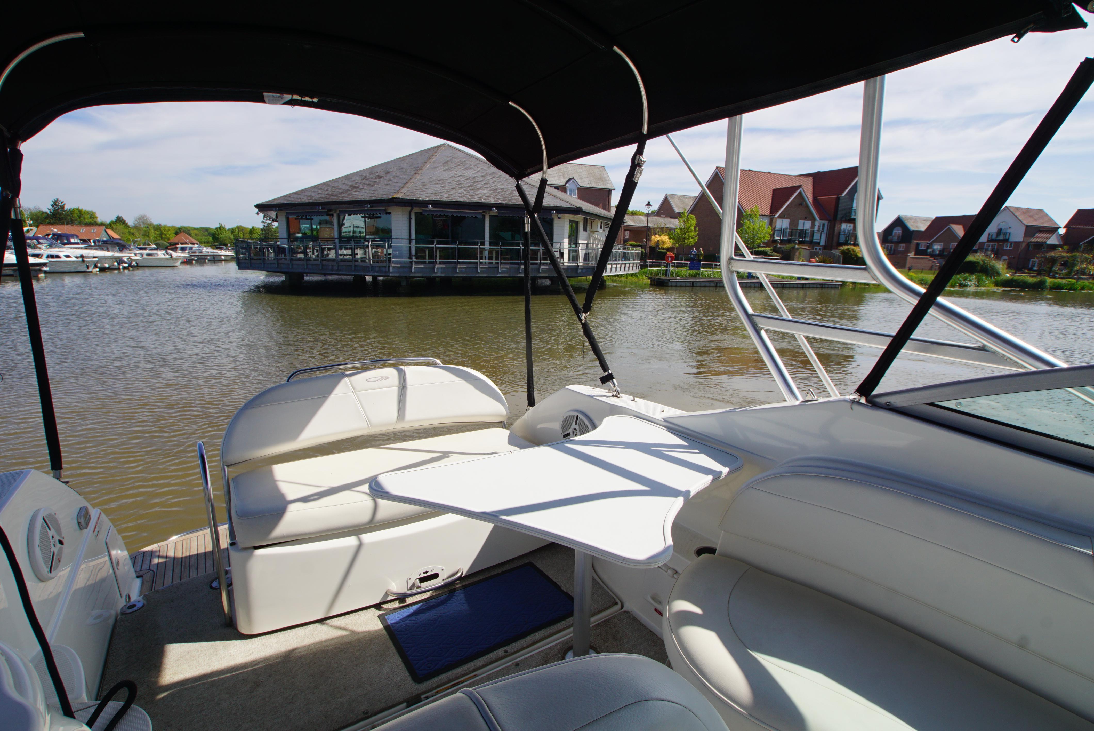 2008/09 Maxum 2700 SE sports cruiser with single Mercruiser 4.2L Diesel engine (250hp) Offering a large sociable and versatile cockpit space, this nicely presented cruiser offers a specification that includes: teak effect bathing platform, full cockpit cover with new perspex windows, wetbar, cockpit fridge, cockpit carpet, Radar/sports arch, Bowthruster, Northstar explorer plotter, VHF radio, electric hob, microwave. She has just been power polished, antifouled and is good to go for the season! Boat safety certificate valid until 2028.