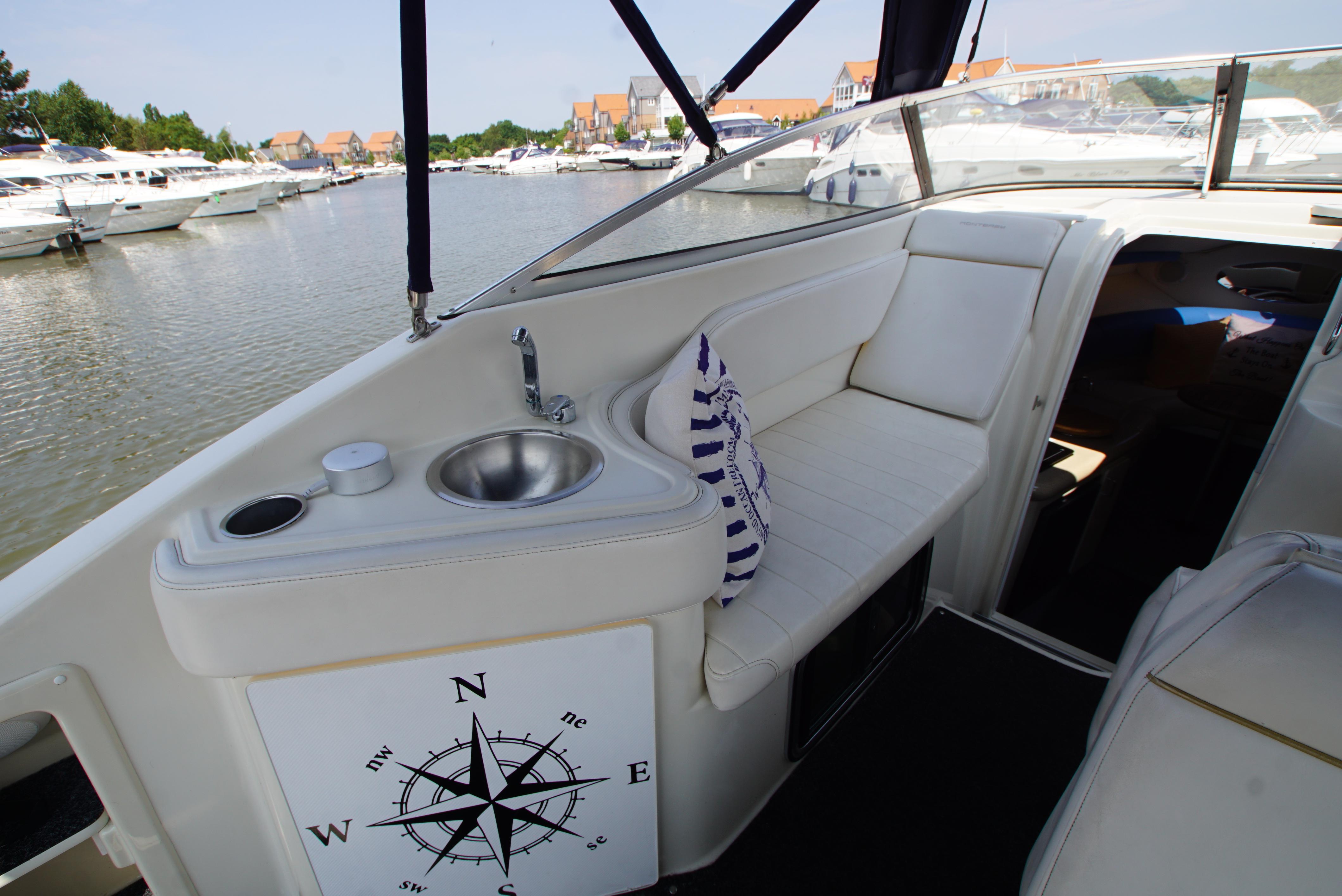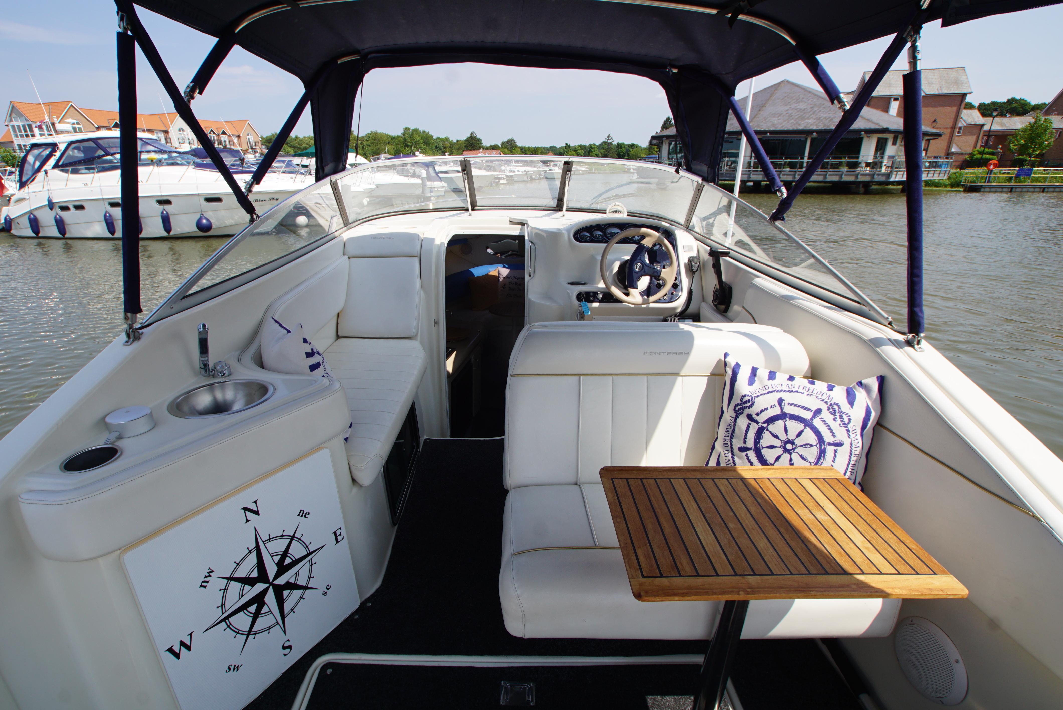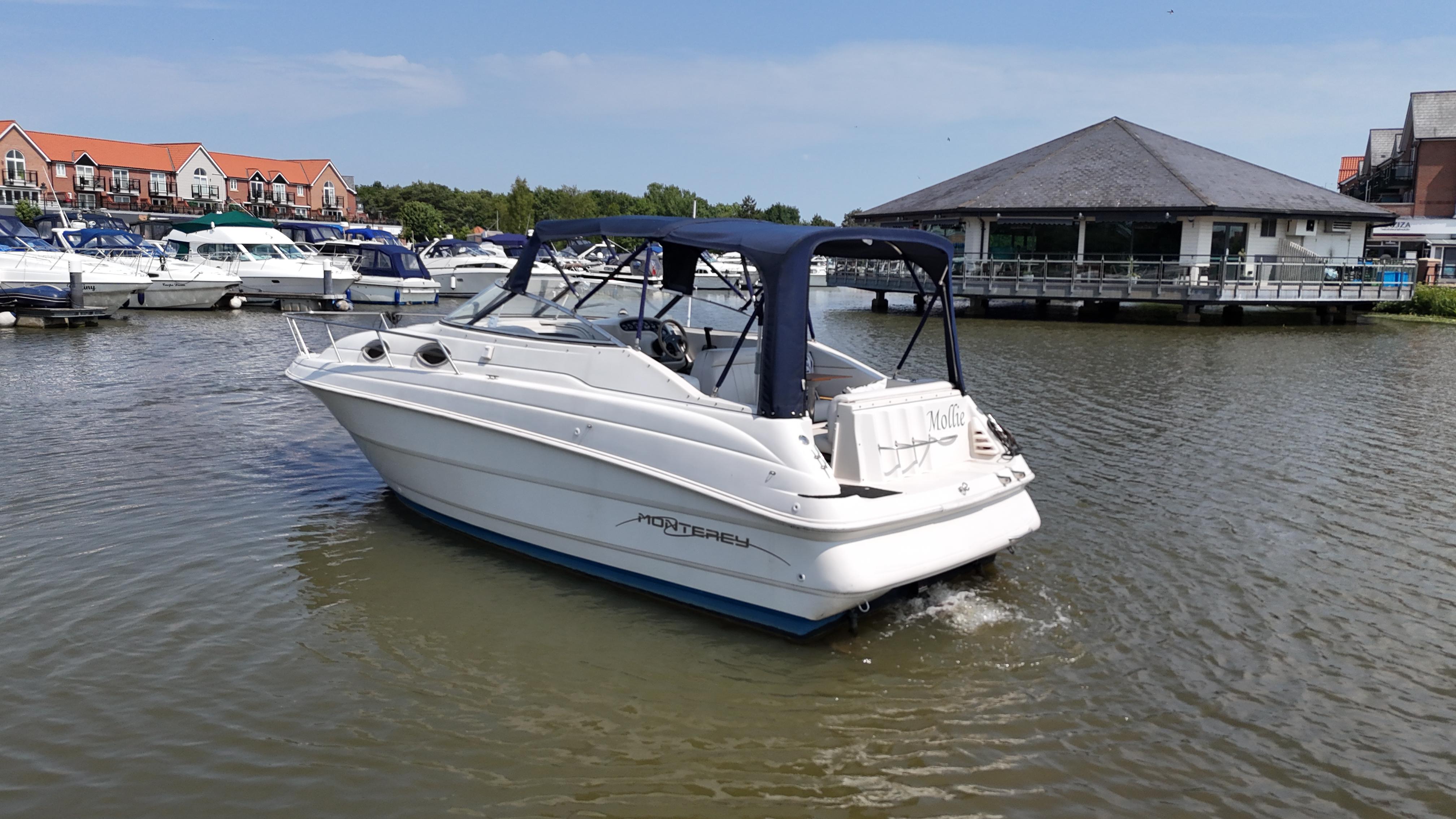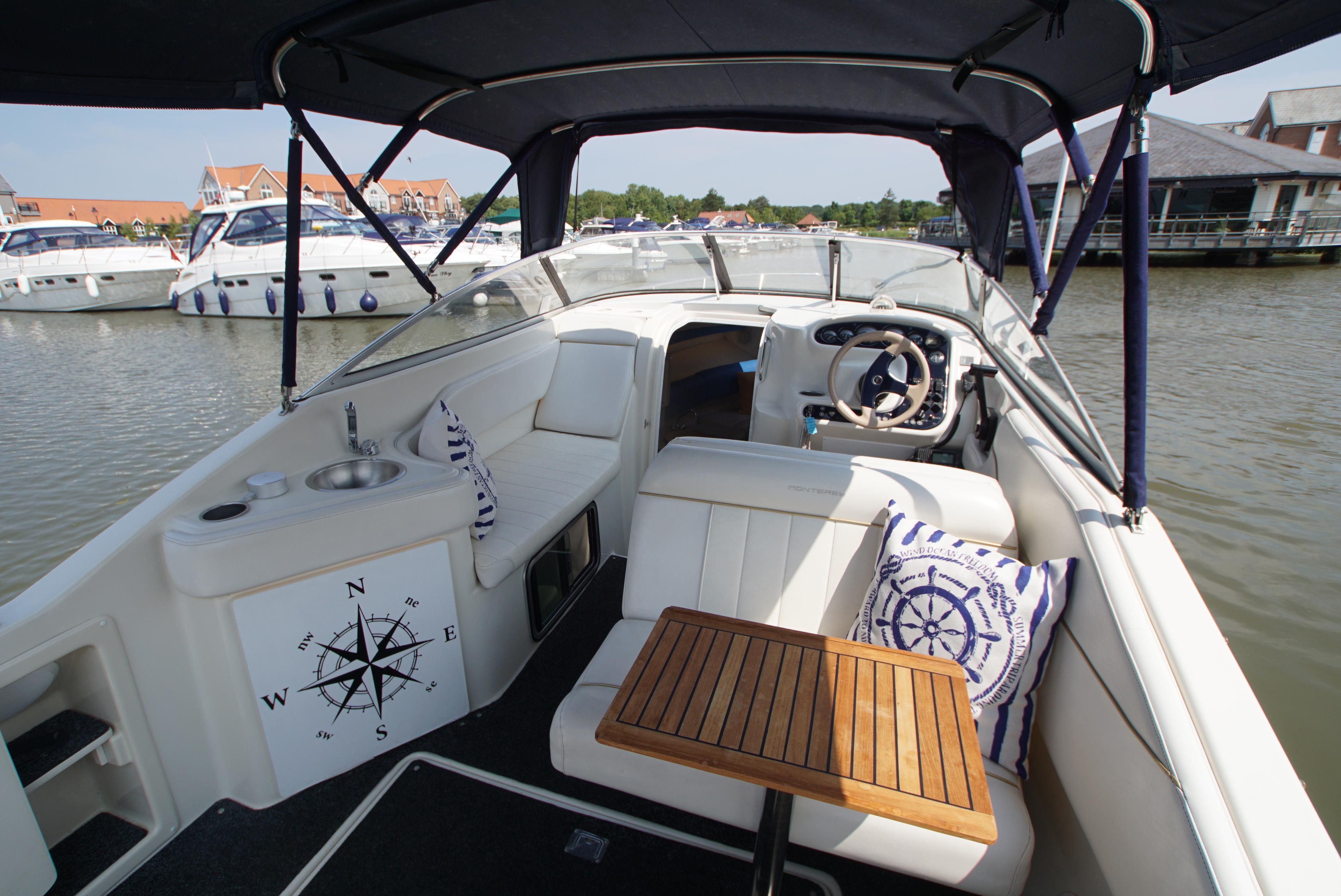 1998 Monterey 262 fitted with single Mercruiser 5.7 V8 petrol engine. Nice example offering 4 berths, including “U” shape conversion in saloon, has Specification that includes: Full cockpit canopy, cockpit wet bar, VHF, microwave, electric hob, electric toilet conversion (2022) to custom holding tank (2022) indirect mood lighting and more. The perfect boat for getting you started out on the water. Available to view 7 days a week at Burton Waters Boat Sales in Lincoln.