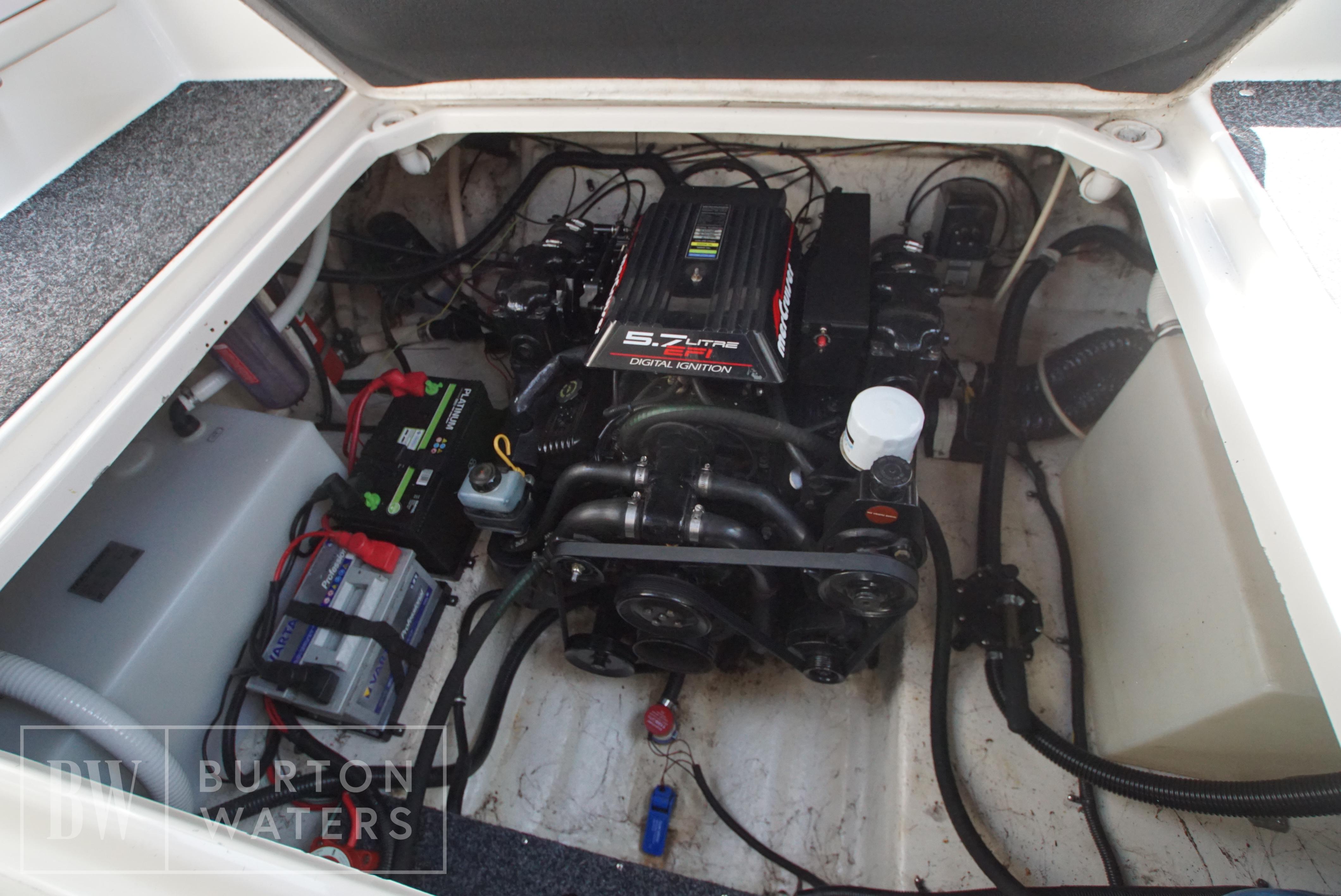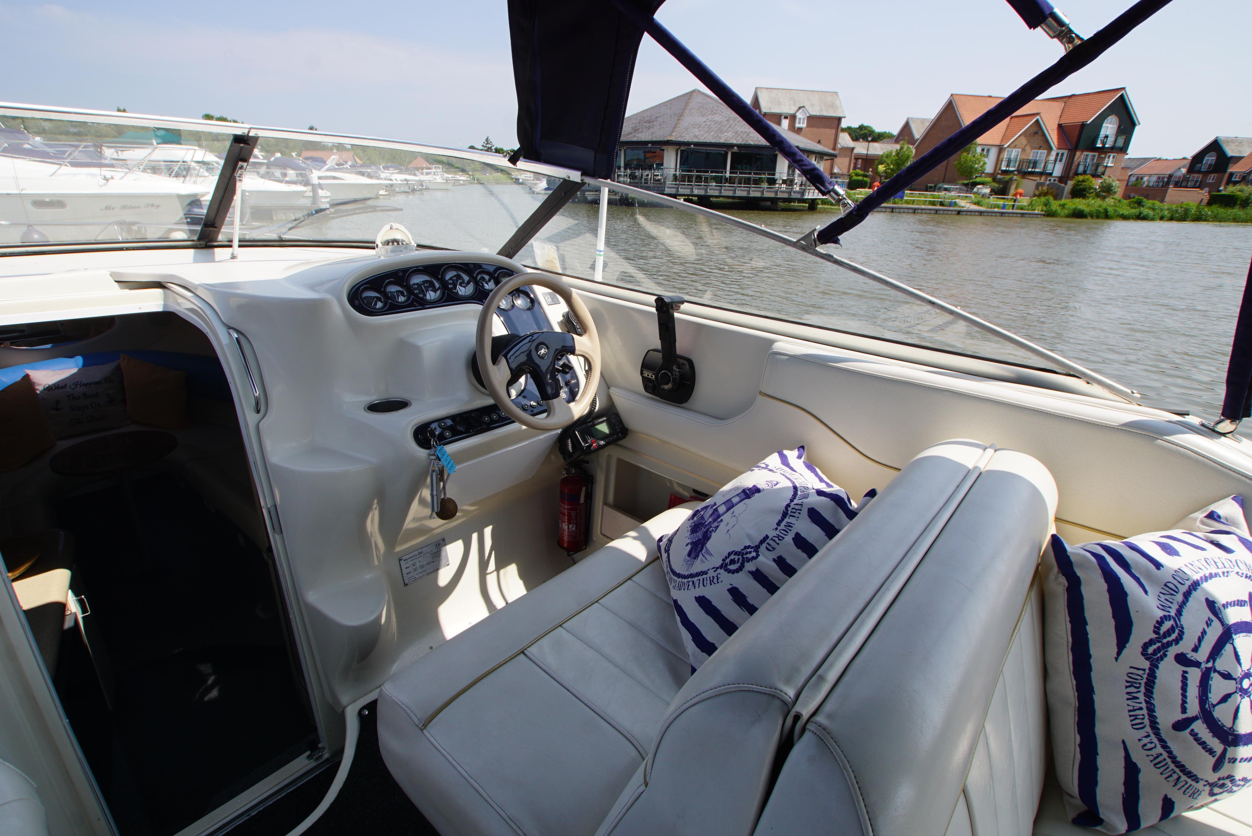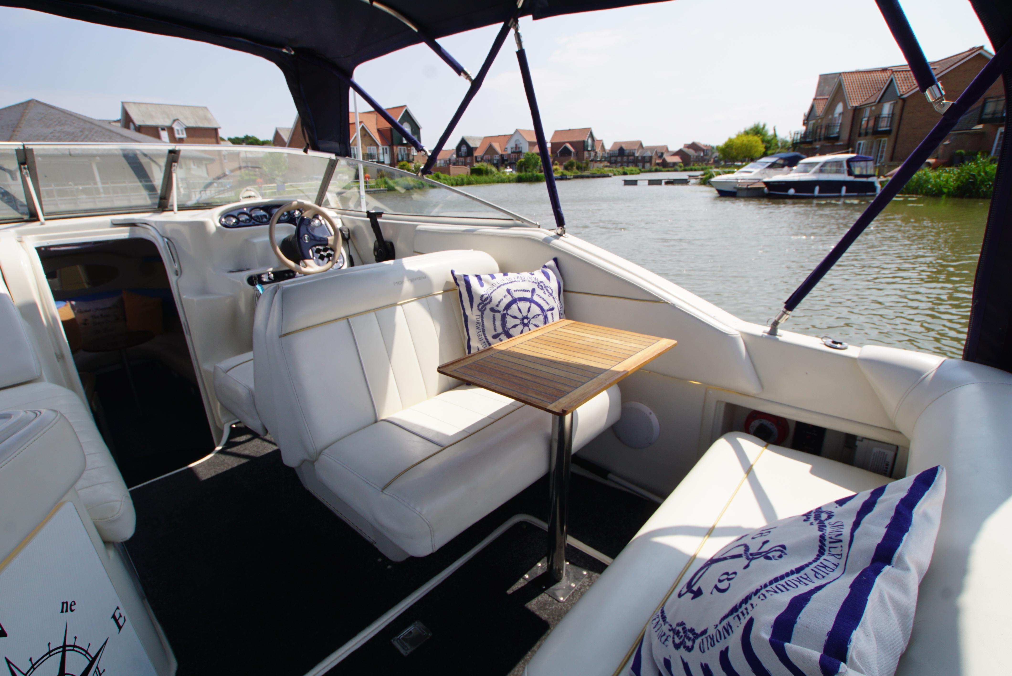 1998 Monterey 262 fitted with single Mercruiser 5.7 V8 petrol engine. Nice example offering 4 berths, including “U” shape conversion in saloon, has Specification that includes: Full cockpit canopy, cockpit wet bar, VHF, microwave, electric hob, electric toilet conversion (2022) to custom holding tank (2022) indirect mood lighting and more. The perfect boat for getting you started out on the water. Available to view 7 days a week at Burton Waters Boat Sales in Lincoln.