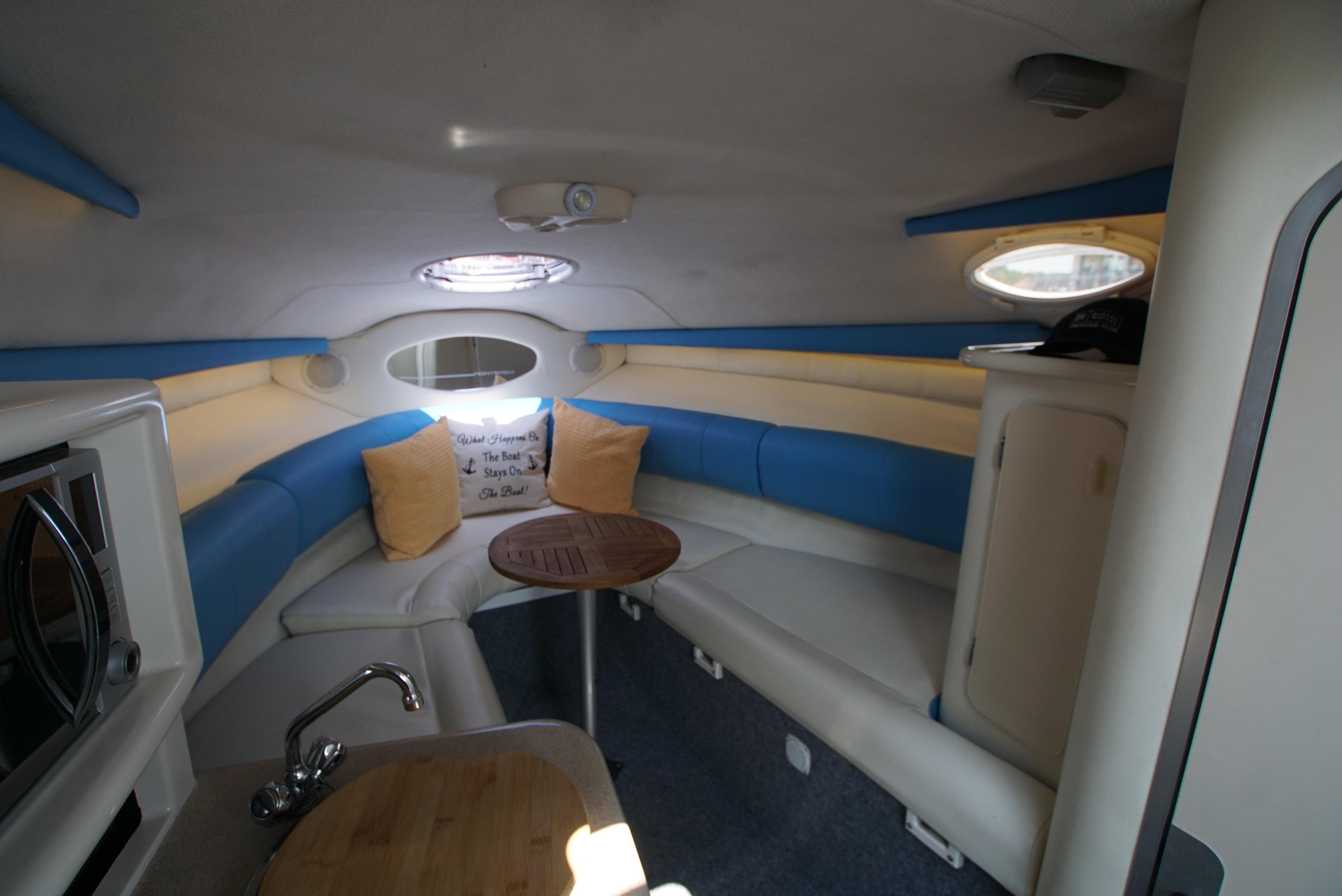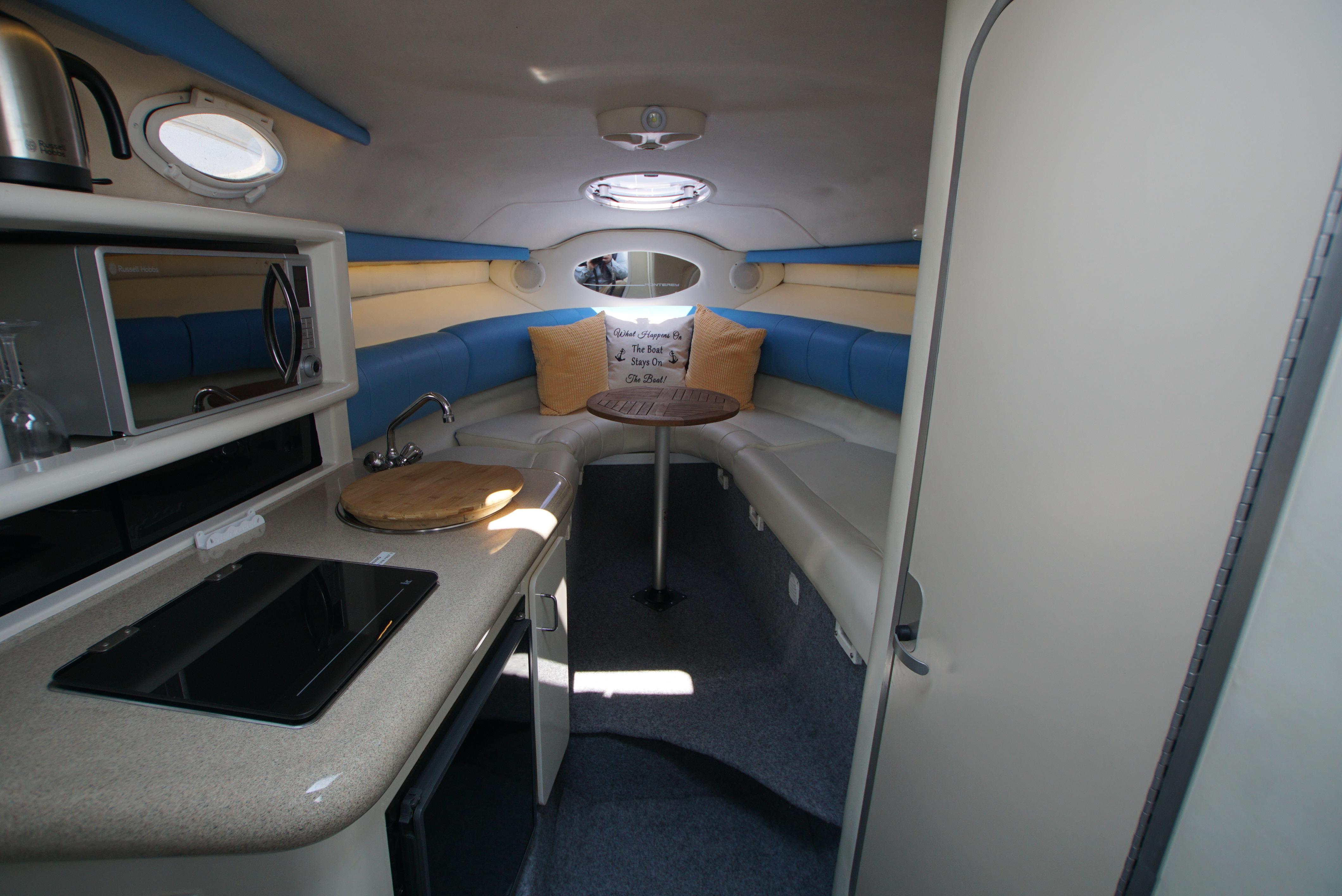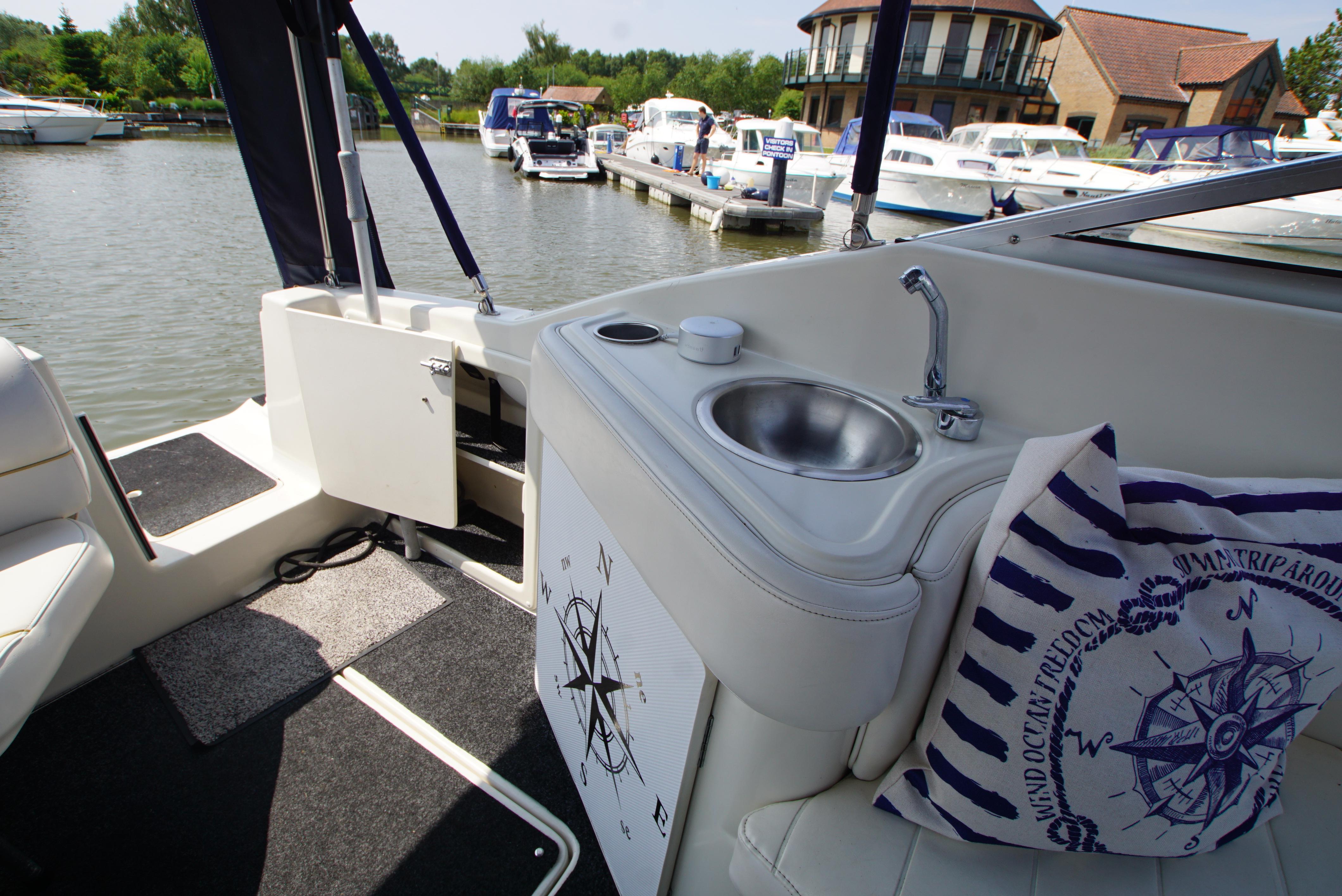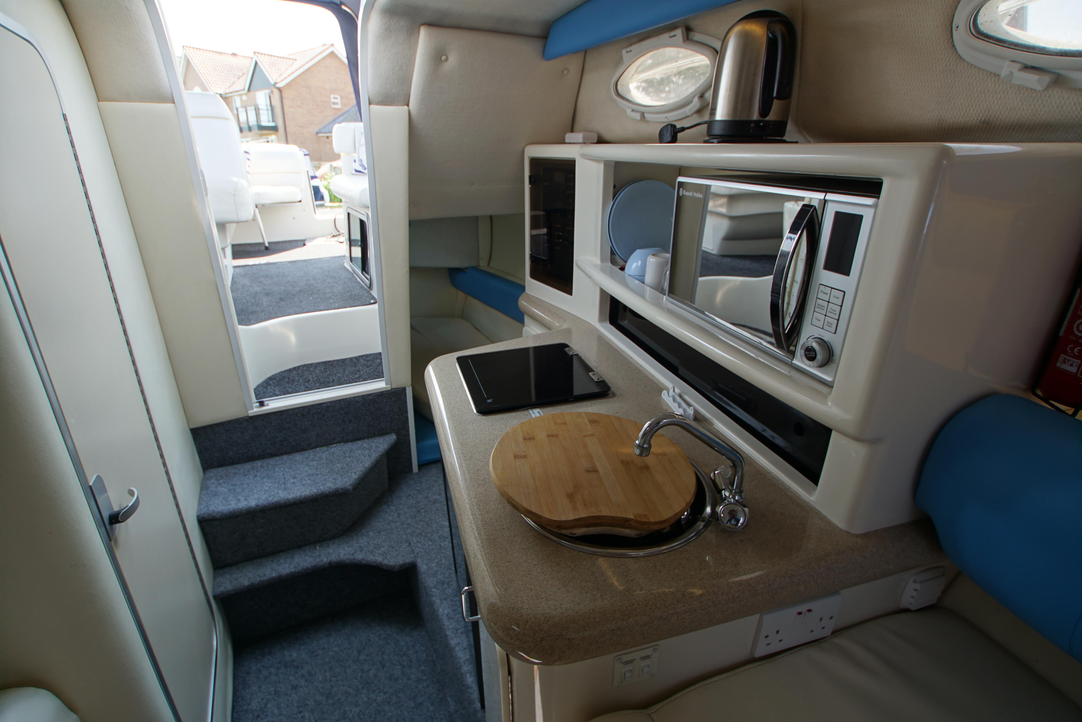 1998 Monterey 262 fitted with single Mercruiser 5.7 V8 petrol engine. Nice example offering 4 berths, including “U” shape conversion in saloon, has Specification that includes: Full cockpit canopy, cockpit wet bar, VHF, microwave, electric hob, electric toilet conversion (2022) to custom holding tank (2022) indirect mood lighting and more. The perfect boat for getting you started out on the water. Available to view 7 days a week at Burton Waters Boat Sales in Lincoln.