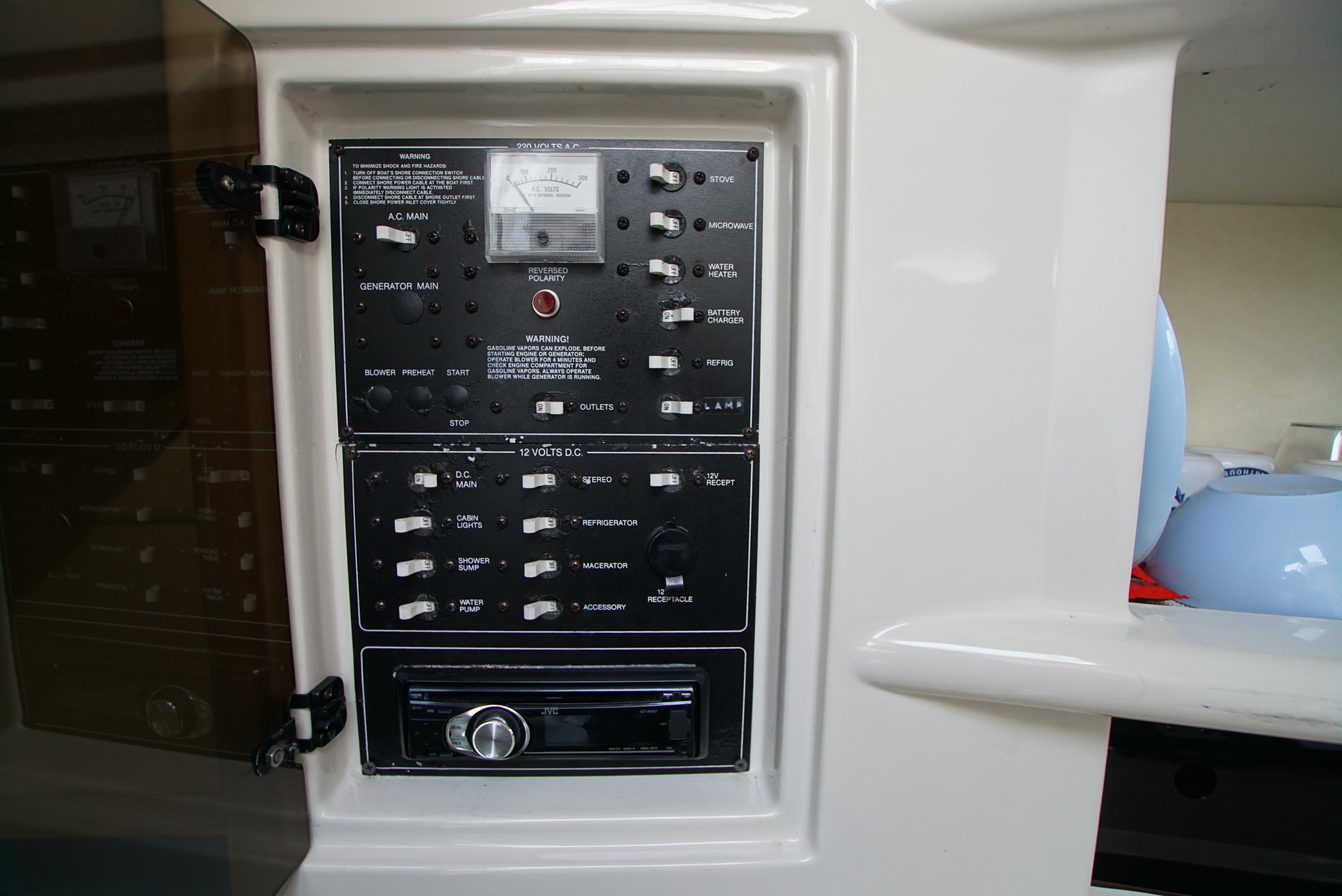 28/09/2021- Electrical overhaul- Fuel tank vent, RCCB fitted, mains cable, remove old battery charger, refit new unit, dual hob cooker repaired, bilge pump unit replaced helm, control panel electrics inspected and tested including cockpit switches, fire extinguishers serviced labeled, double plug sockets engine bay, led light fused wiring