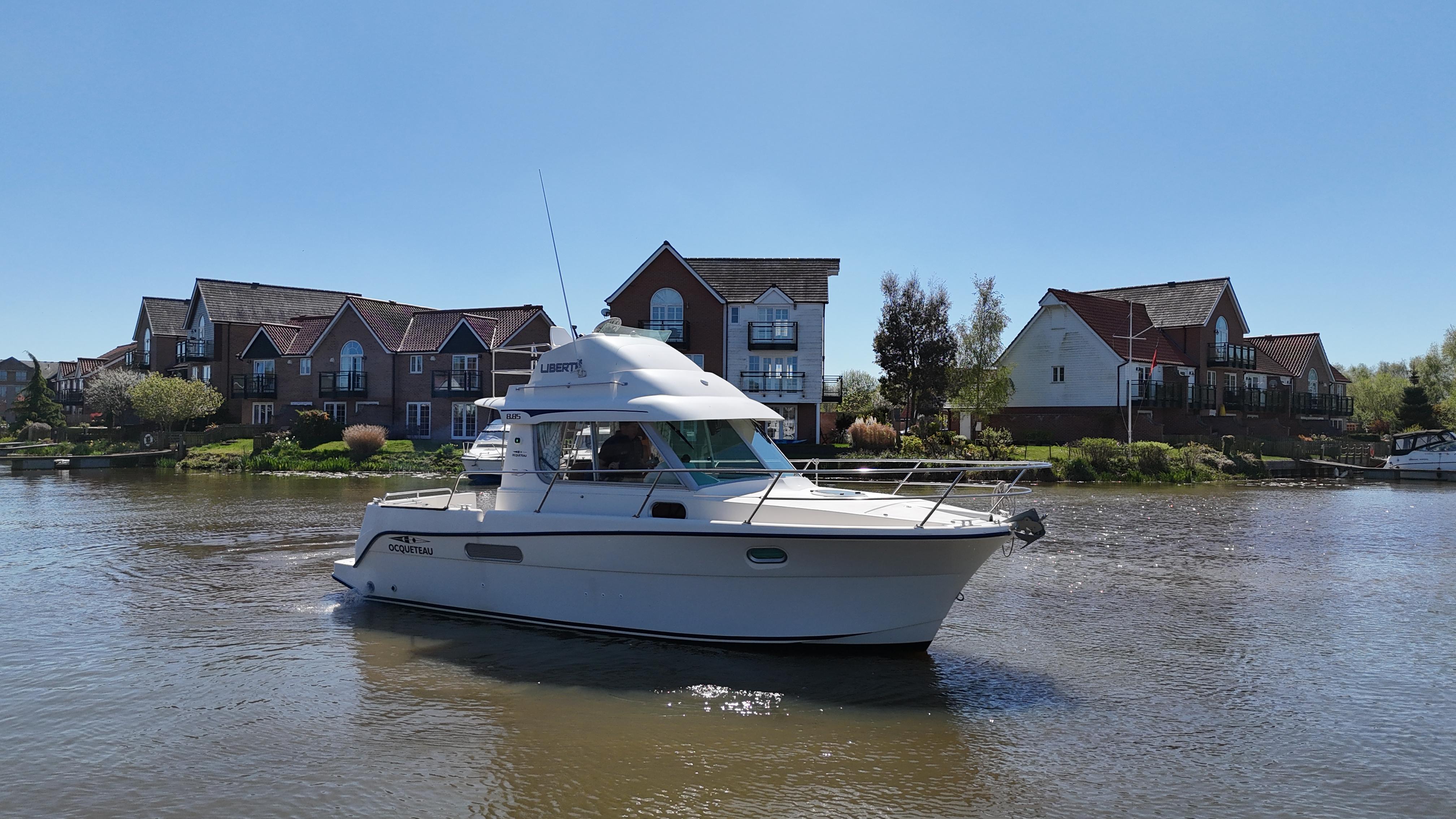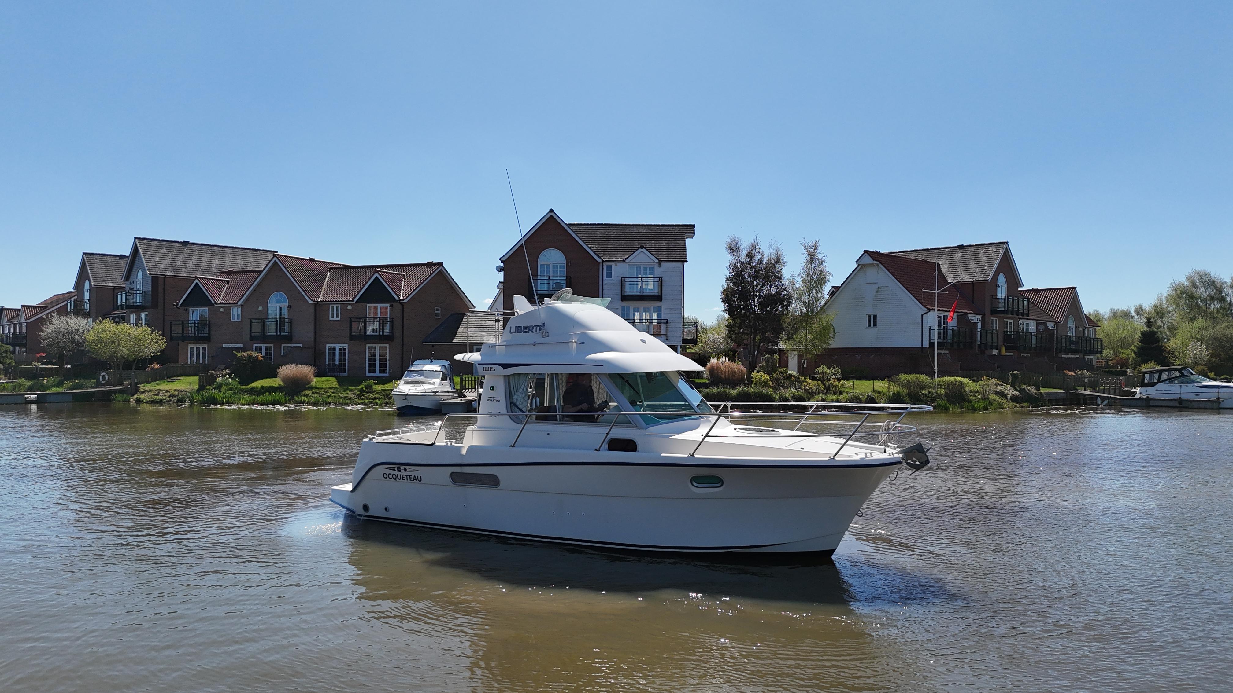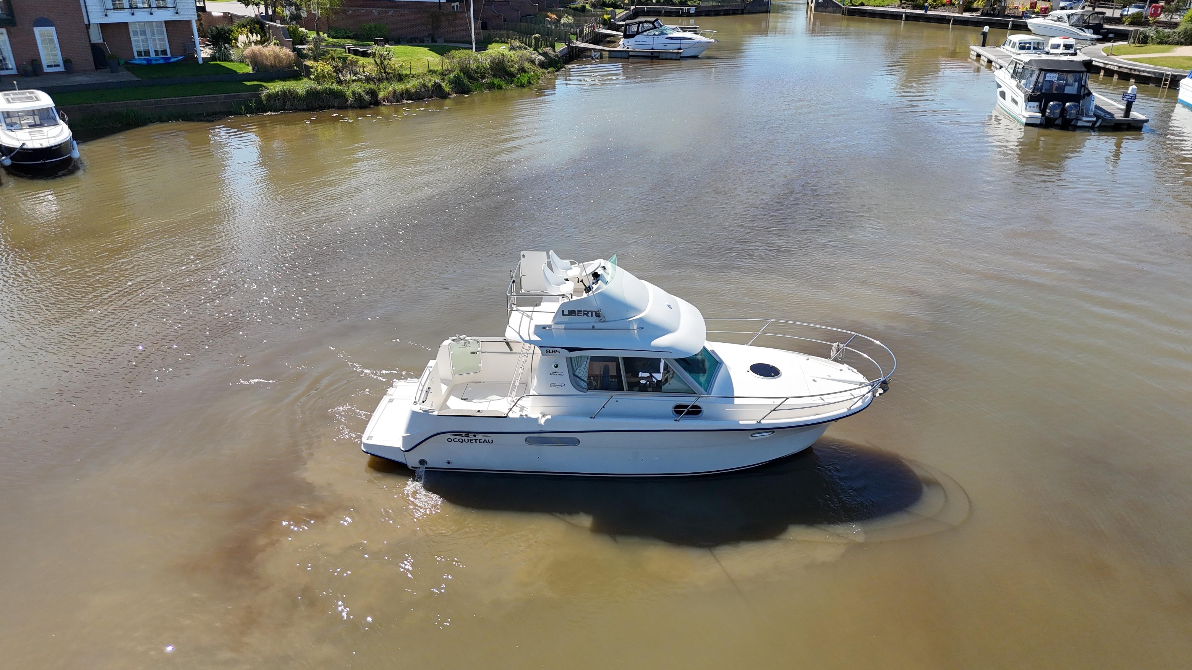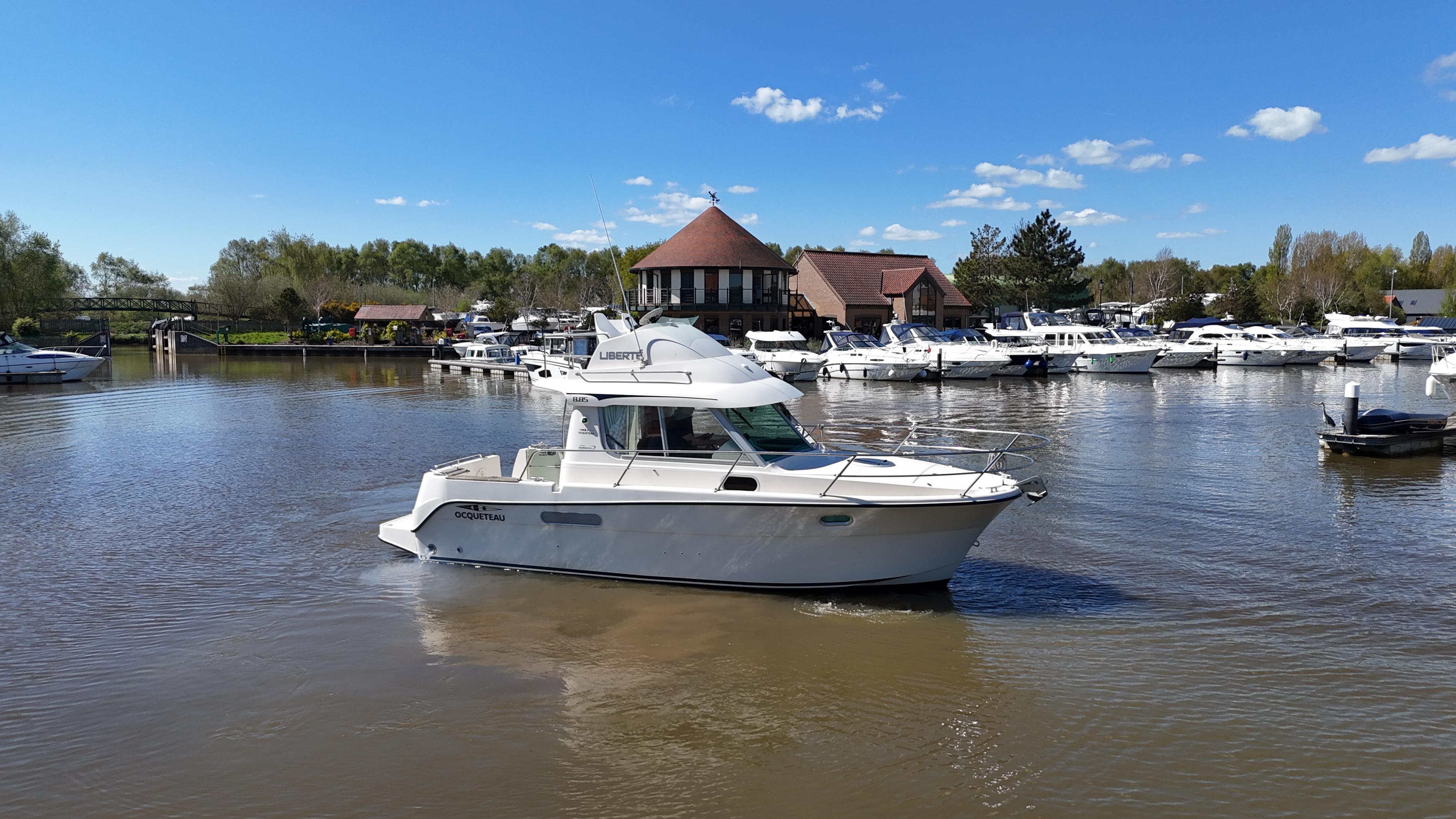 Ocqueteau 885 Flybridge, 2006 build 2007 model year and equipped with a single Nanni 300hp diesel engine on a shaft drive with only 220 hours completed. Presented in excellent condition throughout and has a specification that includes bow thruster, electric toilet, electric windlass, trim tabs, shore power, VHF and Navman track fish. This is a safe and economical cruiser ideal for weekends fishing or cruising. Viewings 7 days a week in Lincoln.