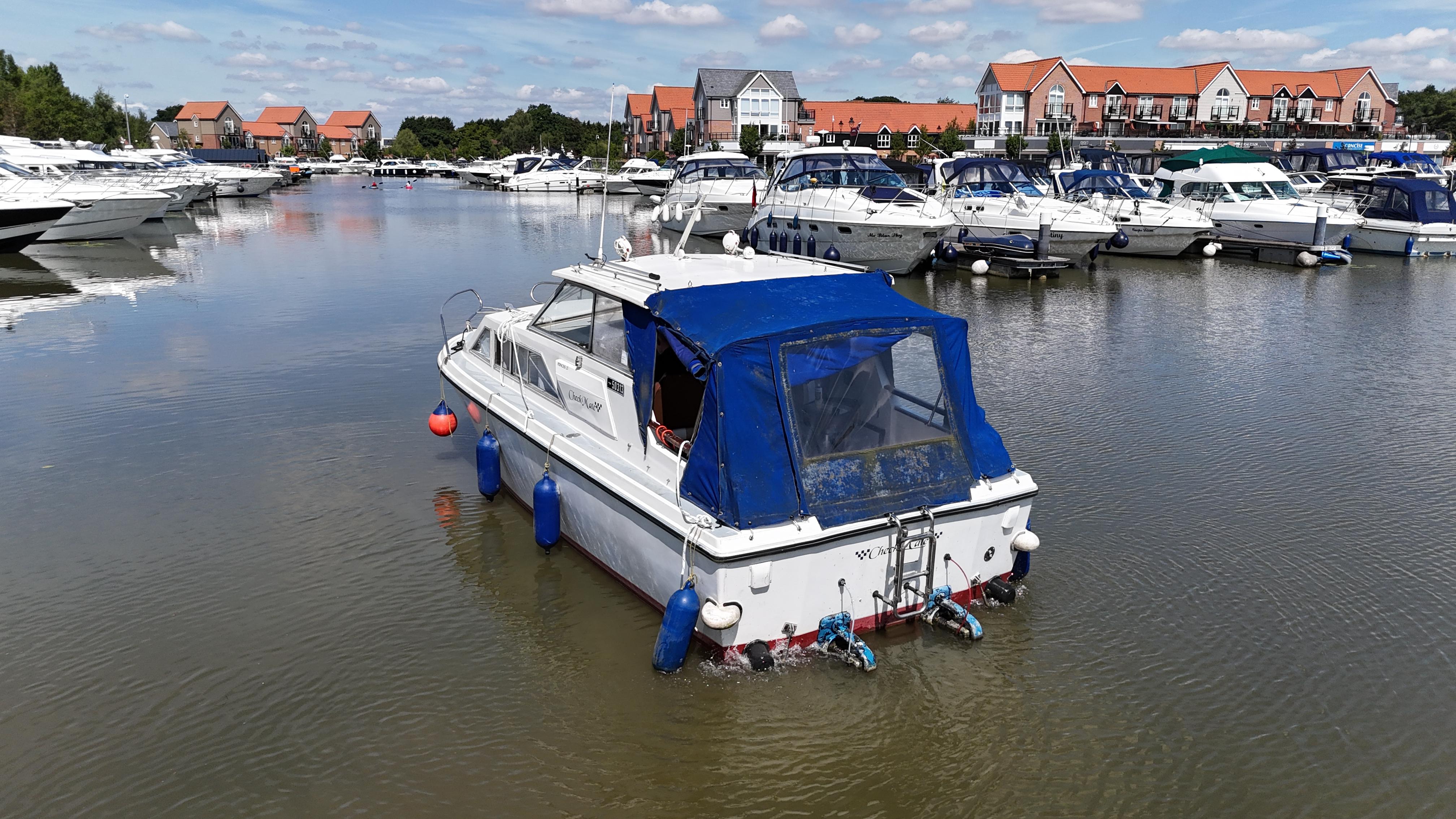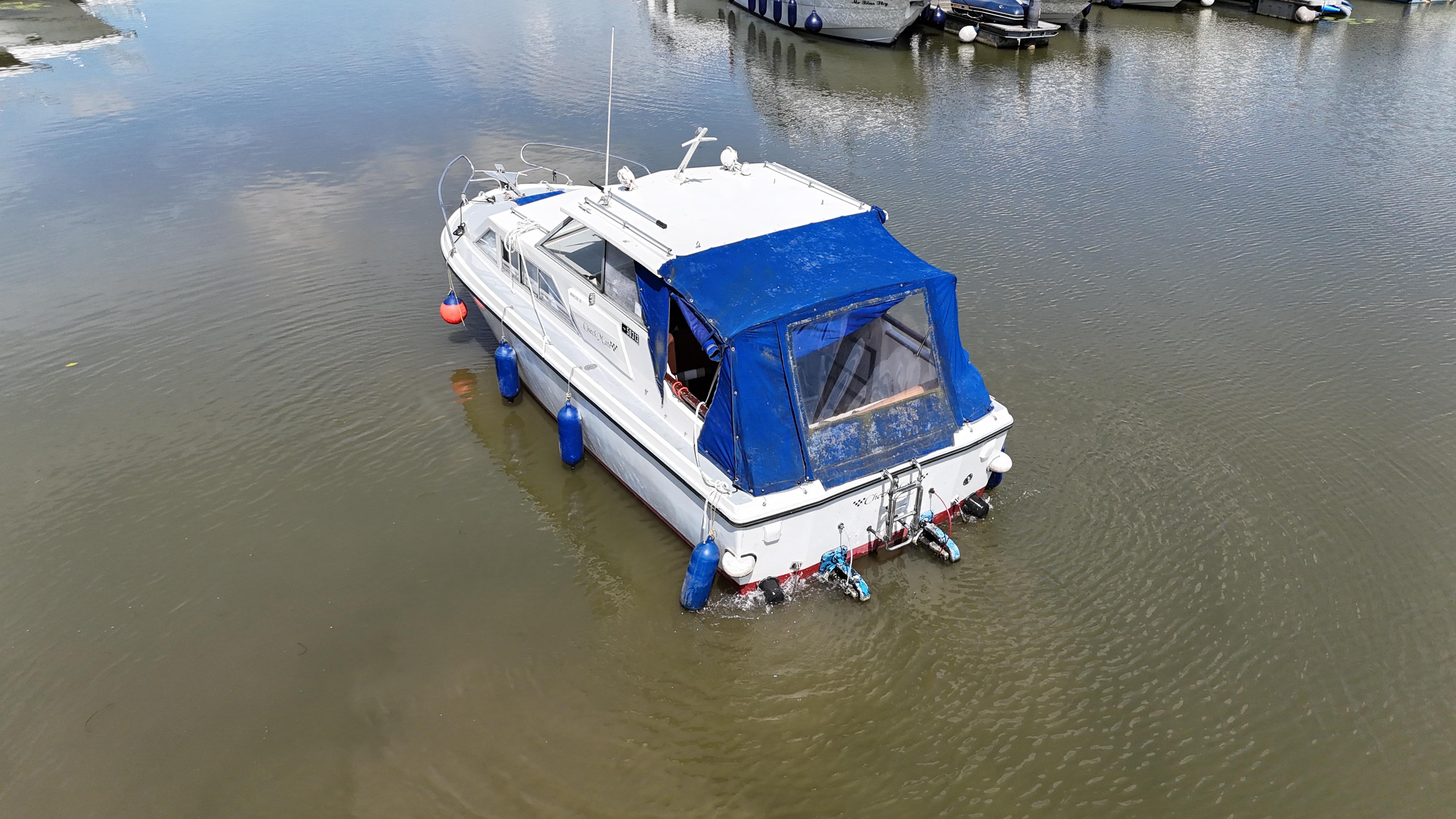 1980 Princess 25 with twin Perkins 4108 Diesel engines on enfield outdrives, The vessel offers a Galley with gas oven, grill and hob plus sink with hot and cold water, opposite the galley is a dining area and to the front of the vessel a saloon area convertible into a double v berth. The vessel also benefits from having a head with Sea toilet as well as a Porta Pottie and wash basin. the vessel is equipped with shore power and battery charger, full new aft canopy (fitted August 2025) rear cockpit cushions (new in 2024) and helm seat. Recent works include polish and hand wax as well as replacement bellows. Boat Safety certificate valid until 2029. Available to view 7 days a week at Burton Waters Boat Sales in Lincoln.