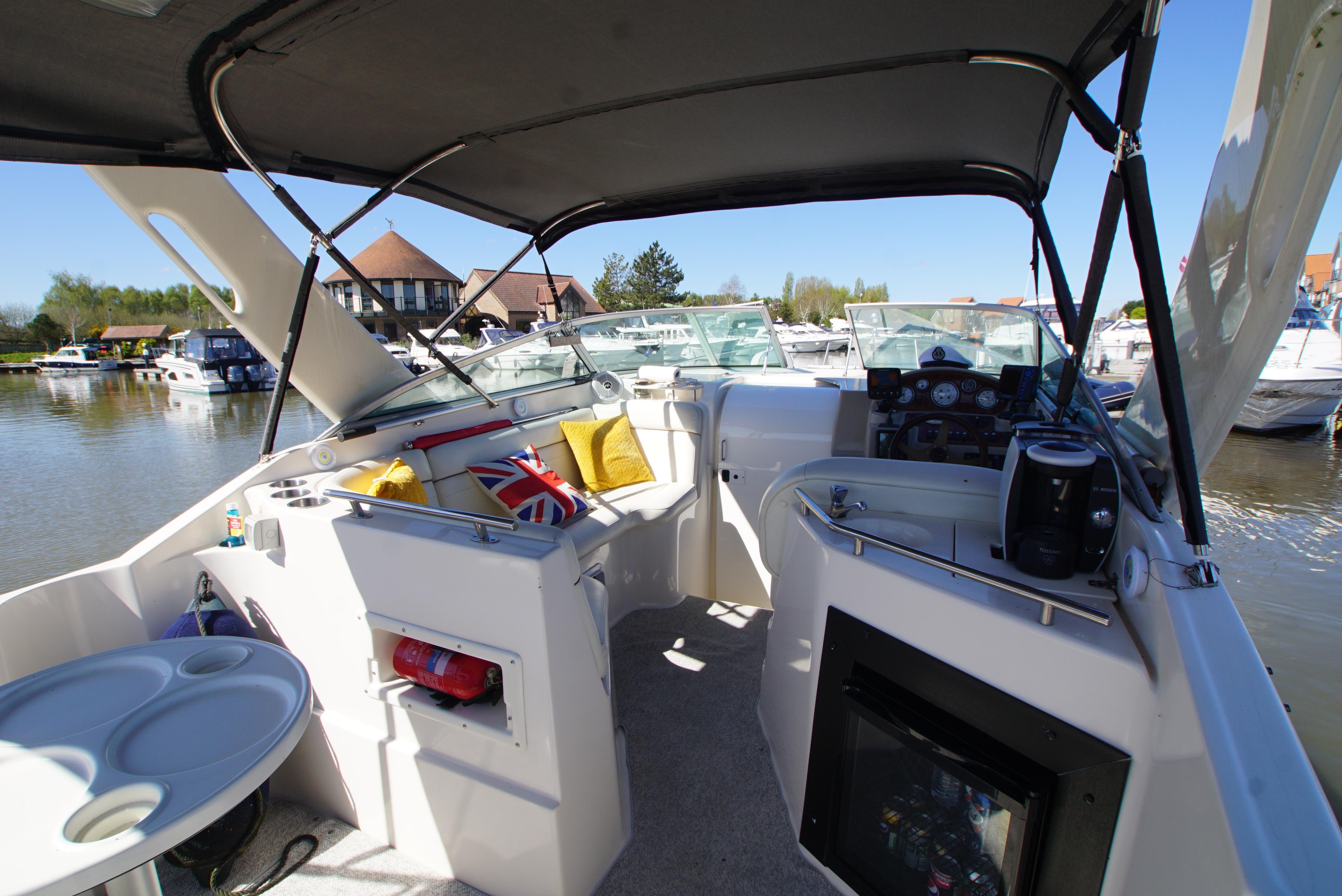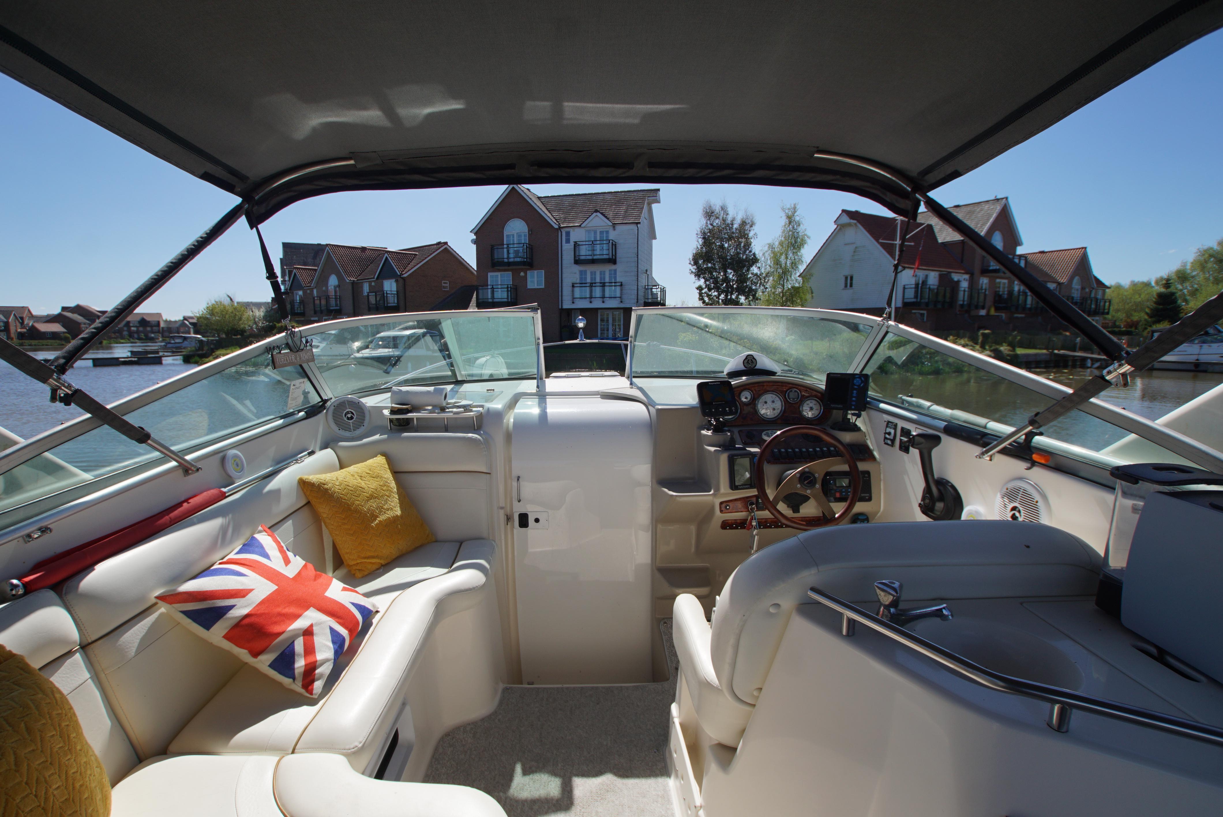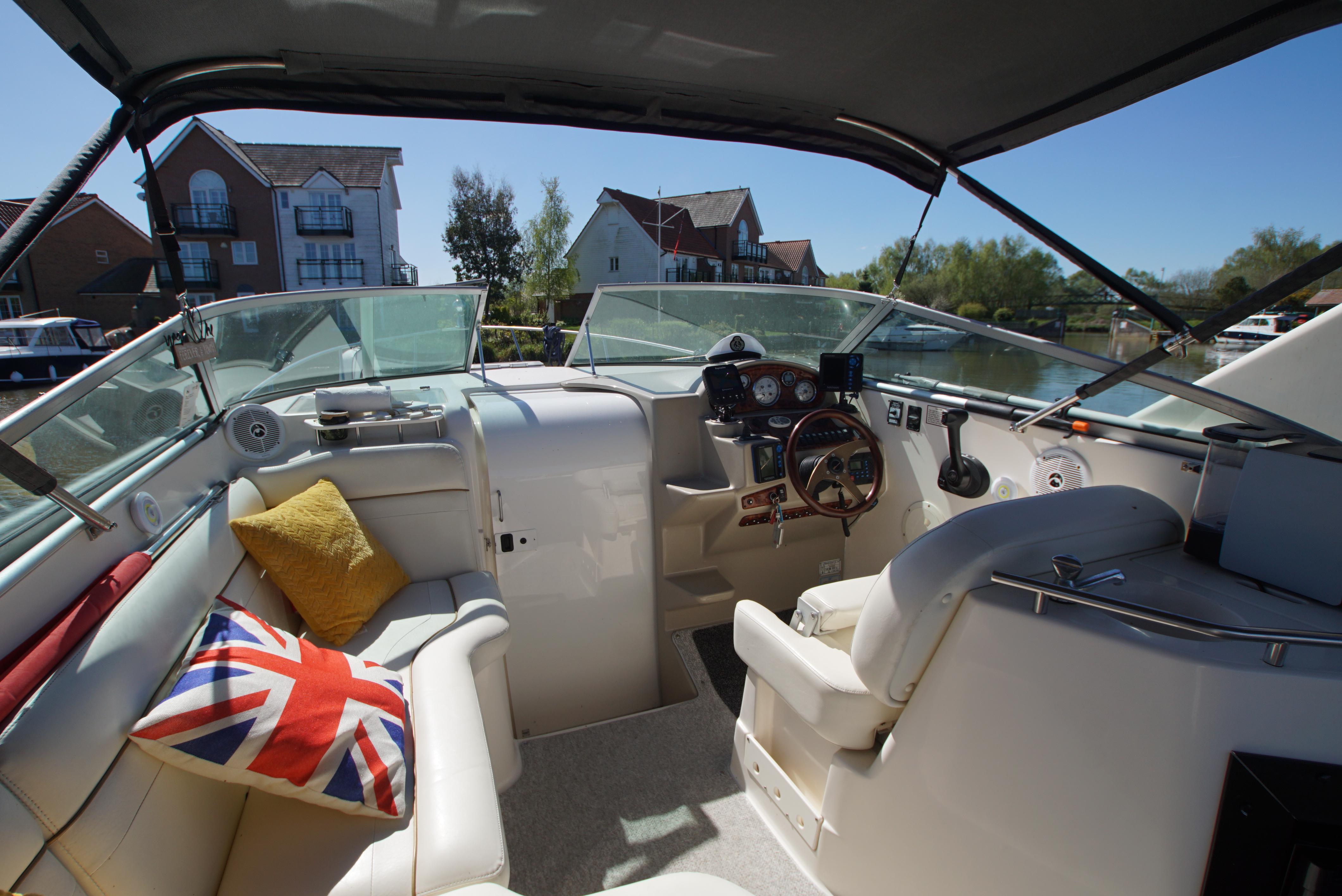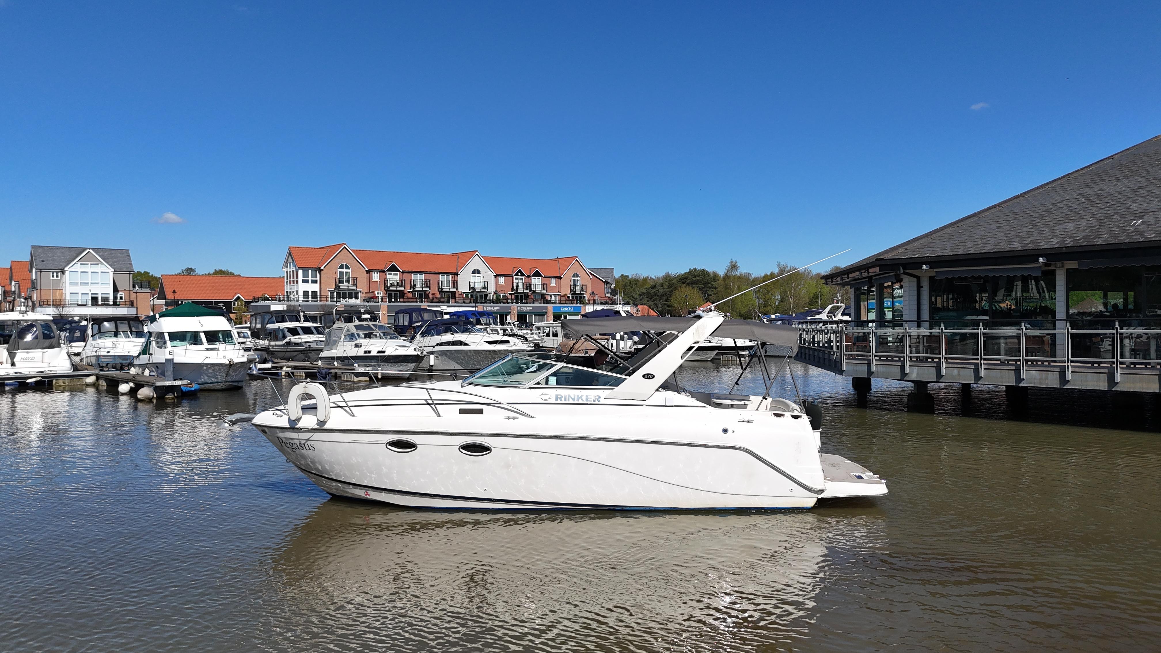 2002 build, 2003 model Rinker 270 equipped with Single Mercruiser 5.7 ltr 350 Mag Petrol engine. This model offers a spacious cockpit for entertaining, complete with ample seating, cockpit canopy (replaced 2023) wetbar, cockpit fridge, Bow Thruster, VHF, Dragonfly chartplotter, FM radio, depth gauge, trim tabs, remote spotlight, microwave, electric hob, interior fridge, manual toilet and more. Boat safety certificate valid until 2028, available to view 7 days a week at Burton Waters Boat Sales in Lincoln.