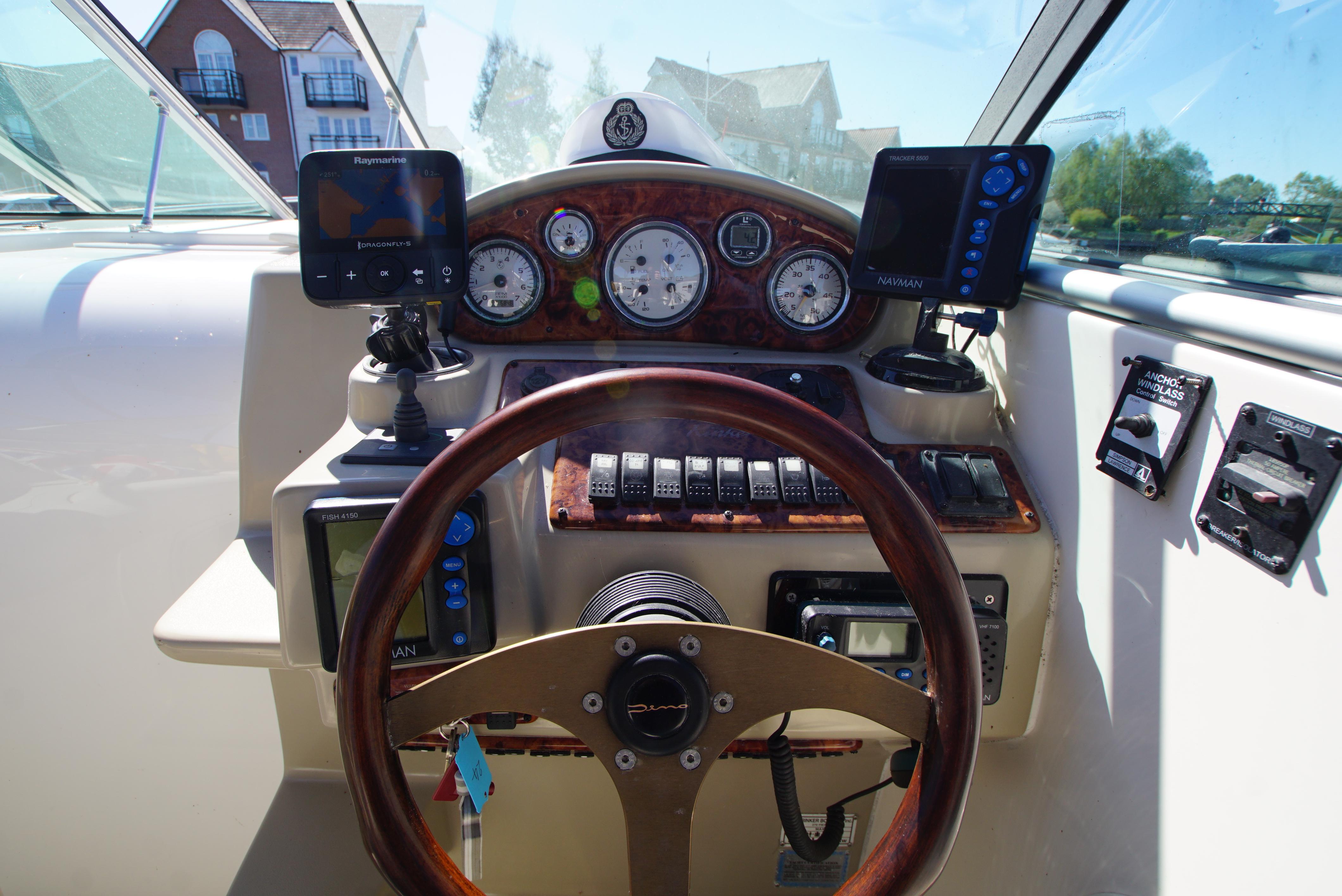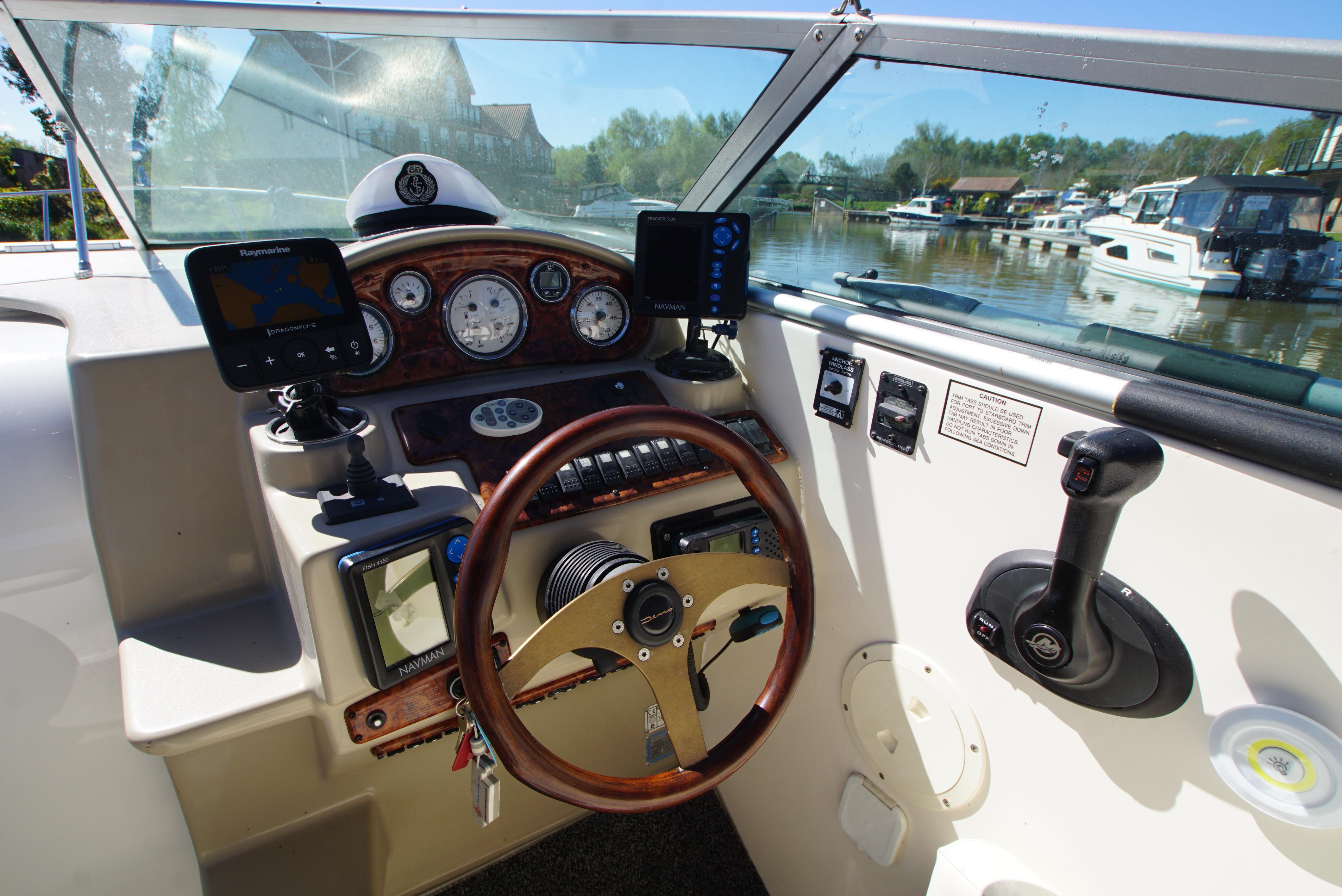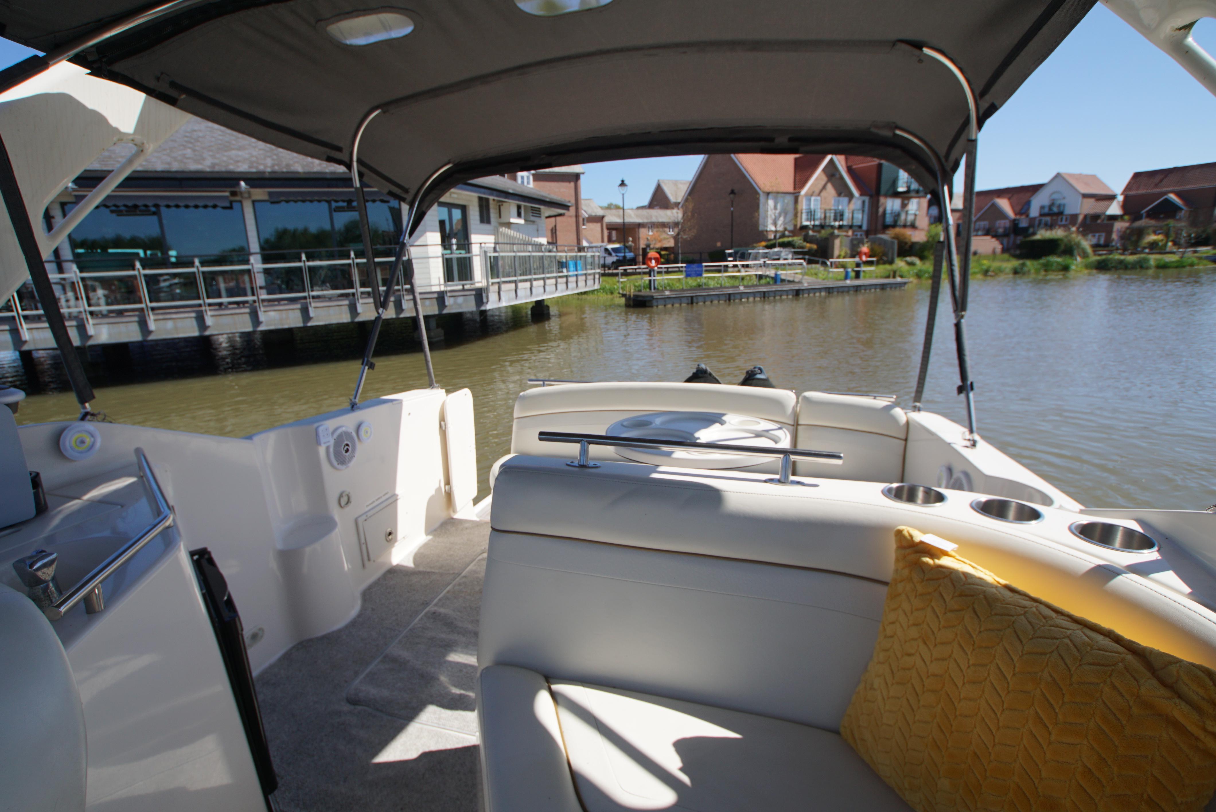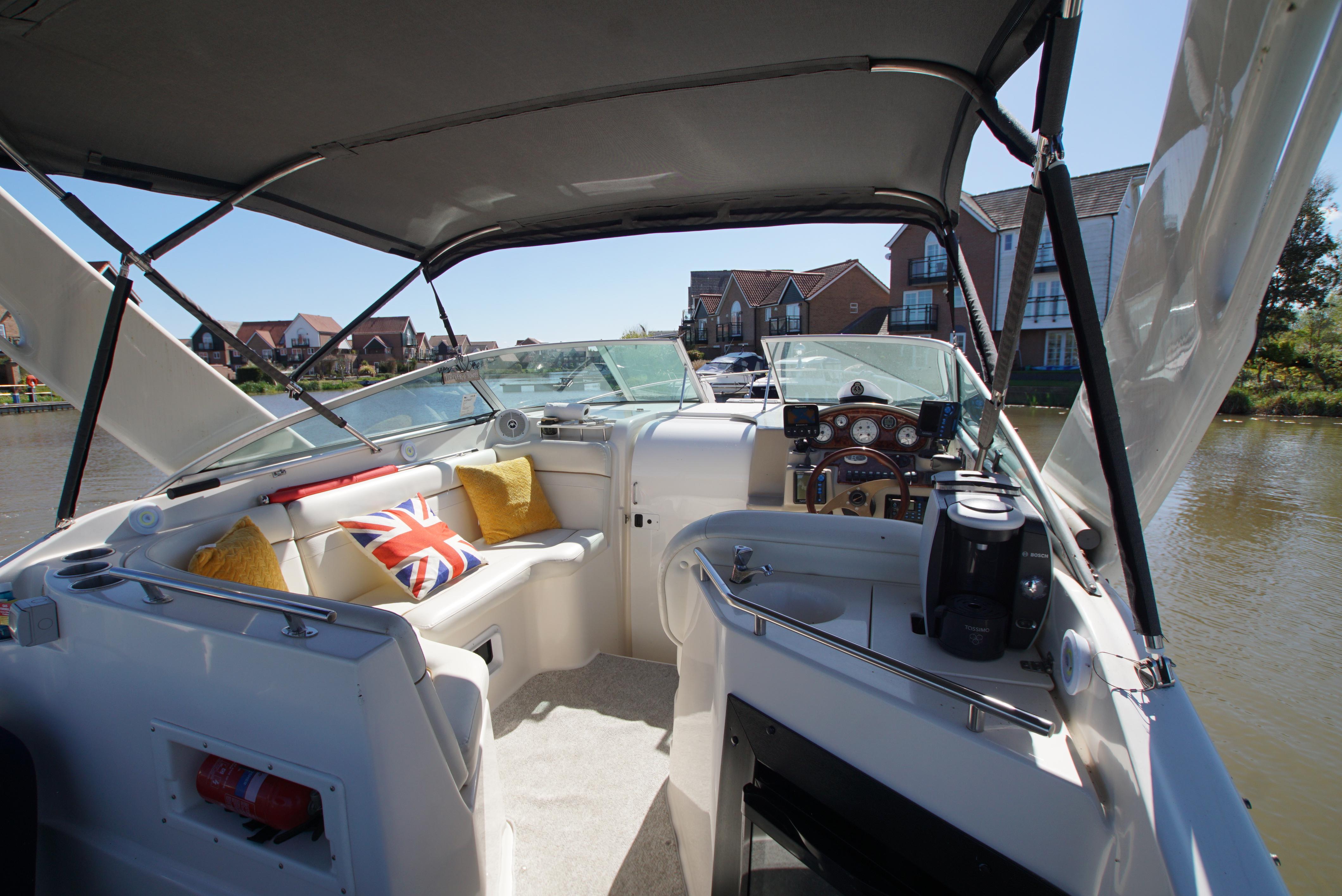 2002 build, 2003 model Rinker 270 equipped with Single Mercruiser 5.7 ltr 350 Mag Petrol engine. This model offers a spacious cockpit for entertaining, complete with ample seating, cockpit canopy (replaced 2023) wetbar, cockpit fridge, Bow Thruster, VHF, Dragonfly chartplotter, FM radio, depth gauge, trim tabs, remote spotlight, microwave, electric hob, interior fridge, manual toilet and more. Boat safety certificate valid until 2028, available to view 7 days a week at Burton Waters Boat Sales in Lincoln.