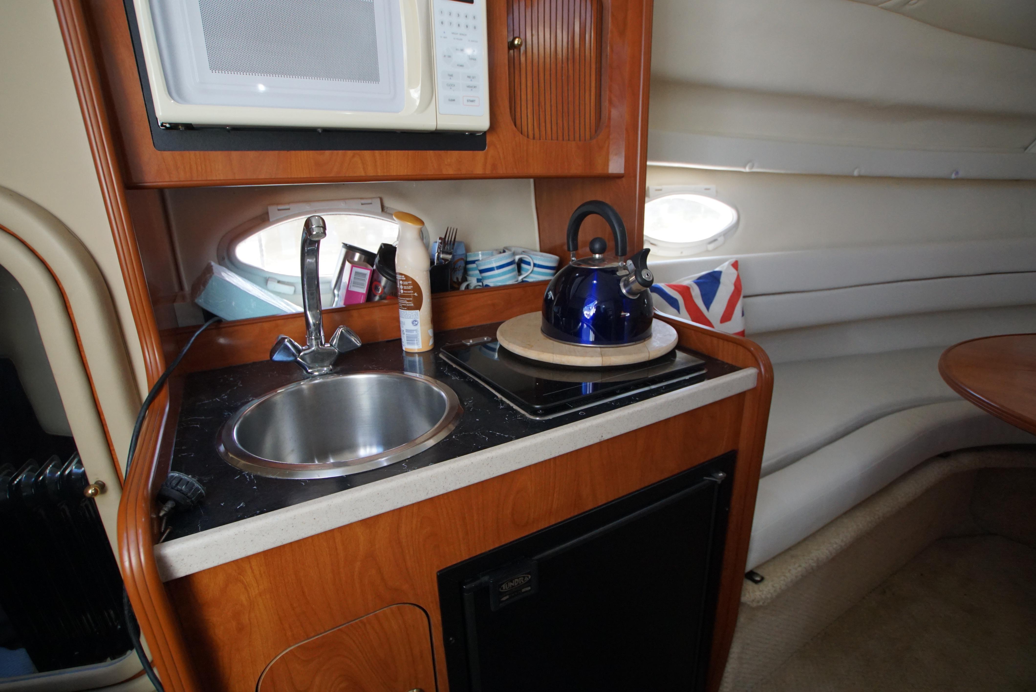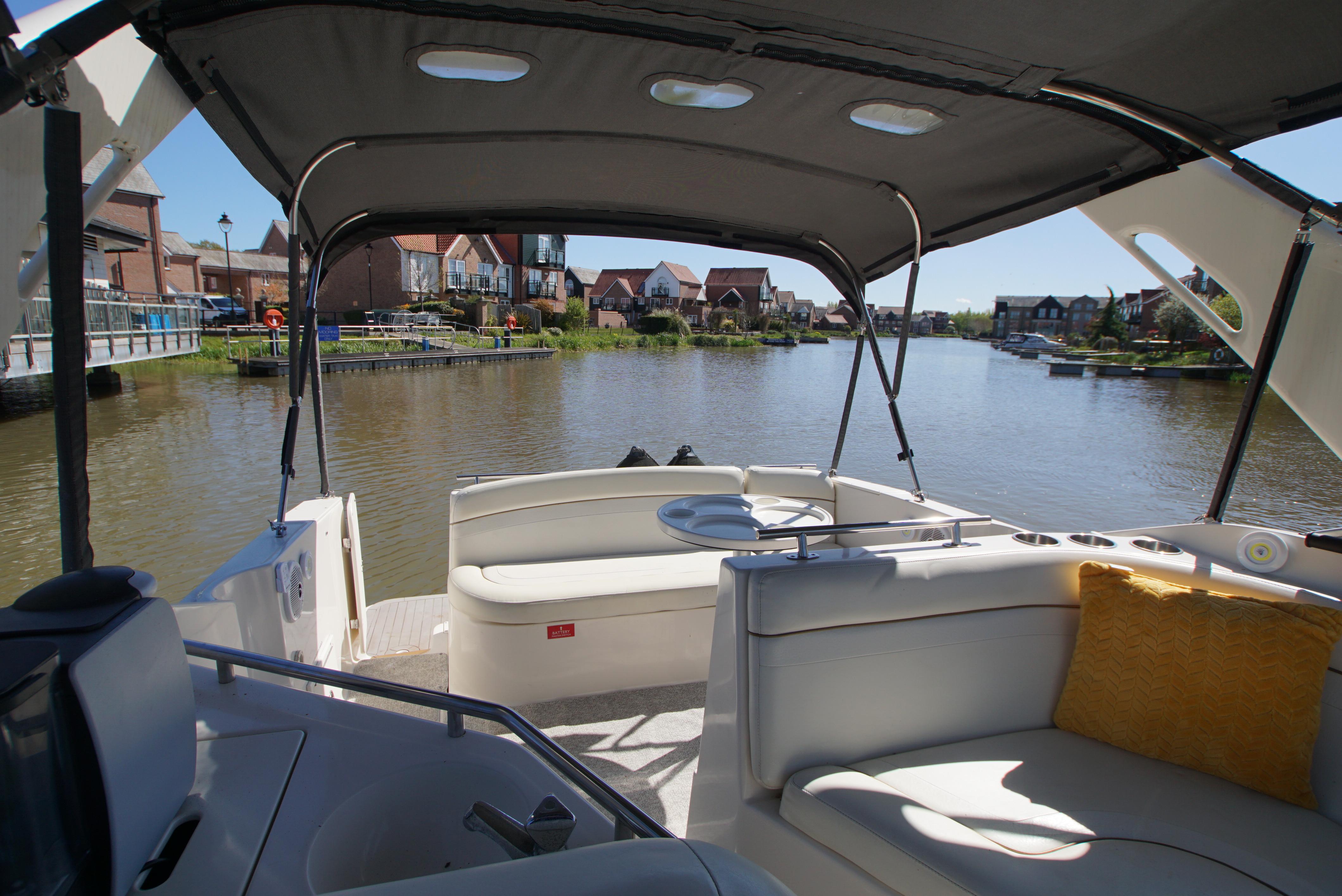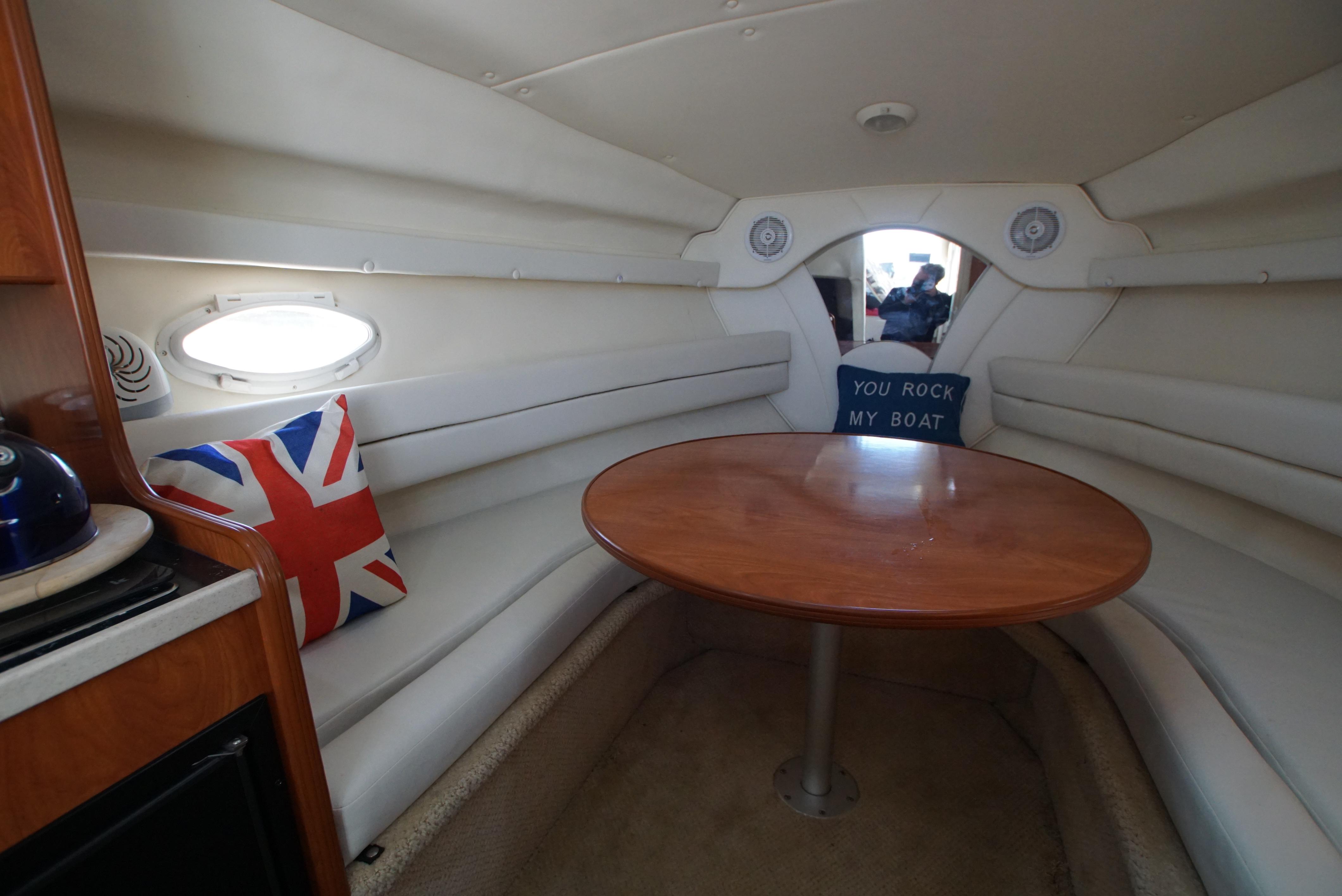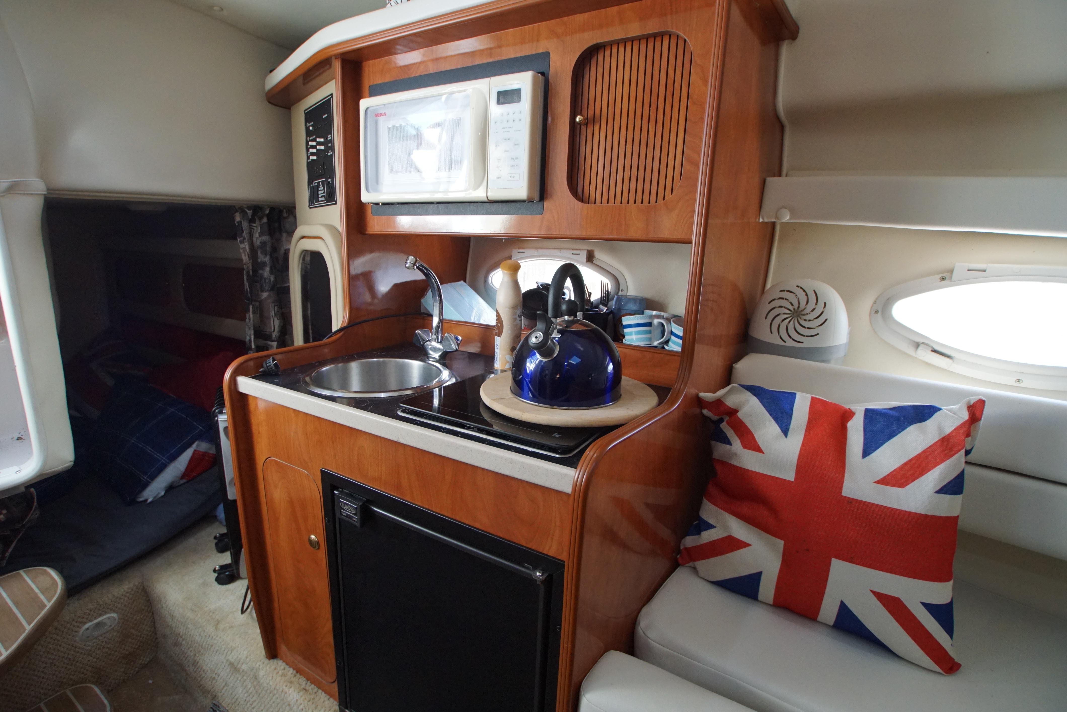 2002 build, 2003 model Rinker 270 equipped with Single Mercruiser 5.7 ltr 350 Mag Petrol engine. This model offers a spacious cockpit for entertaining, complete with ample seating, cockpit canopy (replaced 2023) wetbar, cockpit fridge, Bow Thruster, VHF, Dragonfly chartplotter, FM radio, depth gauge, trim tabs, remote spotlight, microwave, electric hob, interior fridge, manual toilet and more. Boat safety certificate valid until 2028, available to view 7 days a week at Burton Waters Boat Sales in Lincoln.