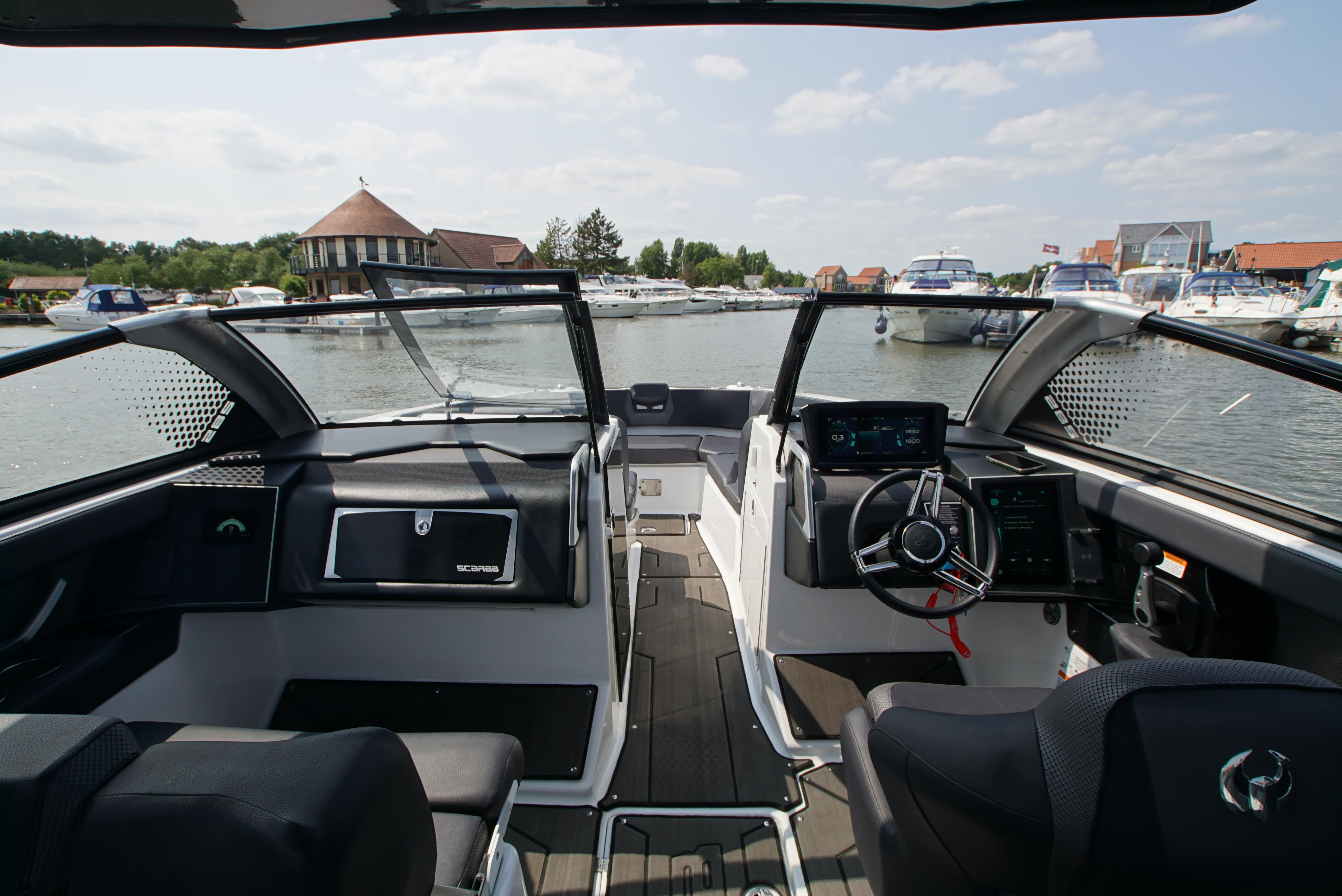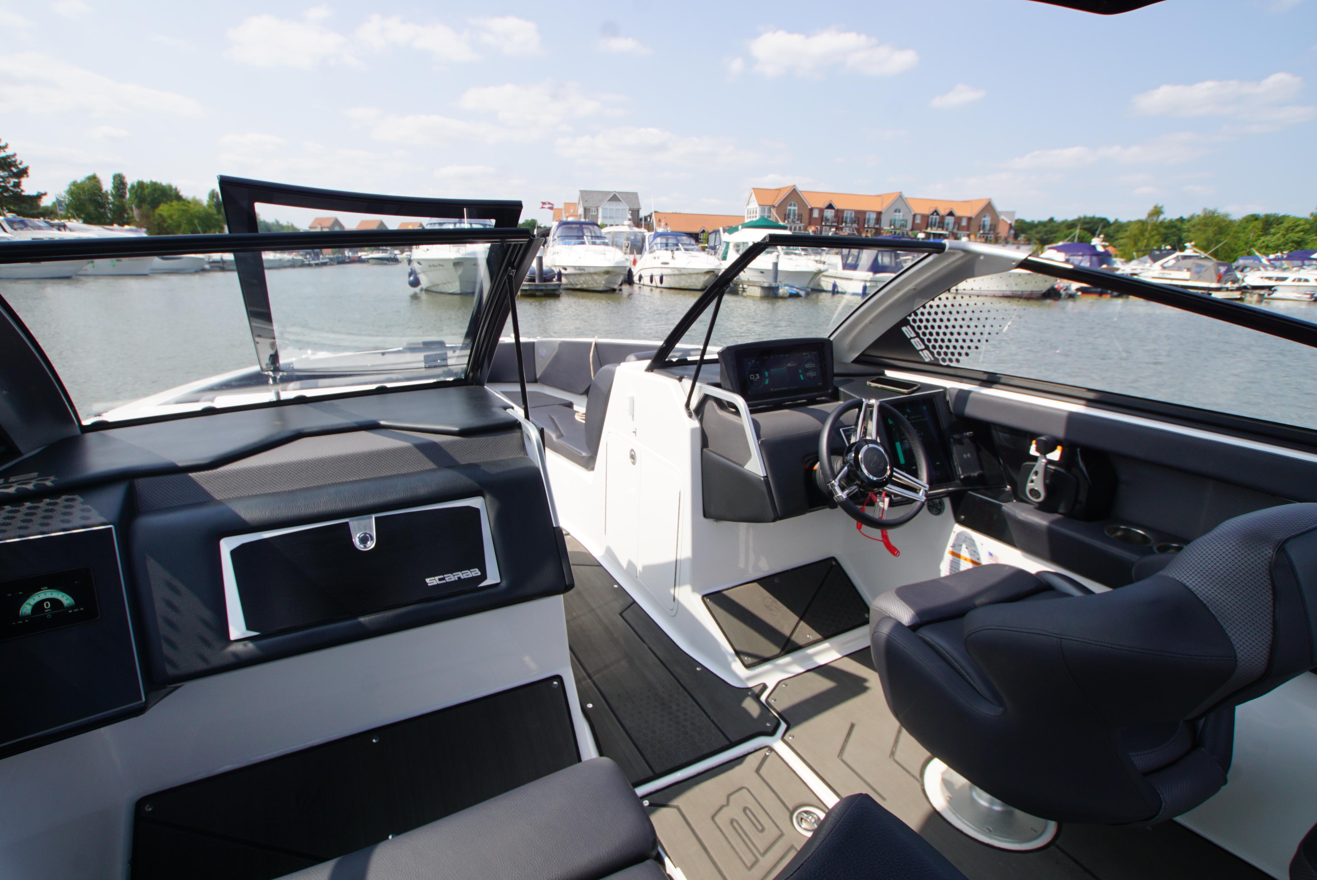 This well-presented Scarab 285 offers the perfect opportunity for fun on the water. The Scarab provides a comfortable, sleek and social seating experience. With an LOA of 28’ and a beam at 9’2”, it’s clear, the 285 is one of the most capable and luxurious, jet boat on the market. An extra-wide swim platform creates an inviting and easy entrance to the 285. The swim platform also provides additional stowage for swim and sports equipment, so you can avoid cluttering up the cockpit with soggy gear!